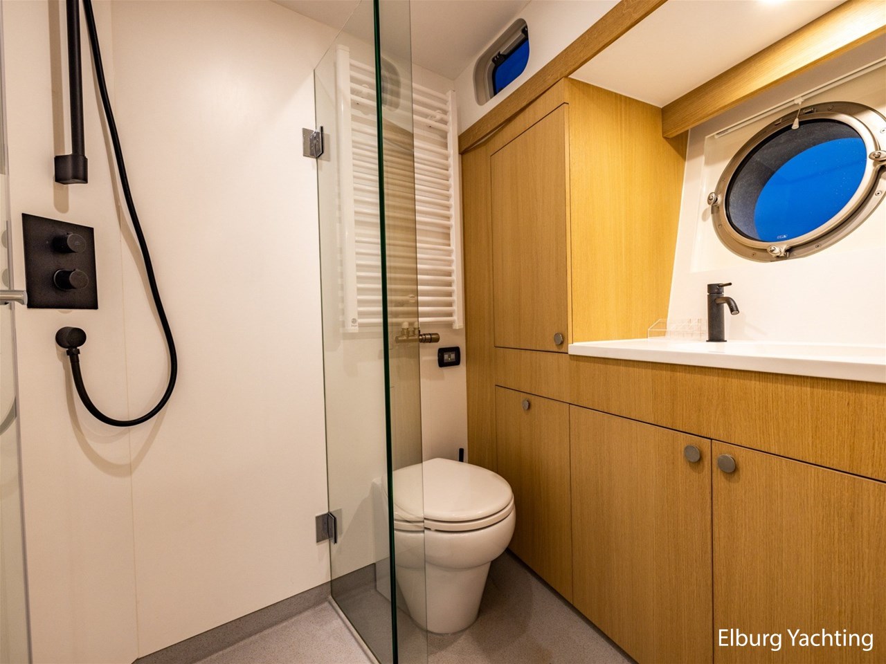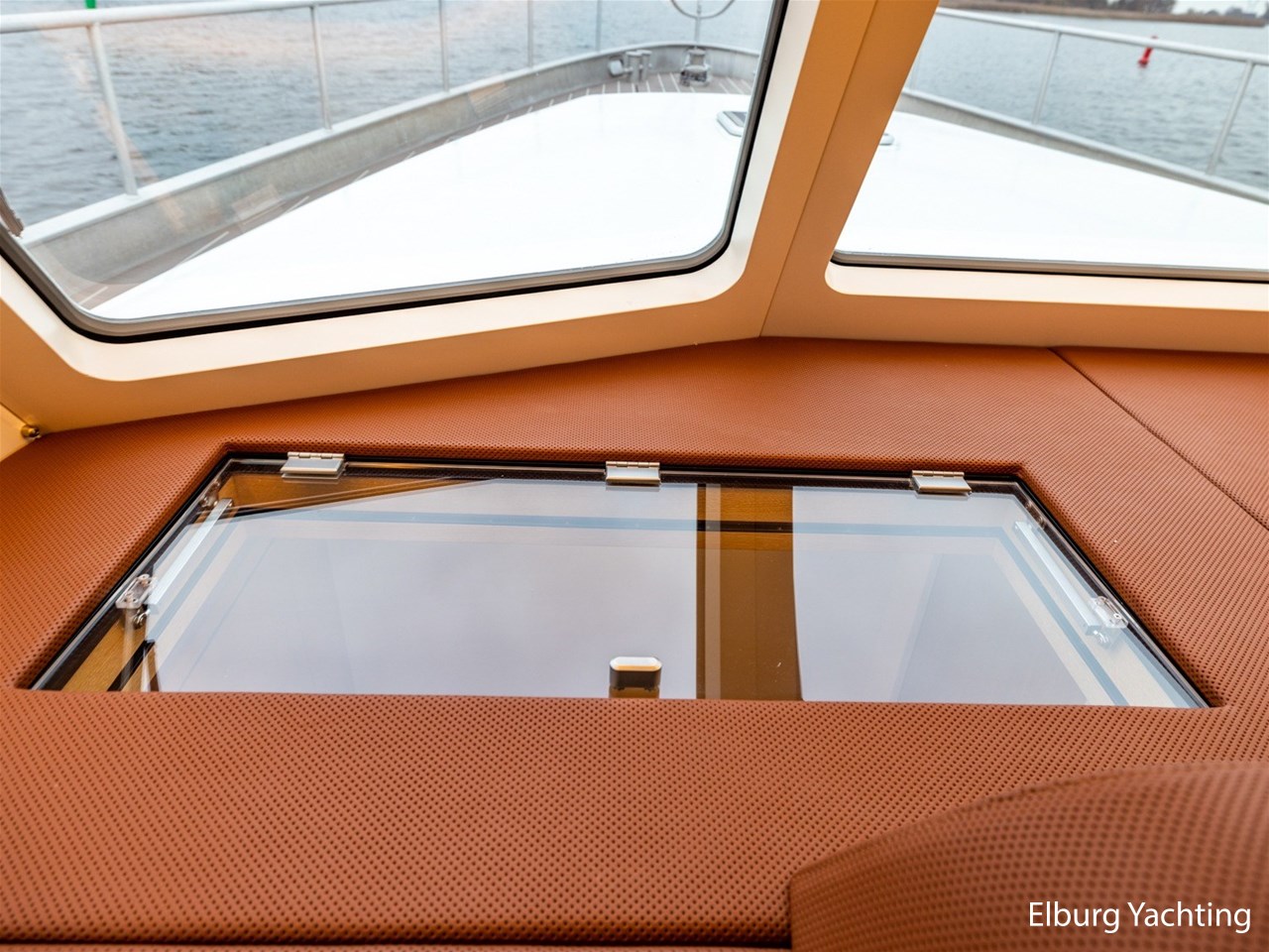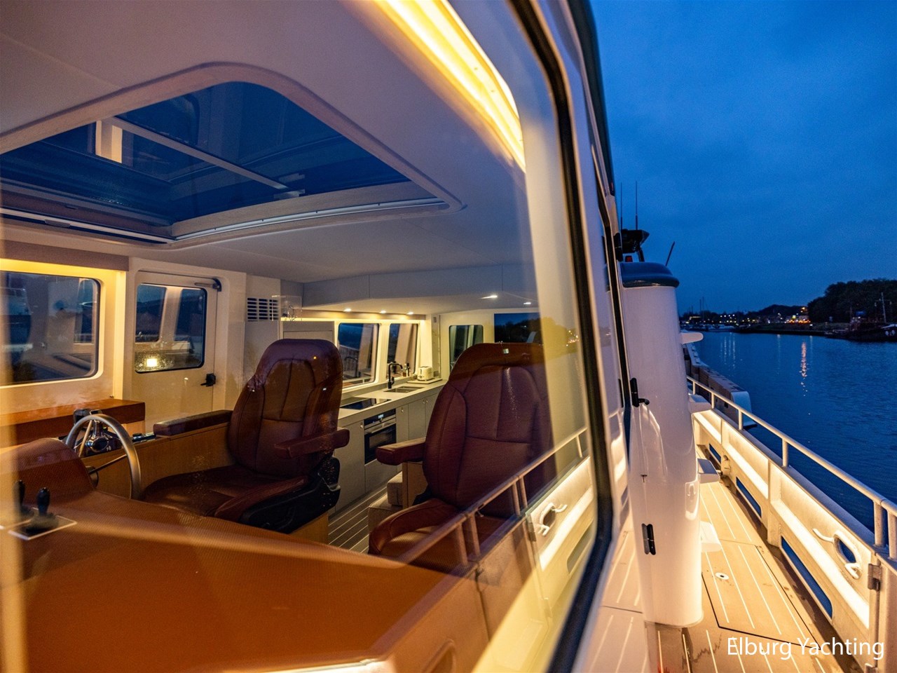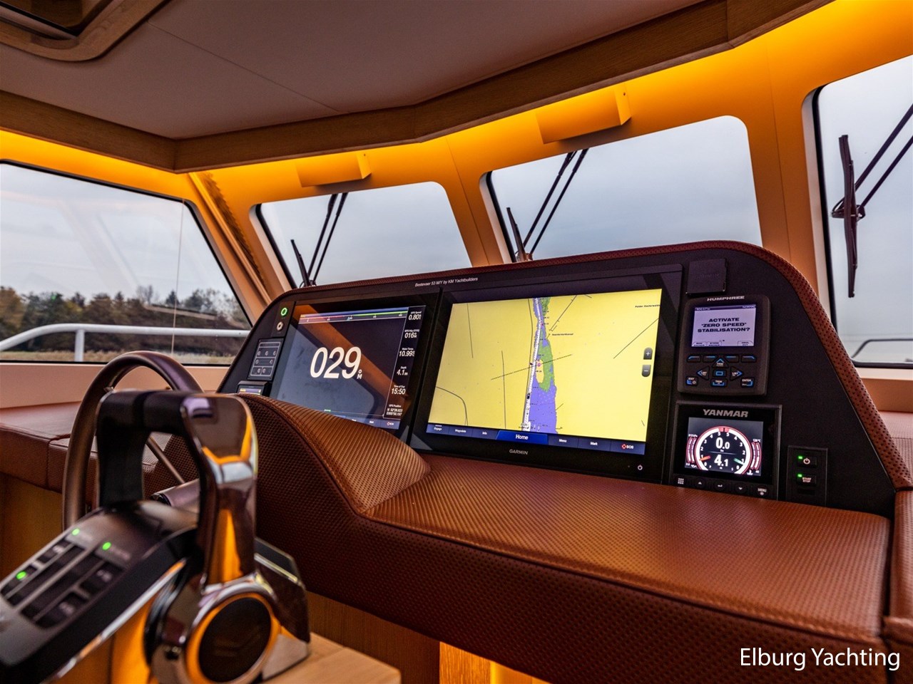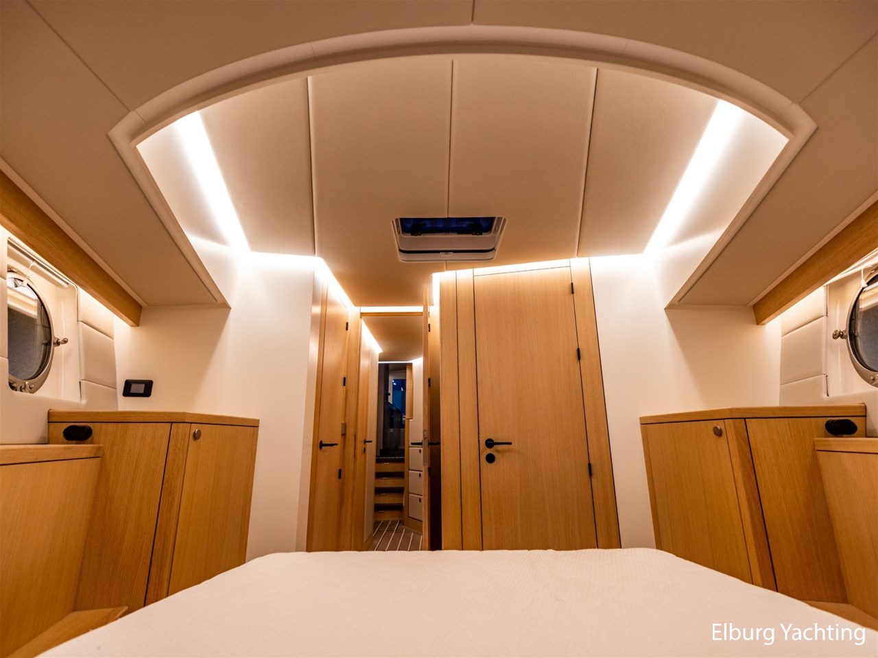 A timeless yacht, extremely comfortable in all weather conditions and also inspired by Scandinavian design. This yacht will bring you a refined feeling of luxury and well-being. The yacht is under construction and will be ready in 2023. Rear deck and saloon are on one level, side entrance, electric sliding roof in wheelhouse (approx. 1.10 x 1. 80 m, side entrance in railing, large sliding doors to cockpit around the saloon and outside deck, Deck shower with hot/cold water at bathing platform, spacious living area in saloon, outside lighting on steps, Garmin navigation package, 2 x 16" screen, CTCV Camera system for aft deck and engine room, Dockmate - 2 engines and bow thruster, Humphree interscepter set (4x) with roll and pitch damping software + carbon fins, 4 x solar panels on aft roof, Fusion radio + 2 x speakers saloon and 2 x cockpit (iPhone compatible), Miele washer-dryer combination. Siemens dishwasher, Ocean Air fly screens in owner's cabin by deck hatch, Shades/curtains in saloon, leather upholstery in dashboard unit, electric lift for deck seat and passenger seat for optimal visibility, Lampe Gras black design lamps, Frost black shower fittings, electric lift for dining table to transform into saloon/lounge table, Kvadrat upholstery, integrated aluminium bollards, aluminium step plate in foresail, aluminium integrated stairs to roof on superstructure, engine room acoustically isolated, 3 x windscreen wipers with spray system. Lewmar deck hatches, Marlan tops, shower and toilet separate for guest cabin, Prebit reading lights, with USB connection and dimmable, Prebit ceiling lights dimmable in red/white, Flat screen 43" TV + lift, hidden in saloon backrest. In exclusive cooperation with Yachtfull,