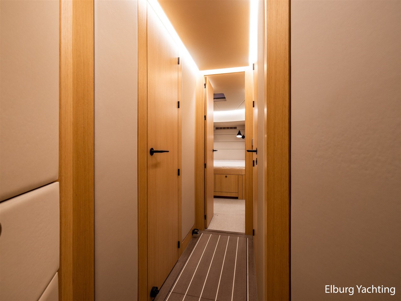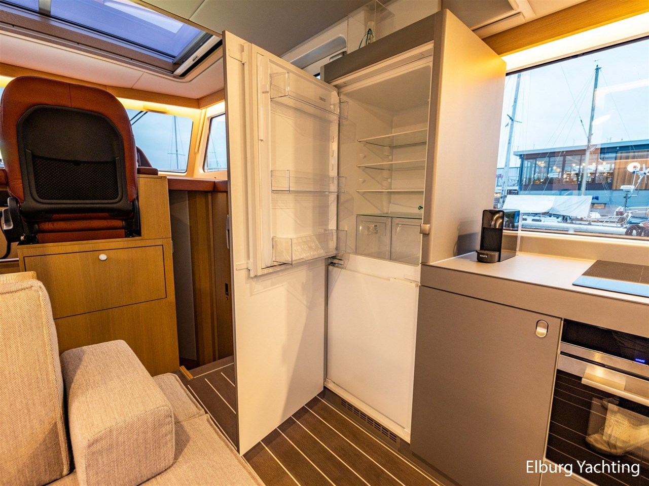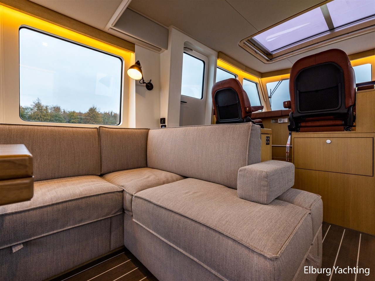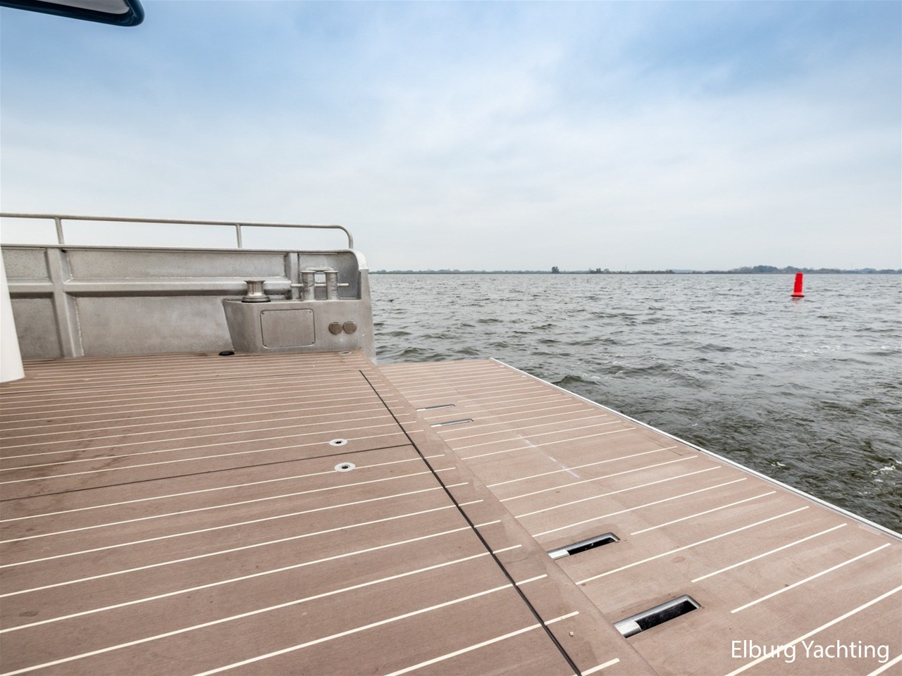 A timeless yacht, extremely comfortable in all weather conditions and also inspired by Scandinavian design. This yacht will bring you a refined feeling of luxury and well-being. The yacht is under construction and will be ready in 2023. Rear deck and saloon are on one level, side entrance, electric sliding roof in wheelhouse (approx. 1.10 x 1. 80 m, side entrance in railing, large sliding doors to cockpit around the saloon and outside deck, Deck shower with hot/cold water at bathing platform, spacious living area in saloon, outside lighting on steps, Garmin navigation package, 2 x 16" screen, CTCV Camera system for aft deck and engine room, Dockmate - 2 engines and bow thruster, Humphree interscepter set (4x) with roll and pitch damping software + carbon fins, 4 x solar panels on aft roof, Fusion radio + 2 x speakers saloon and 2 x cockpit (iPhone compatible), Miele washer-dryer combination. Siemens dishwasher, Ocean Air fly screens in owner's cabin by deck hatch, Shades/curtains in saloon, leather upholstery in dashboard unit, electric lift for deck seat and passenger seat for optimal visibility, Lampe Gras black design lamps, Frost black shower fittings, electric lift for dining table to transform into saloon/lounge table, Kvadrat upholstery, integrated aluminium bollards, aluminium step plate in foresail, aluminium integrated stairs to roof on superstructure, engine room acoustically isolated, 3 x windscreen wipers with spray system. Lewmar deck hatches, Marlan tops, shower and toilet separate for guest cabin, Prebit reading lights, with USB connection and dimmable, Prebit ceiling lights dimmable in red/white, Flat screen 43" TV + lift, hidden in saloon backrest. In exclusive cooperation with Yachtfull,