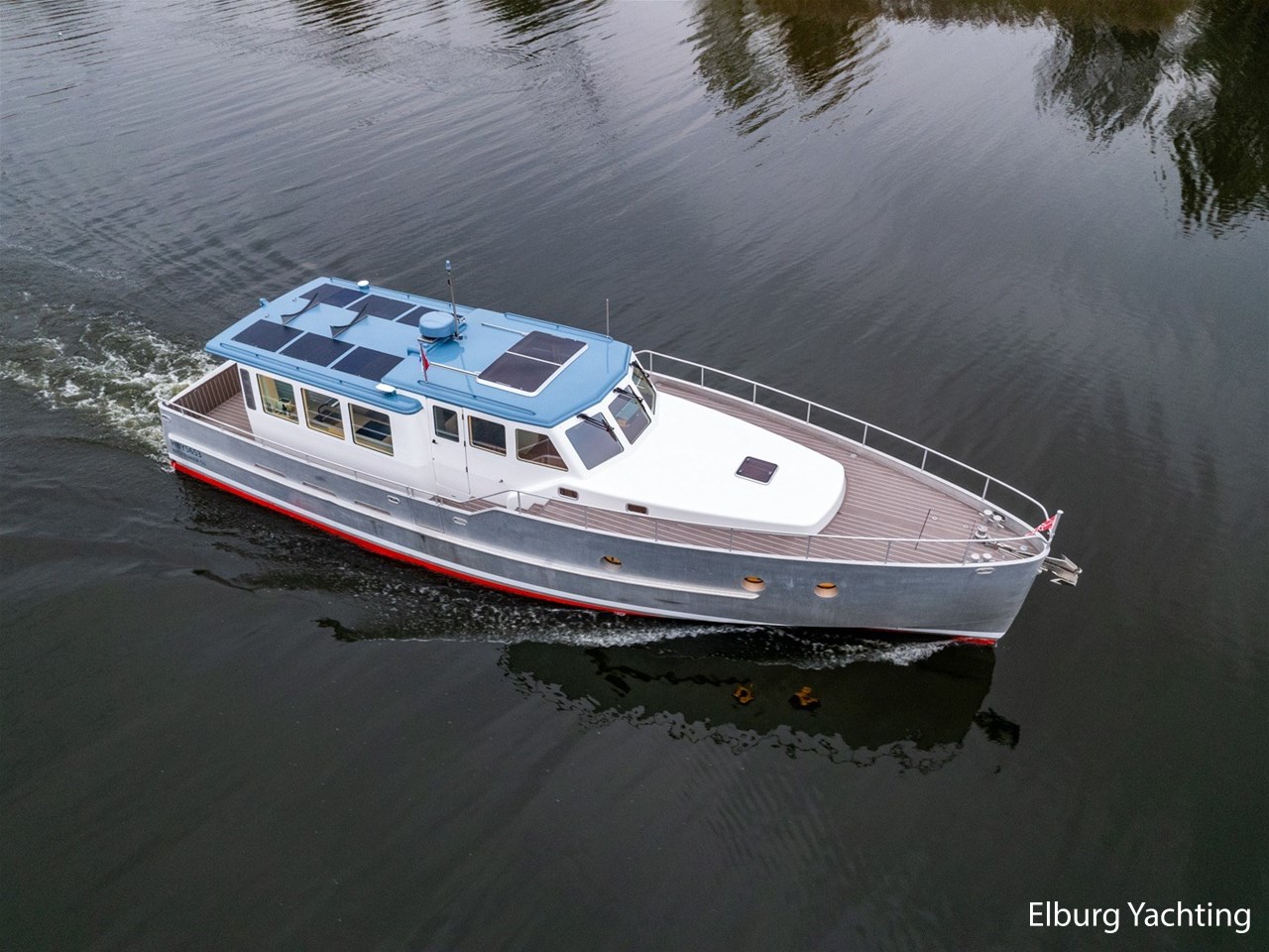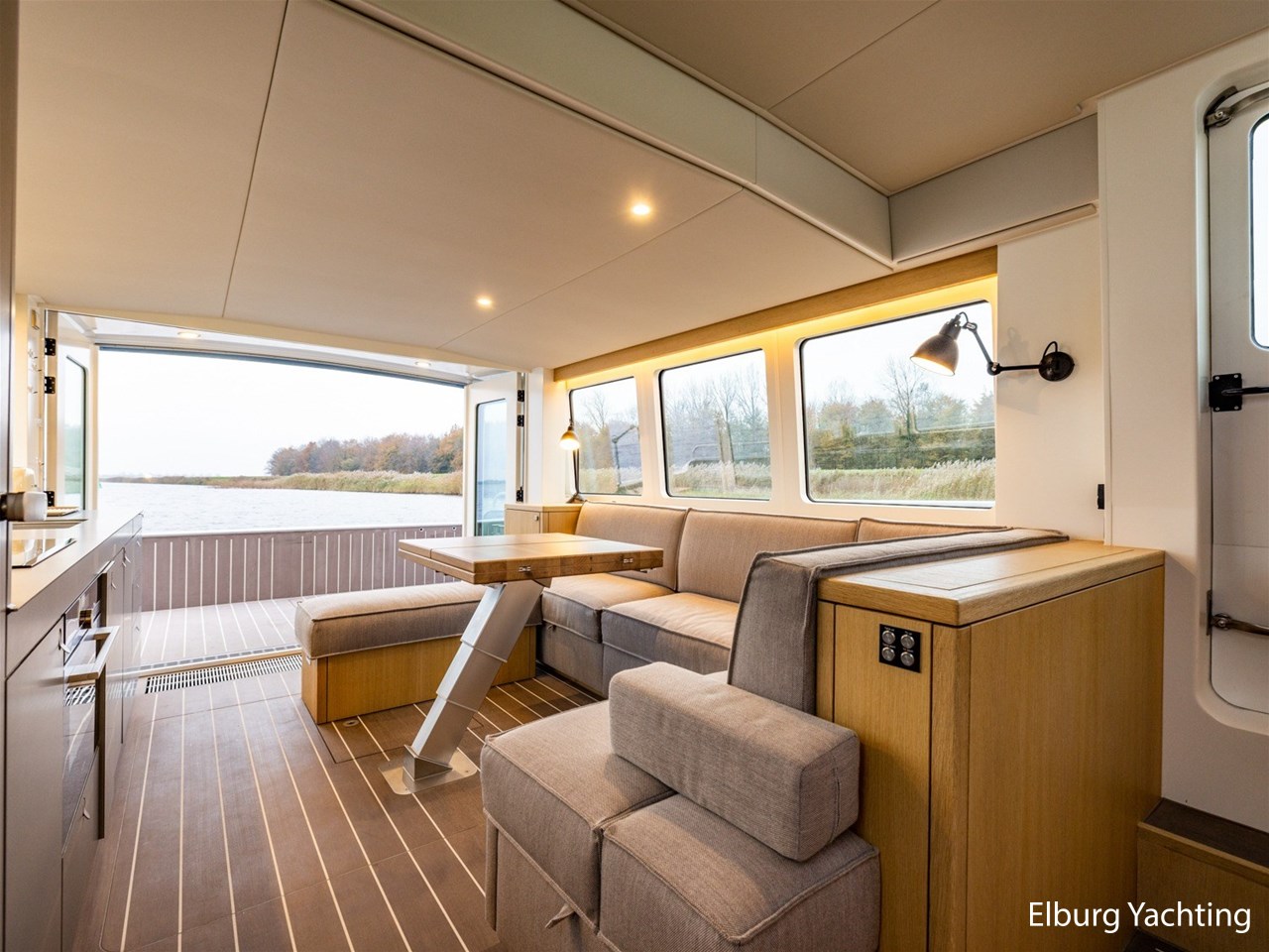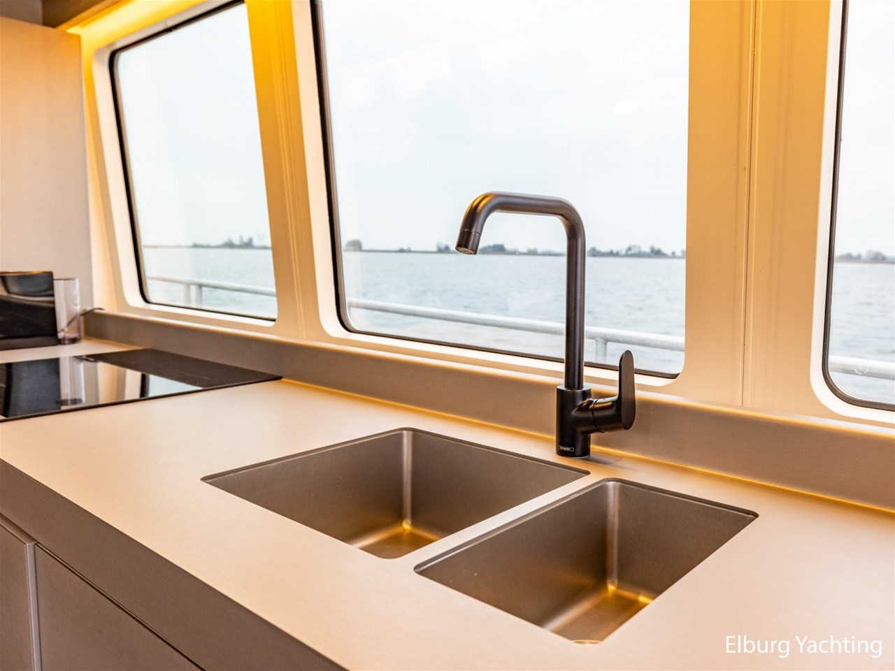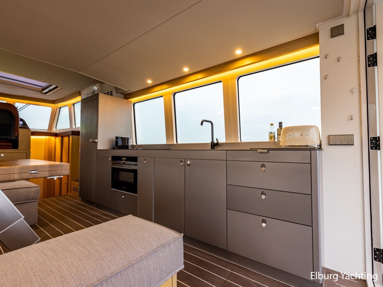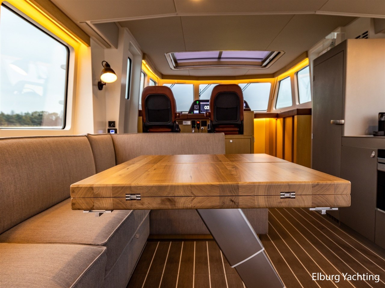 A timeless yacht, extremely comfortable in all weather conditions and also inspired by Scandinavian design. This yacht will bring you a refined feeling of luxury and well-being. The yacht is under construction and will be ready in 2023. Rear deck and saloon are on one level, side entrance, electric sliding roof in wheelhouse (approx. 1.10 x 1. 80 m, side entrance in railing, large sliding doors to cockpit around the saloon and outside deck, Deck shower with hot/cold water at bathing platform, spacious living area in saloon, outside lighting on steps, Garmin navigation package, 2 x 16" screen, CTCV Camera system for aft deck and engine room, Dockmate - 2 engines and bow thruster, Humphree interscepter set (4x) with roll and pitch damping software + carbon fins, 4 x solar panels on aft roof, Fusion radio + 2 x speakers saloon and 2 x cockpit (iPhone compatible), Miele washer-dryer combination. Siemens dishwasher, Ocean Air fly screens in owner's cabin by deck hatch, Shades/curtains in saloon, leather upholstery in dashboard unit, electric lift for deck seat and passenger seat for optimal visibility, Lampe Gras black design lamps, Frost black shower fittings, electric lift for dining table to transform into saloon/lounge table, Kvadrat upholstery, integrated aluminium bollards, aluminium step plate in foresail, aluminium integrated stairs to roof on superstructure, engine room acoustically isolated, 3 x windscreen wipers with spray system. Lewmar deck hatches, Marlan tops, shower and toilet separate for guest cabin, Prebit reading lights, with USB connection and dimmable, Prebit ceiling lights dimmable in red/white, Flat screen 43" TV + lift, hidden in saloon backrest. In exclusive cooperation with Yachtfull,
