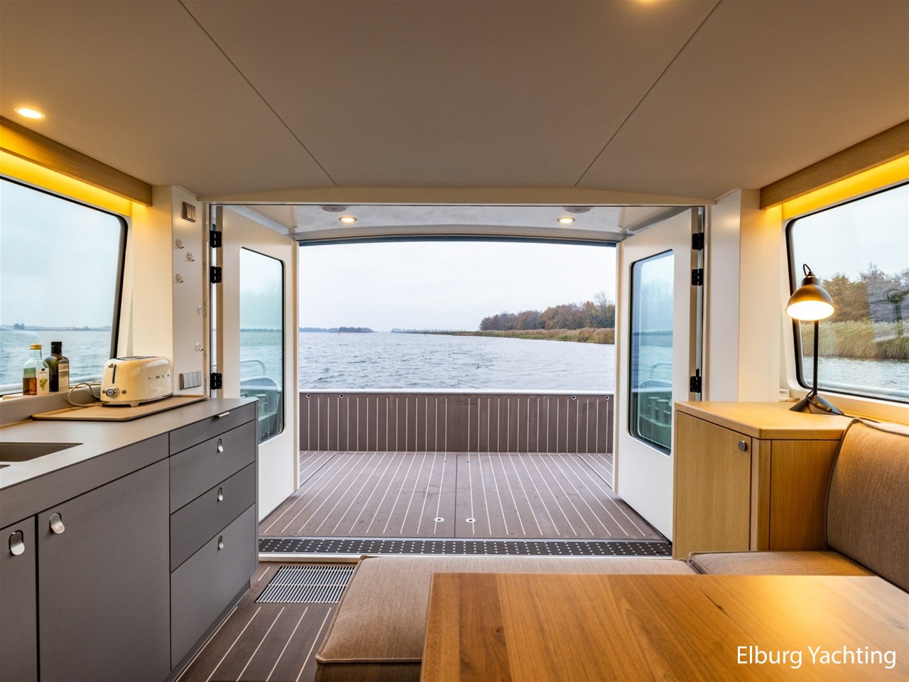 The Bestevaer 53 MY which you see in this specification and on location in Elburg gives a clear experience and impression of the Bestevaer 53 MY - NEW - Building number 3. The motor yacht has a large aft deck with hydraulic swimming platform and wide side decks for plenty of room to move, large sliding doors that can be opened completely, so that outside and inside merge into each other.
