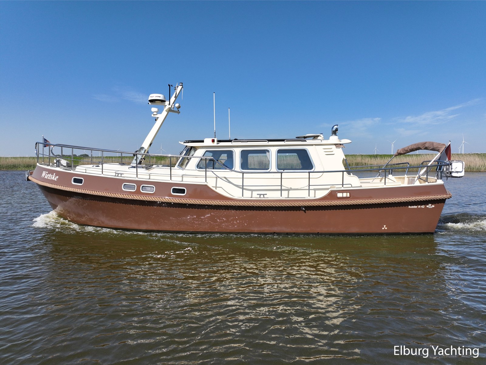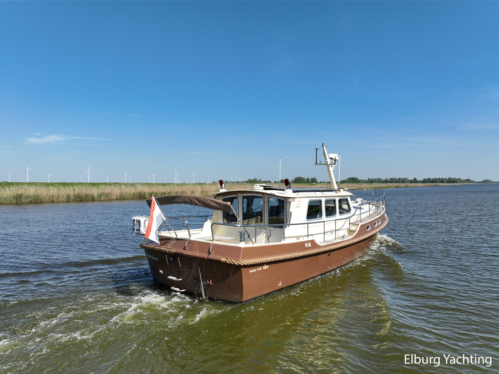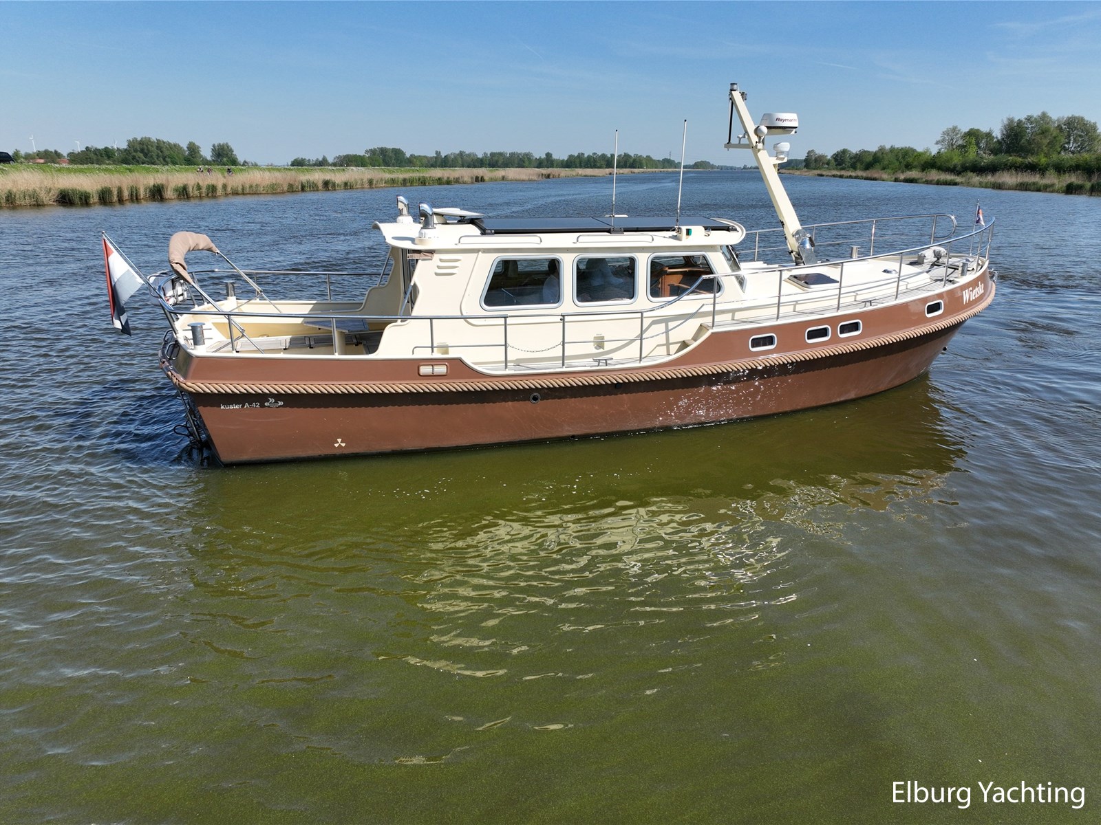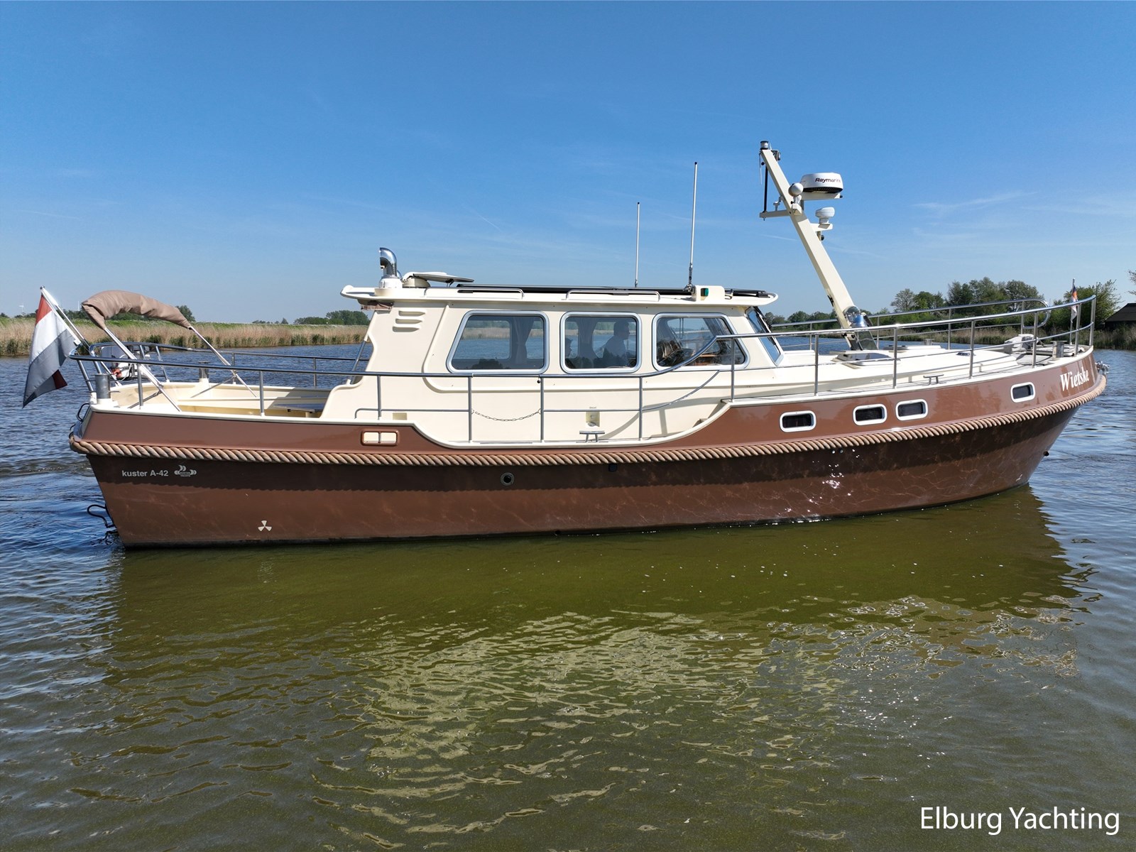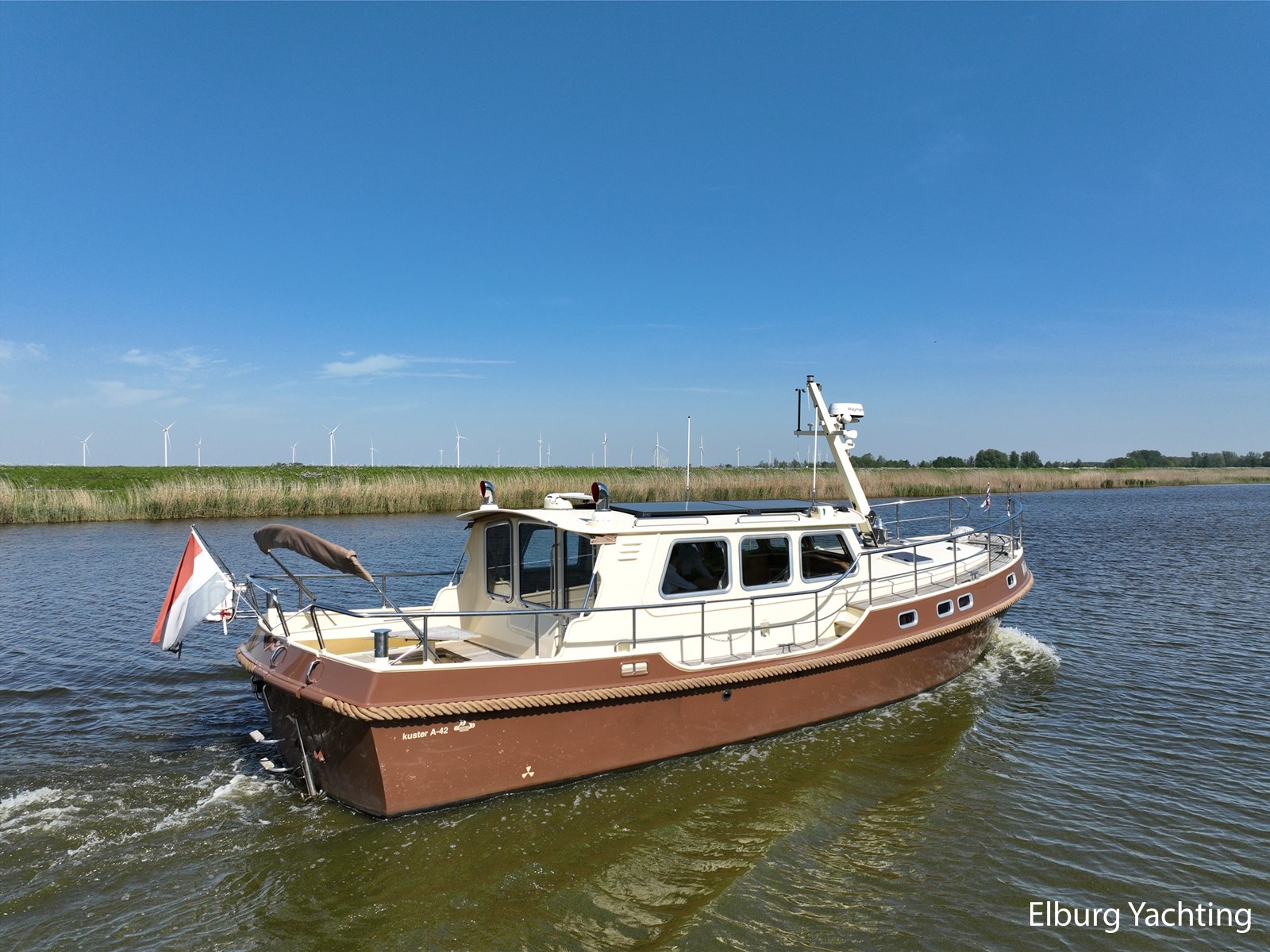 Beautiful, robustly built Kuster A42 designed by Mr W. Nieland and subsequently built by Consonant Yachts in 2005, launched in 2006. This Kuster A42 was in 2007 named "Boat of the year 2007". This yacht is equipped with a robust double stainless steel sea railing which is situated at a comfortable height and ensures a safe feeling on deck. The deck is teak all around, both in the gangways and in the spacious cockpit. The cockpit is also fitted with a hydraulically lowerable stern door, also with Teak panelling. The transom door makes it easy to move bicycles or other items to and from the boat and also serves as a bathing platform. The cockpit can be darkened during the warmer summer days by means of the recent bimini (2023). The cabin deck has a lowerable mast and solar panels installed and a jabsco 60020 remote control floodlight. From the spacious open cockpit, move comfortably to the ground-level fixed wheelhouse via the sliding door. Once you enter the fixed wheelhouse, you immediately notice the amount of natural light guaranteed by the large Gebo double-glazed aluminium window frames. The panelling on board is solid teak and the cushions are upholstered in blue. On the port side against the facade is the galley which is equipped with an Isoterm fridge, 4-burner induction hob and an AEG combi microwave/oven, The Kuster is also equipped with a Candy washing machine on board. Forward is the comfortable steering position which has Raymarine equipment, hydraulic steering, hydraulically proportional bow and stern thrusters and the gauges. To starboard is a raised dinette. Throughout the entire fixed wheelhouse, good thought has been given to sea-going through the many handrails and railings, in addition to the Kabola central heating, the fixed wheelhouse is also fitted with underfloor heating. Via the comfortable stairs you can easily move to the corridor where the guest cabin is located, which is separated from the corridor by its own lockable sliding door. The owner's cabin is located at the front of the yacht and has plenty of storage space, headroom and a double French bed. The wet room is located on the port side, diagonally opposite the guest cabin and can be accessed via the corridor as the owner's cabin. The wet room has a shower stall, a sink, an electric toilet and storage space. There have been no cutbacks on the maintenance of the Kuster A42 in recent years, for example, in 2021 the yacht was professionally taken care of outside and completely painted. In 2022, new service batteries and four new solar panels were installed, in 2021 a Raymarine Axiom navigation system was installed, the upholstery was completely tackled in 2018 as well as a Neptune mattress for the owner's cabin, curtains and cushions were renewed in 2022, in 2020 a new propeller was installed underneath, in 2020 the entire underwater hull was stripped bare and rebuilt with a 10-year warranty (subject to inspection every 2 years), in 2022 a new 4-person life raft was installed, the greywater pumps were recently renewed, the navigation lighting were renewed in 2021, the engine room was soundproofed in 2021 and in 2024 the yacht is equipped with new cable fender. For questions and/or to make an appointment, you are welcome 7 days a week at Elburg Yachting.