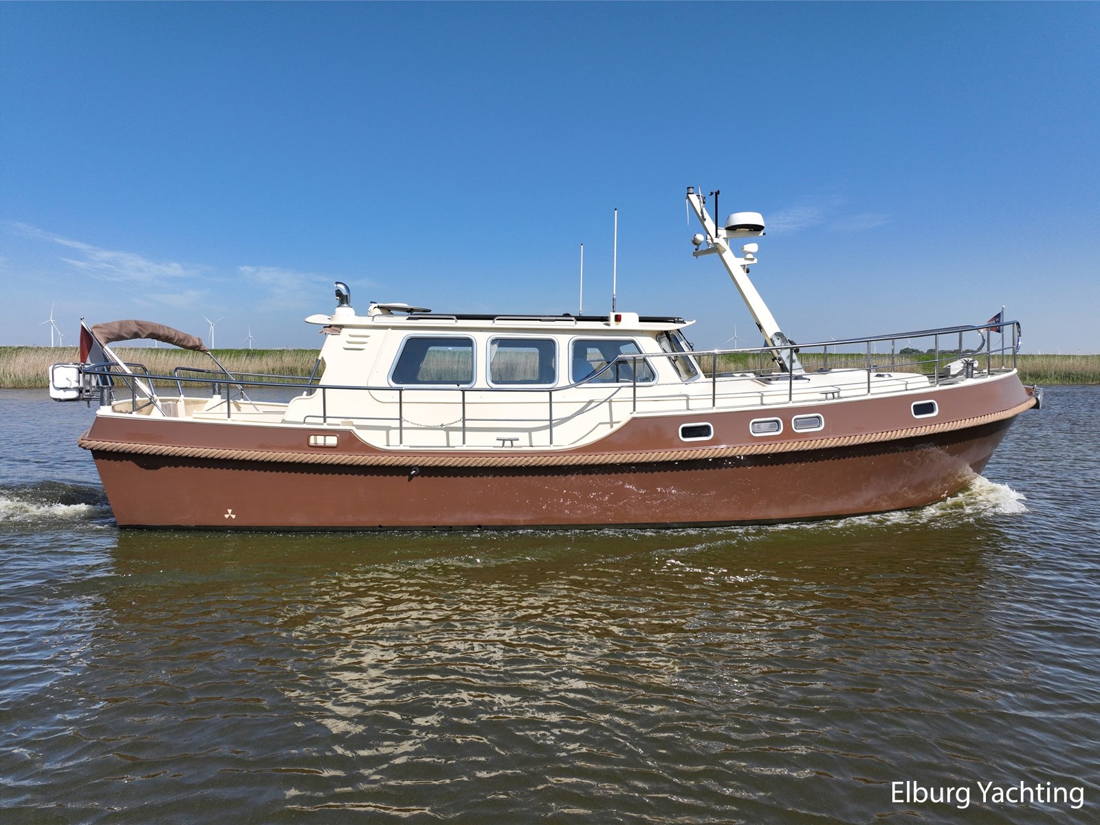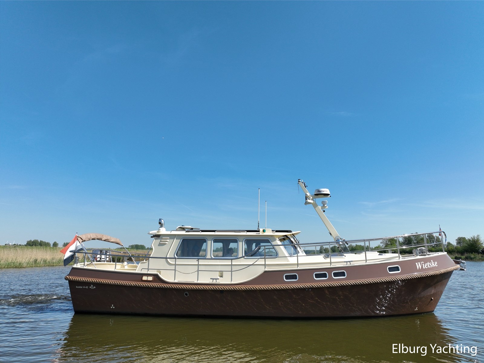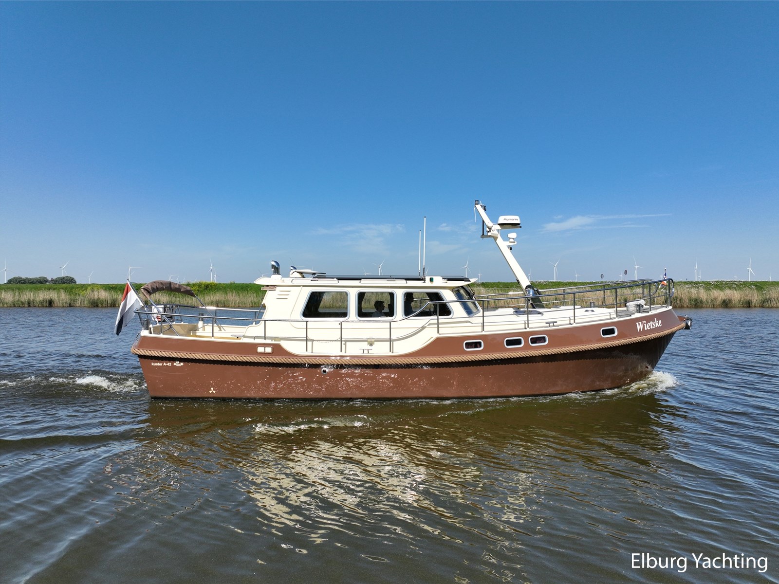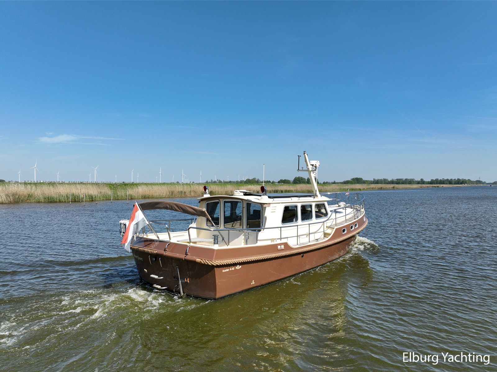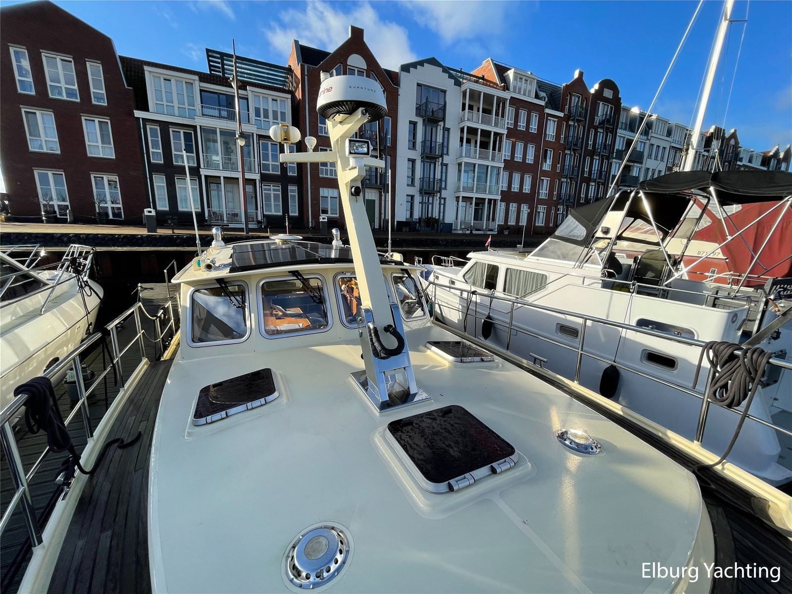 Beautiful, robustly built Kuster A42 designed by Mr W. Nieland and subsequently built by Consonant Yachts in 2005, launched in 2006. This Kuster A42 was in 2007 named "Boat of the year 2007". This yacht is equipped with a robust double stainless steel sea railing which is situated at a comfortable height and ensures a safe feeling on deck. The deck is teak all around, both in the gangways and in the spacious cockpit. The cockpit is also fitted with a hydraulically lowerable stern door, also with Teak panelling. The transom door makes it easy to move bicycles or other items to and from the boat and also serves as a bathing platform. The cockpit can be darkened during the warmer summer days by means of the recent bimini (2023). The cabin deck has a lowerable mast and solar panels installed and a jabsco 60020 remote control floodlight. From the spacious open cockpit, move comfortably to the ground-level fixed wheelhouse via the sliding door. Once you enter the fixed wheelhouse, you immediately notice the amount of natural light guaranteed by the large Gebo double-glazed aluminium window frames. The panelling on board is solid teak and the cushions are upholstered in blue. On the port side against the facade is the galley which is equipped with an Isoterm fridge, 4-burner induction hob and an AEG combi microwave/oven, The Kuster is also equipped with a Candy washing machine on board. Forward is the comfortable steering position which has Raymarine equipment, hydraulic steering, hydraulically proportional bow and stern thrusters and the gauges. To starboard is a raised dinette. Throughout the entire fixed wheelhouse, good thought has been given to sea-going through the many handrails and railings, in addition to the Kabola central heating, the fixed wheelhouse is also fitted with underfloor heating. Via the comfortable stairs you can easily move to the corridor where the guest cabin is located, which is separated from the corridor by its own lockable sliding door. The owner's cabin is located at the front of the yacht and has plenty of storage space, headroom and a double French bed. The wet room is located on the port side, diagonally opposite the guest cabin and can be accessed via the corridor as the owner's cabin. The wet room has a shower stall, a sink, an electric toilet and storage space. There have been no cutbacks on the maintenance of the Kuster A42 in recent years, for example, in 2021 the yacht was professionally taken care of outside and completely painted. In 2022, new service batteries and four new solar panels were installed, in 2021 a Raymarine Axiom navigation system was installed, the upholstery was completely tackled in 2018 as well as a Neptune mattress for the owner's cabin, curtains and cushions were renewed in 2022, in 2020 a new propeller was installed underneath, in 2020 the entire underwater hull was stripped bare and rebuilt with a 10-year warranty (subject to inspection every 2 years), in 2022 a new 4-person life raft was installed, the greywater pumps were recently renewed, the navigation lighting were renewed in 2021, the engine room was soundproofed in 2021 and in 2024 the yacht is equipped with new cable fender. For questions and/or to make an appointment, you are welcome 7 days a week at Elburg Yachting.