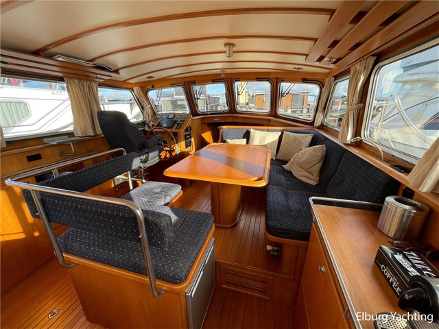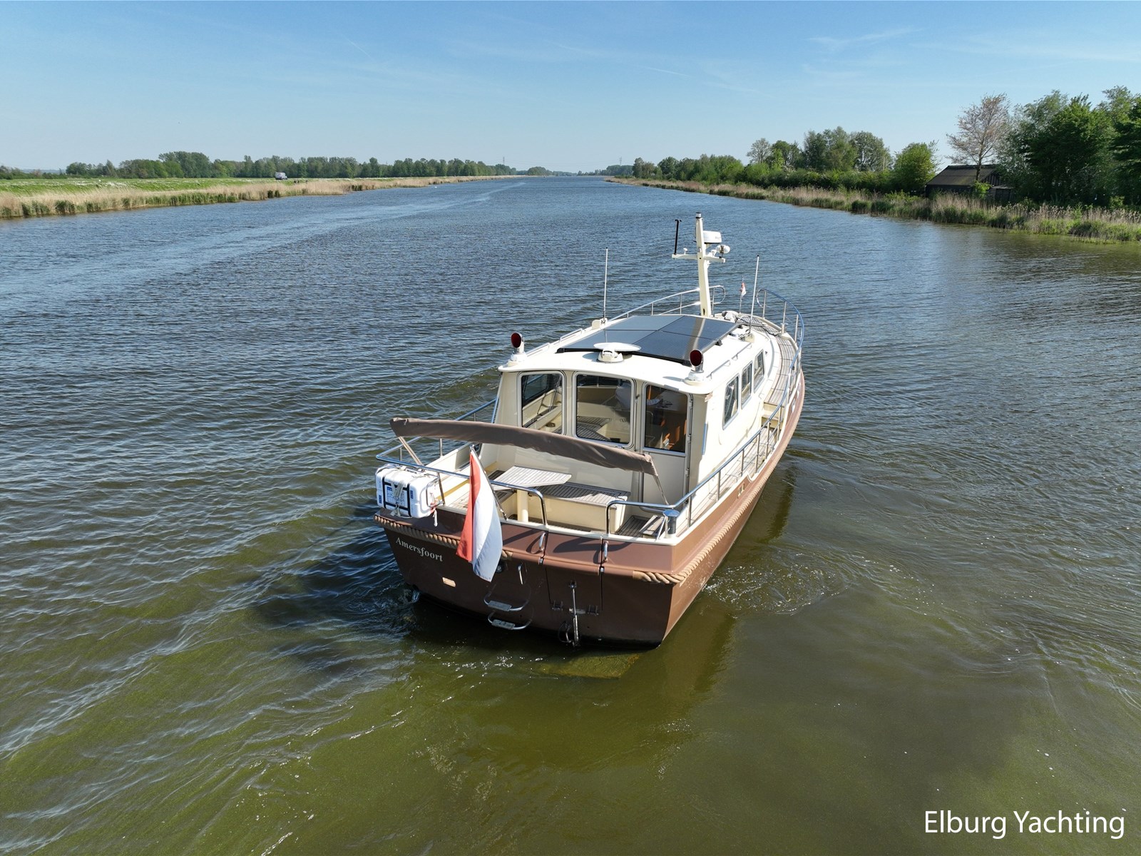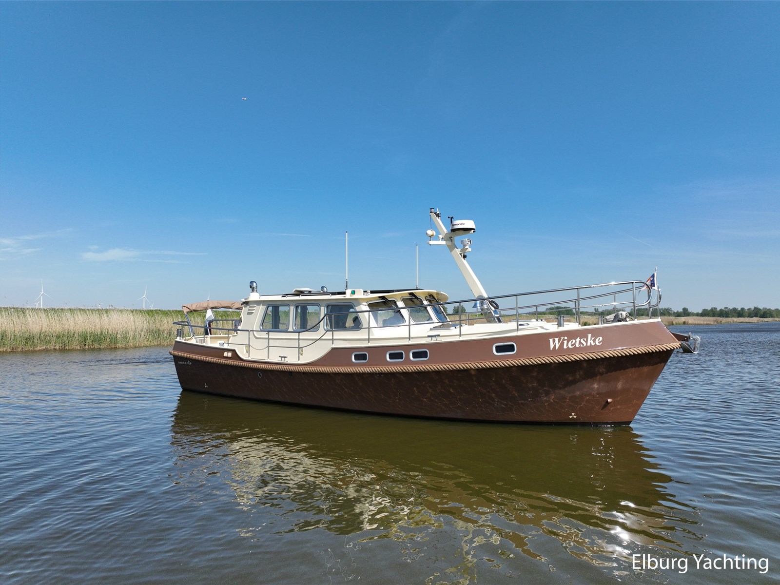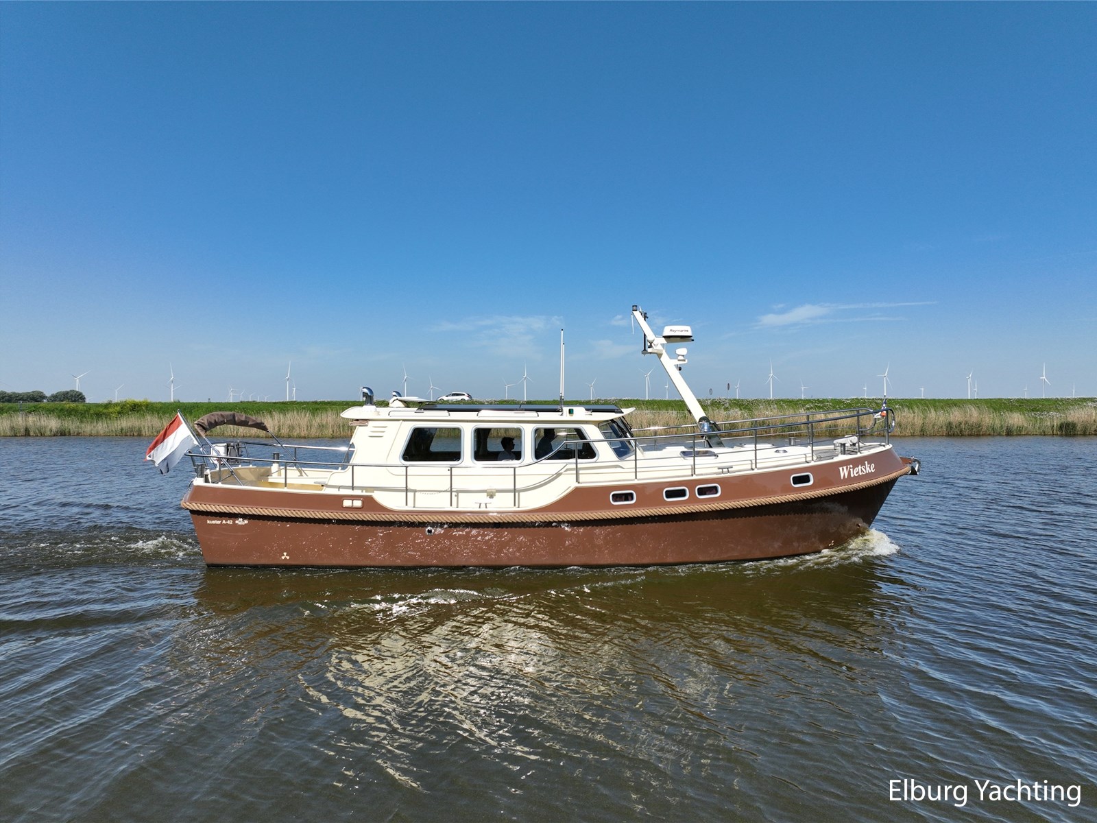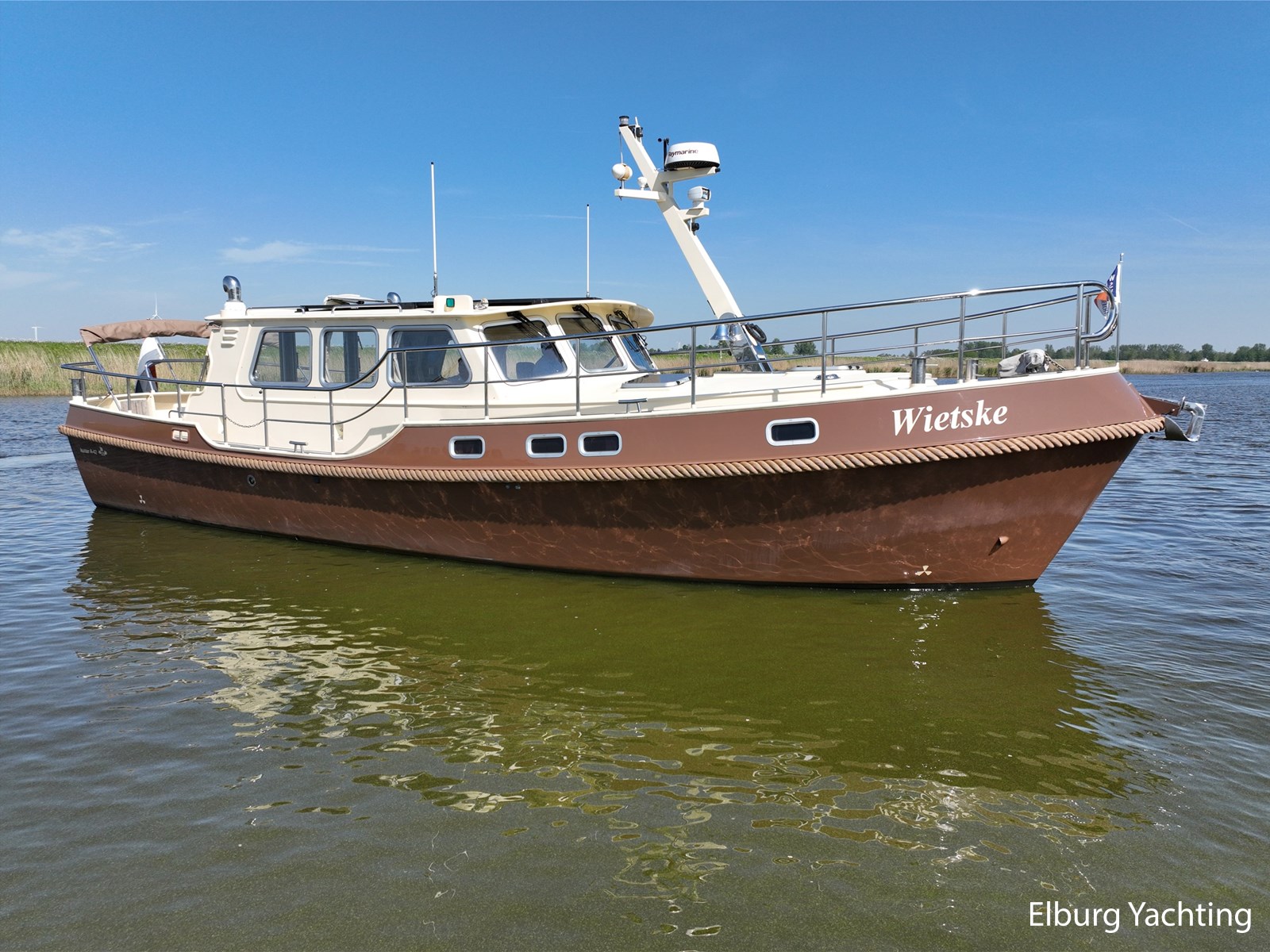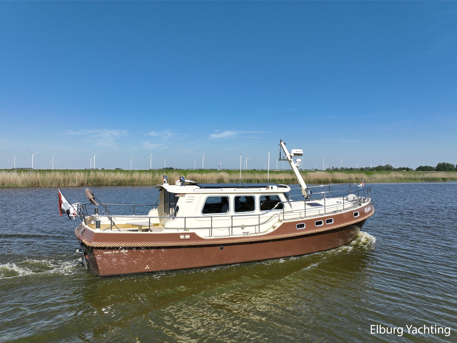 Beautiful, robustly built Kuster A42 designed by Mr W. Nieland and subsequently built by Consonant Yachts in 2005, launched in 2006. This Kuster A42 was in 2007 named "Boat of the year 2007". This yacht is equipped with a robust double stainless steel sea railing which is situated at a comfortable height and ensures a safe feeling on deck. The deck is teak all around, both in the gangways and in the spacious cockpit. The cockpit is also fitted with a hydraulically lowerable stern door, also with Teak panelling. The transom door makes it easy to move bicycles or other items to and from the boat and also serves as a bathing platform. The cockpit can be darkened during the warmer summer days by means of the recent bimini (2023). The cabin deck has a lowerable mast and solar panels installed and a jabsco 60020 remote control floodlight. From the spacious open cockpit, move comfortably to the ground-level fixed wheelhouse via the sliding door. Once you enter the fixed wheelhouse, you immediately notice the amount of natural light guaranteed by the large Gebo double-glazed aluminium window frames. The panelling on board is solid teak and the cushions are upholstered in blue. On the port side against the facade is the galley which is equipped with an Isoterm fridge, 4-burner induction hob and an AEG combi microwave/oven, The Kuster is also equipped with a Candy washing machine on board. Forward is the comfortable steering position which has Raymarine equipment, hydraulic steering, hydraulically proportional bow and stern thrusters and the gauges. To starboard is a raised dinette. Throughout the entire fixed wheelhouse, good thought has been given to sea-going through the many handrails and railings, in addition to the Kabola central heating, the fixed wheelhouse is also fitted with underfloor heating. Via the comfortable stairs you can easily move to the corridor where the guest cabin is located, which is separated from the corridor by its own lockable sliding door. The owner's cabin is located at the front of the yacht and has plenty of storage space, headroom and a double French bed. The wet room is located on the port side, diagonally opposite the guest cabin and can be accessed via the corridor as the owner's cabin. The wet room has a shower stall, a sink, an electric toilet and storage space. There have been no cutbacks on the maintenance of the Kuster A42 in recent years, for example, in 2021 the yacht was professionally taken care of outside and completely painted. In 2022, new service batteries and four new solar panels were installed, in 2021 a Raymarine Axiom navigation system was installed, the upholstery was completely tackled in 2018 as well as a Neptune mattress for the owner's cabin, curtains and cushions were renewed in 2022, in 2020 a new propeller was installed underneath, in 2020 the entire underwater hull was stripped bare and rebuilt with a 10-year warranty (subject to inspection every 2 years), in 2022 a new 4-person life raft was installed, the greywater pumps were recently renewed, the navigation lighting were renewed in 2021, the engine room was soundproofed in 2021 and in 2024 the yacht is equipped with new cable fender. For questions and/or to make an appointment, you are welcome 7 days a week at Elburg Yachting.
