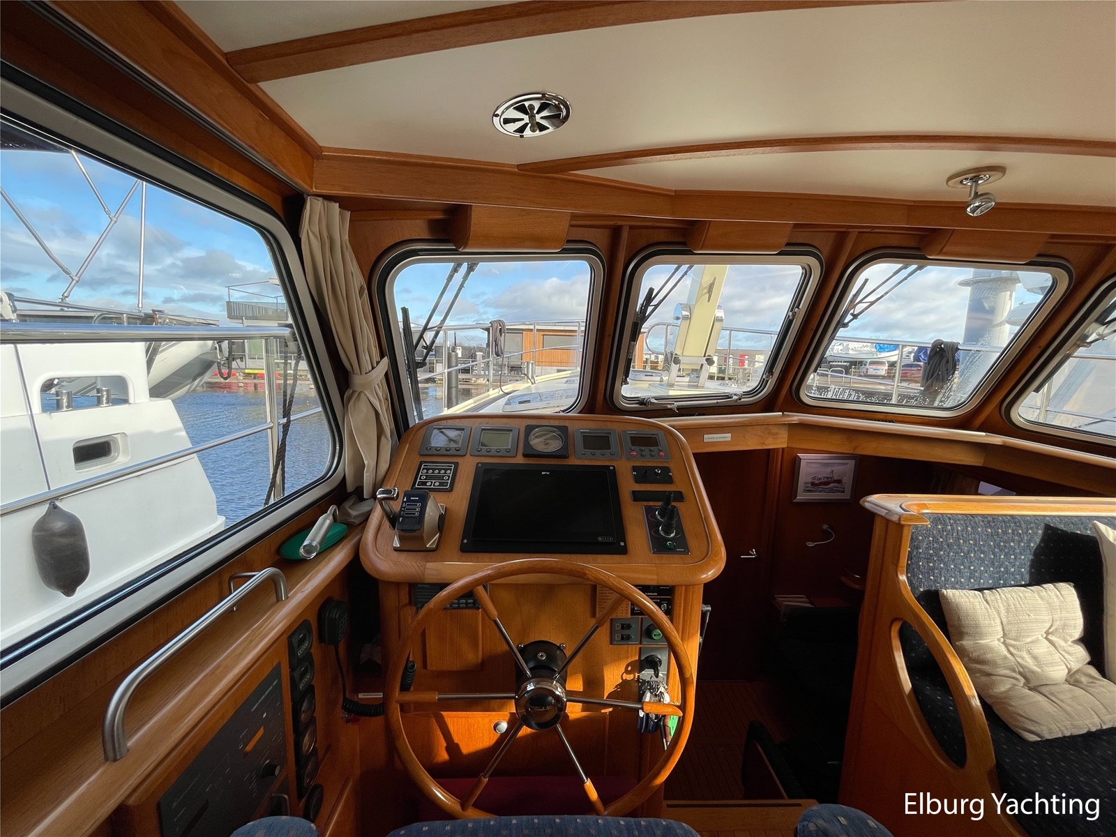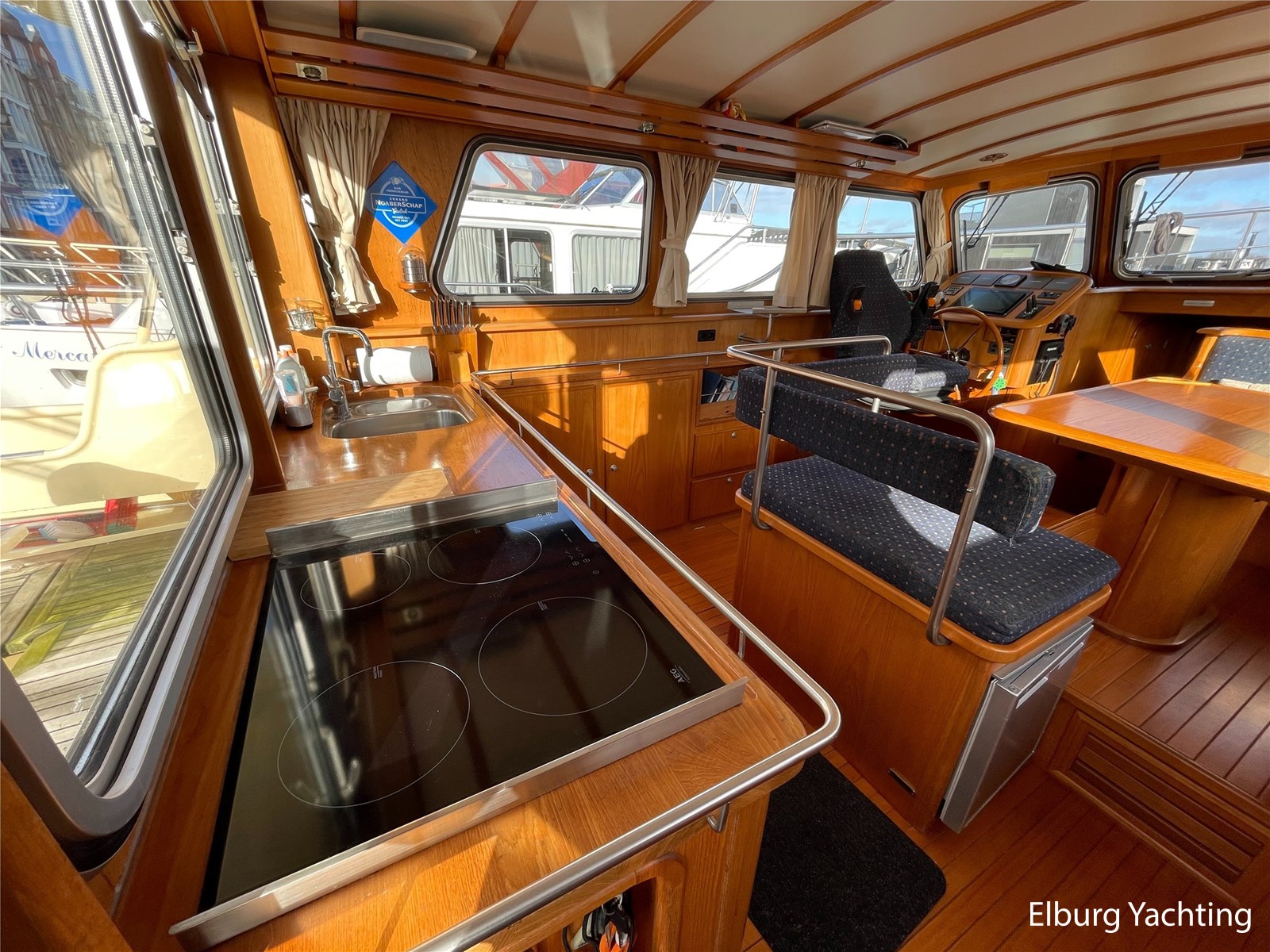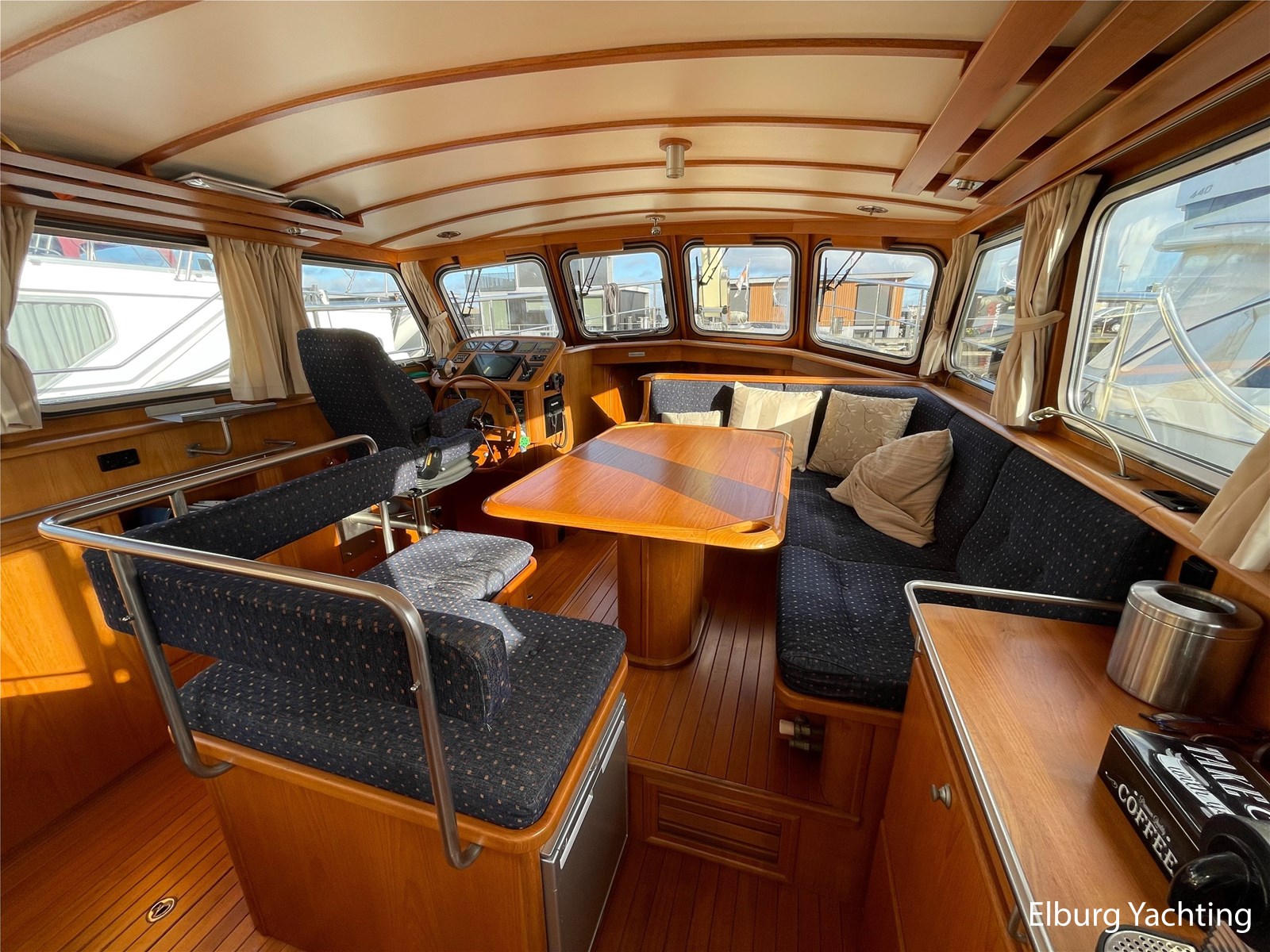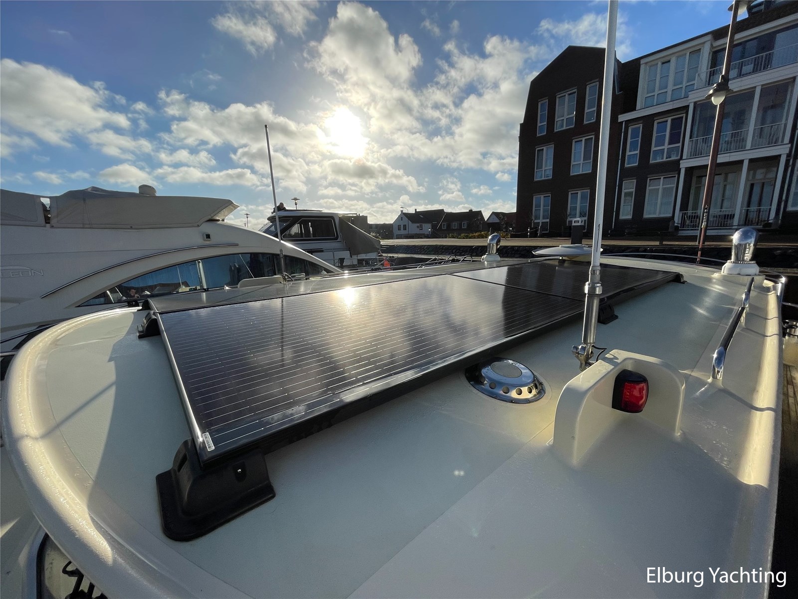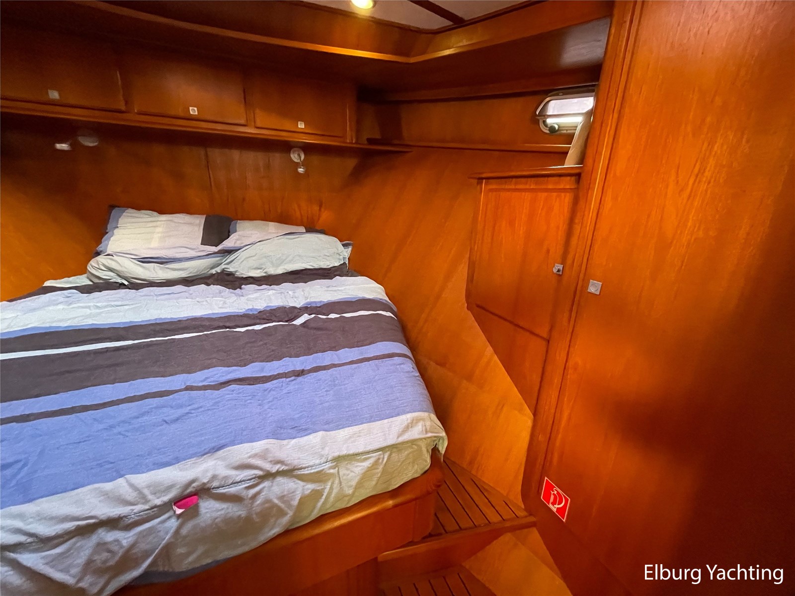 Beautiful, robustly built Kuster A42 designed by Mr W. Nieland and subsequently built by Consonant Yachts in 2005, launched in 2006. This Kuster A42 was in 2007 named "Boat of the year 2007". This yacht is equipped with a robust double stainless steel sea railing which is situated at a comfortable height and ensures a safe feeling on deck. The deck is teak all around, both in the gangways and in the spacious cockpit. The cockpit is also fitted with a hydraulically lowerable stern door, also with Teak panelling. The transom door makes it easy to move bicycles or other items to and from the boat and also serves as a bathing platform. The cockpit can be darkened during the warmer summer days by means of the recent bimini (2023). The cabin deck has a lowerable mast and solar panels installed and a jabsco 60020 remote control floodlight. From the spacious open cockpit, move comfortably to the ground-level fixed wheelhouse via the sliding door. Once you enter the fixed wheelhouse, you immediately notice the amount of natural light guaranteed by the large Gebo double-glazed aluminium window frames. The panelling on board is solid teak and the cushions are upholstered in blue. On the port side against the facade is the galley which is equipped with an Isoterm fridge, 4-burner induction hob and an AEG combi microwave/oven, The Kuster is also equipped with a Candy washing machine on board. Forward is the comfortable steering position which has Raymarine equipment, hydraulic steering, hydraulically proportional bow and stern thrusters and the gauges. To starboard is a raised dinette. Throughout the entire fixed wheelhouse, good thought has been given to sea-going through the many handrails and railings, in addition to the Kabola central heating, the fixed wheelhouse is also fitted with underfloor heating. Via the comfortable stairs you can easily move to the corridor where the guest cabin is located, which is separated from the corridor by its own lockable sliding door. The owner's cabin is located at the front of the yacht and has plenty of storage space, headroom and a double French bed. The wet room is located on the port side, diagonally opposite the guest cabin and can be accessed via the corridor as the owner's cabin. The wet room has a shower stall, a sink, an electric toilet and storage space. There have been no cutbacks on the maintenance of the Kuster A42 in recent years, for example, in 2021 the yacht was professionally taken care of outside and completely painted. In 2022, new service batteries and four new solar panels were installed, in 2021 a Raymarine Axiom navigation system was installed, the upholstery was completely tackled in 2018 as well as a Neptune mattress for the owner's cabin, curtains and cushions were renewed in 2022, in 2020 a new propeller was installed underneath, in 2020 the entire underwater hull was stripped bare and rebuilt with a 10-year warranty (subject to inspection every 2 years), in 2022 a new 4-person life raft was installed, the greywater pumps were recently renewed, the navigation lighting were renewed in 2021, the engine room was soundproofed in 2021 and in 2024 the yacht is equipped with new cable fender. For questions and/or to make an appointment, you are welcome 7 days a week at Elburg Yachting.