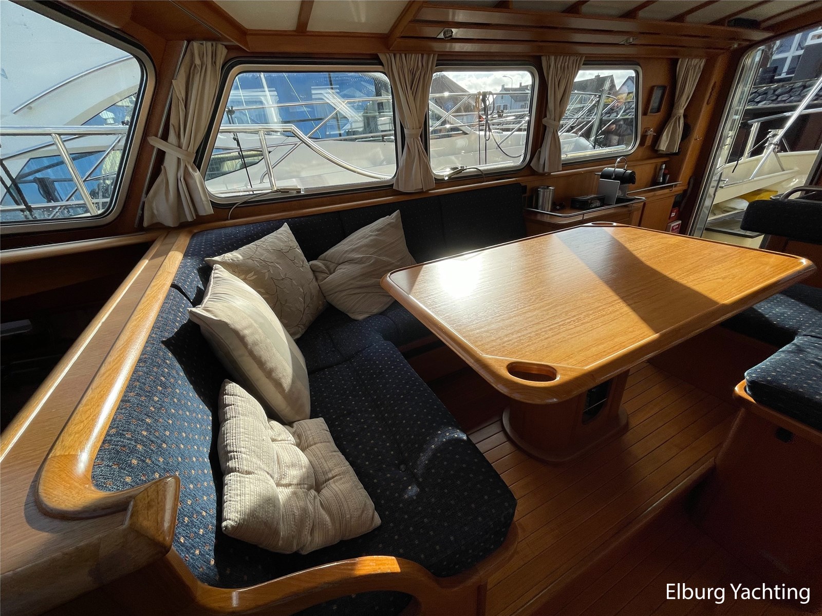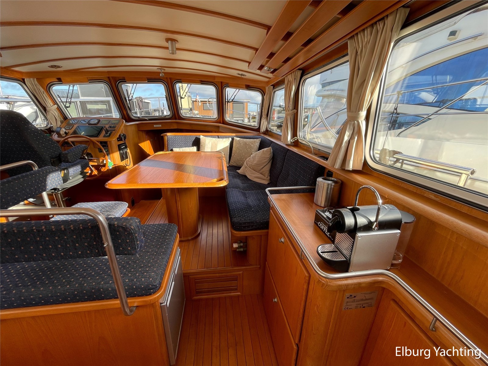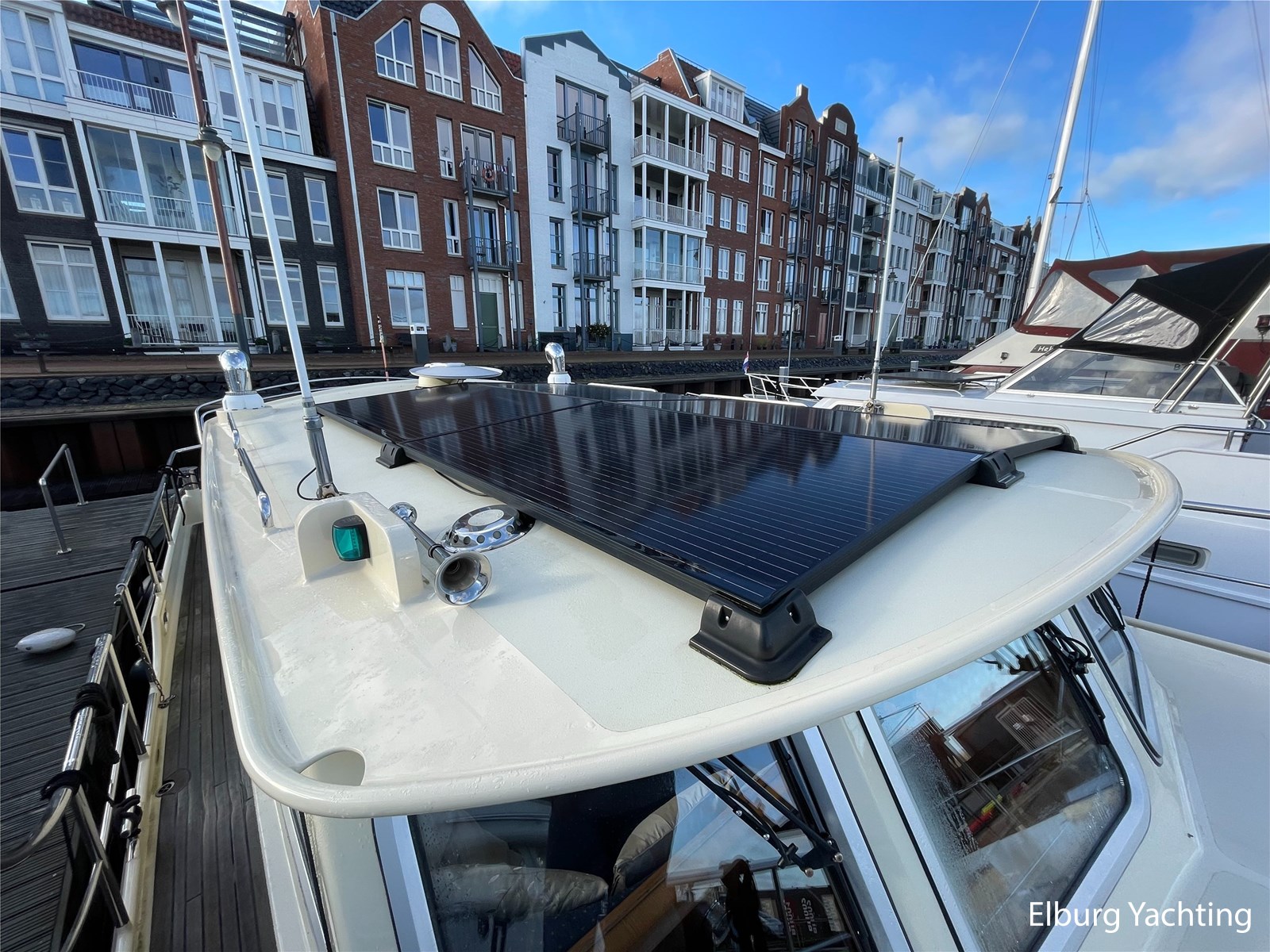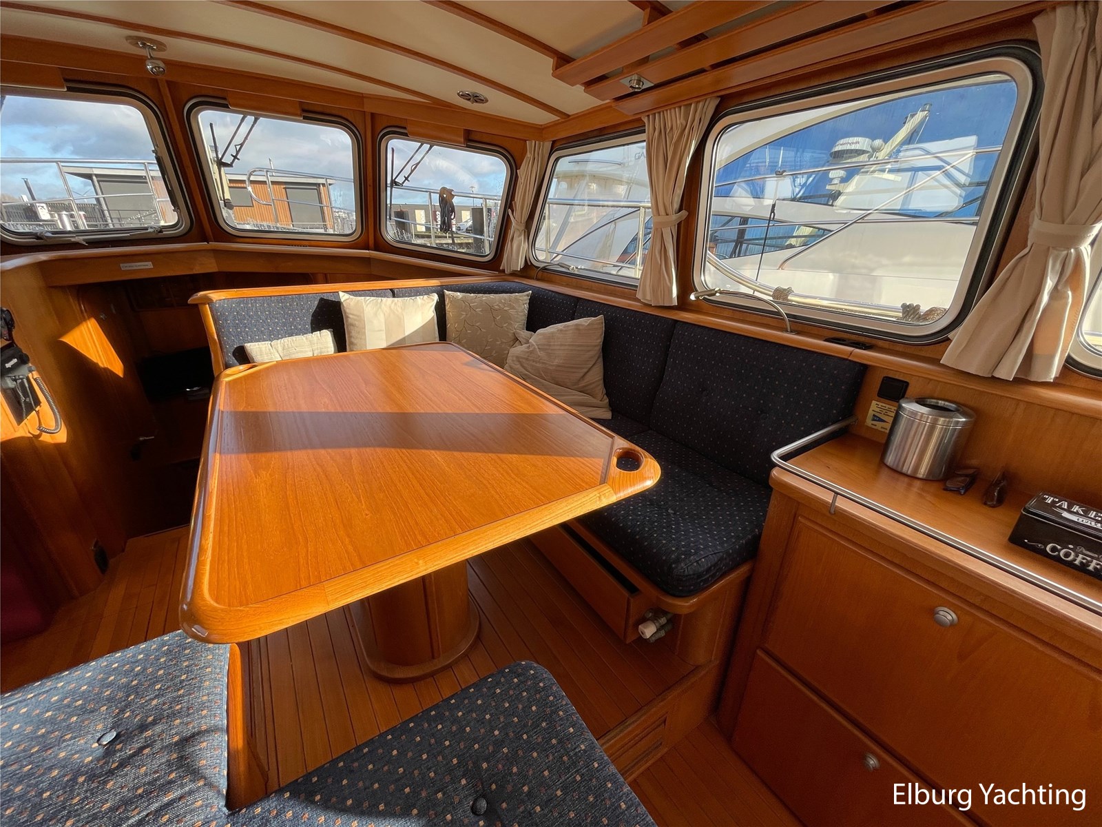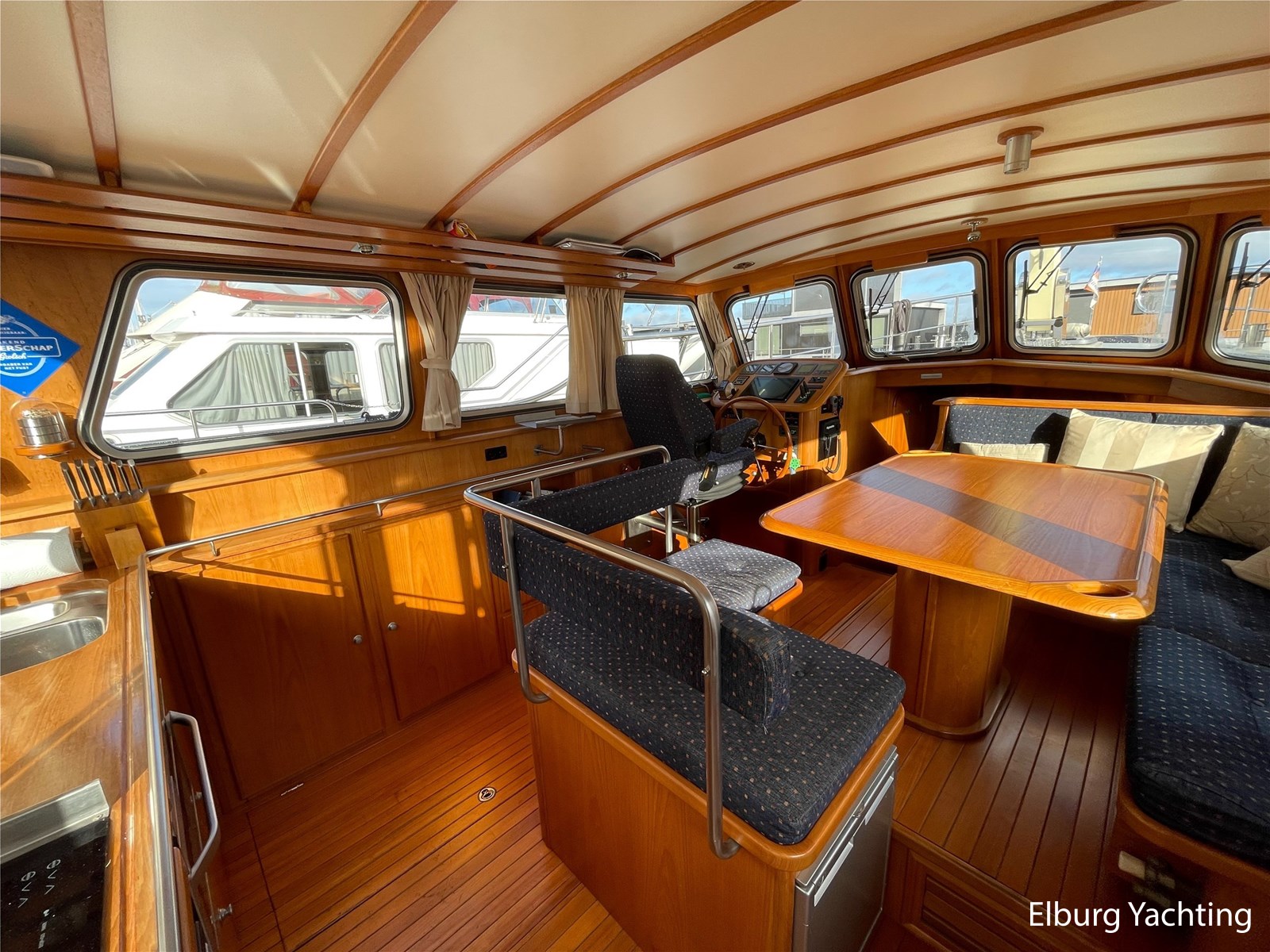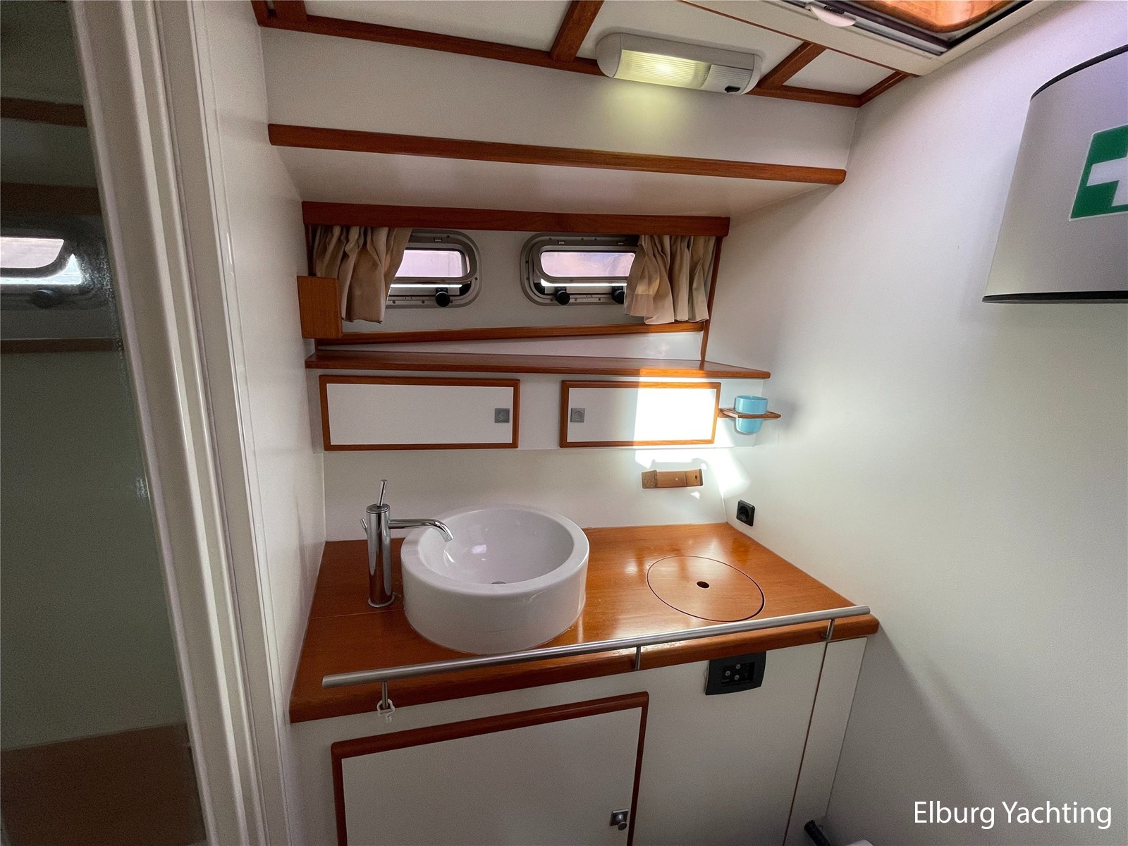 Beautiful, robustly built Kuster A42 designed by Mr W. Nieland and subsequently built by Consonant Yachts in 2005, launched in 2006. This Kuster A42 was in 2007 named "Boat of the year 2007". This yacht is equipped with a robust double stainless steel sea railing which is situated at a comfortable height and ensures a safe feeling on deck. The deck is teak all around, both in the gangways and in the spacious cockpit. The cockpit is also fitted with a hydraulically lowerable stern door, also with Teak panelling. The transom door makes it easy to move bicycles or other items to and from the boat and also serves as a bathing platform. The cockpit can be darkened during the warmer summer days by means of the recent bimini (2023). The cabin deck has a lowerable mast and solar panels installed and a jabsco 60020 remote control floodlight. From the spacious open cockpit, move comfortably to the ground-level fixed wheelhouse via the sliding door. Once you enter the fixed wheelhouse, you immediately notice the amount of natural light guaranteed by the large Gebo double-glazed aluminium window frames. The panelling on board is solid teak and the cushions are upholstered in blue. On the port side against the facade is the galley which is equipped with an Isoterm fridge, 4-burner induction hob and an AEG combi microwave/oven, The Kuster is also equipped with a Candy washing machine on board. Forward is the comfortable steering position which has Raymarine equipment, hydraulic steering, hydraulically proportional bow and stern thrusters and the gauges. To starboard is a raised dinette. Throughout the entire fixed wheelhouse, good thought has been given to sea-going through the many handrails and railings, in addition to the Kabola central heating, the fixed wheelhouse is also fitted with underfloor heating. Via the comfortable stairs you can easily move to the corridor where the guest cabin is located, which is separated from the corridor by its own lockable sliding door. The owner's cabin is located at the front of the yacht and has plenty of storage space, headroom and a double French bed. The wet room is located on the port side, diagonally opposite the guest cabin and can be accessed via the corridor as the owner's cabin. The wet room has a shower stall, a sink, an electric toilet and storage space. There have been no cutbacks on the maintenance of the Kuster A42 in recent years, for example, in 2021 the yacht was professionally taken care of outside and completely painted. In 2022, new service batteries and four new solar panels were installed, in 2021 a Raymarine Axiom navigation system was installed, the upholstery was completely tackled in 2018 as well as a Neptune mattress for the owner's cabin, curtains and cushions were renewed in 2022, in 2020 a new propeller was installed underneath, in 2020 the entire underwater hull was stripped bare and rebuilt with a 10-year warranty (subject to inspection every 2 years), in 2022 a new 4-person life raft was installed, the greywater pumps were recently renewed, the navigation lighting were renewed in 2021, the engine room was soundproofed in 2021 and in 2024 the yacht is equipped with new cable fender. For questions and/or to make an appointment, you are welcome 7 days a week at Elburg Yachting.