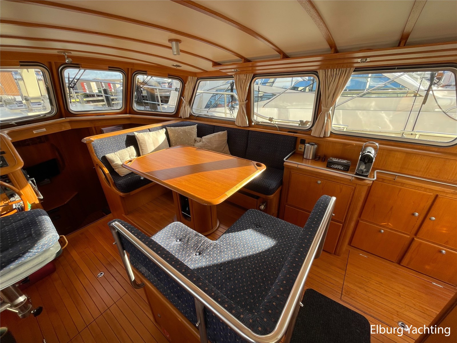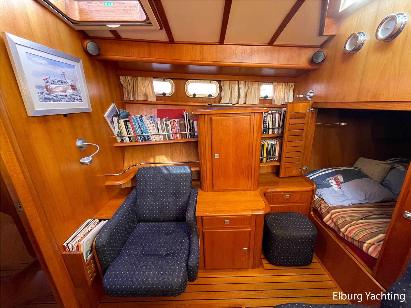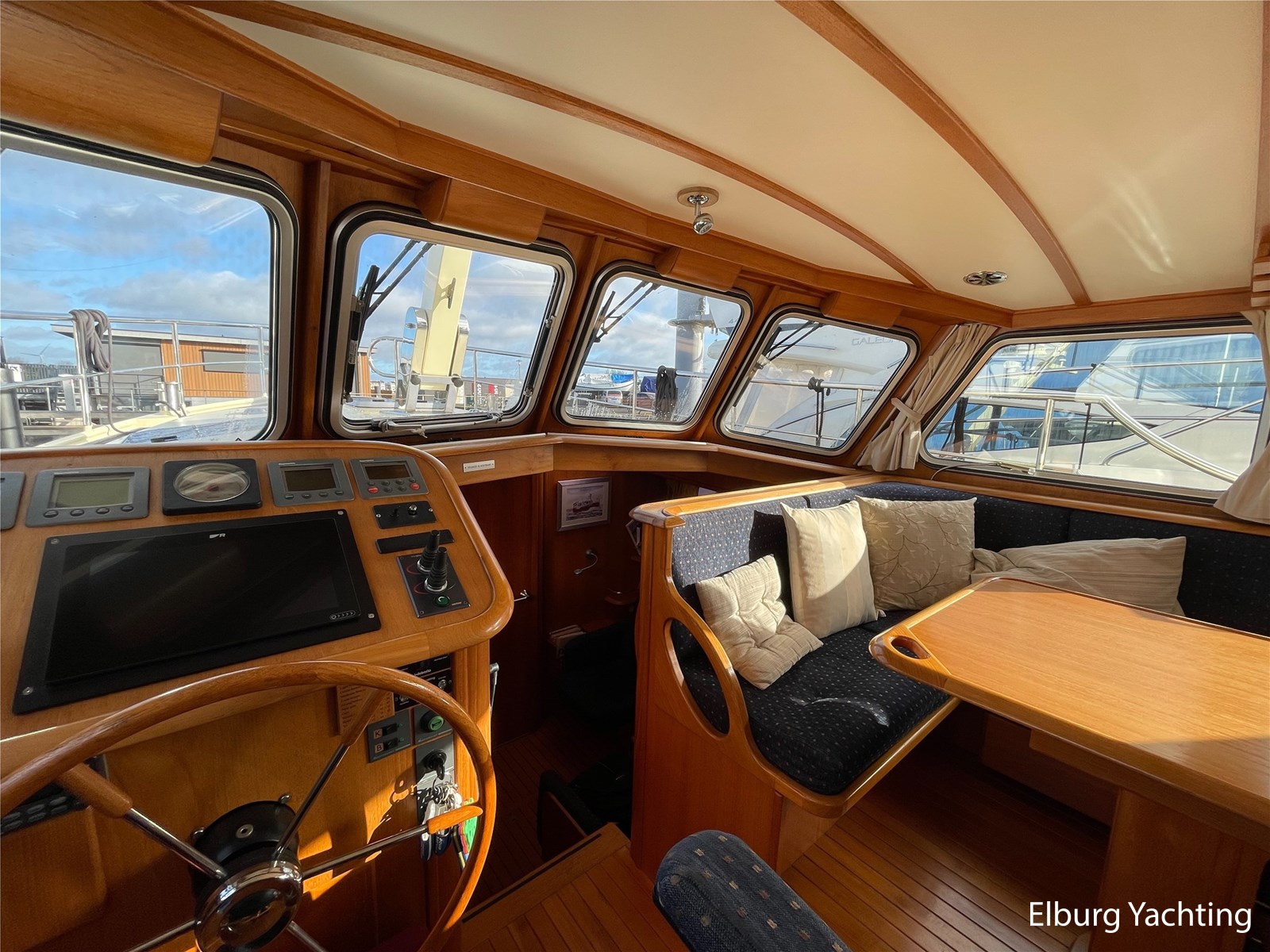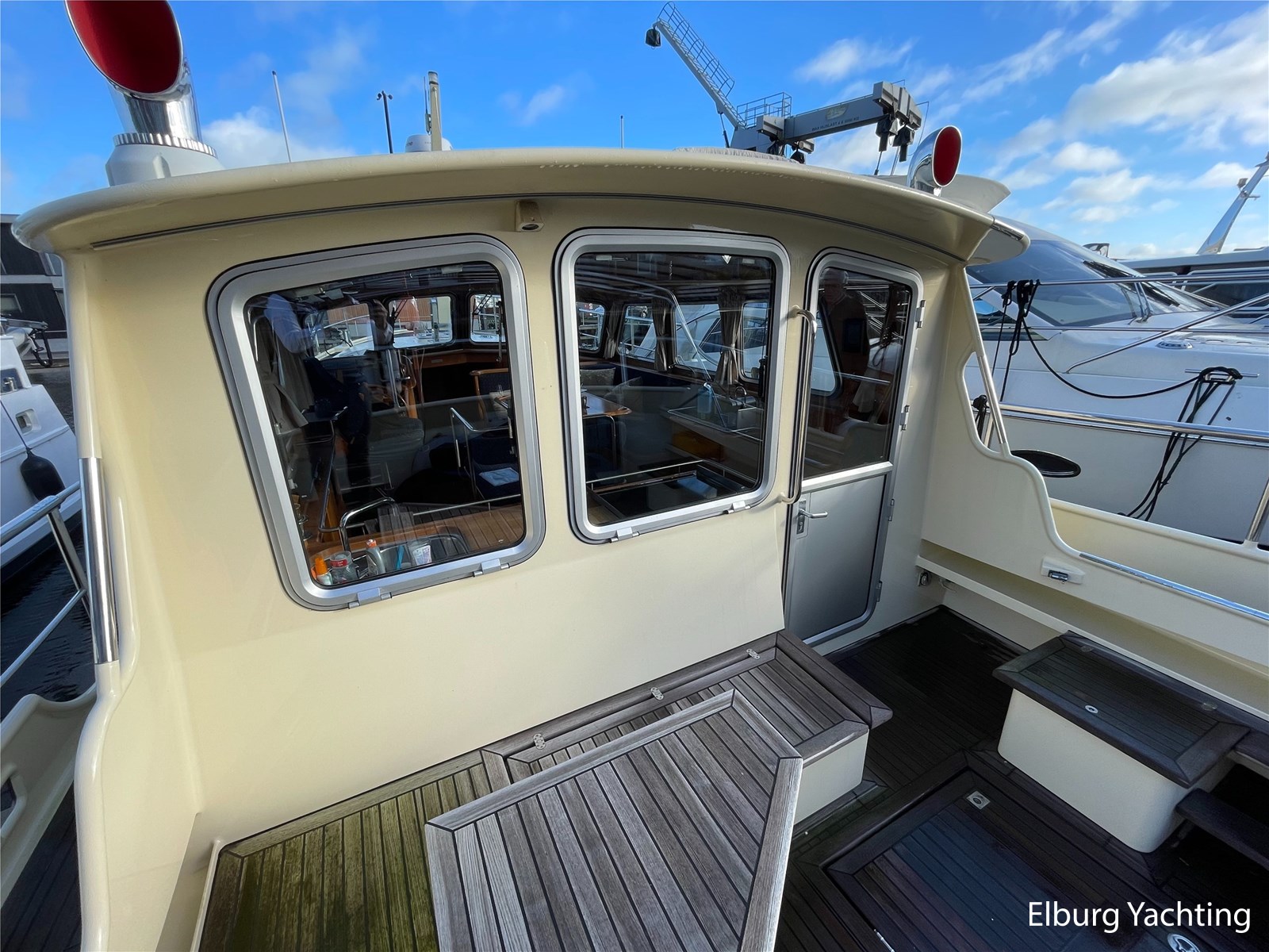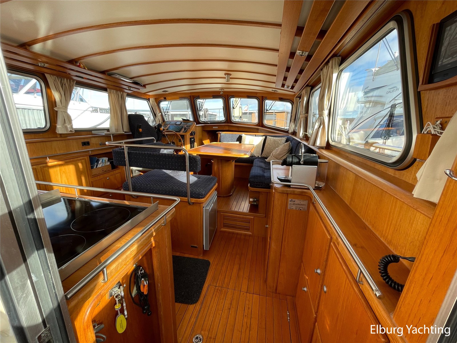 Beautiful, robustly built Kuster A42 designed by Mr W. Nieland and subsequently built by Consonant Yachts in 2005, launched in 2006. This Kuster A42 was in 2007 named "Boat of the year 2007". This yacht is equipped with a robust double stainless steel sea railing which is situated at a comfortable height and ensures a safe feeling on deck. The deck is teak all around, both in the gangways and in the spacious cockpit. The cockpit is also fitted with a hydraulically lowerable stern door, also with Teak panelling. The transom door makes it easy to move bicycles or other items to and from the boat and also serves as a bathing platform. The cockpit can be darkened during the warmer summer days by means of the recent bimini (2023). The cabin deck has a lowerable mast and solar panels installed and a jabsco 60020 remote control floodlight. From the spacious open cockpit, move comfortably to the ground-level fixed wheelhouse via the sliding door. Once you enter the fixed wheelhouse, you immediately notice the amount of natural light guaranteed by the large Gebo double-glazed aluminium window frames. The panelling on board is solid teak and the cushions are upholstered in blue. On the port side against the facade is the galley which is equipped with an Isoterm fridge, 4-burner induction hob and an AEG combi microwave/oven, The Kuster is also equipped with a Candy washing machine on board. Forward is the comfortable steering position which has Raymarine equipment, hydraulic steering, hydraulically proportional bow and stern thrusters and the gauges. To starboard is a raised dinette. Throughout the entire fixed wheelhouse, good thought has been given to sea-going through the many handrails and railings, in addition to the Kabola central heating, the fixed wheelhouse is also fitted with underfloor heating. Via the comfortable stairs you can easily move to the corridor where the guest cabin is located, which is separated from the corridor by its own lockable sliding door. The owner's cabin is located at the front of the yacht and has plenty of storage space, headroom and a double French bed. The wet room is located on the port side, diagonally opposite the guest cabin and can be accessed via the corridor as the owner's cabin. The wet room has a shower stall, a sink, an electric toilet and storage space. There have been no cutbacks on the maintenance of the Kuster A42 in recent years, for example, in 2021 the yacht was professionally taken care of outside and completely painted. In 2022, new service batteries and four new solar panels were installed, in 2021 a Raymarine Axiom navigation system was installed, the upholstery was completely tackled in 2018 as well as a Neptune mattress for the owner's cabin, curtains and cushions were renewed in 2022, in 2020 a new propeller was installed underneath, in 2020 the entire underwater hull was stripped bare and rebuilt with a 10-year warranty (subject to inspection every 2 years), in 2022 a new 4-person life raft was installed, the greywater pumps were recently renewed, the navigation lighting were renewed in 2021, the engine room was soundproofed in 2021 and in 2024 the yacht is equipped with new cable fender. For questions and/or to make an appointment, you are welcome 7 days a week at Elburg Yachting.
