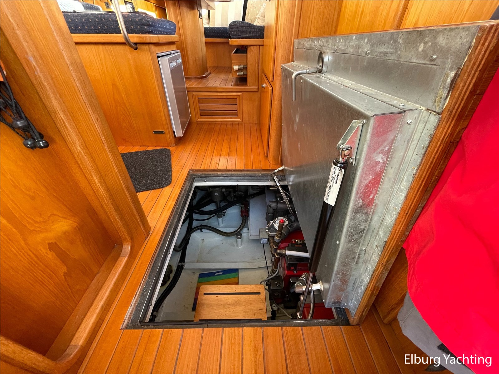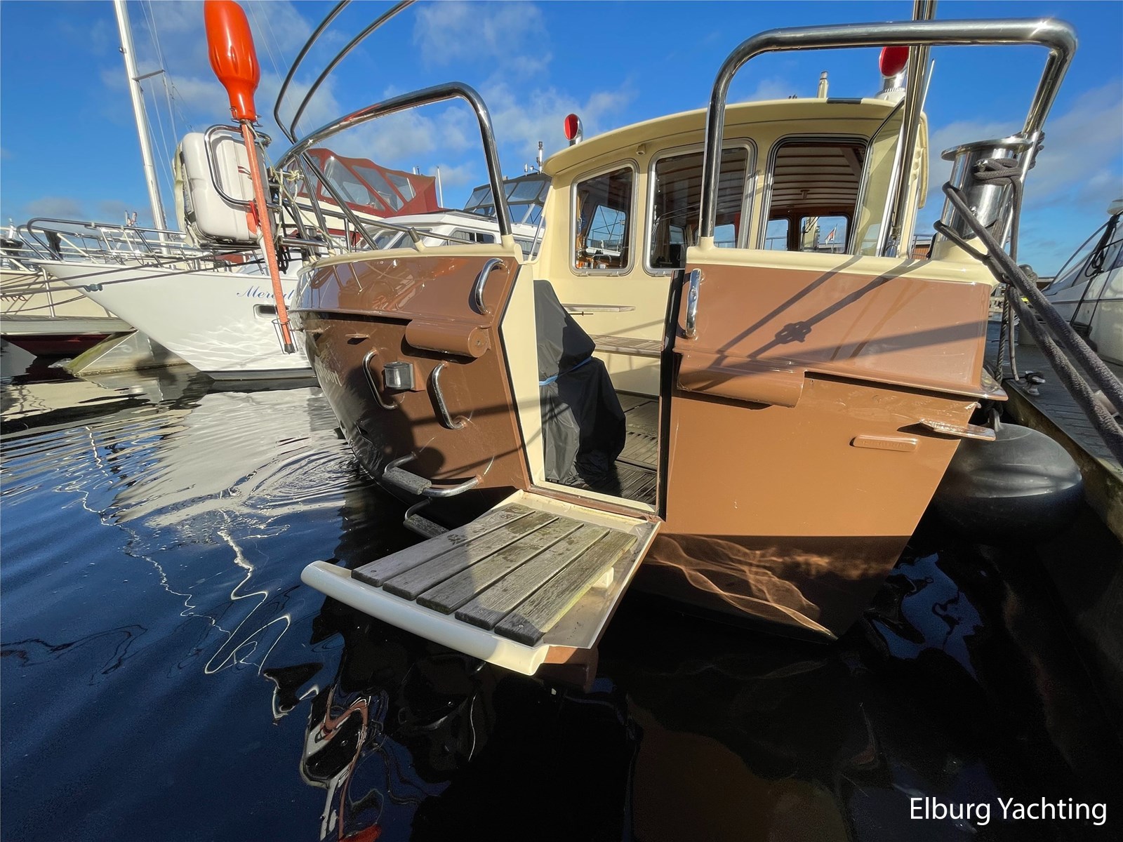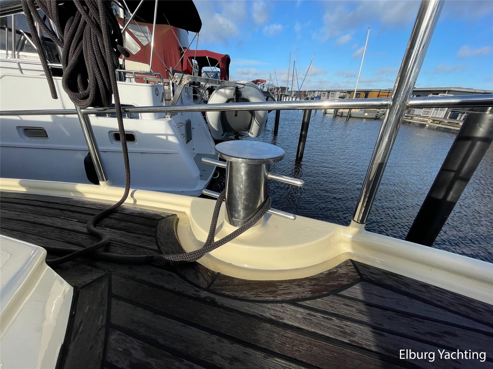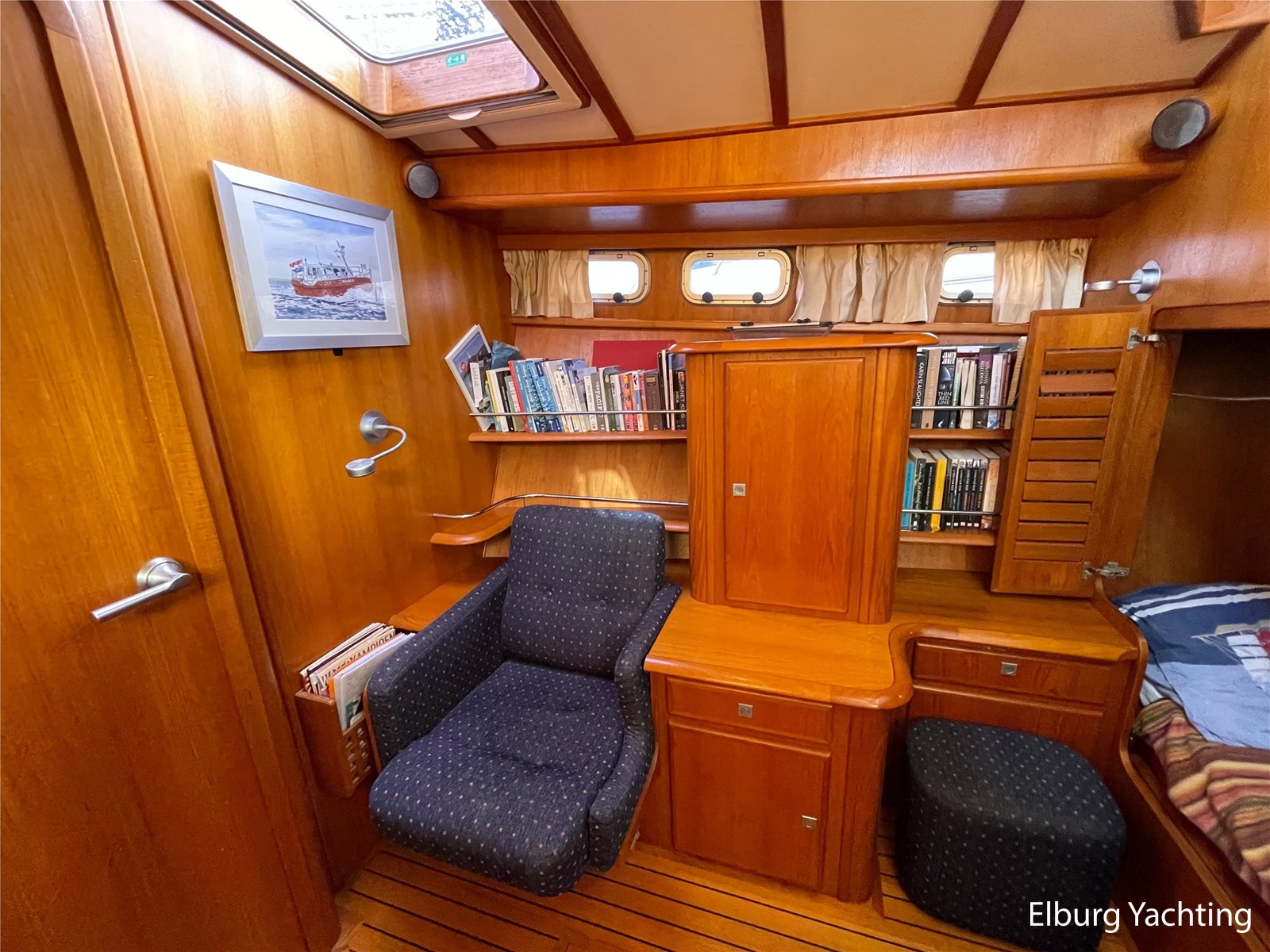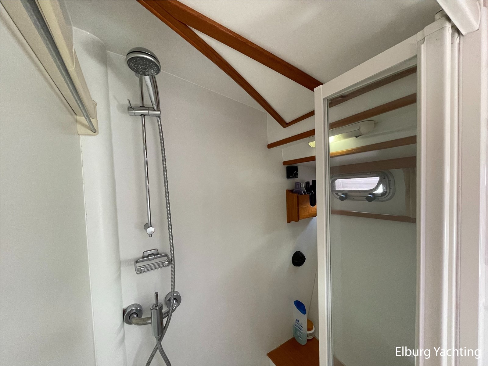 Beautiful, robustly built Kuster A42 designed by Mr W. Nieland and subsequently built by Consonant Yachts in 2005, launched in 2006. This Kuster A42 was in 2007 named "Boat of the year 2007". This yacht is equipped with a robust double stainless steel sea railing which is situated at a comfortable height and ensures a safe feeling on deck. The deck is teak all around, both in the gangways and in the spacious cockpit. The cockpit is also fitted with a hydraulically lowerable stern door, also with Teak panelling. The transom door makes it easy to move bicycles or other items to and from the boat and also serves as a bathing platform. The cockpit can be darkened during the warmer summer days by means of the recent bimini (2023). The cabin deck has a lowerable mast and solar panels installed and a jabsco 60020 remote control floodlight. From the spacious open cockpit, move comfortably to the ground-level fixed wheelhouse via the sliding door. Once you enter the fixed wheelhouse, you immediately notice the amount of natural light guaranteed by the large Gebo double-glazed aluminium window frames. The panelling on board is solid teak and the cushions are upholstered in blue. On the port side against the facade is the galley which is equipped with an Isoterm fridge, 4-burner induction hob and an AEG combi microwave/oven, The Kuster is also equipped with a Candy washing machine on board. Forward is the comfortable steering position which has Raymarine equipment, hydraulic steering, hydraulically proportional bow and stern thrusters and the gauges. To starboard is a raised dinette. Throughout the entire fixed wheelhouse, good thought has been given to sea-going through the many handrails and railings, in addition to the Kabola central heating, the fixed wheelhouse is also fitted with underfloor heating. Via the comfortable stairs you can easily move to the corridor where the guest cabin is located, which is separated from the corridor by its own lockable sliding door. The owner's cabin is located at the front of the yacht and has plenty of storage space, headroom and a double French bed. The wet room is located on the port side, diagonally opposite the guest cabin and can be accessed via the corridor as the owner's cabin. The wet room has a shower stall, a sink, an electric toilet and storage space. There have been no cutbacks on the maintenance of the Kuster A42 in recent years, for example, in 2021 the yacht was professionally taken care of outside and completely painted. In 2022, new service batteries and four new solar panels were installed, in 2021 a Raymarine Axiom navigation system was installed, the upholstery was completely tackled in 2018 as well as a Neptune mattress for the owner's cabin, curtains and cushions were renewed in 2022, in 2020 a new propeller was installed underneath, in 2020 the entire underwater hull was stripped bare and rebuilt with a 10-year warranty (subject to inspection every 2 years), in 2022 a new 4-person life raft was installed, the greywater pumps were recently renewed, the navigation lighting were renewed in 2021, the engine room was soundproofed in 2021 and in 2024 the yacht is equipped with new cable fender. For questions and/or to make an appointment, you are welcome 7 days a week at Elburg Yachting.