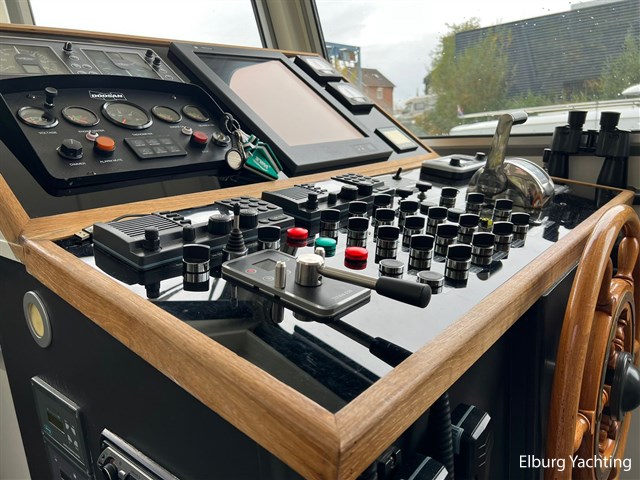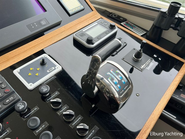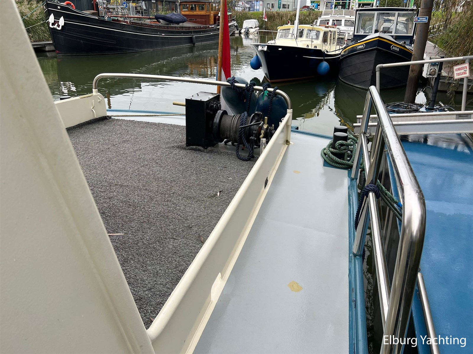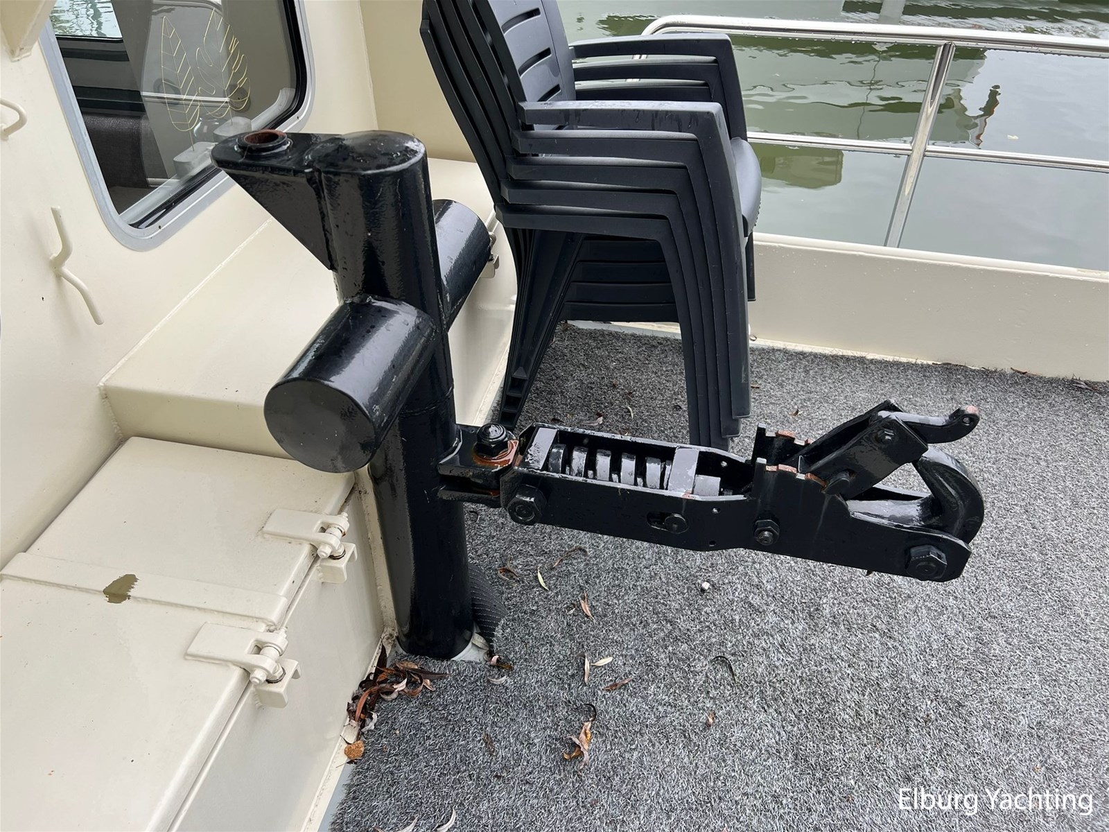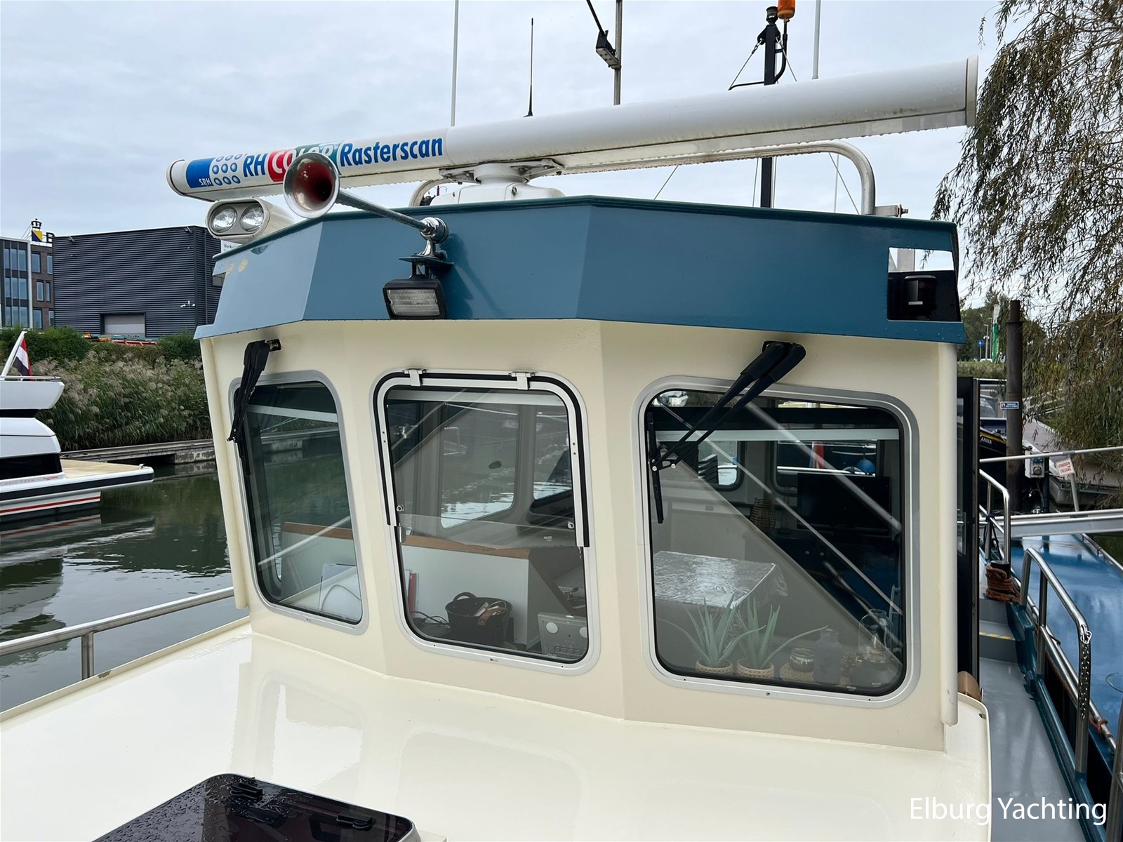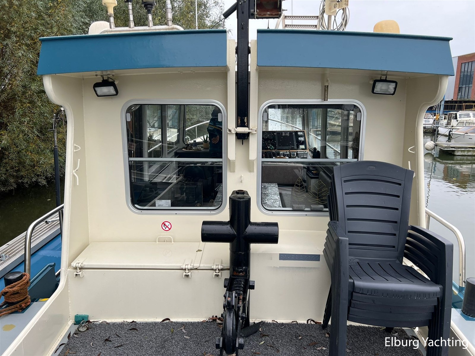 Professional push/tow boat with the finishing of a yacht. The vessel is CVO approved and has a Europa number. The central saloon/steering area is accessible via a SB side door, the dinette offers seating for 6 persons, the steering bench is electrically adjustable in height and the backrest can be folded down so that it can be included with the dinette table, professionally equipped steering position, follow-up steering, tanks with manholes, various windows and portholes can be opened for extra ventilation, double stainless steel railing all around, enclosed engine room, deck wash pump, rubber bumper all around.