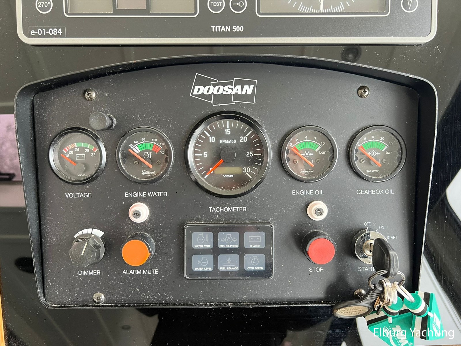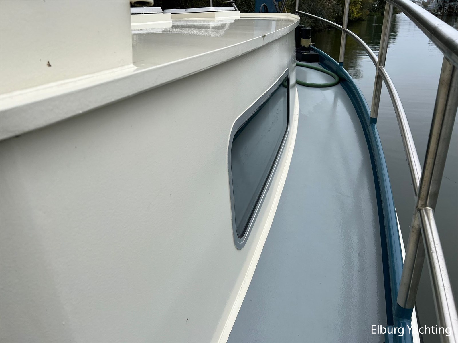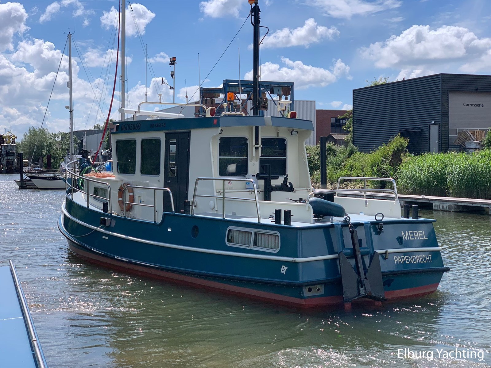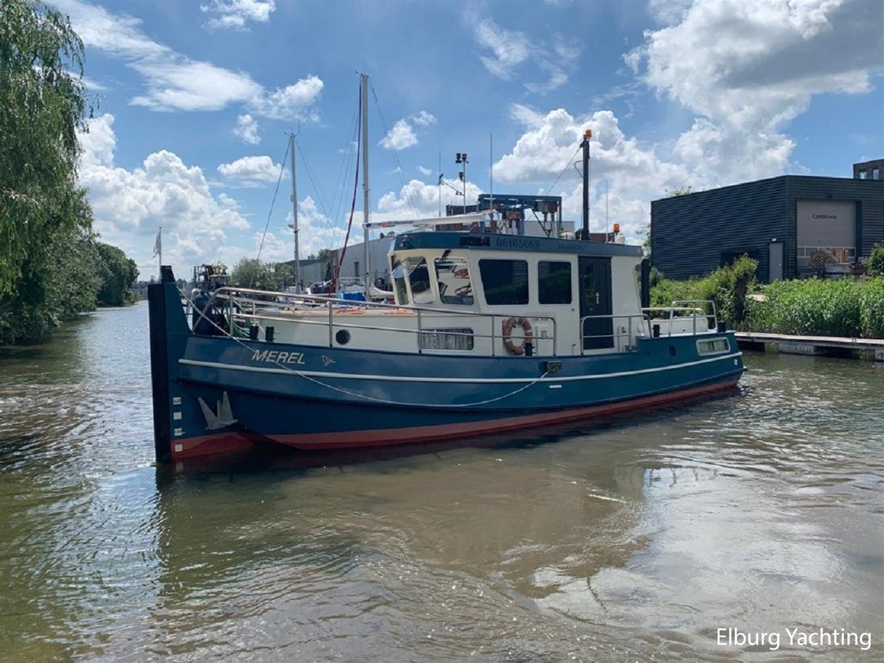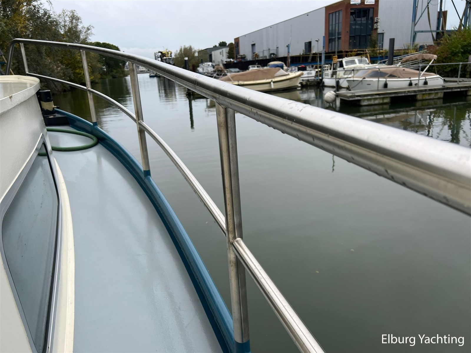 Professional push/tow boat with the finishing of a yacht. The vessel is CVO approved and has a Europa number. The central saloon/steering area is accessible via a SB side door, the dinette offers seating for 6 persons, the steering bench is electrically adjustable in height and the backrest can be folded down so that it can be included with the dinette table, professionally equipped steering position, follow-up steering, tanks with manholes, various windows and portholes can be opened for extra ventilation, double stainless steel railing all around, enclosed engine room, deck wash pump, rubber bumper all around.