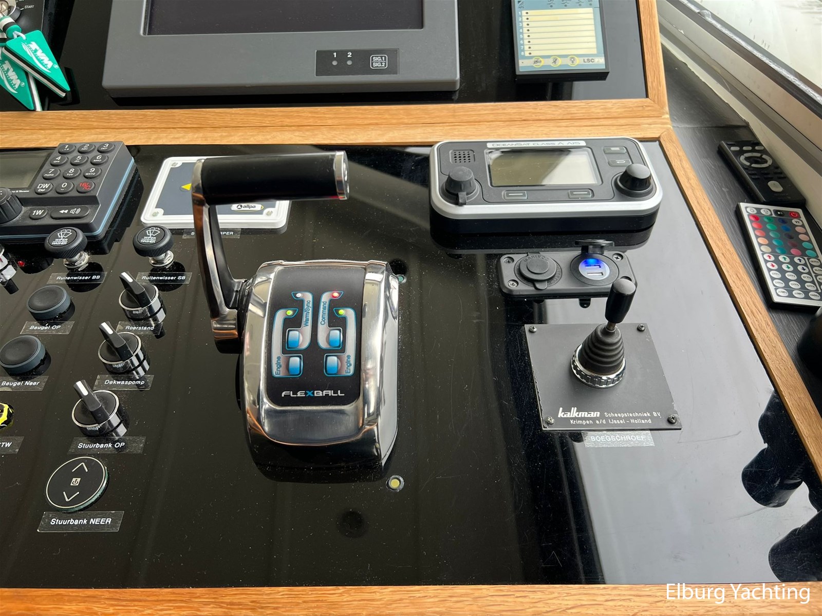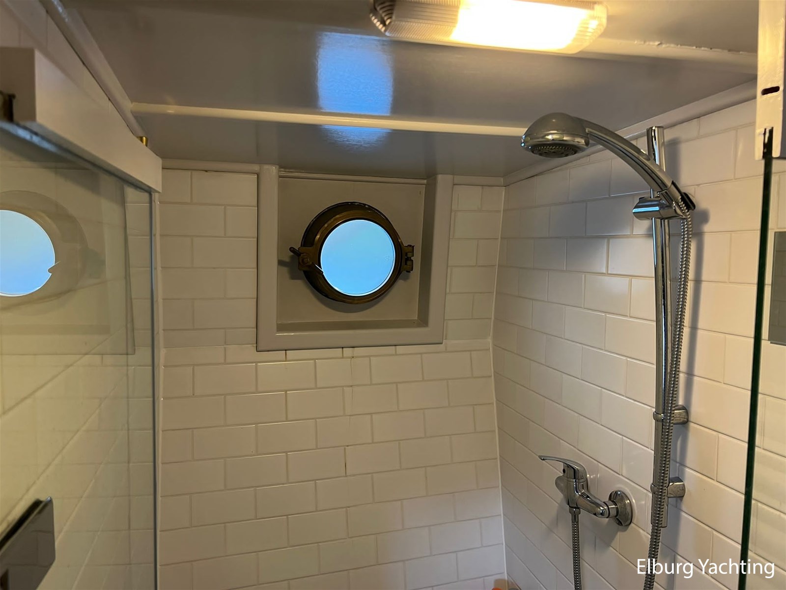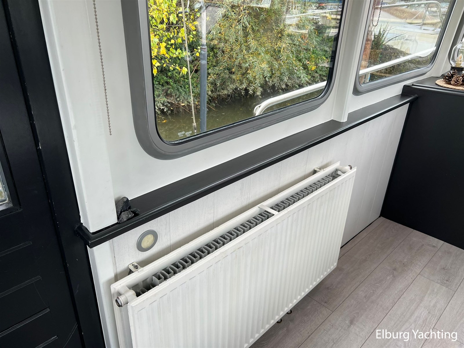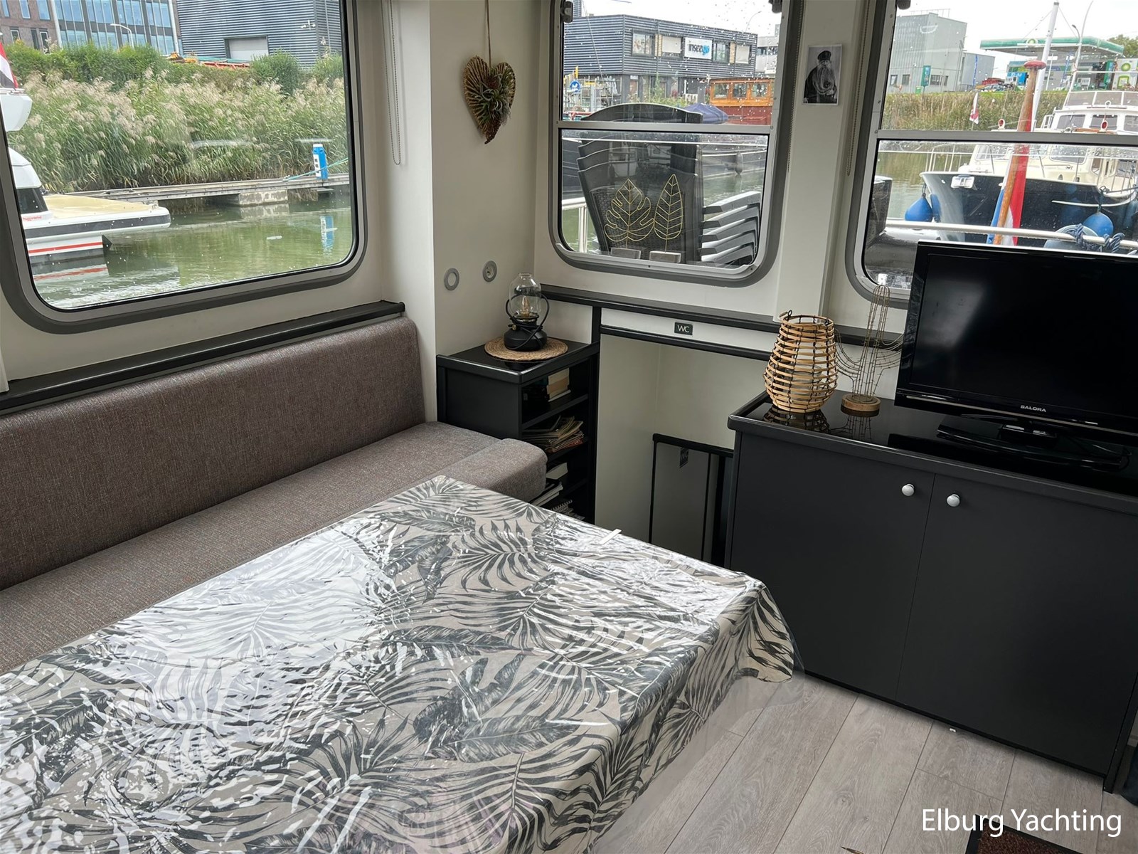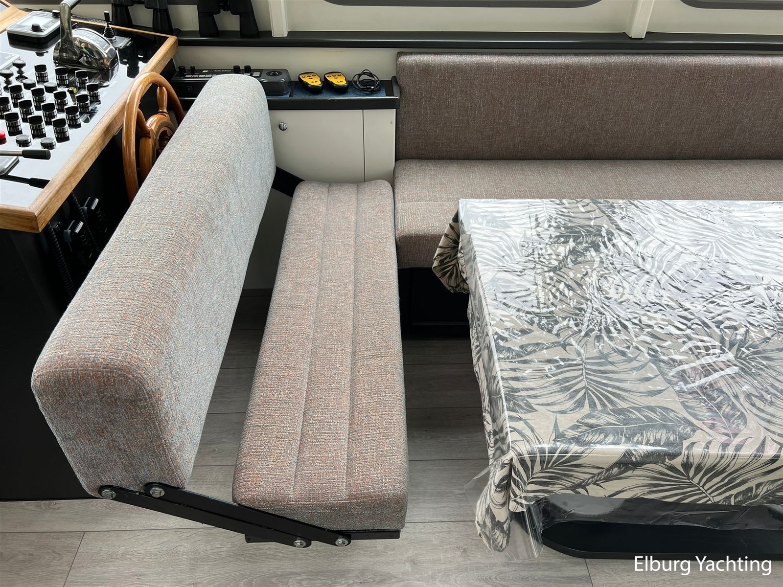 Professional push/tow boat with the finishing of a yacht. The vessel is CVO approved and has a Europa number. The central saloon/steering area is accessible via a SB side door, the dinette offers seating for 6 persons, the steering bench is electrically adjustable in height and the backrest can be folded down so that it can be included with the dinette table, professionally equipped steering position, follow-up steering, tanks with manholes, various windows and portholes can be opened for extra ventilation, double stainless steel railing all around, enclosed engine room, deck wash pump, rubber bumper all around.
