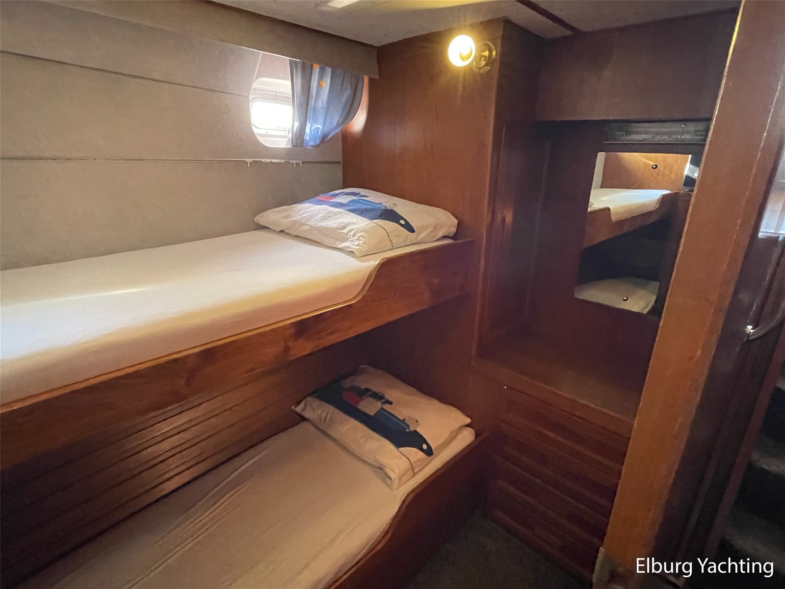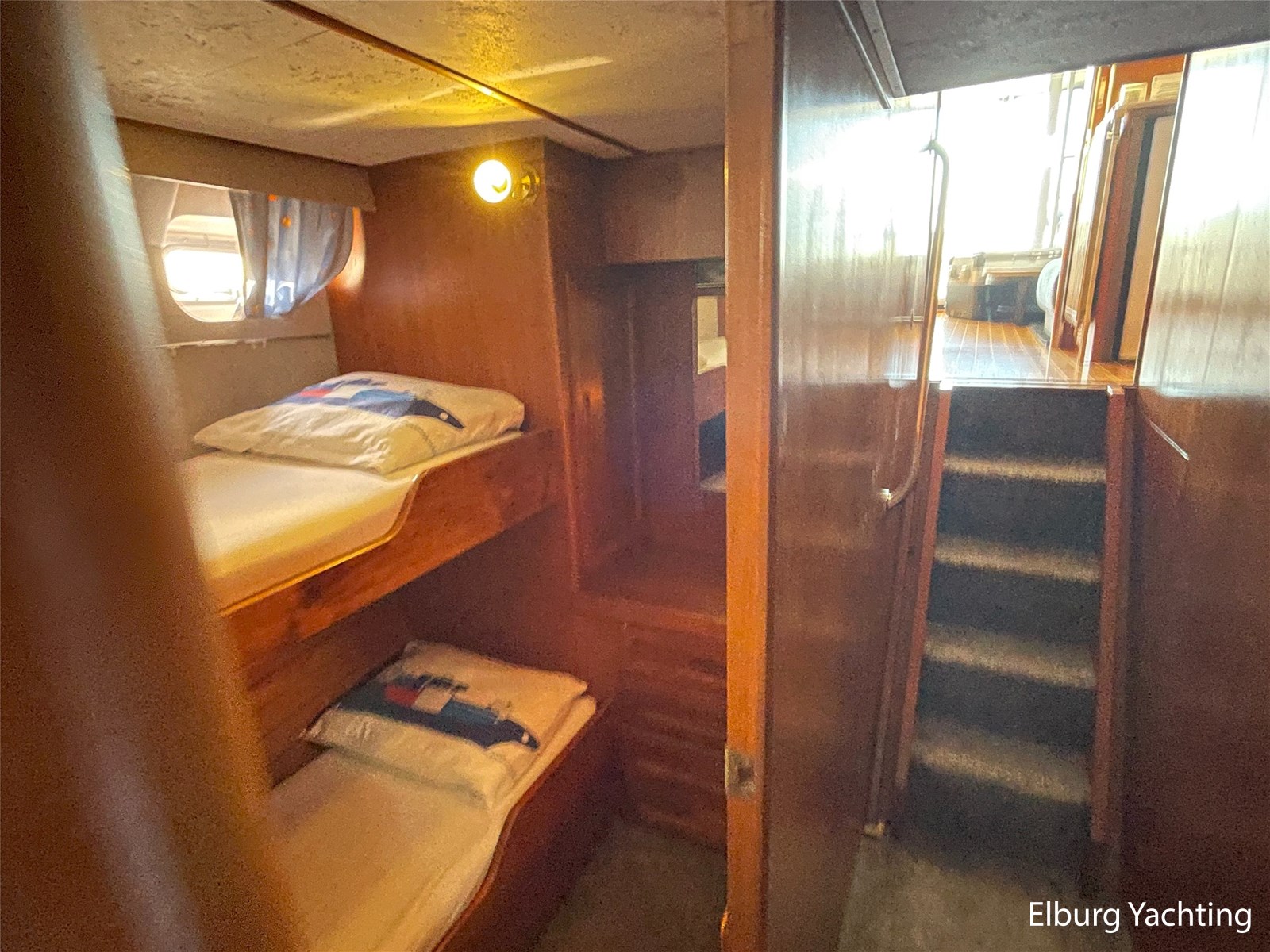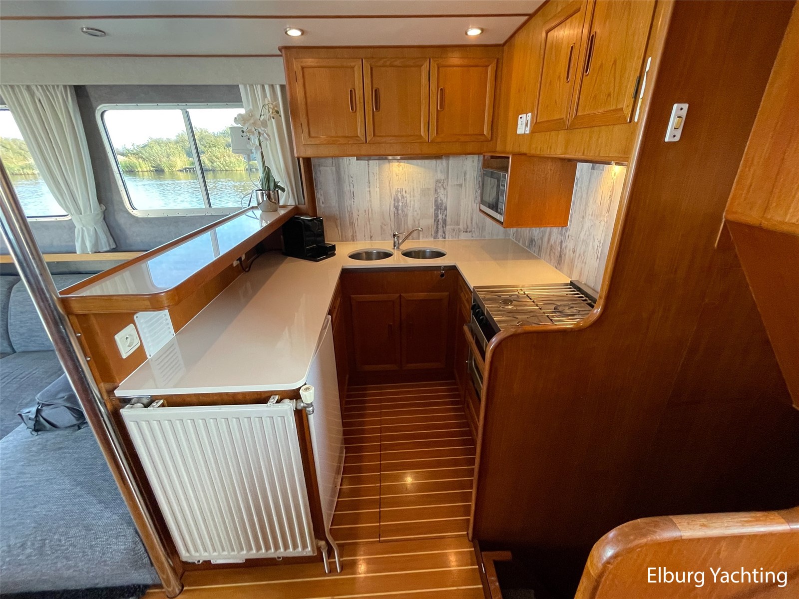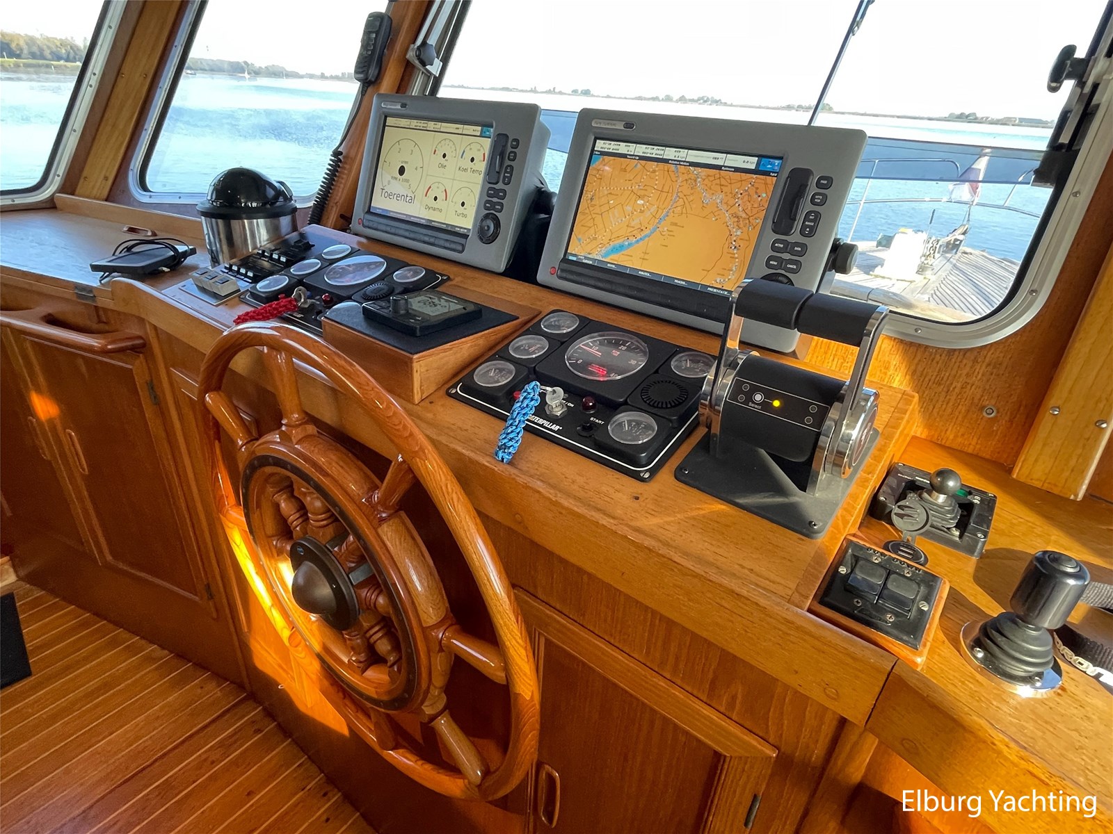 Beautiful seaworthy polyester trawler with round bilge hull and Vosper fin stabilisers. The hull is built by the well-known Halmatic Ltd yard from UK, Portuguese bridge, Kabola central heating, 2 x Raymarine CW120 screens, very spacious flybridge, stainless steel crane on flybridge, 2 x side door in wheelhouse, stainless steel railing, stainless steel fender holders, door in bulwark afterdeck, sundeck, tearplates in engine room, steering chair + co-skimming bench in wheelhouse, max speed appr. 18 knots, Raymarine ST60+ wind meter, storage lockers on afterdeck, escape/ventilation hatches, glass prisms in deck for natural light in ship, trim tabs, top shelf in kitchen of artificial granite, wooden pot lid, CV convector in engine room, camera system via Raymarine CW120 screens, pendulum window, 2 x side door in polyester bulwark, aluminium sliding door, storage space under afterdeck. For questions and/or to make an appointment, you are welcome 7 days a week at Elburg Yachting.
