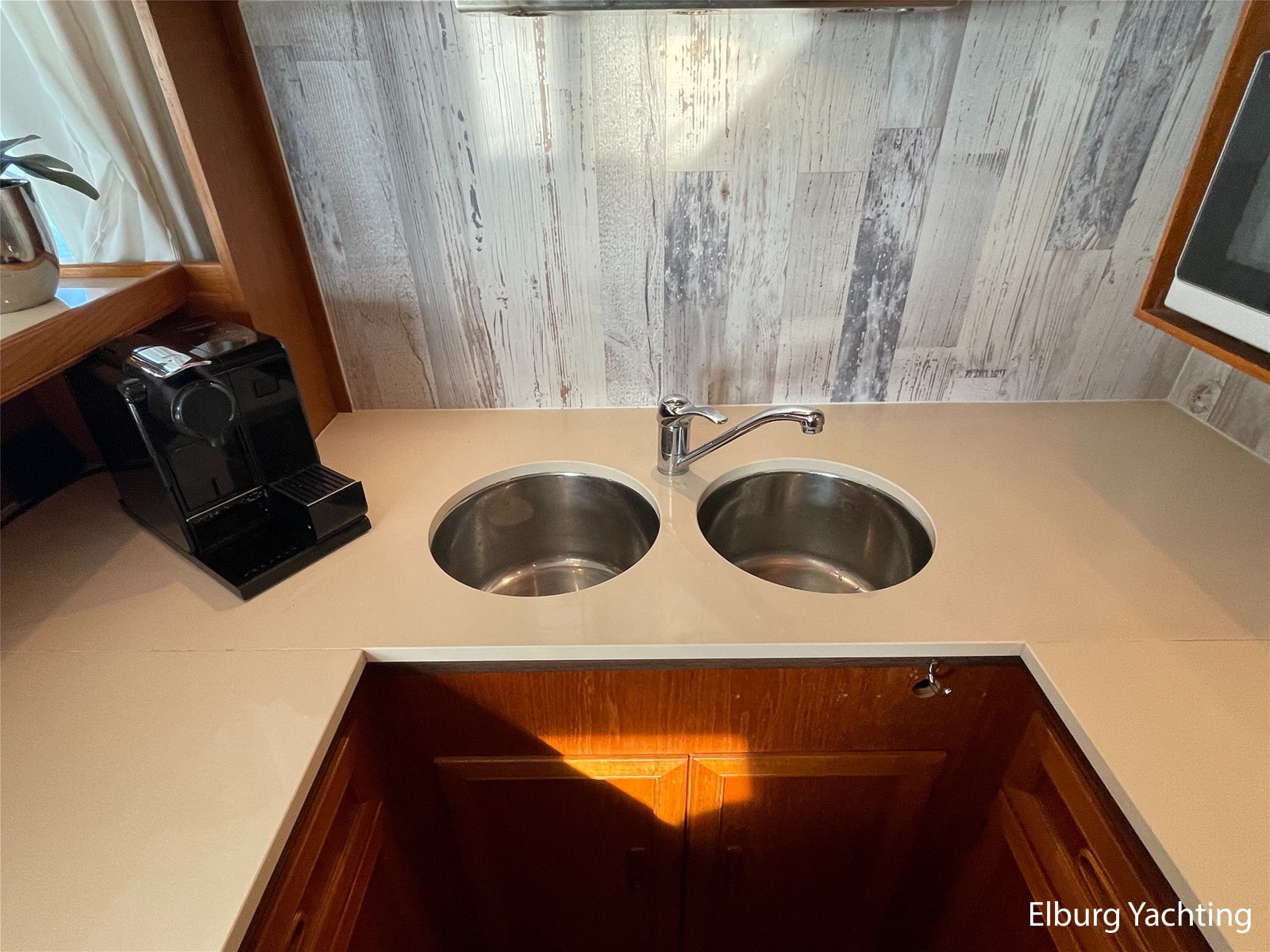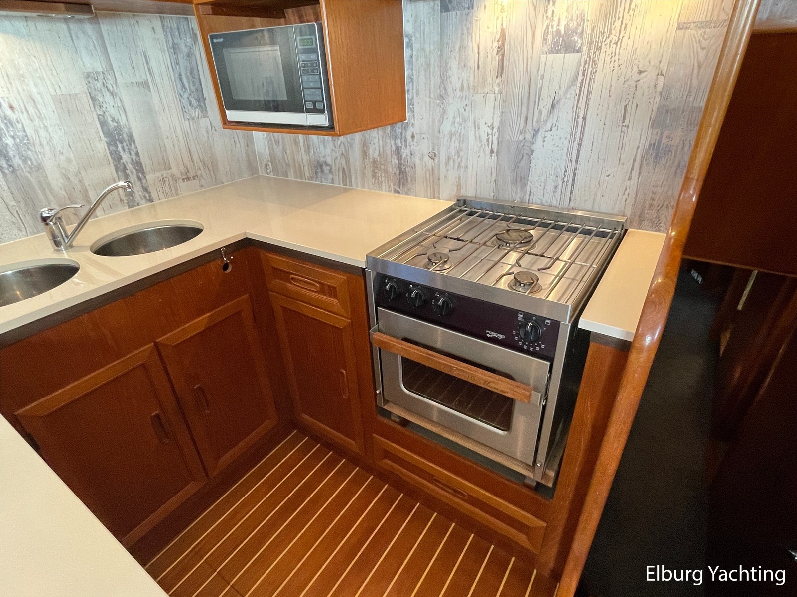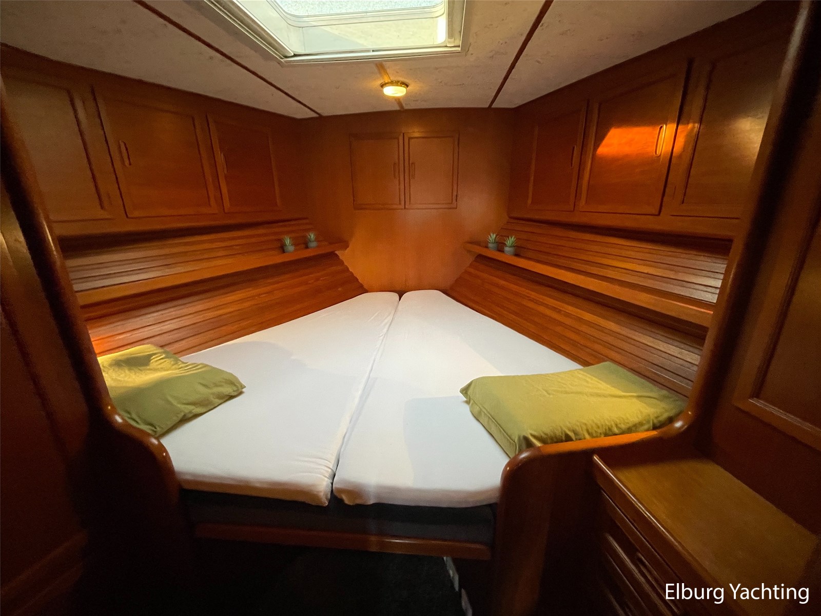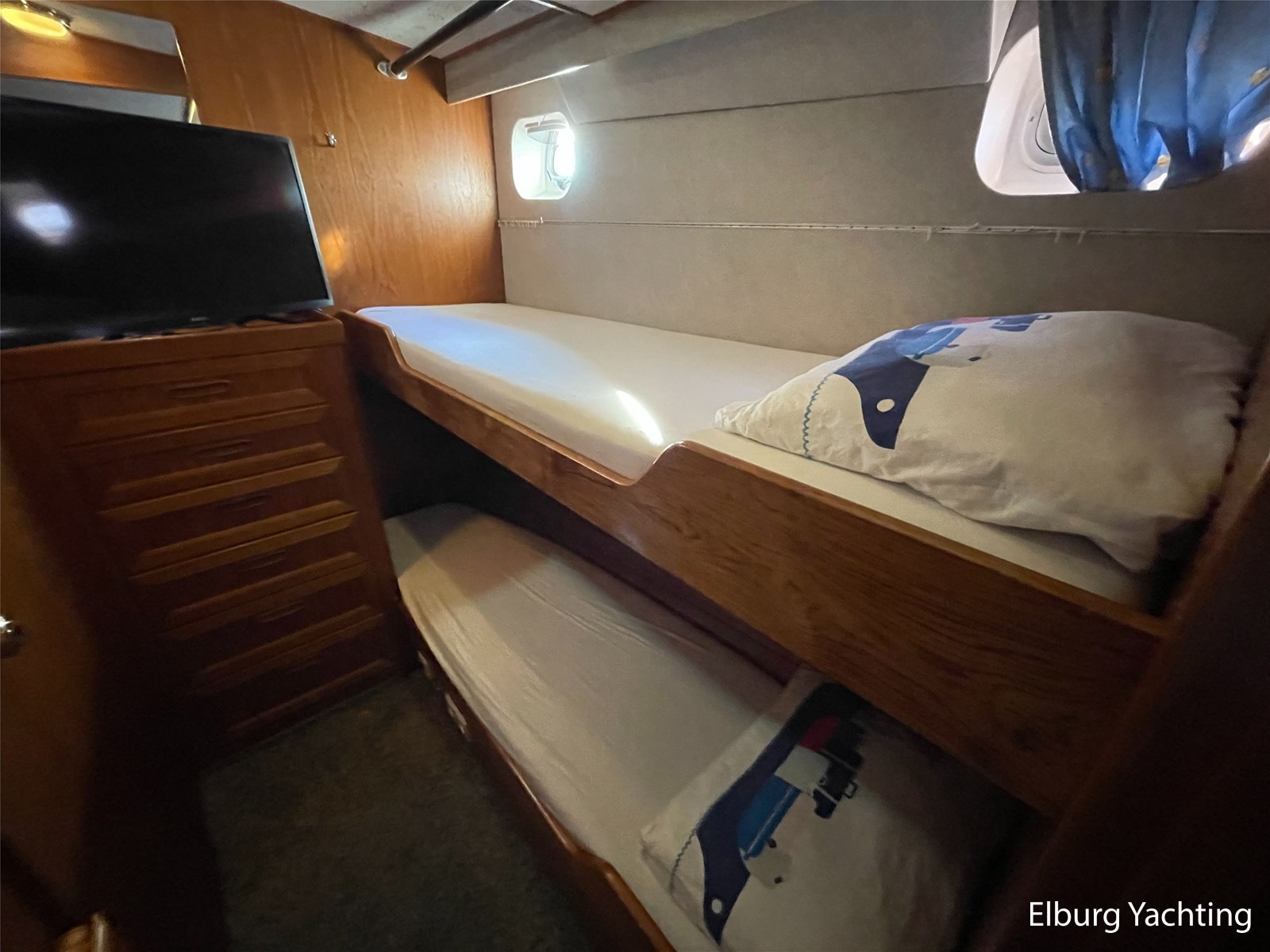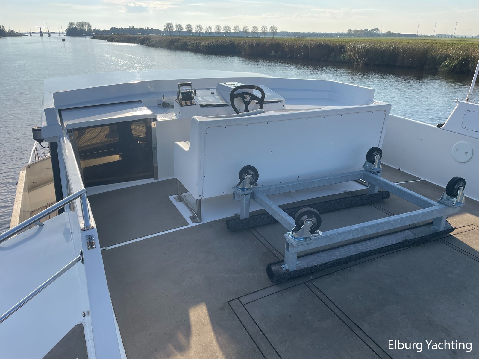 Beautiful seaworthy polyester trawler with round bilge hull and Vosper fin stabilisers. The hull is built by the well-known Halmatic Ltd yard from UK, Portuguese bridge, Kabola central heating, 2 x Raymarine CW120 screens, very spacious flybridge, stainless steel crane on flybridge, 2 x side door in wheelhouse, stainless steel railing, stainless steel fender holders, door in bulwark afterdeck, sundeck, tearplates in engine room, steering chair + co-skimming bench in wheelhouse, max speed appr. 18 knots, Raymarine ST60+ wind meter, storage lockers on afterdeck, escape/ventilation hatches, glass prisms in deck for natural light in ship, trim tabs, top shelf in kitchen of artificial granite, wooden pot lid, CV convector in engine room, camera system via Raymarine CW120 screens, pendulum window, 2 x side door in polyester bulwark, aluminium sliding door, storage space under afterdeck. For questions and/or to make an appointment, you are welcome 7 days a week at Elburg Yachting.