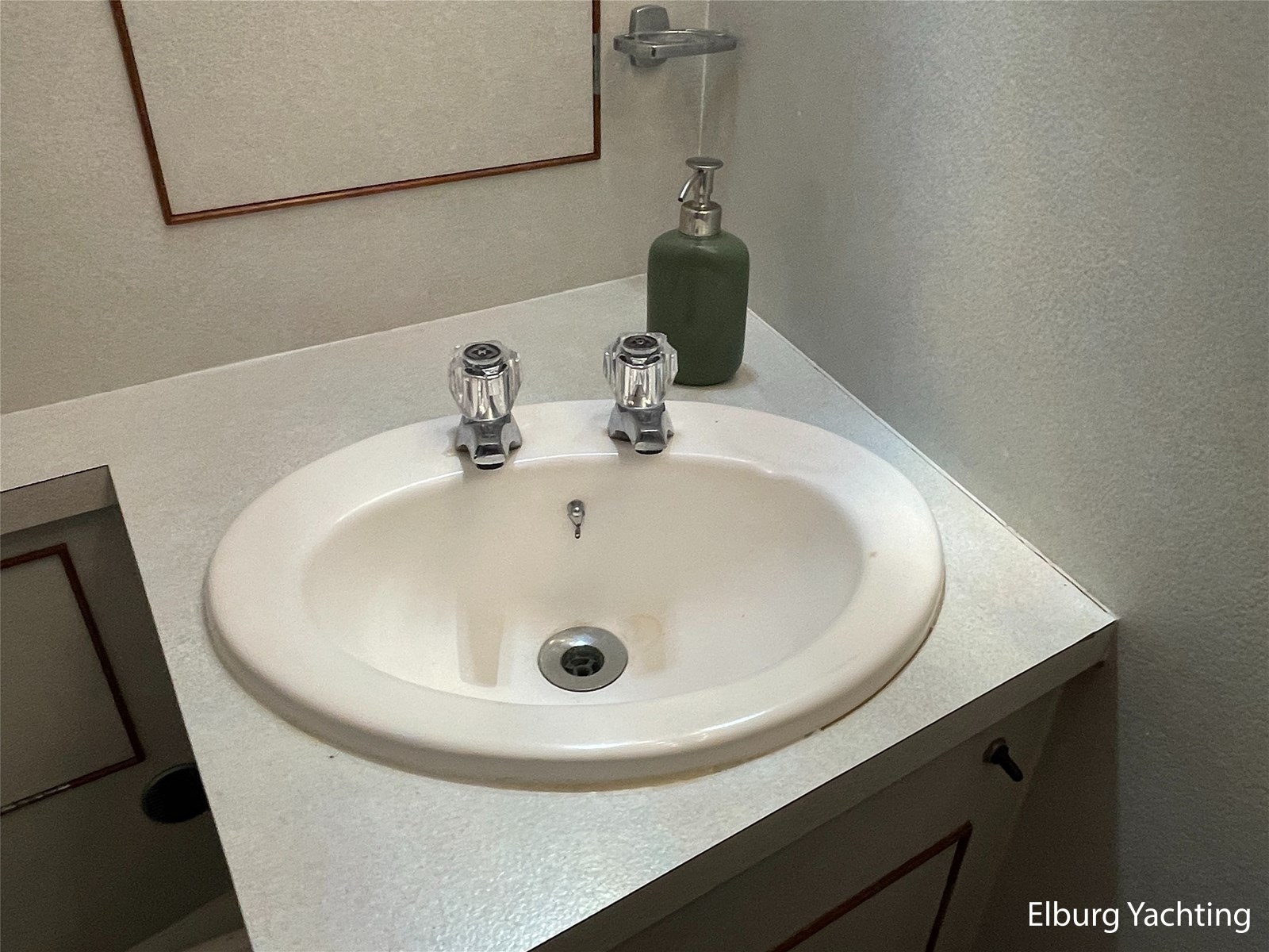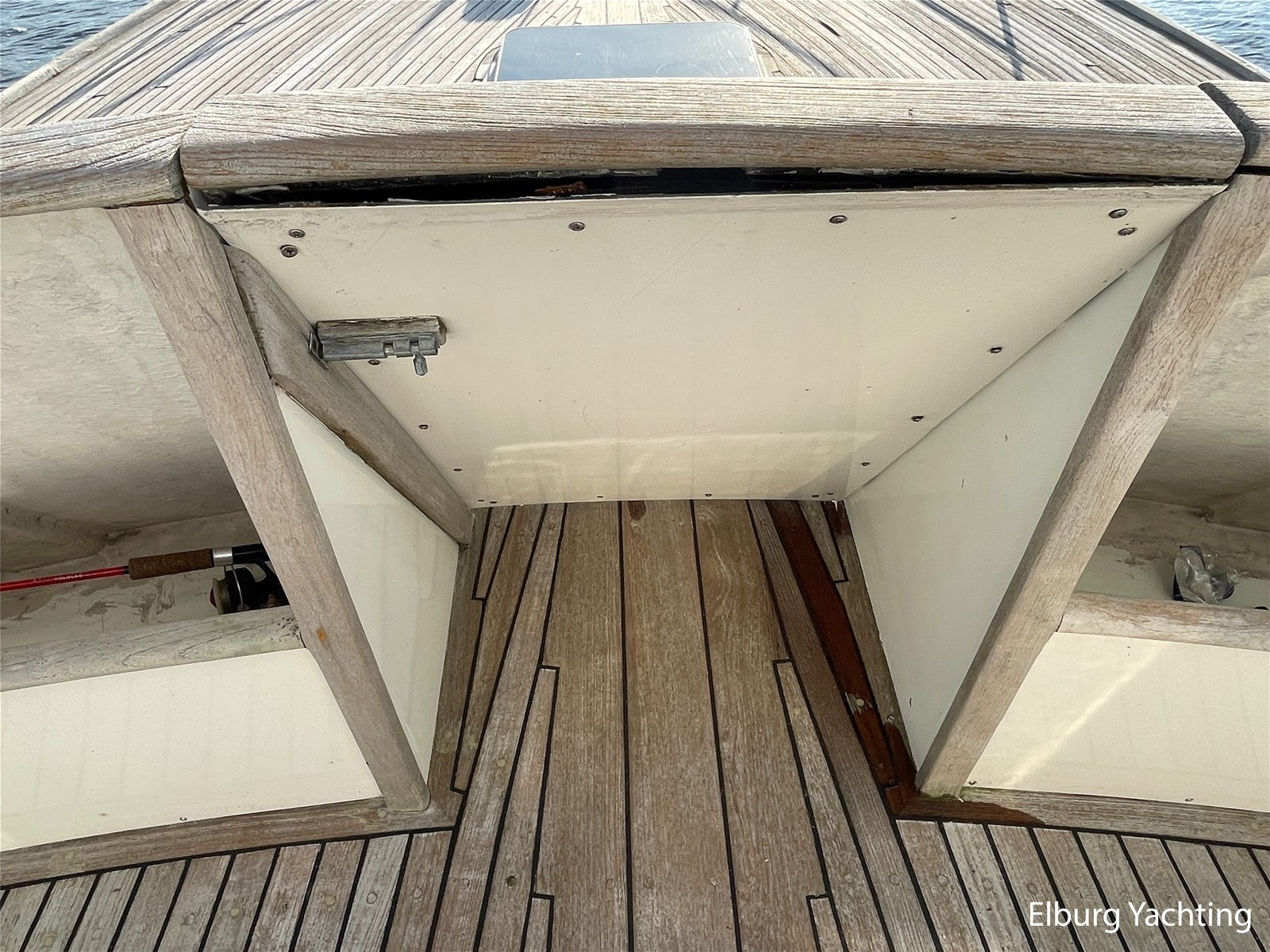 GRP, colour white (painted in 2009 in 2 components Awlgrip)
