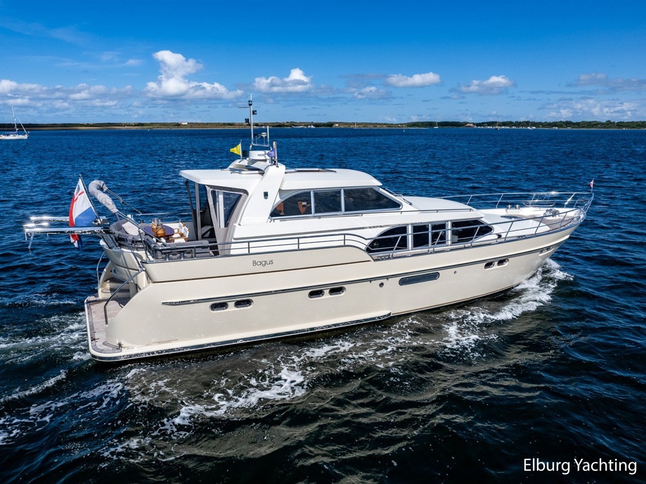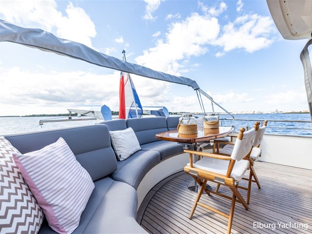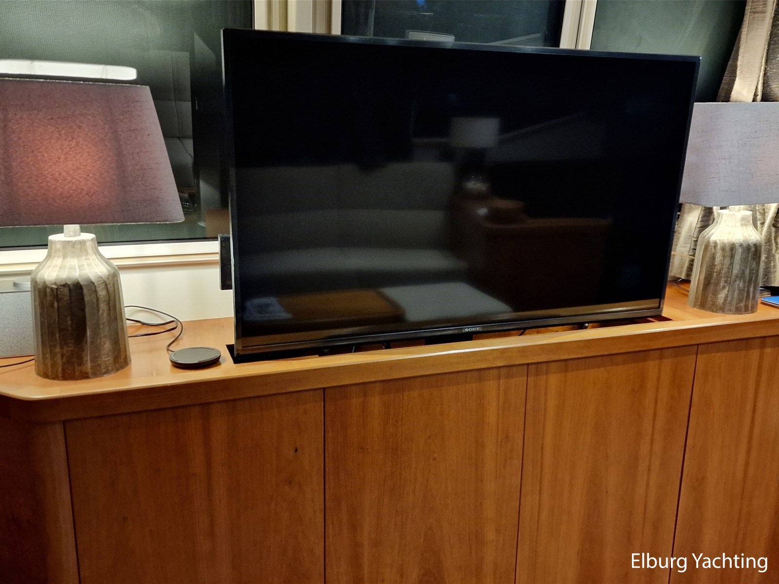 High end, electrically adjustable, orthopaedic King-size bed in owner's cabin, plenty of cupboard space throughout the boat, large rear window in the transom, Individual Bosch Maxx 7 washing machine + Bosch Avantixx7 drying machine, Bosch dishwasher, 3 x folding doors to aft deck (making saloon and aft deck a large living space), engine maintenance in which the seals, impellers, filters, etc. were replaced (2025), diesel tanks cleaned, new anodes (2024), anti-fouling (2024), generator service (2023), Kabola central heating serviced (2023), Full software update for navigation Computer and new Maps (2024), starter batteries (2023), Sony 43" TV with Android and WIFI (2024), new backup fresh water pump (2023), 2 x larger Johnson grey water pumps (2023), service batteries (2022), outdoor cushions renewed in 2022, bimini top (2022) over the aft deck with zip-on side screens, outside sun blinds for the wheelhouse, big storage space on bathing platform, TV in saloon, Alcantara upholstery in saloon, electrically operated davits, extensive lighting around the ship, Mareton computers system showing all instruments, systems and engine information.