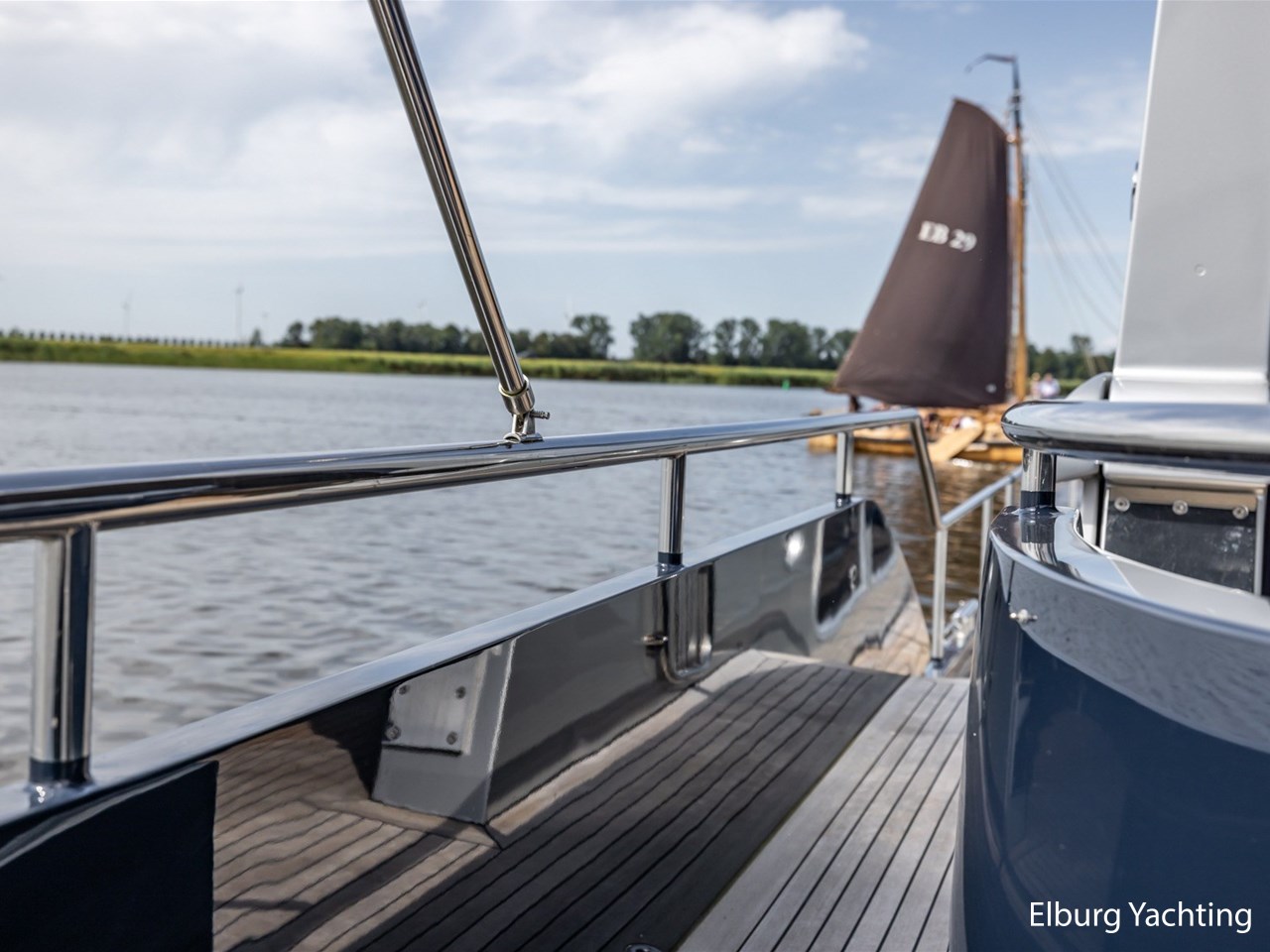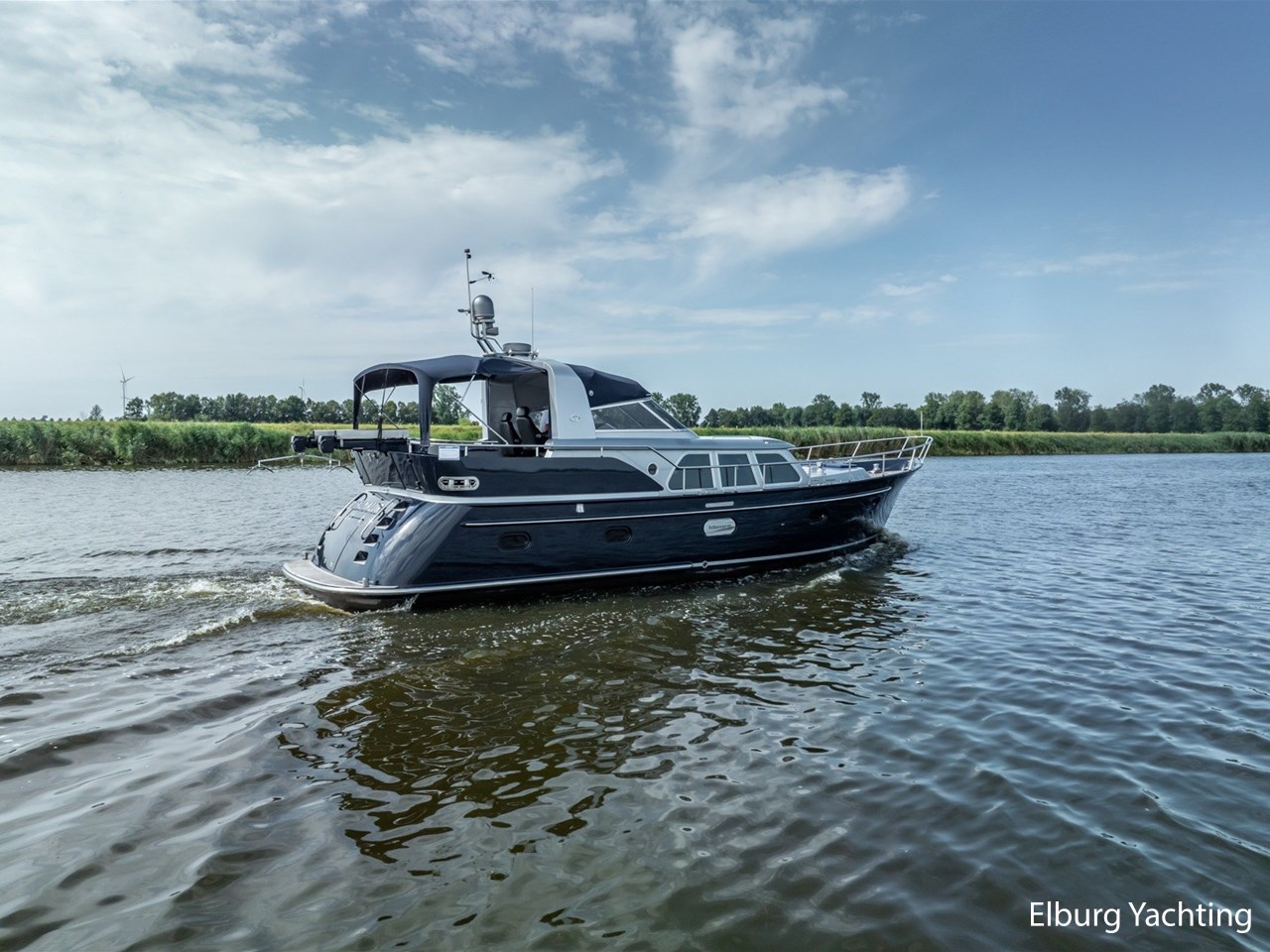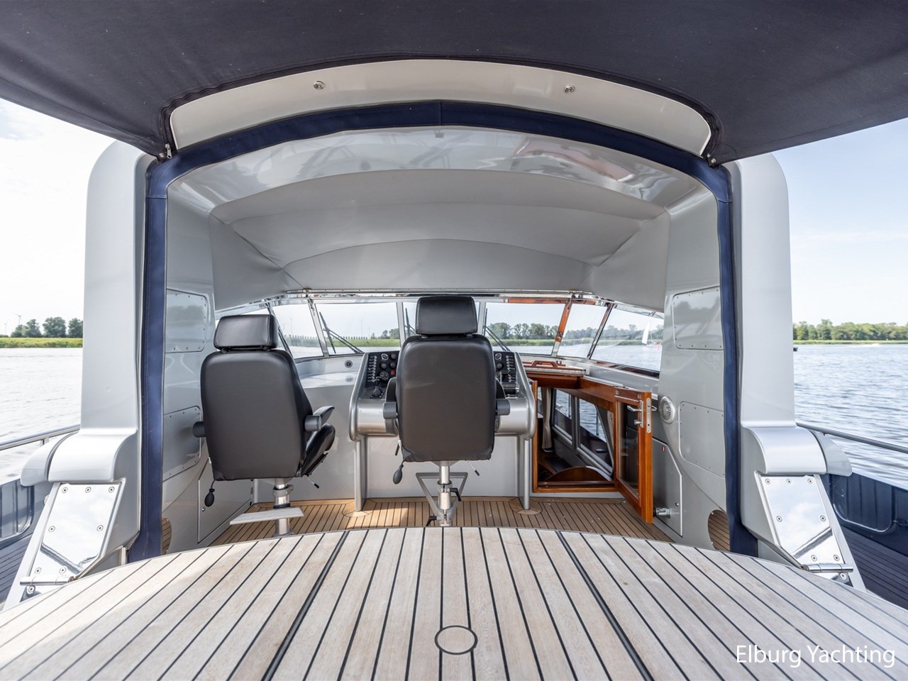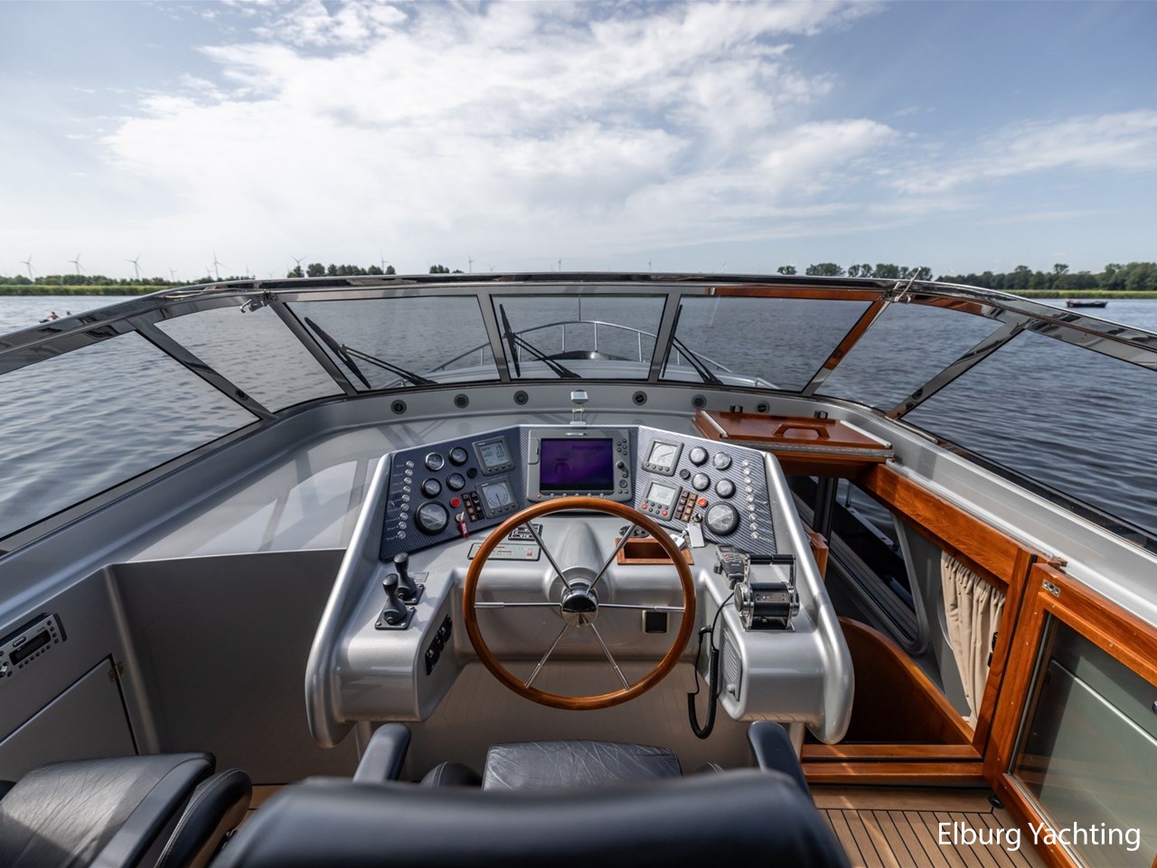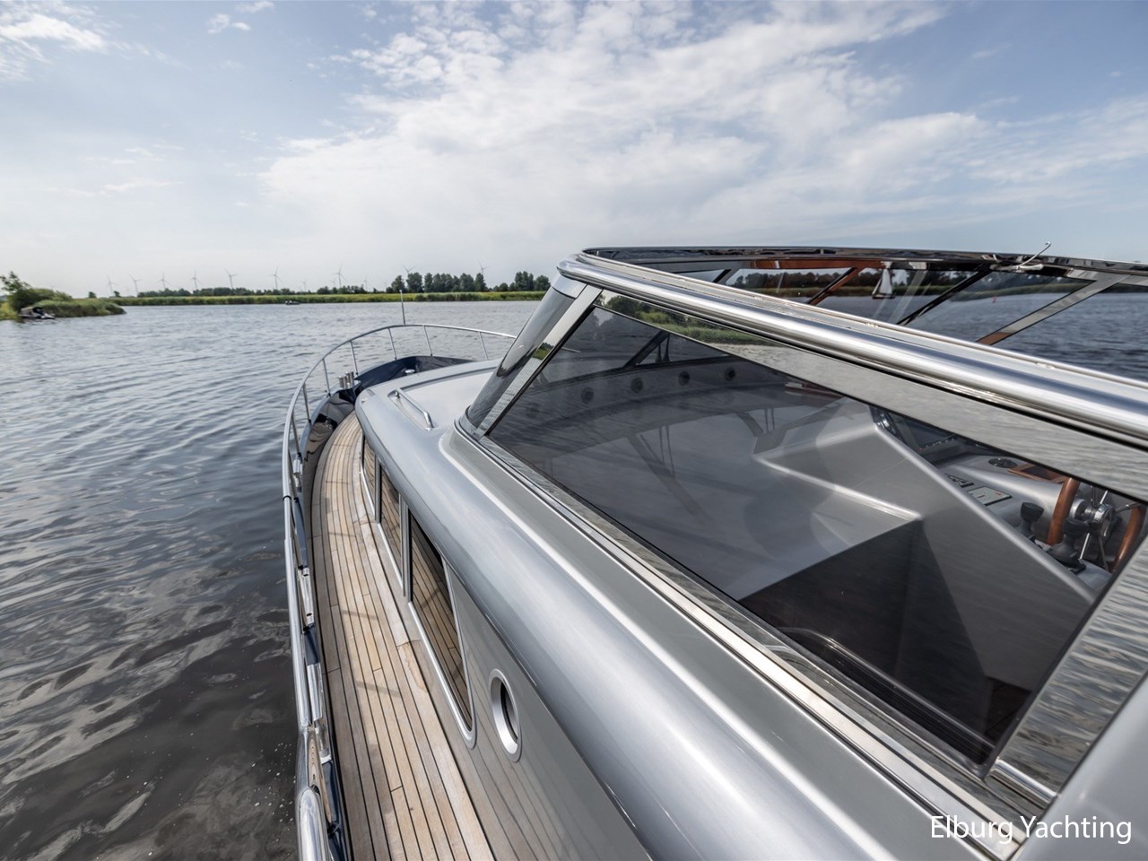A true Dutch yacht, experience luxury on the water with this exclusive Holterman 50 motor yacht. This Dutch yacht features a spectacular interior design, a chic blue and grey metallic exterior colour scheme and a new Variotop convertible for an unrivalled cruising experience. With a flawless technical system and an advanced stabiliser system, this motor yacht ensures smooth sailing for carefree journeys anywhere. Elevate your maritime lifestyle with this top-class gem. Her features include: electric foldable aluminium radar arch, hydraulic fin stabilisers, electric convertible top, name lights, deck lights, rudder indicator, stereo, EMC electric engine controls, front window heater helm station, fixed cockpit table, 2 x deluxe helm seat, windscreen wiper control, enclosed bulwark, electric blinds for both bulwarks saloon plus front window, electric front window excluder, LED lighting, dimmers, dishwasher, washer-dryer Bosch Maxx 5, safe, wine cooler, tracvision, TV on lift, wind meter, rear view camera, UV filter water system, Stork hydrophore, horn, Kabola heating throughout the yacht, Webasto air conditioning (24. 000 BTU), Somfy system for electric operation of blinds in saloon, JVC DVD player with audio for TV, Hyab hydraulic Tender crane on aft deck, spacious settee in saloon, spacious owner's cabin, clearance approx. 3.40 m, spacious gangways, modern interior, beautiful engine room, AWL grip metallic paint. For questions and/or to make an appointment, you are welcome 7 days a week at Elburg Yachting.