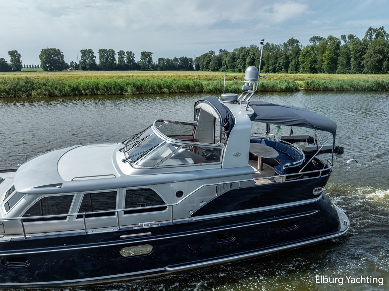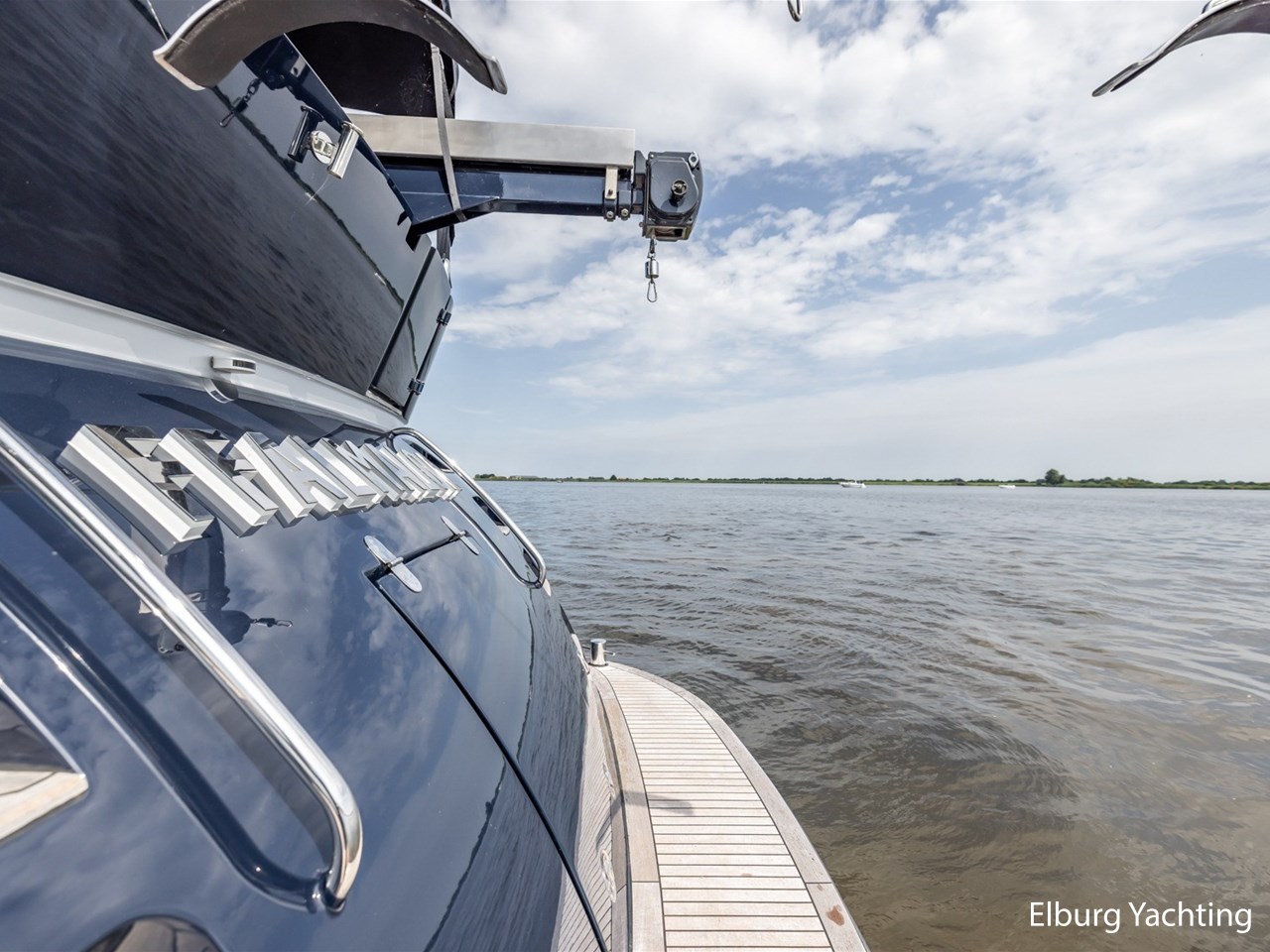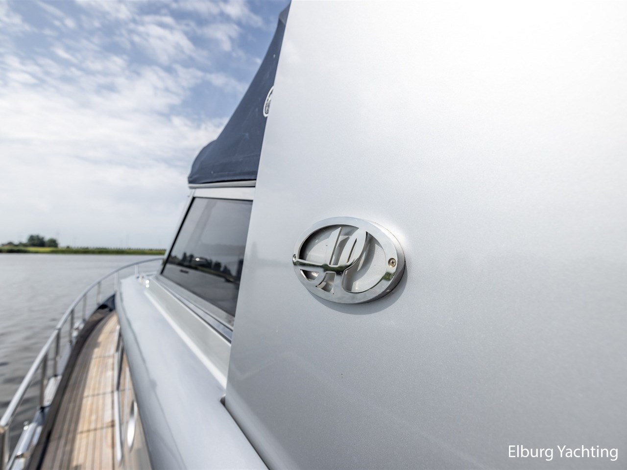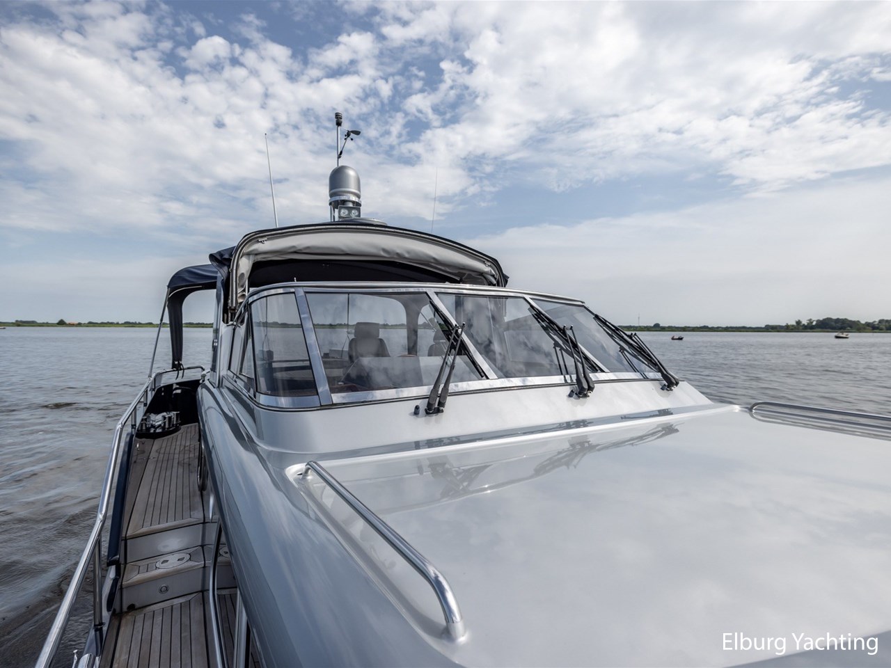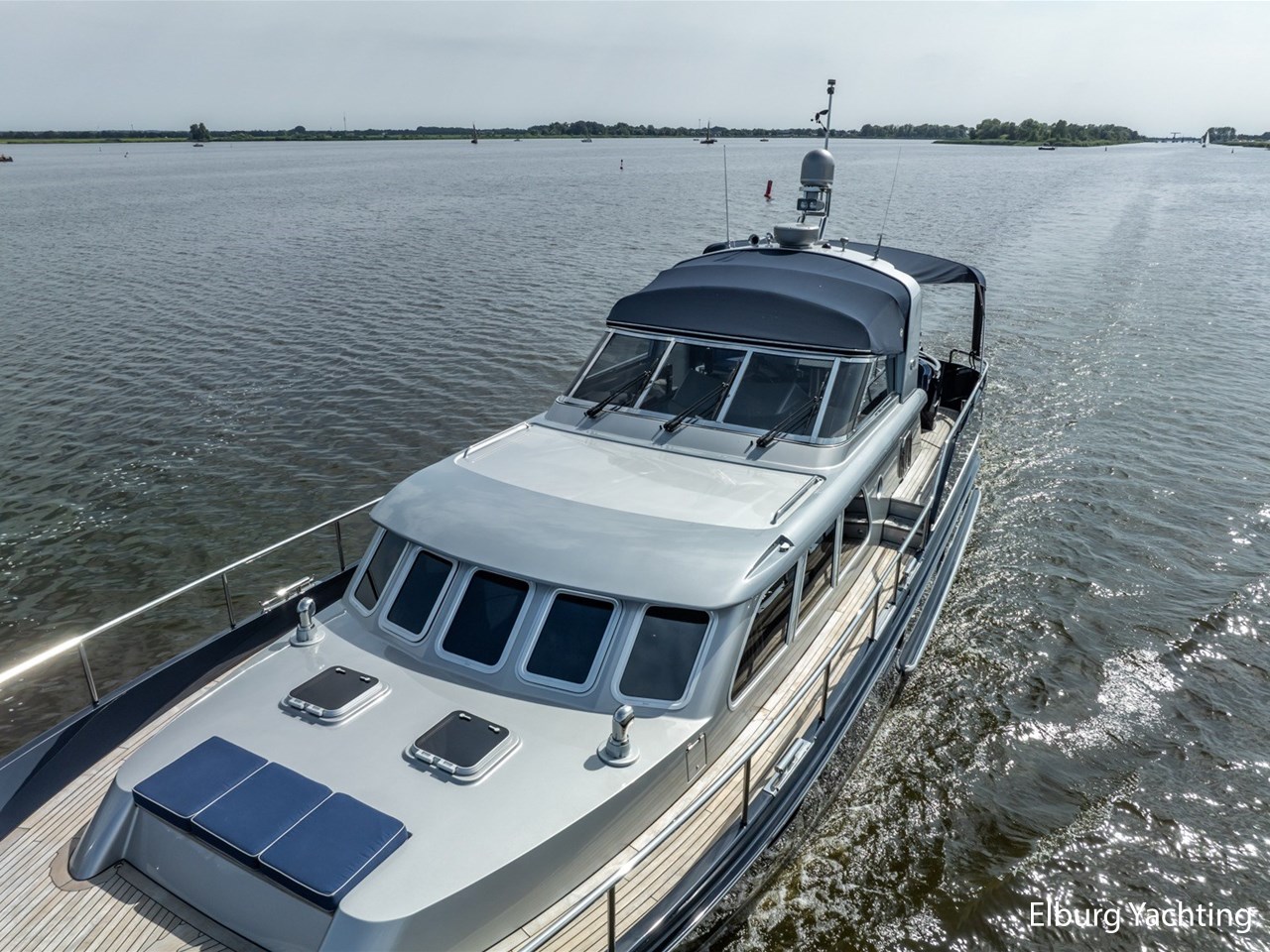 A true Dutch yacht, experience luxury on the water with this exclusive Holterman 50 motor yacht. This Dutch yacht features a spectacular interior design, a chic blue and grey metallic exterior colour scheme and a new Variotop convertible for an unrivalled cruising experience. With a flawless technical system and an advanced stabiliser system, this motor yacht ensures smooth sailing for carefree journeys anywhere. Elevate your maritime lifestyle with this top-class gem. Her features include: electric foldable aluminium radar arch, hydraulic fin stabilisers, electric convertible top, name lights, deck lights, rudder indicator, stereo, EMC electric engine controls, front window heater helm station, fixed cockpit table, 2 x deluxe helm seat, windscreen wiper control, enclosed bulwark, electric blinds for both bulwarks saloon plus front window, electric front window excluder, LED lighting, dimmers, dishwasher, washer-dryer Bosch Maxx 5, safe, wine cooler, tracvision, TV on lift, wind meter, rear view camera, UV filter water system, Stork hydrophore, horn, Kabola heating throughout the yacht, Webasto air conditioning (24. 000 BTU), Somfy system for electric operation of blinds in saloon, JVC DVD player with audio for TV, Hyab hydraulic Tender crane on aft deck, spacious settee in saloon, spacious owner's cabin, clearance approx. 3.40 m, spacious gangways, modern interior, beautiful engine room, AWL grip metallic paint. For questions and/or to make an appointment, you are welcome 7 days a week at Elburg Yachting.