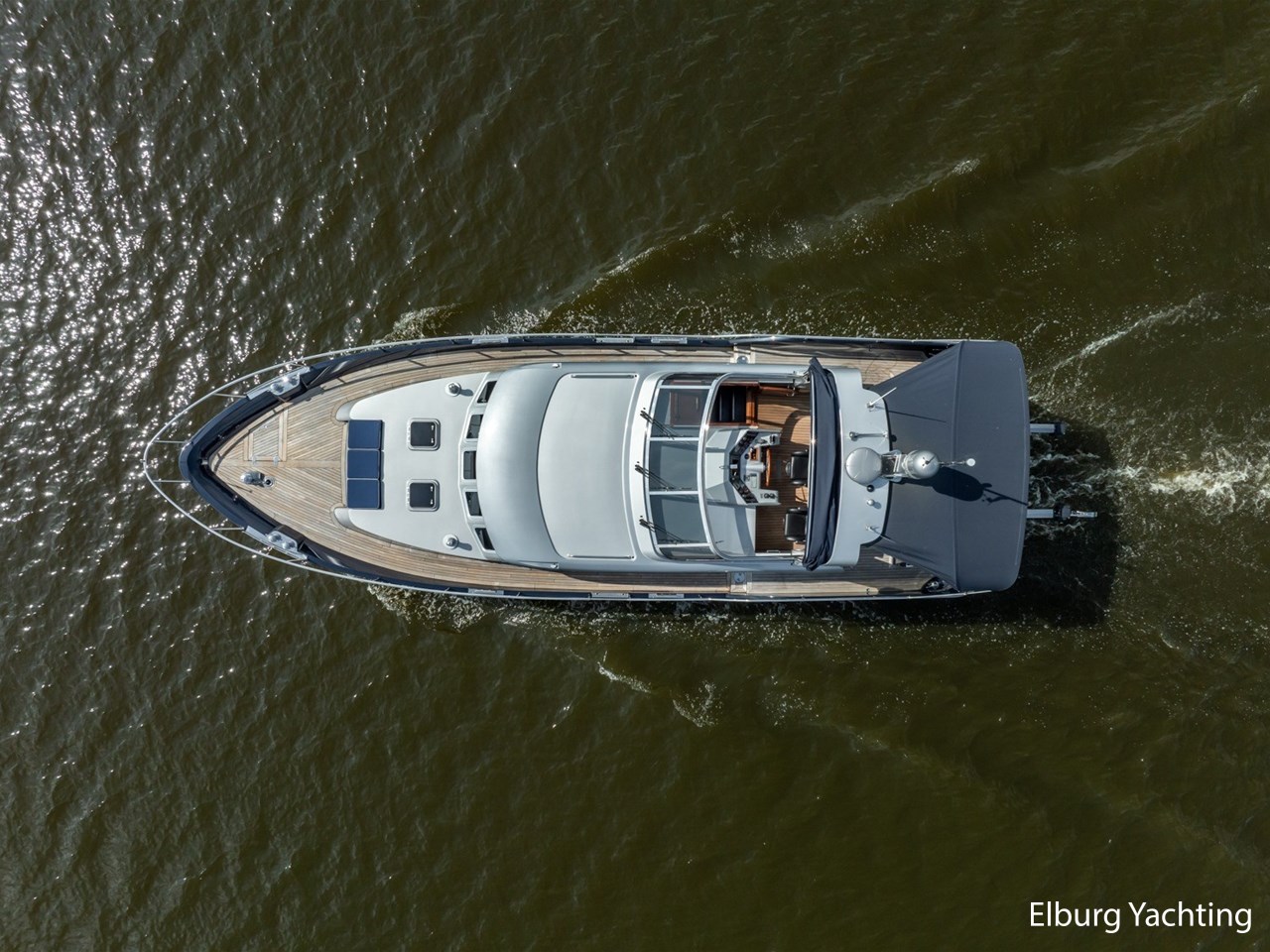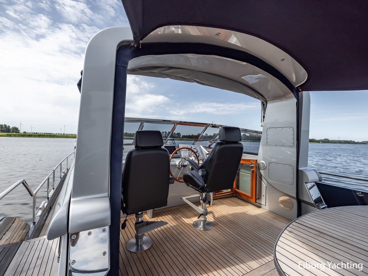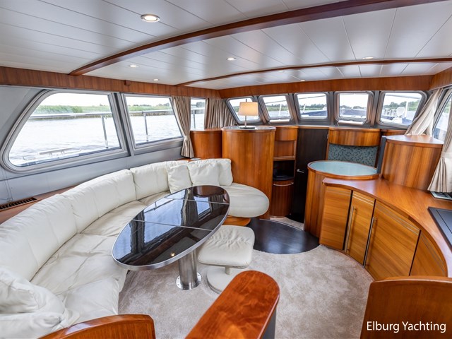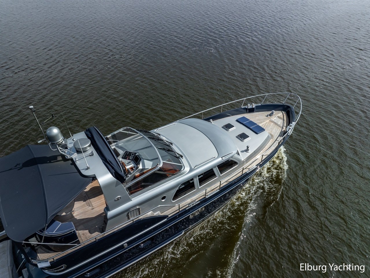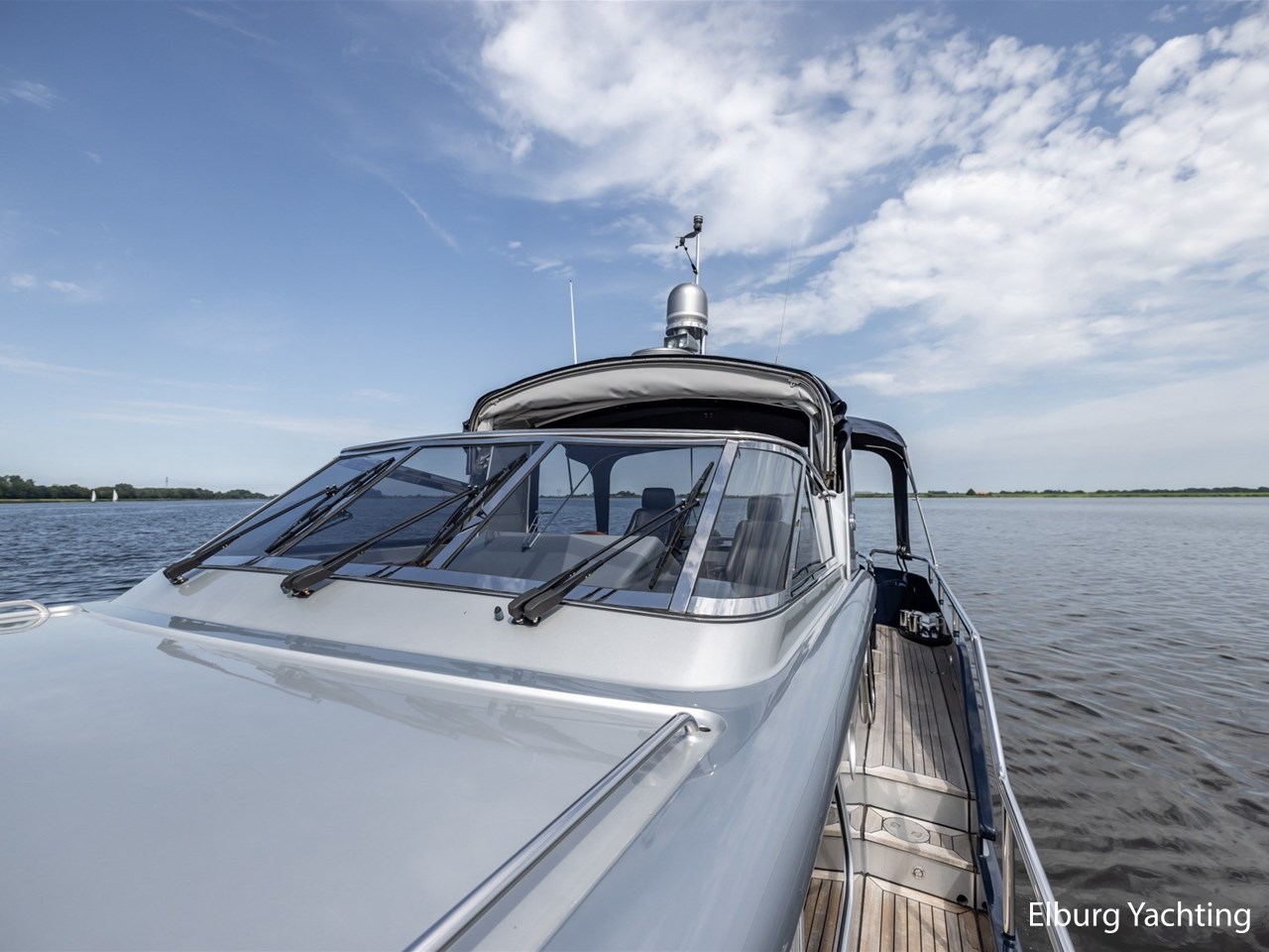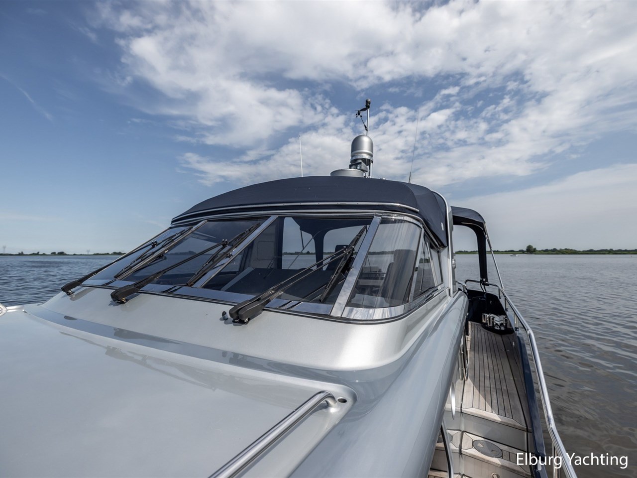 A true Dutch yacht, experience luxury on the water with this exclusive Holterman 50 motor yacht. This Dutch yacht features a spectacular interior design, a chic blue and grey metallic exterior colour scheme and a new Variotop convertible for an unrivalled cruising experience. With a flawless technical system and an advanced stabiliser system, this motor yacht ensures smooth sailing for carefree journeys anywhere. Elevate your maritime lifestyle with this top-class gem. Her features include: electric foldable aluminium radar arch, hydraulic fin stabilisers, electric convertible top, name lights, deck lights, rudder indicator, stereo, EMC electric engine controls, front window heater helm station, fixed cockpit table, 2 x deluxe helm seat, windscreen wiper control, enclosed bulwark, electric blinds for both bulwarks saloon plus front window, electric front window excluder, LED lighting, dimmers, dishwasher, washer-dryer Bosch Maxx 5, safe, wine cooler, tracvision, TV on lift, wind meter, rear view camera, UV filter water system, Stork hydrophore, horn, Kabola heating throughout the yacht, Webasto air conditioning (24. 000 BTU), Somfy system for electric operation of blinds in saloon, JVC DVD player with audio for TV, Hyab hydraulic Tender crane on aft deck, spacious settee in saloon, spacious owner's cabin, clearance approx. 3.40 m, spacious gangways, modern interior, beautiful engine room, AWL grip metallic paint. For questions and/or to make an appointment, you are welcome 7 days a week at Elburg Yachting.