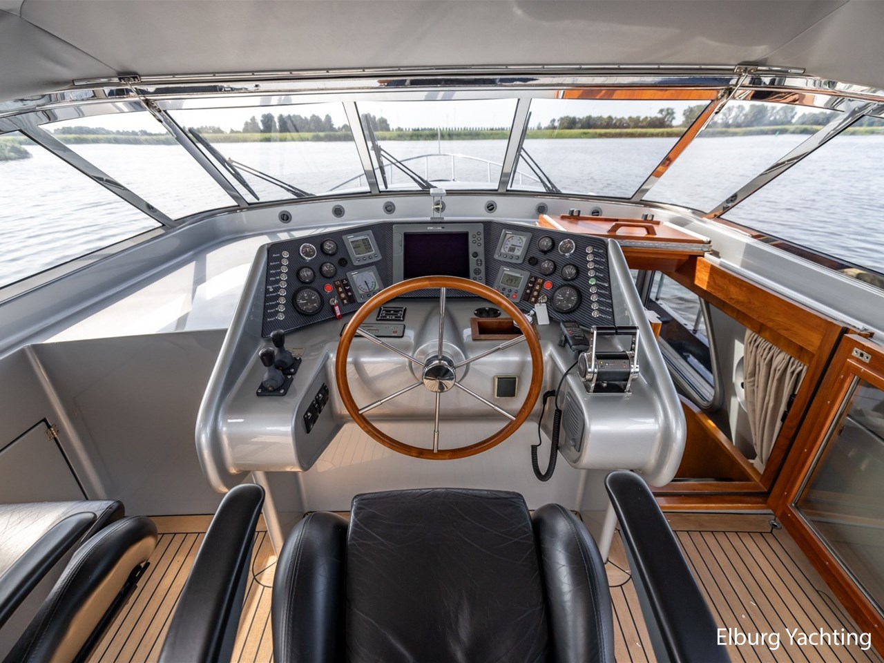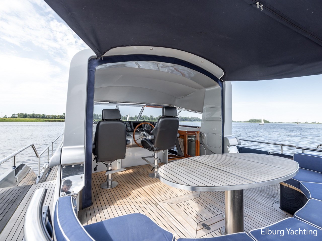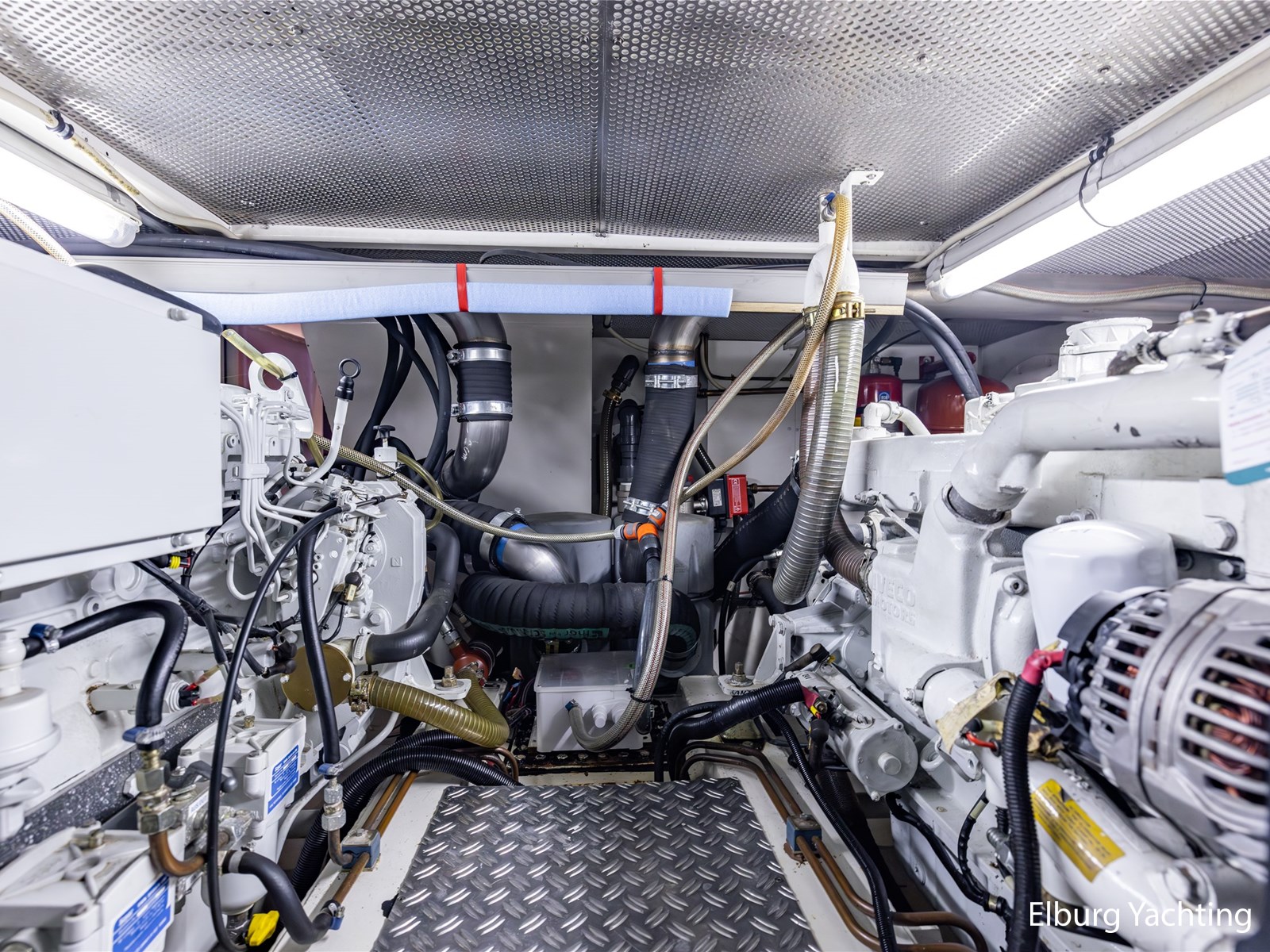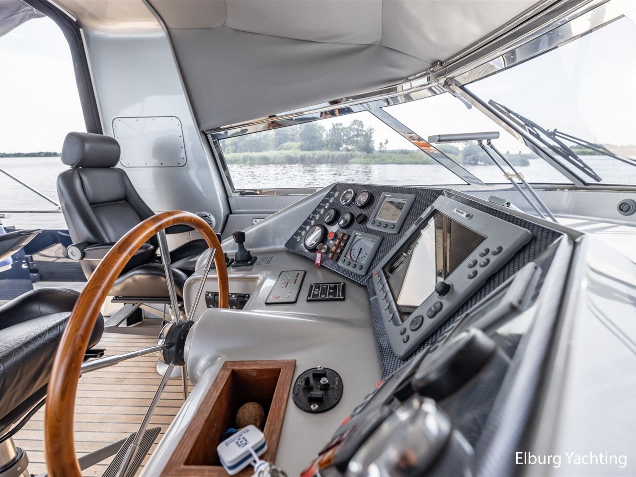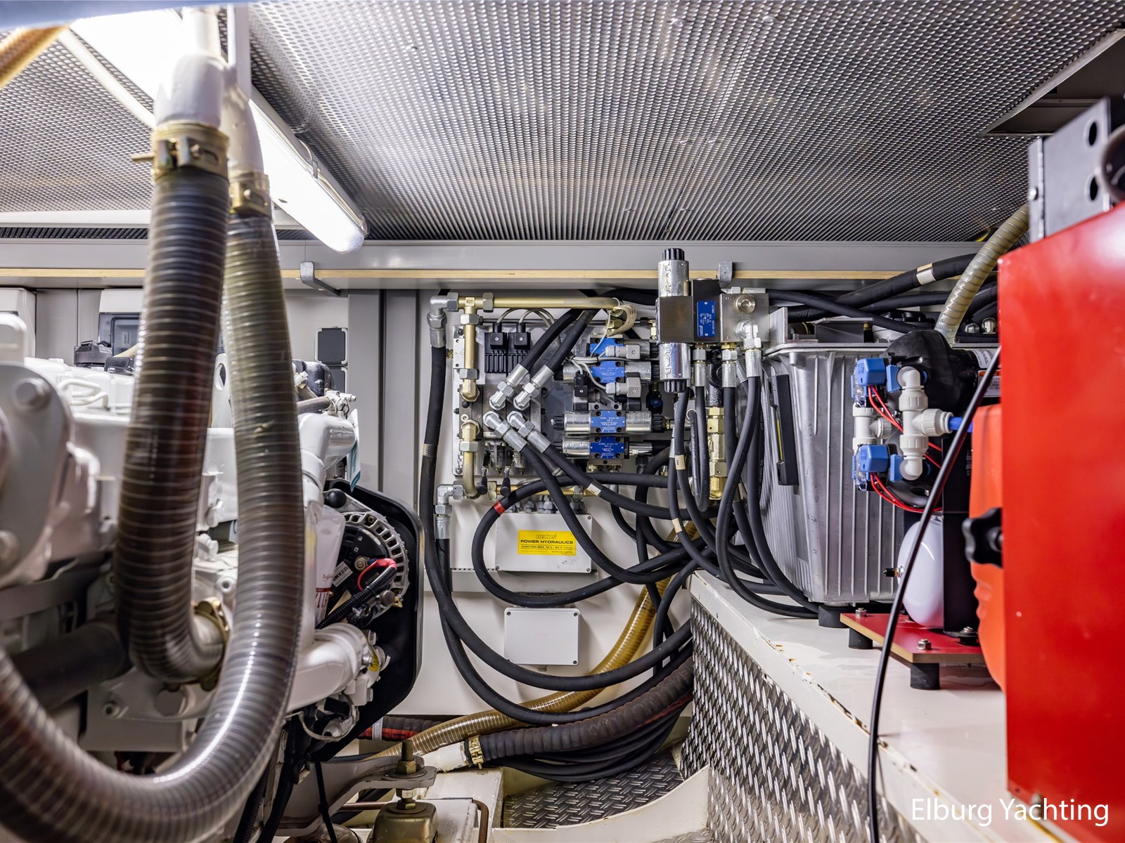 A true Dutch yacht, experience luxury on the water with this exclusive Holterman 50 motor yacht. This Dutch yacht features a spectacular interior design, a chic blue and grey metallic exterior colour scheme and a new Variotop convertible for an unrivalled cruising experience. With a flawless technical system and an advanced stabiliser system, this motor yacht ensures smooth sailing for carefree journeys anywhere. Elevate your maritime lifestyle with this top-class gem. Her features include: electric foldable aluminium radar arch, hydraulic fin stabilisers, electric convertible top, name lights, deck lights, rudder indicator, stereo, EMC electric engine controls, front window heater helm station, fixed cockpit table, 2 x deluxe helm seat, windscreen wiper control, enclosed bulwark, electric blinds for both bulwarks saloon plus front window, electric front window excluder, LED lighting, dimmers, dishwasher, washer-dryer Bosch Maxx 5, safe, wine cooler, tracvision, TV on lift, wind meter, rear view camera, UV filter water system, Stork hydrophore, horn, Kabola heating throughout the yacht, Webasto air conditioning (24. 000 BTU), Somfy system for electric operation of blinds in saloon, JVC DVD player with audio for TV, Hyab hydraulic Tender crane on aft deck, spacious settee in saloon, spacious owner's cabin, clearance approx. 3.40 m, spacious gangways, modern interior, beautiful engine room, AWL grip metallic paint. For questions and/or to make an appointment, you are welcome 7 days a week at Elburg Yachting.