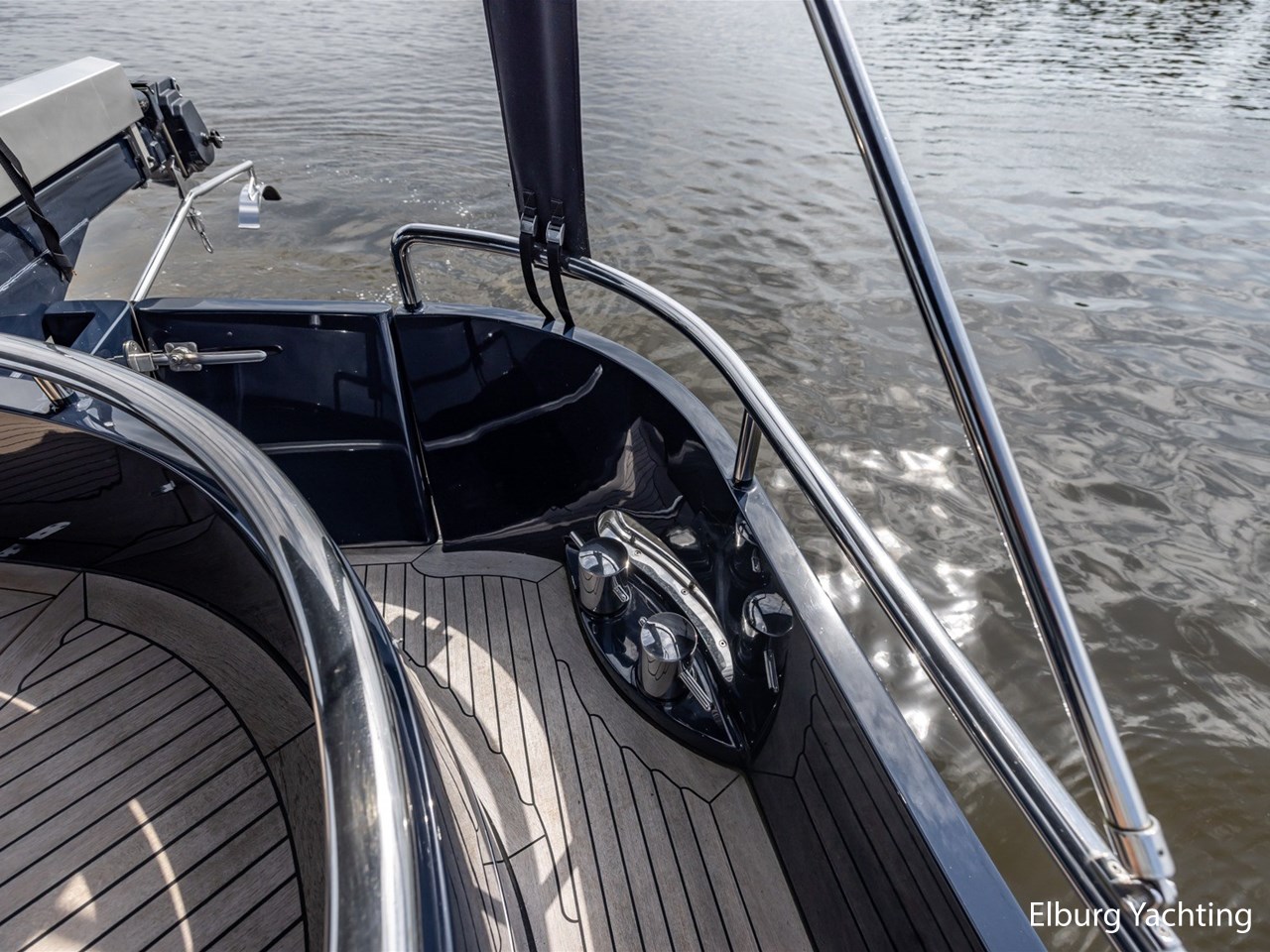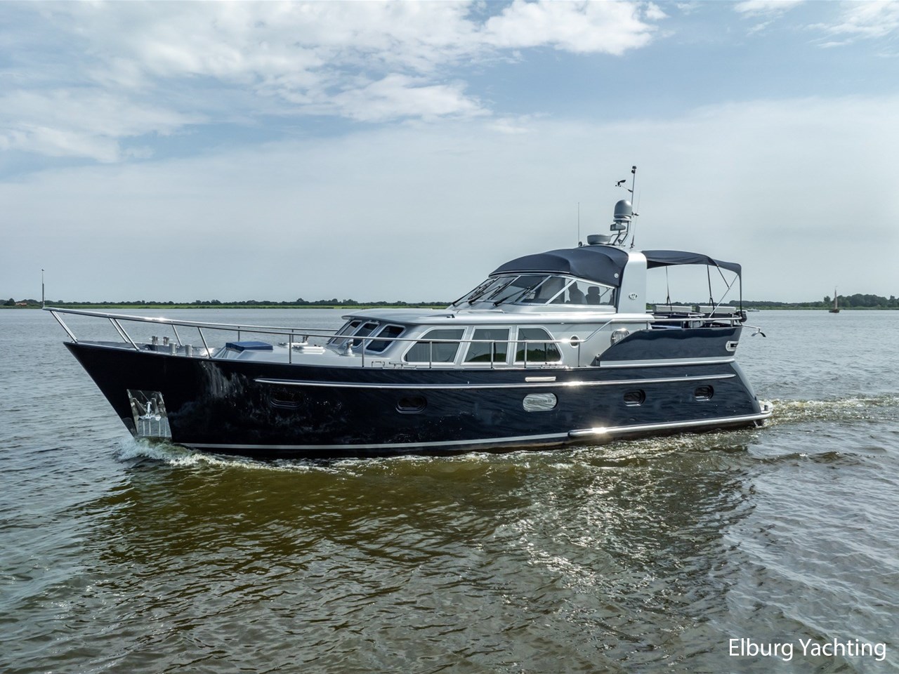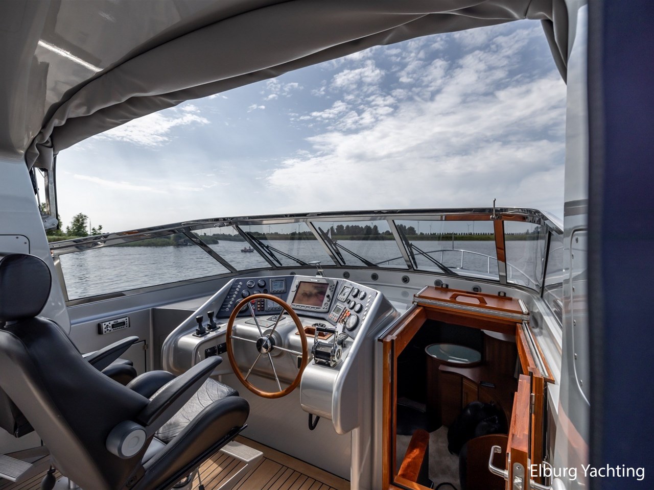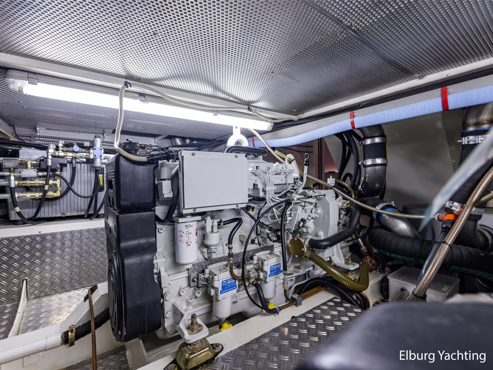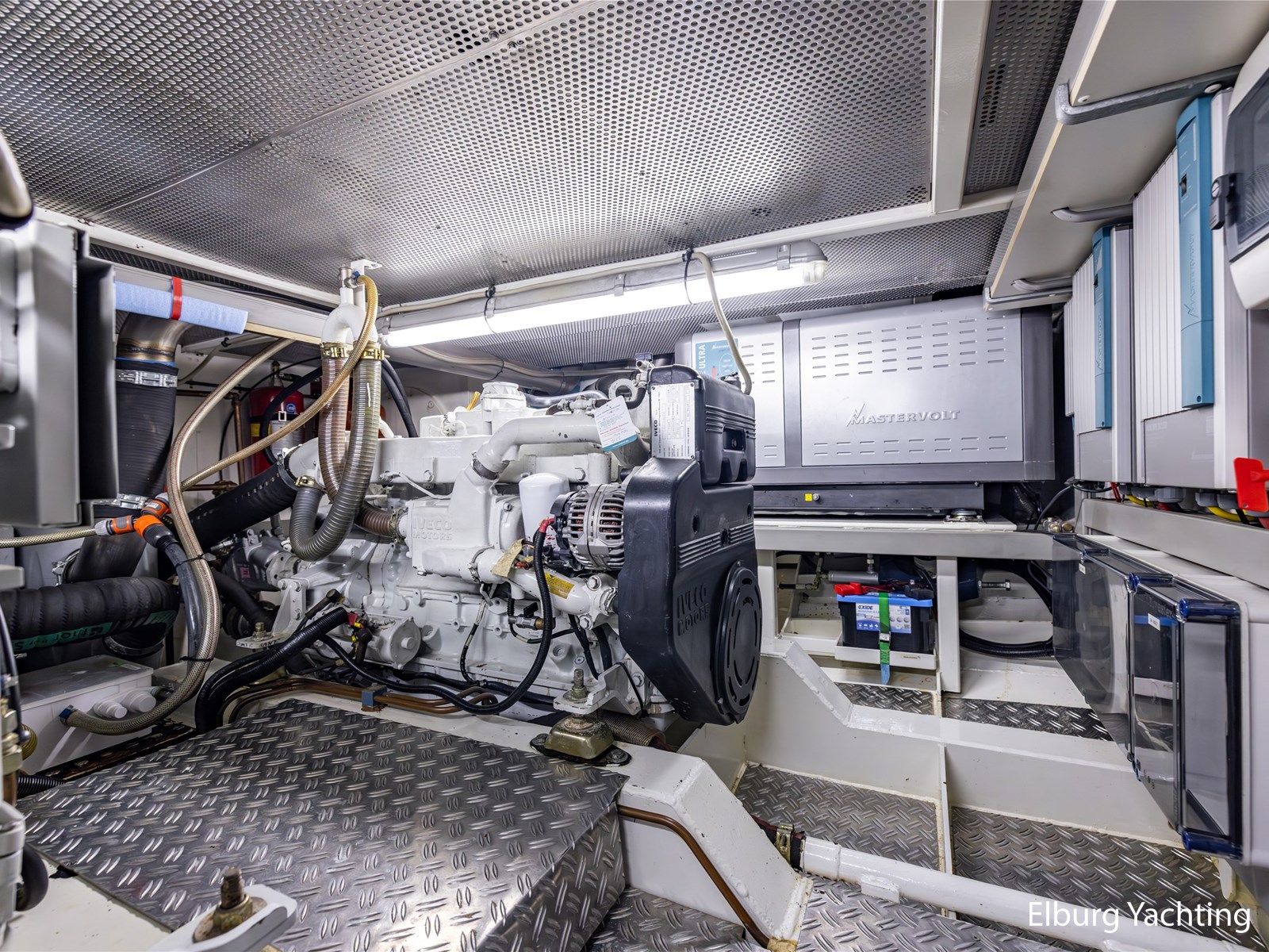 A true Dutch yacht, experience luxury on the water with this exclusive Holterman 50 motor yacht. This Dutch yacht features a spectacular interior design, a chic blue and grey metallic exterior colour scheme and a new Variotop convertible for an unrivalled cruising experience. With a flawless technical system and an advanced stabiliser system, this motor yacht ensures smooth sailing for carefree journeys anywhere. Elevate your maritime lifestyle with this top-class gem. Her features include: electric foldable aluminium radar arch, hydraulic fin stabilisers, electric convertible top, name lights, deck lights, rudder indicator, stereo, EMC electric engine controls, front window heater helm station, fixed cockpit table, 2 x deluxe helm seat, windscreen wiper control, enclosed bulwark, electric blinds for both bulwarks saloon plus front window, electric front window excluder, LED lighting, dimmers, dishwasher, washer-dryer Bosch Maxx 5, safe, wine cooler, tracvision, TV on lift, wind meter, rear view camera, UV filter water system, Stork hydrophore, horn, Kabola heating throughout the yacht, Webasto air conditioning (24. 000 BTU), Somfy system for electric operation of blinds in saloon, JVC DVD player with audio for TV, Hyab hydraulic Tender crane on aft deck, spacious settee in saloon, spacious owner's cabin, clearance approx. 3.40 m, spacious gangways, modern interior, beautiful engine room, AWL grip metallic paint. For questions and/or to make an appointment, you are welcome 7 days a week at Elburg Yachting.