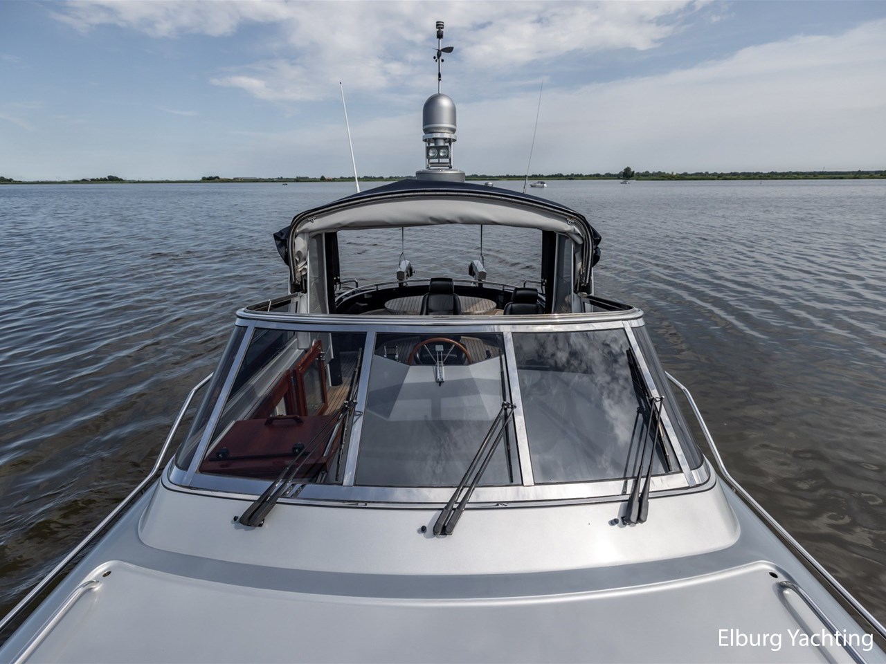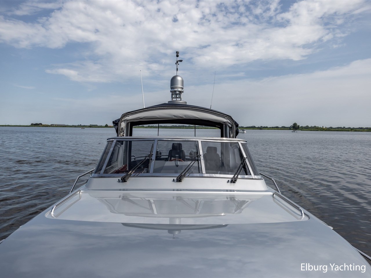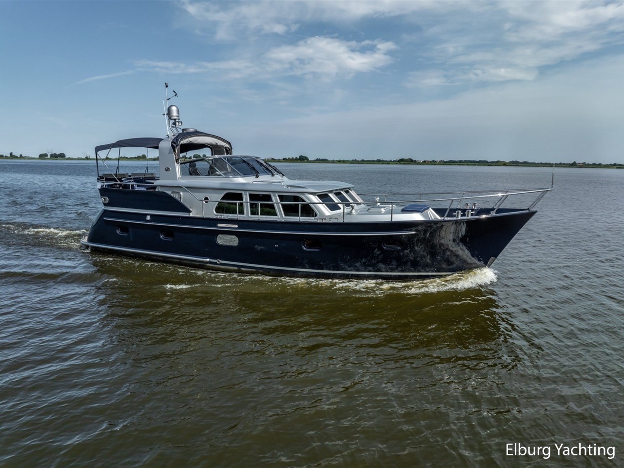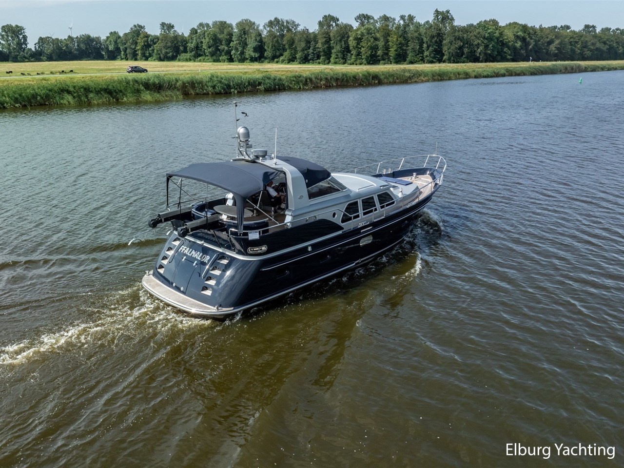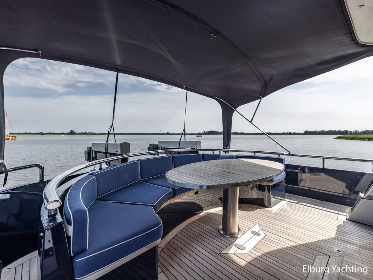 A true Dutch yacht, experience luxury on the water with this exclusive Holterman 50 motor yacht. This Dutch yacht features a spectacular interior design, a chic blue and grey metallic exterior colour scheme and a new Variotop convertible for an unrivalled cruising experience. With a flawless technical system and an advanced stabiliser system, this motor yacht ensures smooth sailing for carefree journeys anywhere. Elevate your maritime lifestyle with this top-class gem. Her features include: electric foldable aluminium radar arch, hydraulic fin stabilisers, electric convertible top, name lights, deck lights, rudder indicator, stereo, EMC electric engine controls, front window heater helm station, fixed cockpit table, 2 x deluxe helm seat, windscreen wiper control, enclosed bulwark, electric blinds for both bulwarks saloon plus front window, electric front window excluder, LED lighting, dimmers, dishwasher, washer-dryer Bosch Maxx 5, safe, wine cooler, tracvision, TV on lift, wind meter, rear view camera, UV filter water system, Stork hydrophore, horn, Kabola heating throughout the yacht, Webasto air conditioning (24. 000 BTU), Somfy system for electric operation of blinds in saloon, JVC DVD player with audio for TV, Hyab hydraulic Tender crane on aft deck, spacious settee in saloon, spacious owner's cabin, clearance approx. 3.40 m, spacious gangways, modern interior, beautiful engine room, AWL grip metallic paint. For questions and/or to make an appointment, you are welcome 7 days a week at Elburg Yachting.