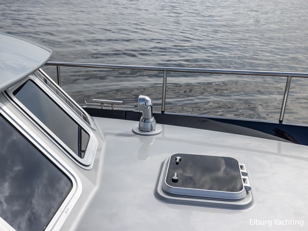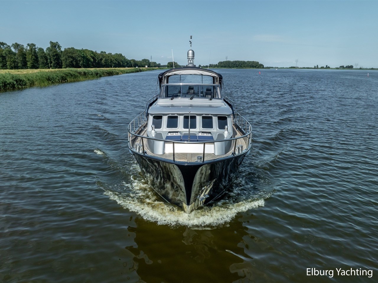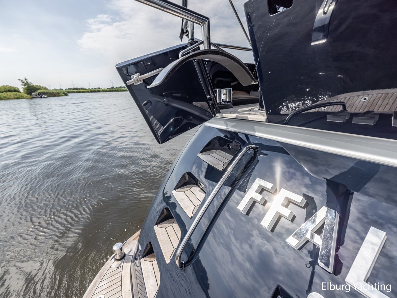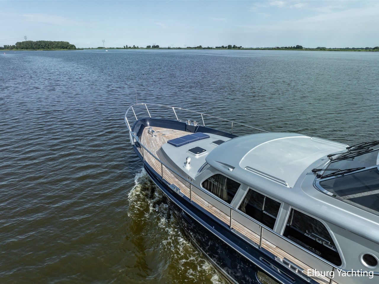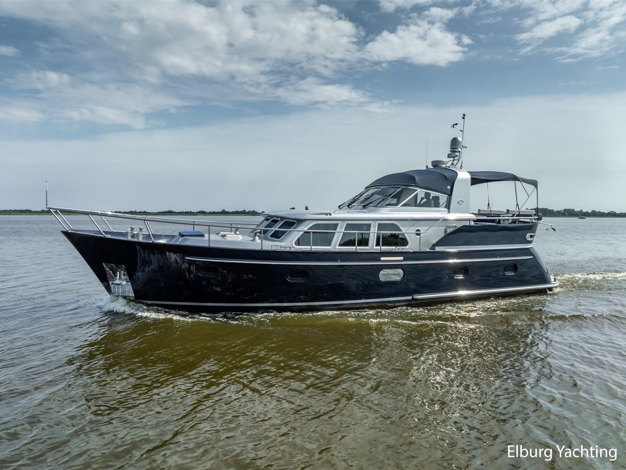 A true Dutch yacht, experience luxury on the water with this exclusive Holterman 50 motor yacht. This Dutch yacht features a spectacular interior design, a chic blue and grey metallic exterior colour scheme and a new Variotop convertible for an unrivalled cruising experience. With a flawless technical system and an advanced stabiliser system, this motor yacht ensures smooth sailing for carefree journeys anywhere. Elevate your maritime lifestyle with this top-class gem. Her features include: electric foldable aluminium radar arch, hydraulic fin stabilisers, electric convertible top, name lights, deck lights, rudder indicator, stereo, EMC electric engine controls, front window heater helm station, fixed cockpit table, 2 x deluxe helm seat, windscreen wiper control, enclosed bulwark, electric blinds for both bulwarks saloon plus front window, electric front window excluder, LED lighting, dimmers, dishwasher, washer-dryer Bosch Maxx 5, safe, wine cooler, tracvision, TV on lift, wind meter, rear view camera, UV filter water system, Stork hydrophore, horn, Kabola heating throughout the yacht, Webasto air conditioning (24. 000 BTU), Somfy system for electric operation of blinds in saloon, JVC DVD player with audio for TV, Hyab hydraulic Tender crane on aft deck, spacious settee in saloon, spacious owner's cabin, clearance approx. 3.40 m, spacious gangways, modern interior, beautiful engine room, AWL grip metallic paint. For questions and/or to make an appointment, you are welcome 7 days a week at Elburg Yachting.