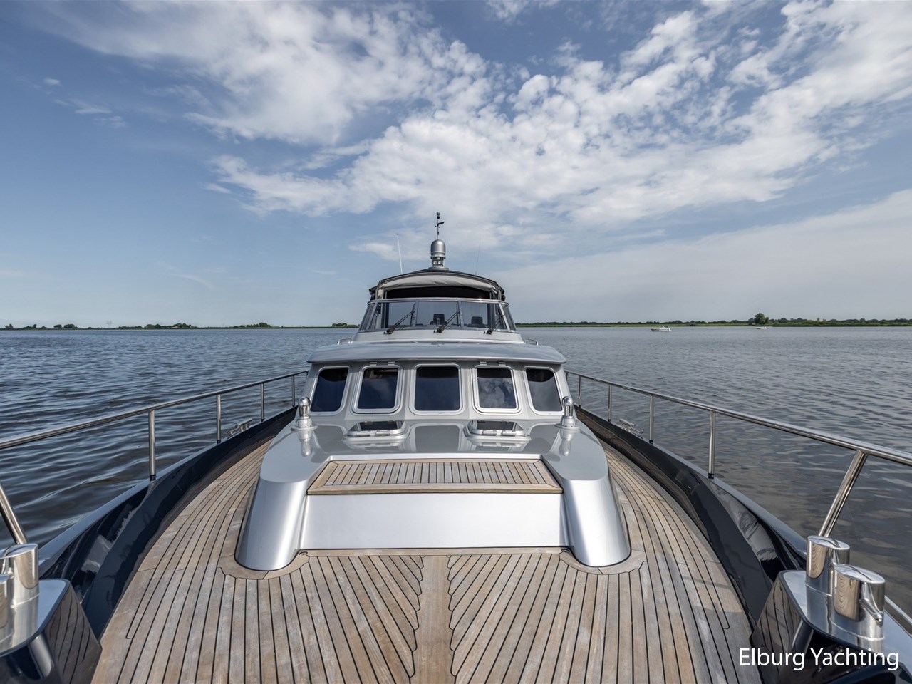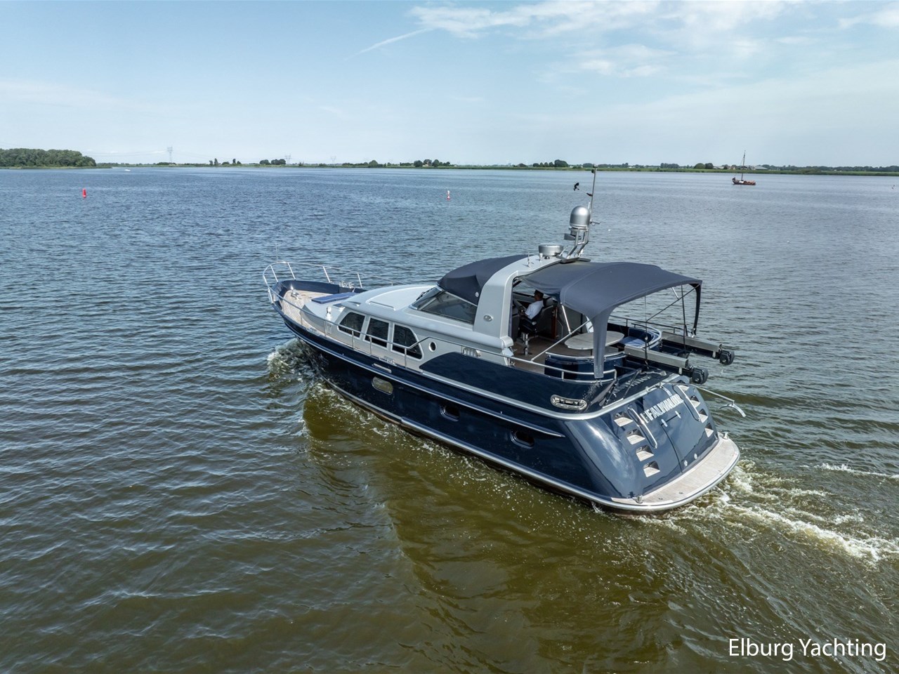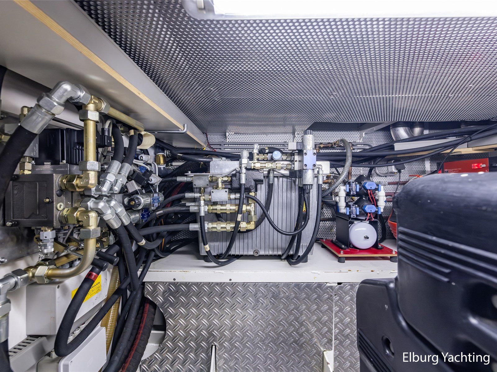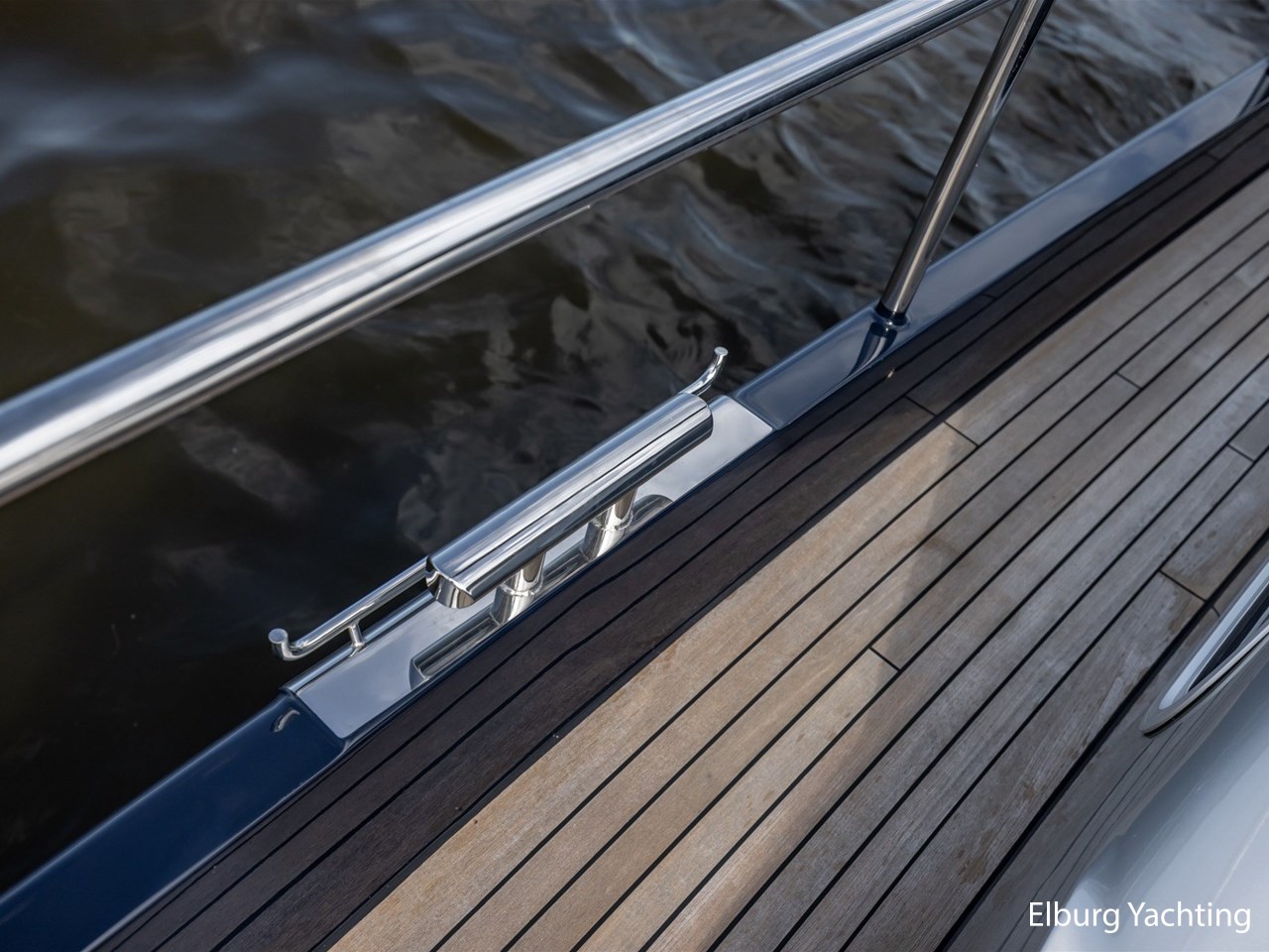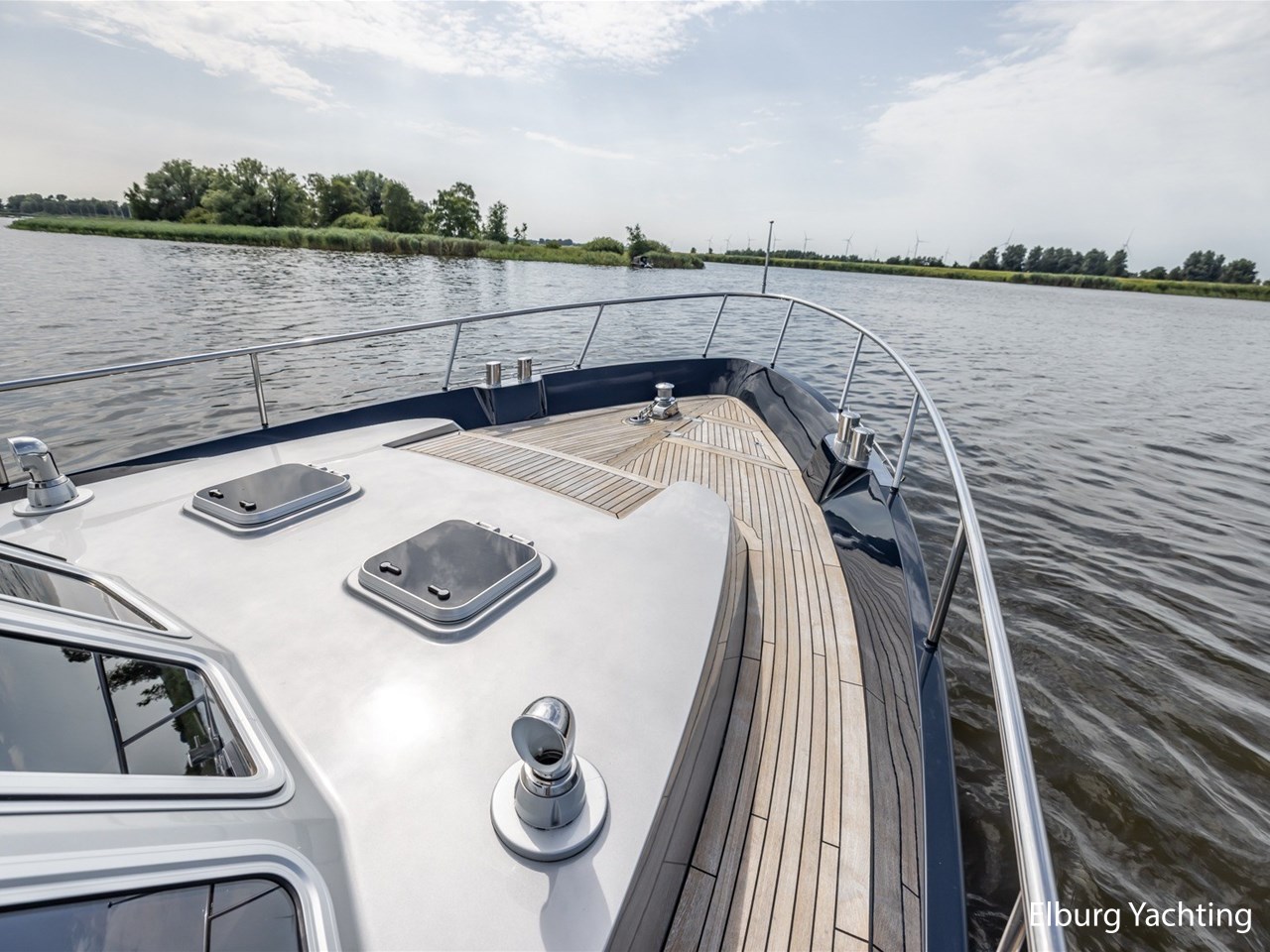 A true Dutch yacht, experience luxury on the water with this exclusive Holterman 50 motor yacht. This Dutch yacht features a spectacular interior design, a chic blue and grey metallic exterior colour scheme and a new Variotop convertible for an unrivalled cruising experience. With a flawless technical system and an advanced stabiliser system, this motor yacht ensures smooth sailing for carefree journeys anywhere. Elevate your maritime lifestyle with this top-class gem. Her features include: electric foldable aluminium radar arch, hydraulic fin stabilisers, electric convertible top, name lights, deck lights, rudder indicator, stereo, EMC electric engine controls, front window heater helm station, fixed cockpit table, 2 x deluxe helm seat, windscreen wiper control, enclosed bulwark, electric blinds for both bulwarks saloon plus front window, electric front window excluder, LED lighting, dimmers, dishwasher, washer-dryer Bosch Maxx 5, safe, wine cooler, tracvision, TV on lift, wind meter, rear view camera, UV filter water system, Stork hydrophore, horn, Kabola heating throughout the yacht, Webasto air conditioning (24. 000 BTU), Somfy system for electric operation of blinds in saloon, JVC DVD player with audio for TV, Hyab hydraulic Tender crane on aft deck, spacious settee in saloon, spacious owner's cabin, clearance approx. 3.40 m, spacious gangways, modern interior, beautiful engine room, AWL grip metallic paint. For questions and/or to make an appointment, you are welcome 7 days a week at Elburg Yachting.