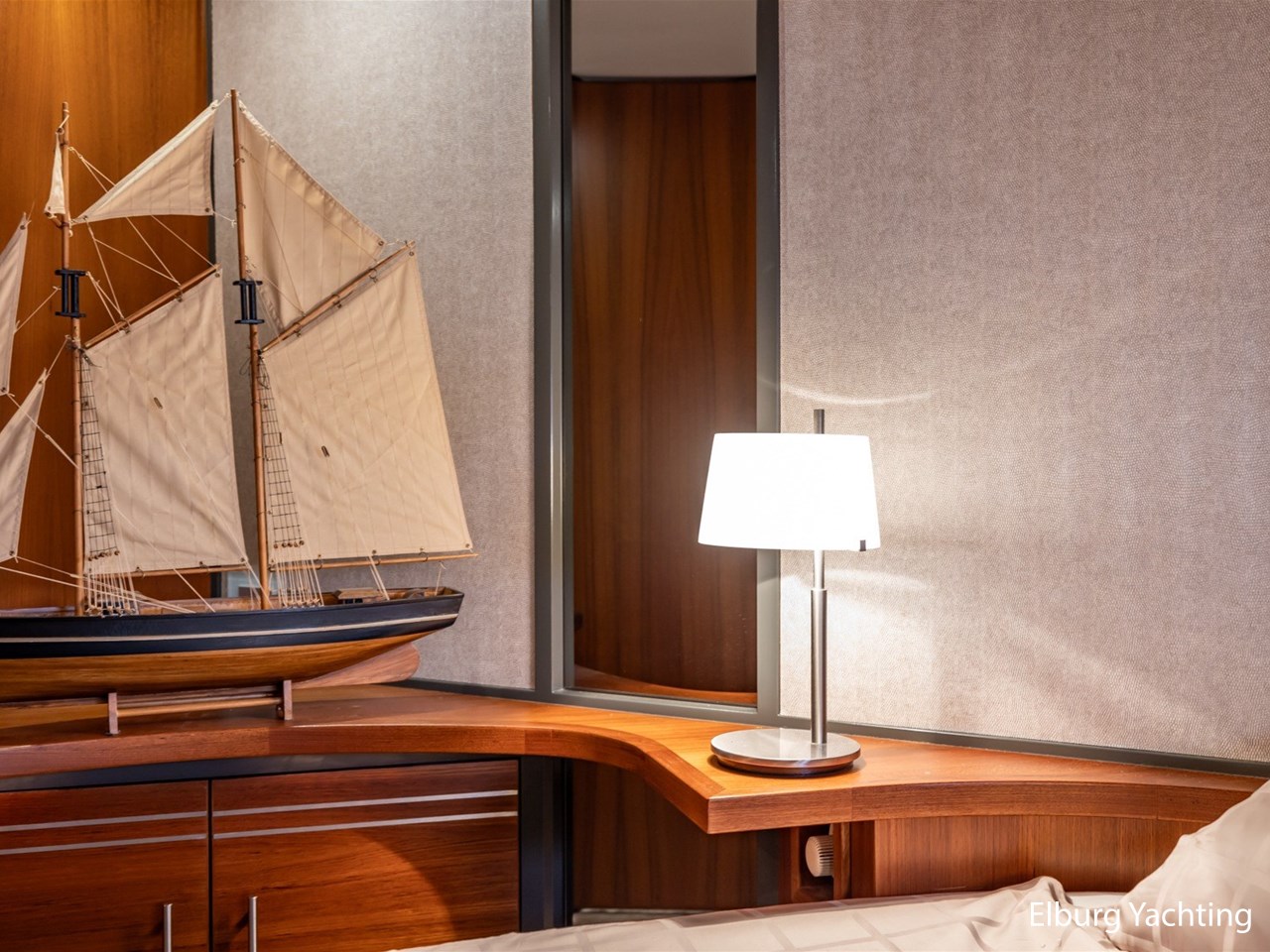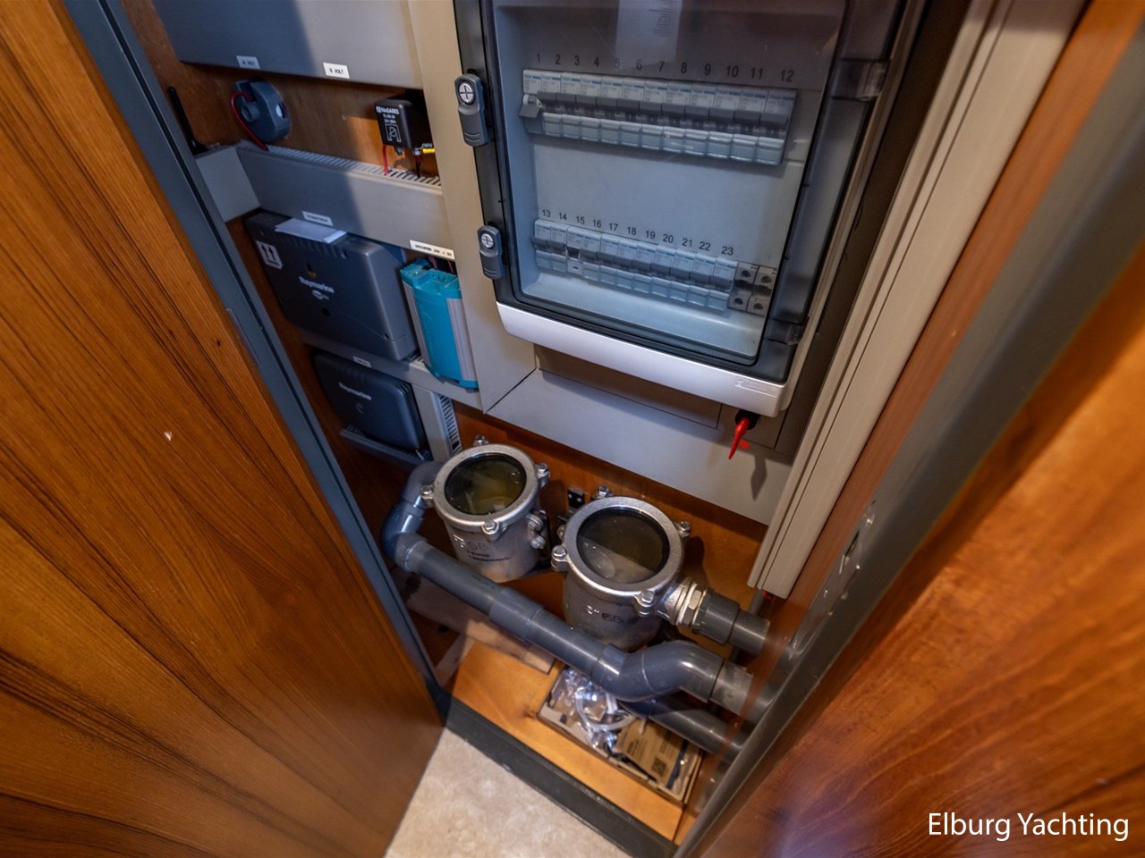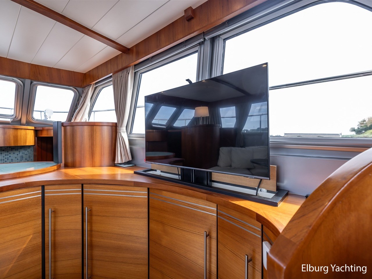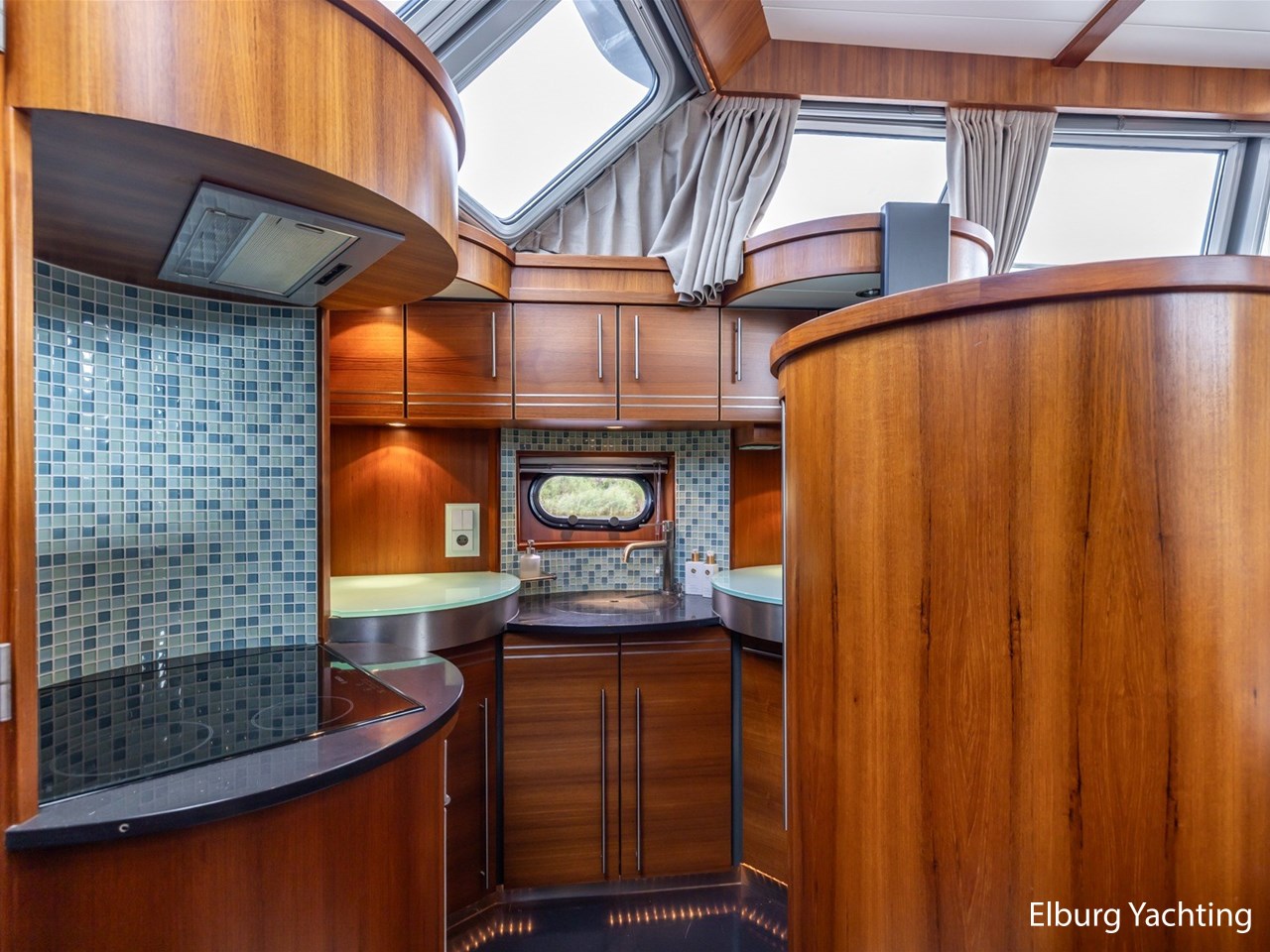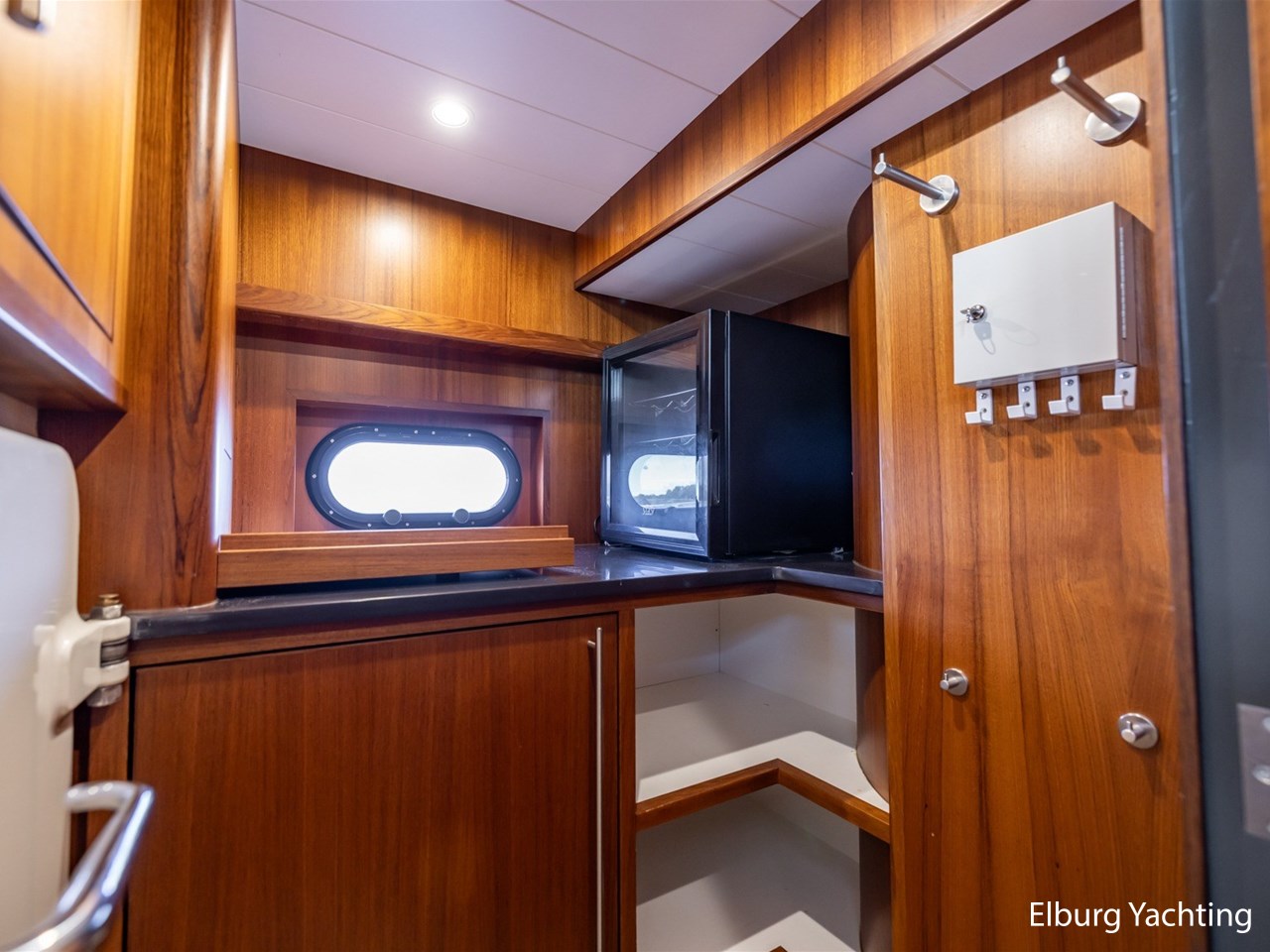 A true Dutch yacht, experience luxury on the water with this exclusive Holterman 50 motor yacht. This Dutch yacht features a spectacular interior design, a chic blue and grey metallic exterior colour scheme and a new Variotop convertible for an unrivalled cruising experience. With a flawless technical system and an advanced stabiliser system, this motor yacht ensures smooth sailing for carefree journeys anywhere. Elevate your maritime lifestyle with this top-class gem. Her features include: electric foldable aluminium radar arch, hydraulic fin stabilisers, electric convertible top, name lights, deck lights, rudder indicator, stereo, EMC electric engine controls, front window heater helm station, fixed cockpit table, 2 x deluxe helm seat, windscreen wiper control, enclosed bulwark, electric blinds for both bulwarks saloon plus front window, electric front window excluder, LED lighting, dimmers, dishwasher, washer-dryer Bosch Maxx 5, safe, wine cooler, tracvision, TV on lift, wind meter, rear view camera, UV filter water system, Stork hydrophore, horn, Kabola heating throughout the yacht, Webasto air conditioning (24. 000 BTU), Somfy system for electric operation of blinds in saloon, JVC DVD player with audio for TV, Hyab hydraulic Tender crane on aft deck, spacious settee in saloon, spacious owner's cabin, clearance approx. 3.40 m, spacious gangways, modern interior, beautiful engine room, AWL grip metallic paint. For questions and/or to make an appointment, you are welcome 7 days a week at Elburg Yachting.