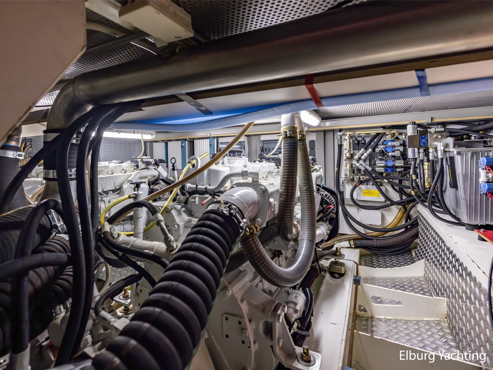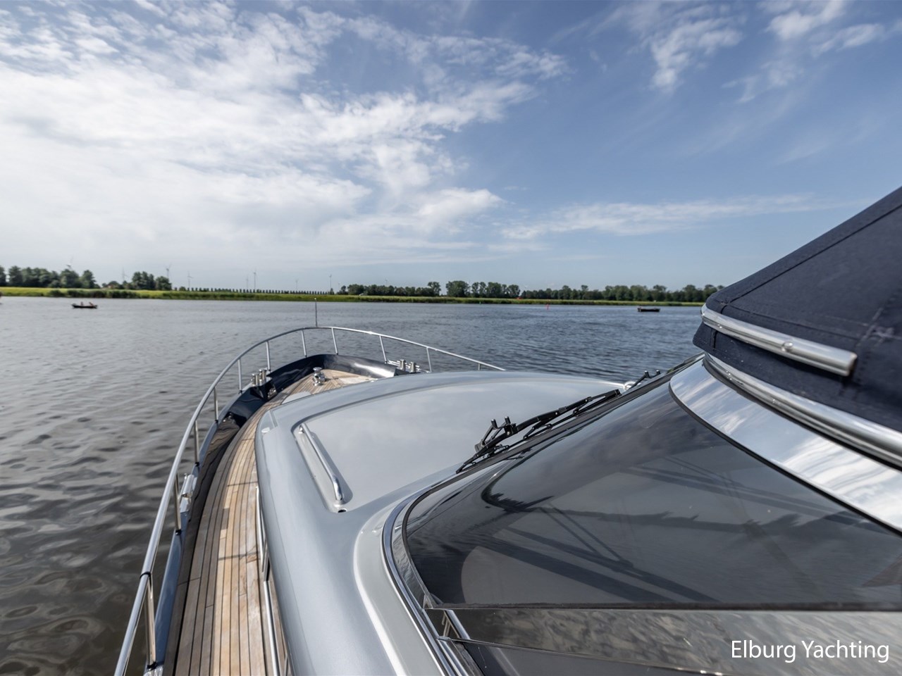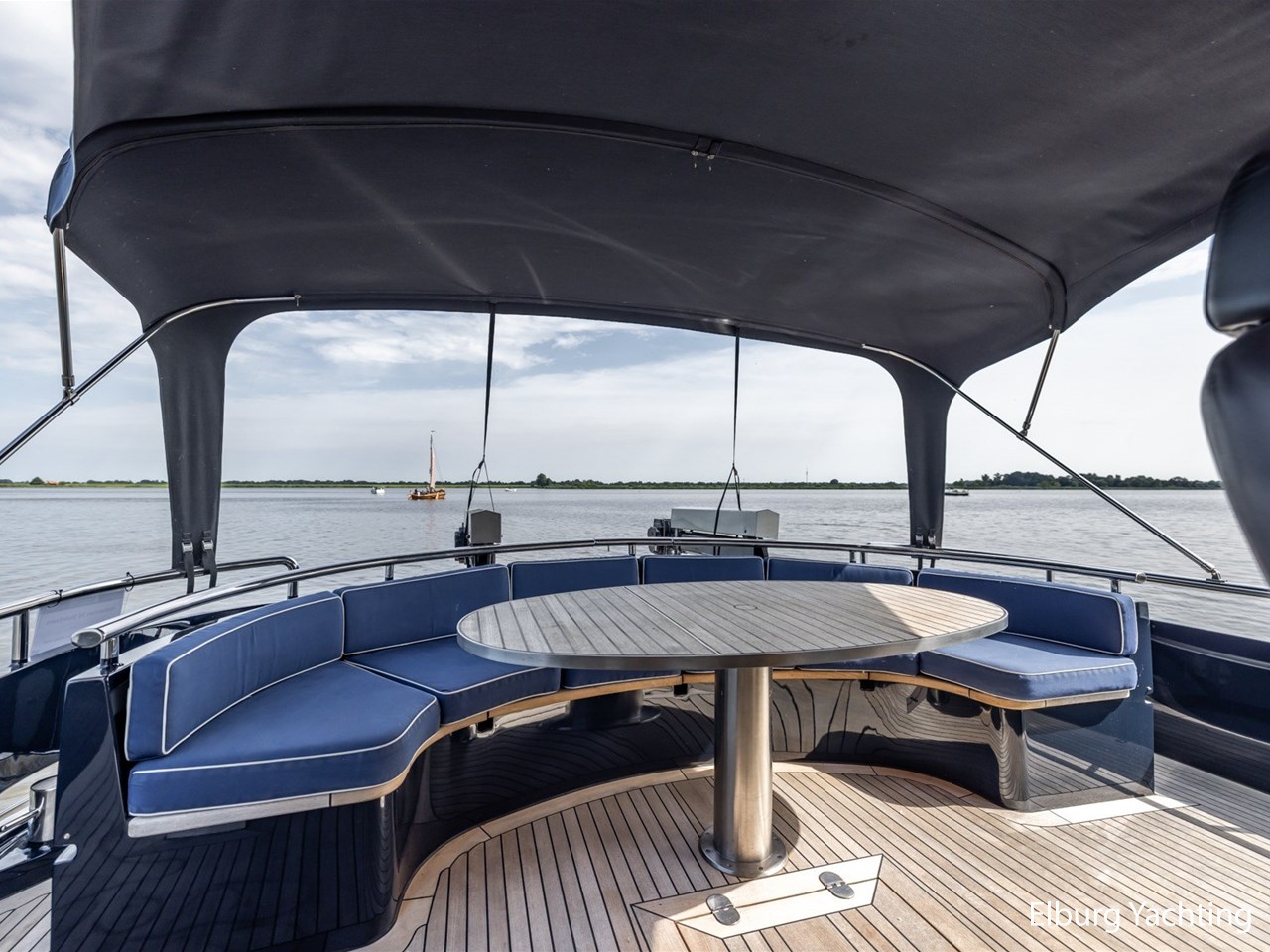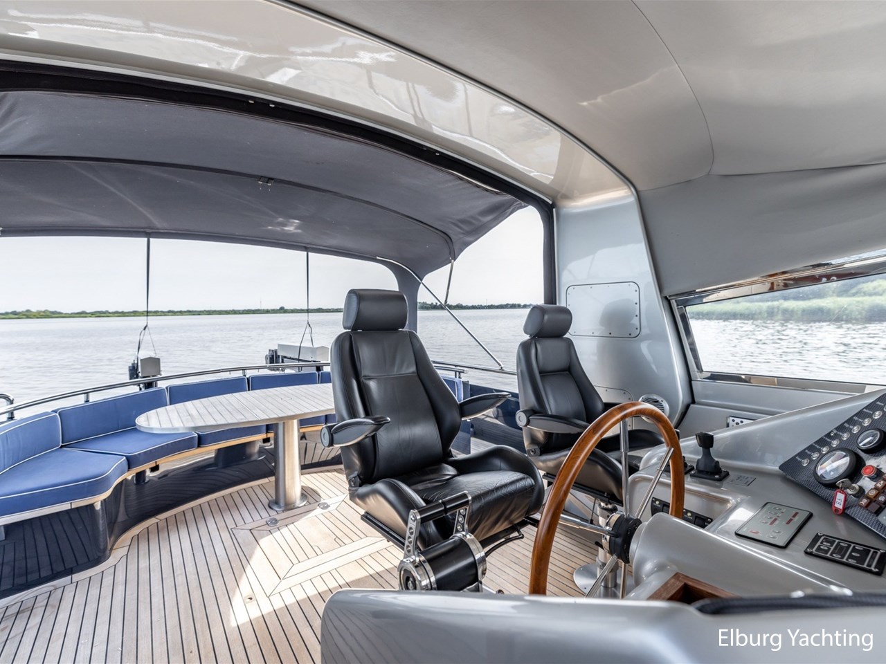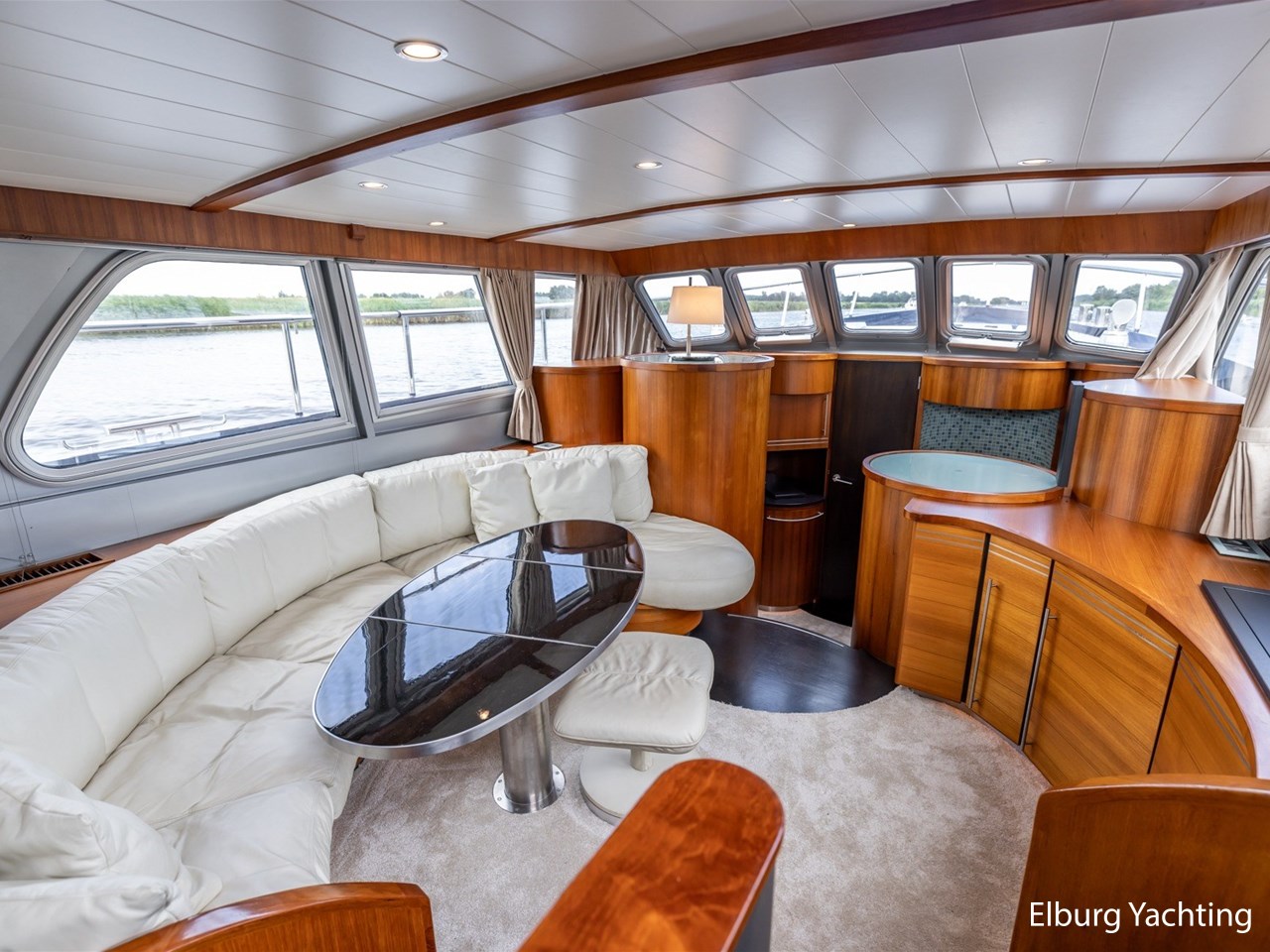 A true Dutch yacht, experience luxury on the water with this exclusive Holterman 50 motor yacht. This Dutch yacht features a spectacular interior design, a chic blue and grey metallic exterior colour scheme and a new Variotop convertible for an unrivalled cruising experience. With a flawless technical system and an advanced stabiliser system, this motor yacht ensures smooth sailing for carefree journeys anywhere. Elevate your maritime lifestyle with this top-class gem. Her features include: electric foldable aluminium radar arch, hydraulic fin stabilisers, electric convertible top, name lights, deck lights, rudder indicator, stereo, EMC electric engine controls, front window heater helm station, fixed cockpit table, 2 x deluxe helm seat, windscreen wiper control, enclosed bulwark, electric blinds for both bulwarks saloon plus front window, electric front window excluder, LED lighting, dimmers, dishwasher, washer-dryer Bosch Maxx 5, safe, wine cooler, tracvision, TV on lift, wind meter, rear view camera, UV filter water system, Stork hydrophore, horn, Kabola heating throughout the yacht, Webasto air conditioning (24. 000 BTU), Somfy system for electric operation of blinds in saloon, JVC DVD player with audio for TV, Hyab hydraulic Tender crane on aft deck, spacious settee in saloon, spacious owner's cabin, clearance approx. 3.40 m, spacious gangways, modern interior, beautiful engine room, AWL grip metallic paint. For questions and/or to make an appointment, you are welcome 7 days a week at Elburg Yachting.