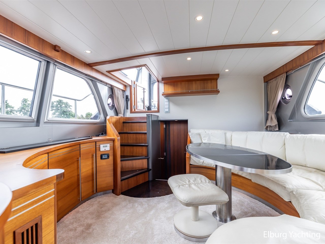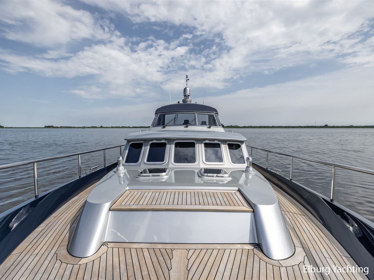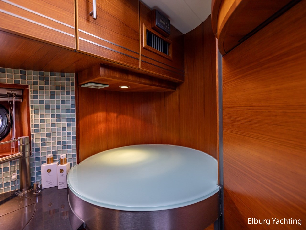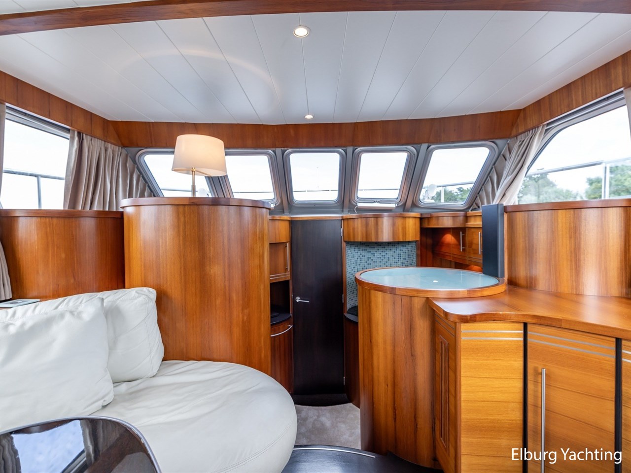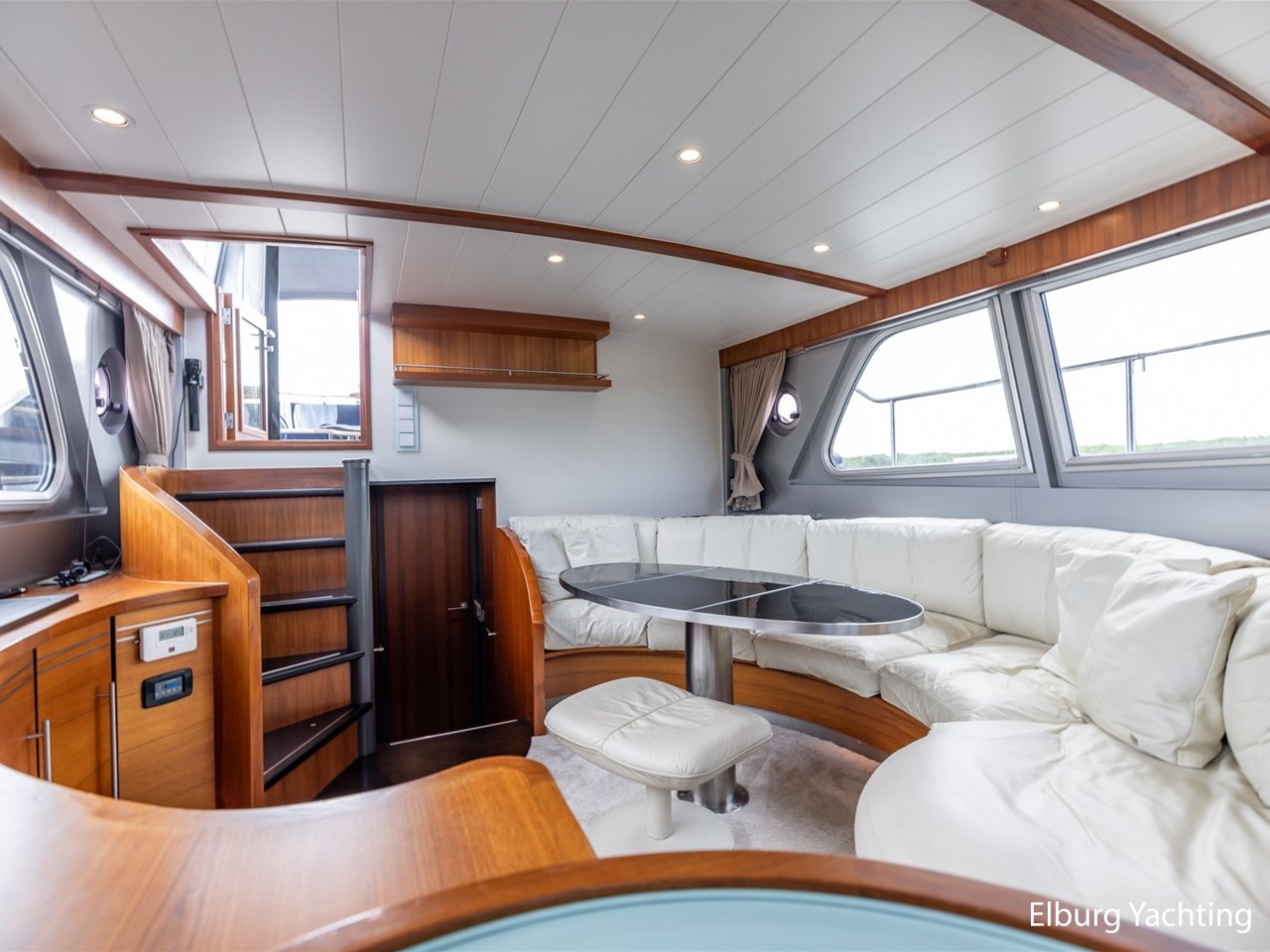 A true Dutch yacht, experience luxury on the water with this exclusive Holterman 50 motor yacht. This Dutch yacht features a spectacular interior design, a chic blue and grey metallic exterior colour scheme and a new Variotop convertible for an unrivalled cruising experience. With a flawless technical system and an advanced stabiliser system, this motor yacht ensures smooth sailing for carefree journeys anywhere. Elevate your maritime lifestyle with this top-class gem. Her features include: electric foldable aluminium radar arch, hydraulic fin stabilisers, electric convertible top, name lights, deck lights, rudder indicator, stereo, EMC electric engine controls, front window heater helm station, fixed cockpit table, 2 x deluxe helm seat, windscreen wiper control, enclosed bulwark, electric blinds for both bulwarks saloon plus front window, electric front window excluder, LED lighting, dimmers, dishwasher, washer-dryer Bosch Maxx 5, safe, wine cooler, tracvision, TV on lift, wind meter, rear view camera, UV filter water system, Stork hydrophore, horn, Kabola heating throughout the yacht, Webasto air conditioning (24. 000 BTU), Somfy system for electric operation of blinds in saloon, JVC DVD player with audio for TV, Hyab hydraulic Tender crane on aft deck, spacious settee in saloon, spacious owner's cabin, clearance approx. 3.40 m, spacious gangways, modern interior, beautiful engine room, AWL grip metallic paint. For questions and/or to make an appointment, you are welcome 7 days a week at Elburg Yachting.