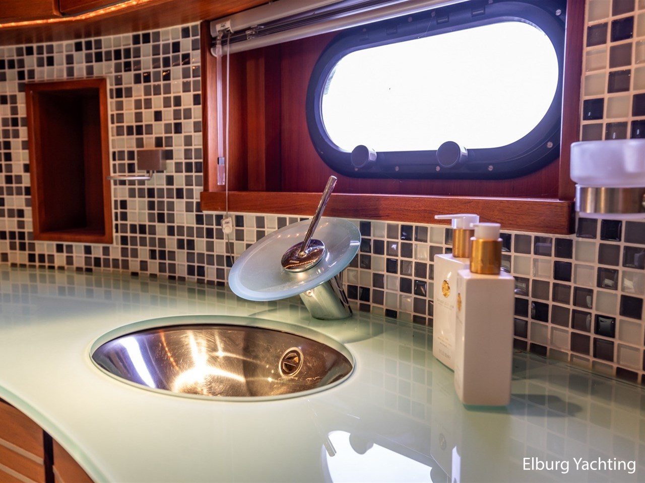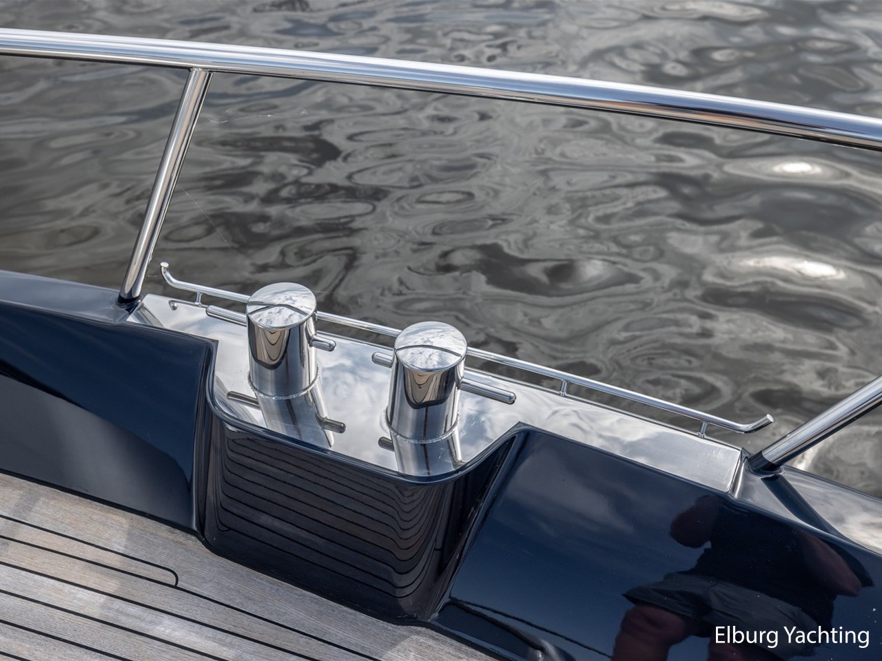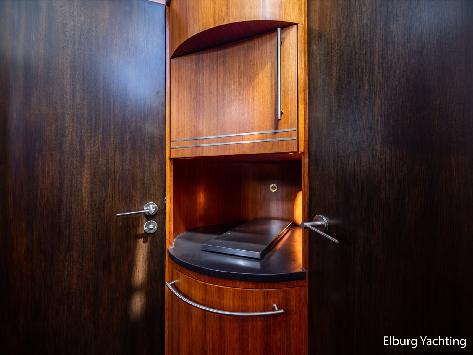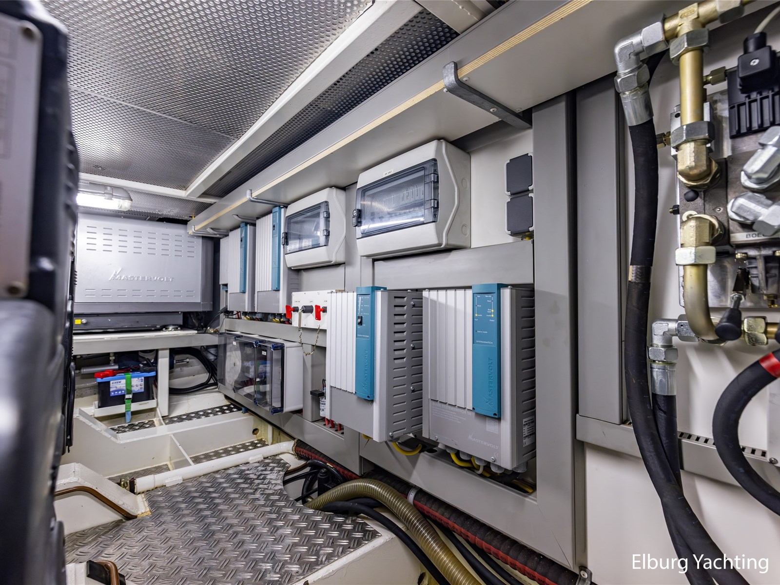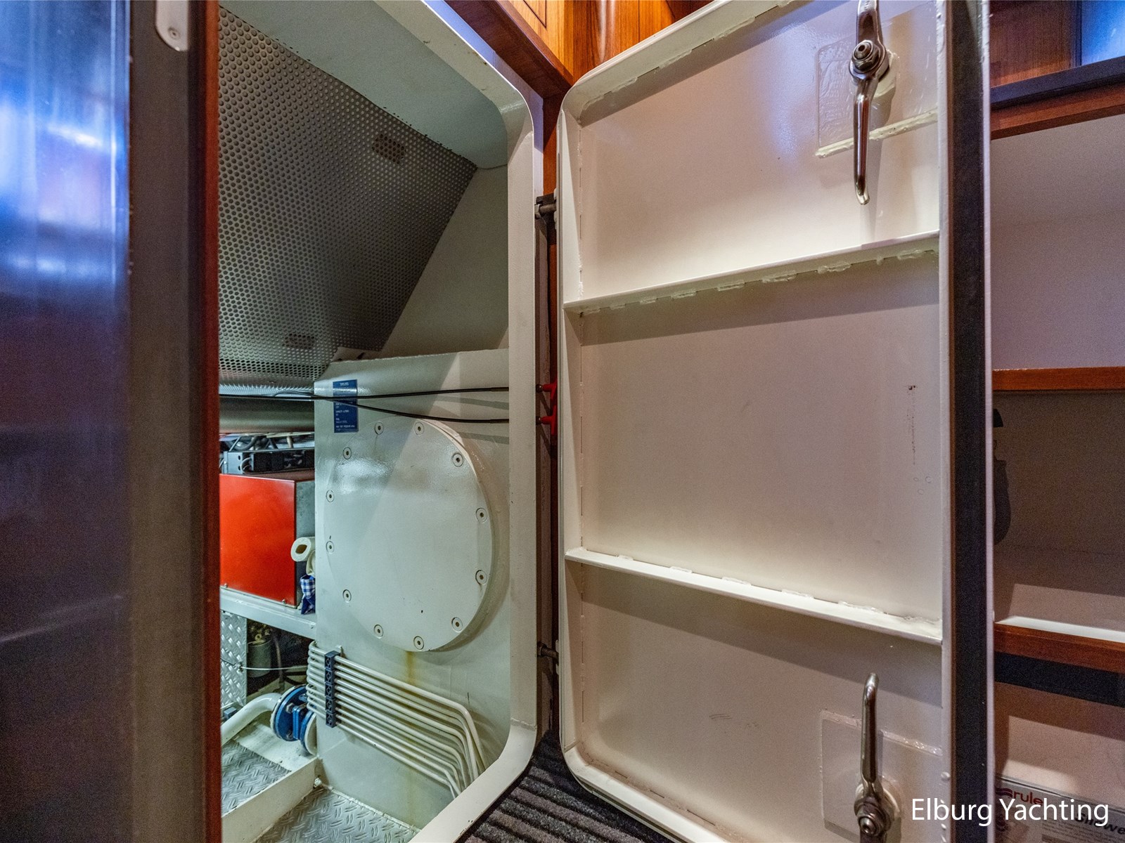 A true Dutch yacht, experience luxury on the water with this exclusive Holterman 50 motor yacht. This Dutch yacht features a spectacular interior design, a chic blue and grey metallic exterior colour scheme and a new Variotop convertible for an unrivalled cruising experience. With a flawless technical system and an advanced stabiliser system, this motor yacht ensures smooth sailing for carefree journeys anywhere. Elevate your maritime lifestyle with this top-class gem. Her features include: electric foldable aluminium radar arch, hydraulic fin stabilisers, electric convertible top, name lights, deck lights, rudder indicator, stereo, EMC electric engine controls, front window heater helm station, fixed cockpit table, 2 x deluxe helm seat, windscreen wiper control, enclosed bulwark, electric blinds for both bulwarks saloon plus front window, electric front window excluder, LED lighting, dimmers, dishwasher, washer-dryer Bosch Maxx 5, safe, wine cooler, tracvision, TV on lift, wind meter, rear view camera, UV filter water system, Stork hydrophore, horn, Kabola heating throughout the yacht, Webasto air conditioning (24. 000 BTU), Somfy system for electric operation of blinds in saloon, JVC DVD player with audio for TV, Hyab hydraulic Tender crane on aft deck, spacious settee in saloon, spacious owner's cabin, clearance approx. 3.40 m, spacious gangways, modern interior, beautiful engine room, AWL grip metallic paint. For questions and/or to make an appointment, you are welcome 7 days a week at Elburg Yachting.