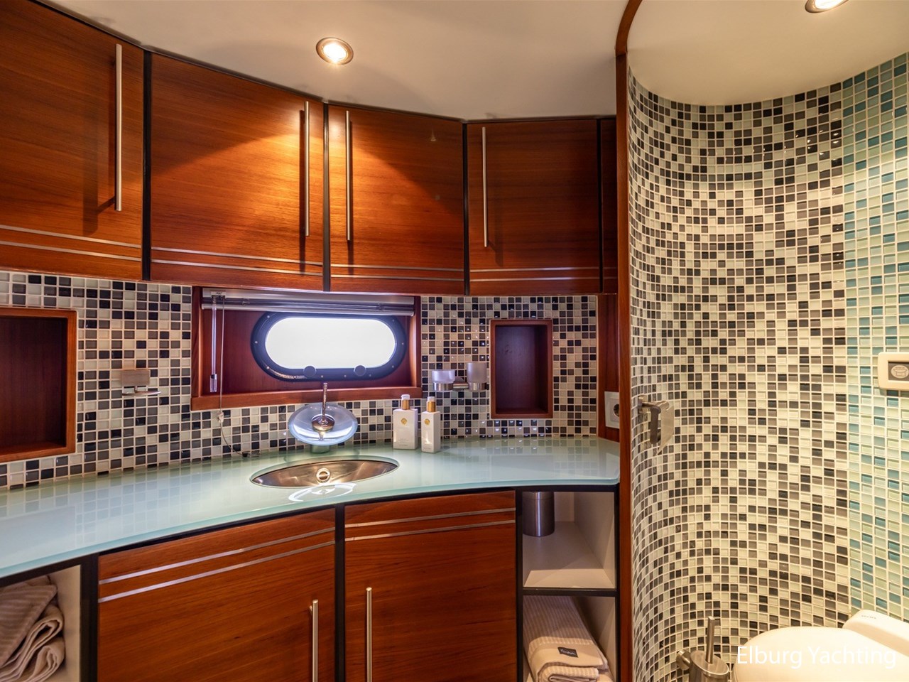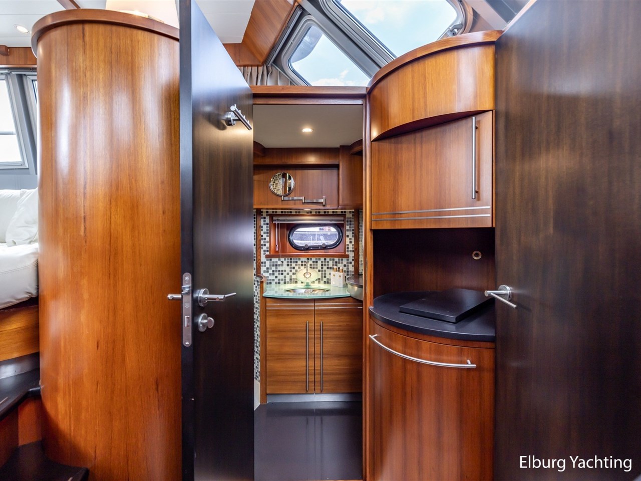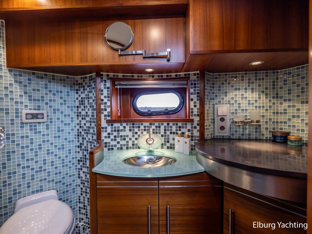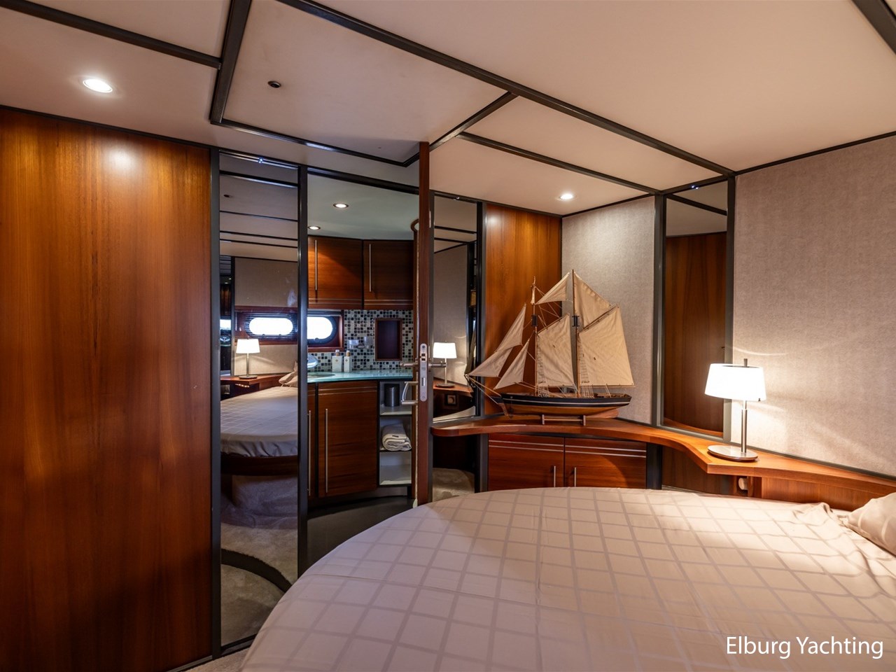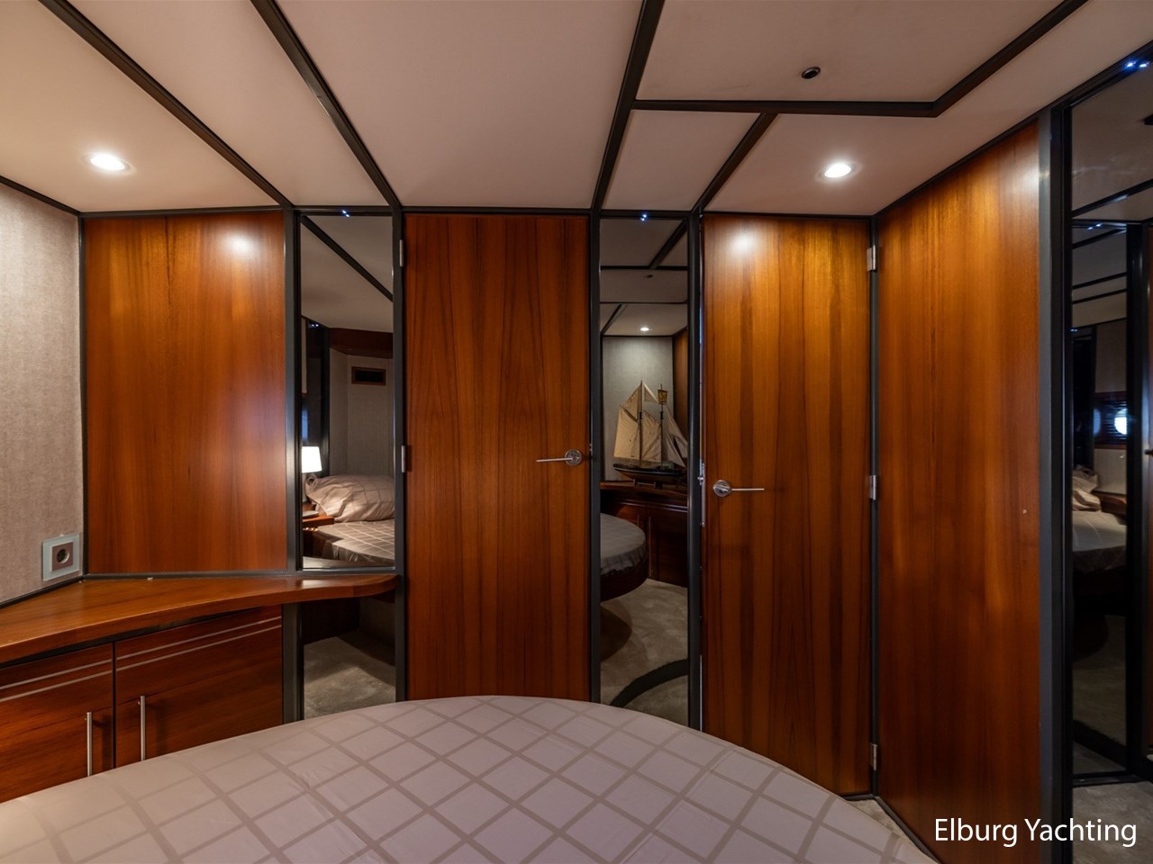 A true Dutch yacht, experience luxury on the water with this exclusive Holterman 50 motor yacht. This Dutch yacht features a spectacular interior design, a chic blue and grey metallic exterior colour scheme and a new Variotop convertible for an unrivalled cruising experience. With a flawless technical system and an advanced stabiliser system, this motor yacht ensures smooth sailing for carefree journeys anywhere. Elevate your maritime lifestyle with this top-class gem. Her features include: electric foldable aluminium radar arch, hydraulic fin stabilisers, electric convertible top, name lights, deck lights, rudder indicator, stereo, EMC electric engine controls, front window heater helm station, fixed cockpit table, 2 x deluxe helm seat, windscreen wiper control, enclosed bulwark, electric blinds for both bulwarks saloon plus front window, electric front window excluder, LED lighting, dimmers, dishwasher, washer-dryer Bosch Maxx 5, safe, wine cooler, tracvision, TV on lift, wind meter, rear view camera, UV filter water system, Stork hydrophore, horn, Kabola heating throughout the yacht, Webasto air conditioning (24. 000 BTU), Somfy system for electric operation of blinds in saloon, JVC DVD player with audio for TV, Hyab hydraulic Tender crane on aft deck, spacious settee in saloon, spacious owner's cabin, clearance approx. 3.40 m, spacious gangways, modern interior, beautiful engine room, AWL grip metallic paint. For questions and/or to make an appointment, you are welcome 7 days a week at Elburg Yachting.
