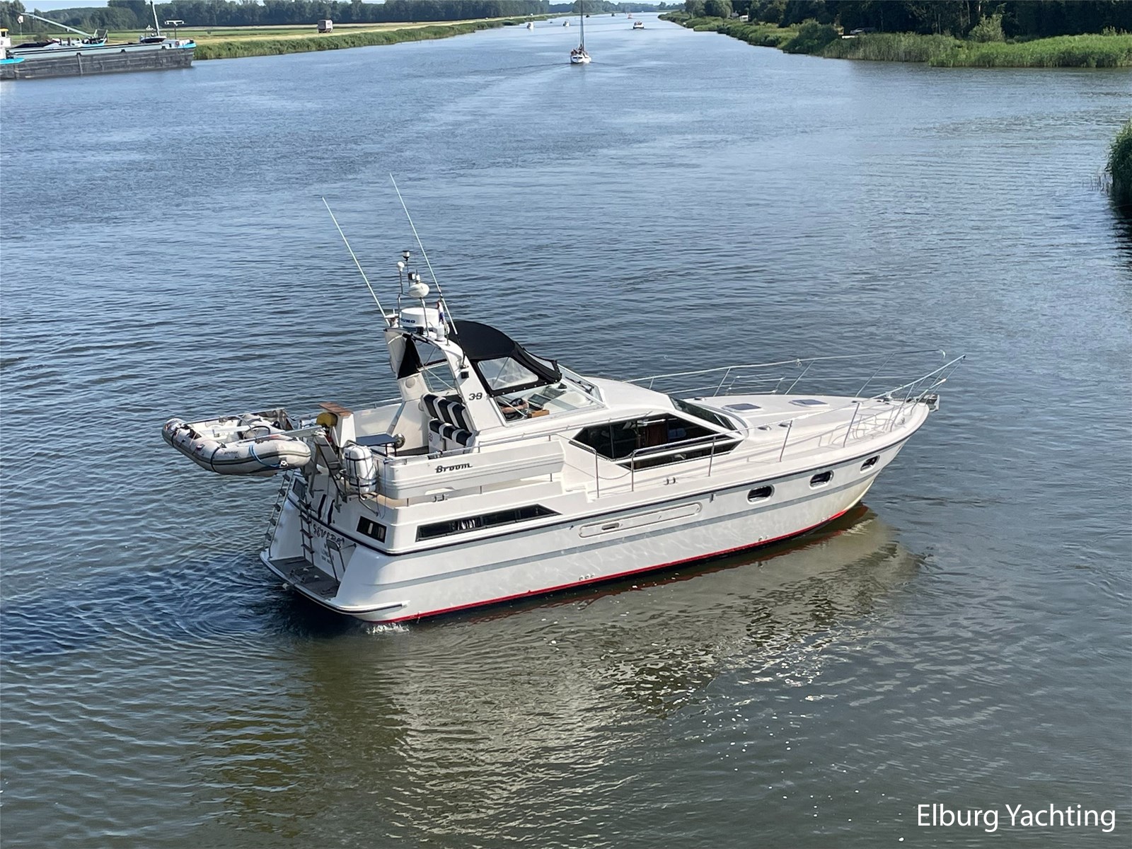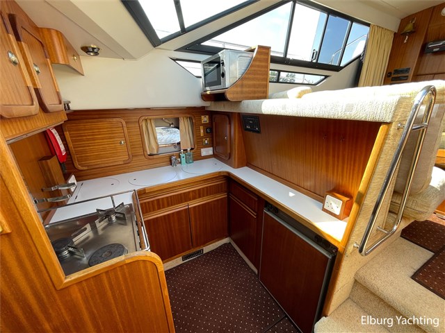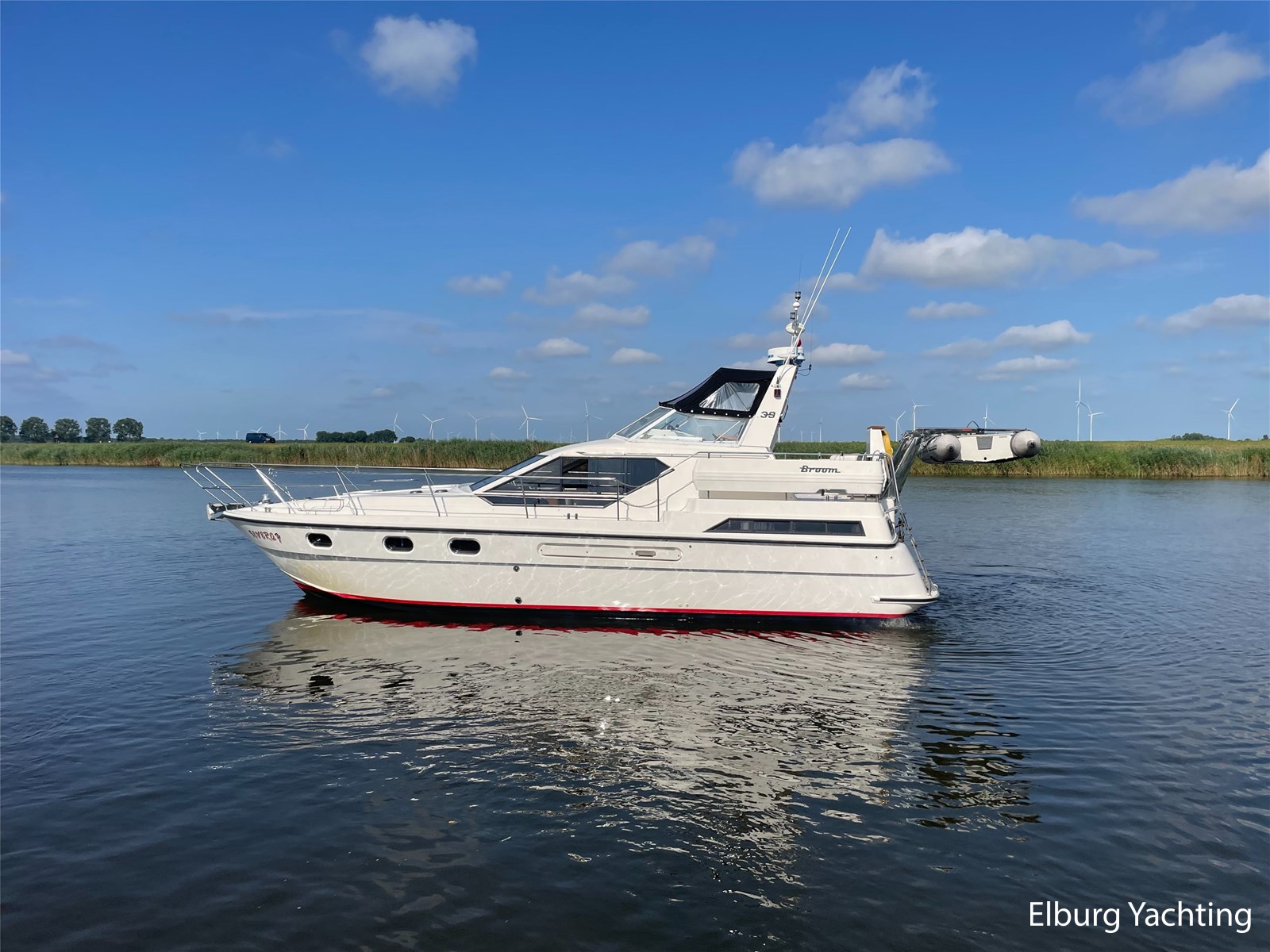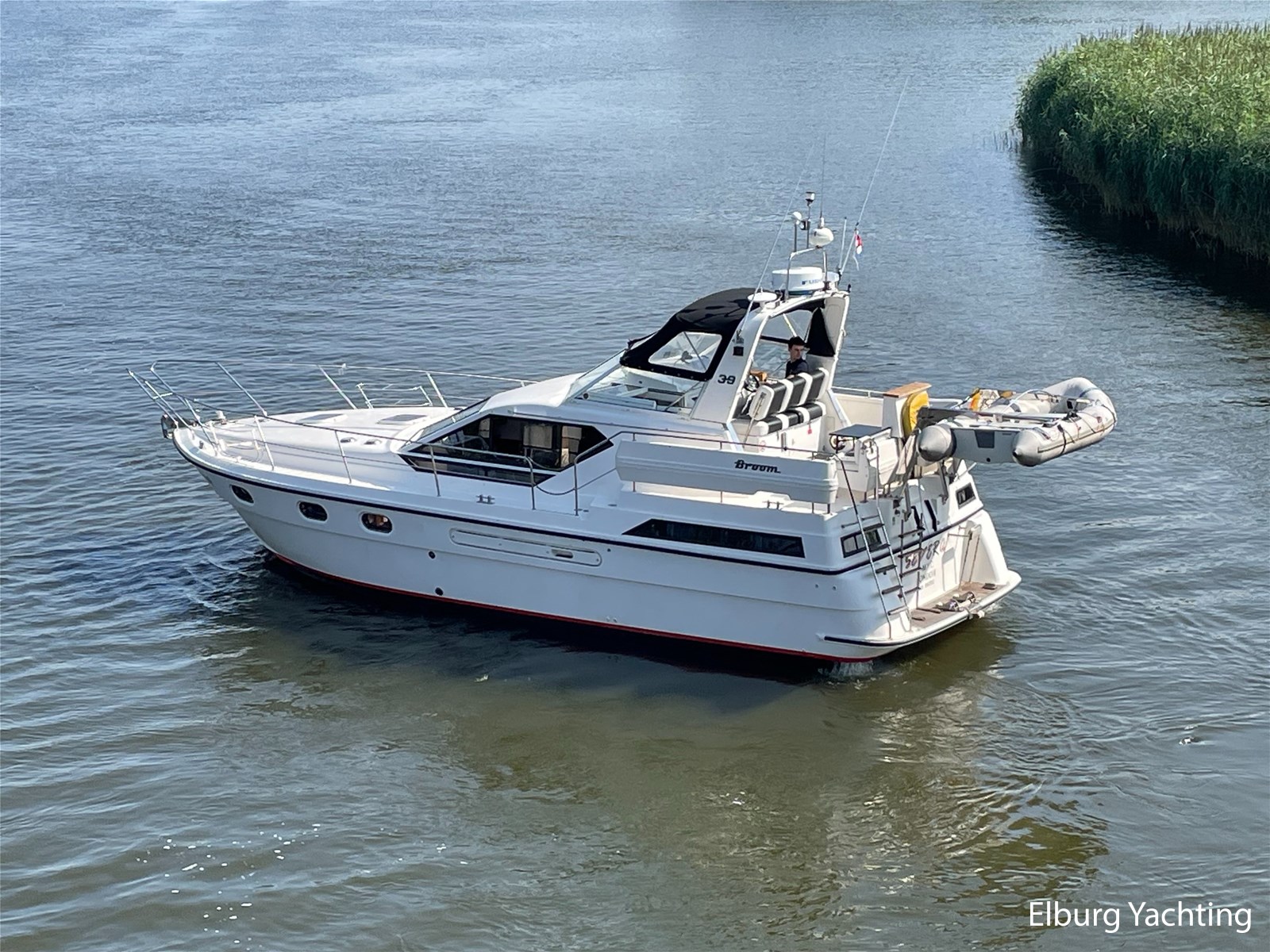 This Broom 39 is a real comfortable all-rounder, suitable for both sea and inland waters, the yacht was purchased by the current owner in 2004 and has made trips from the UK to Paris and has sailed in the Netherlands, Germany, Scandinavia and also visited several Baltic ports. She is further equipped with. : covers for windscreens and rear seats, bimini, mosquito nets, quadrophonic sound system, multiple drink cabinets, safe, spare propeller, a selection of Volvo engine parts, full service where all engine fillers and impellers were replaced in 2024 (serviced annually) , transmission oil replaced (2023), starboard engine overhauled 2019, port engine new heat exchanger, 100 hours since, 2024 new electric macerator pump for toilet aft, Pump toilet aft service 2024, floor coverings (2019), alternator starboard renewed (2023), V-belts engine replaced (2023) , new paint hull and antifouling (2019), new shower aft (2021), new anodes on hull and engine shafts (2024), new engine- and service batteries (2024).