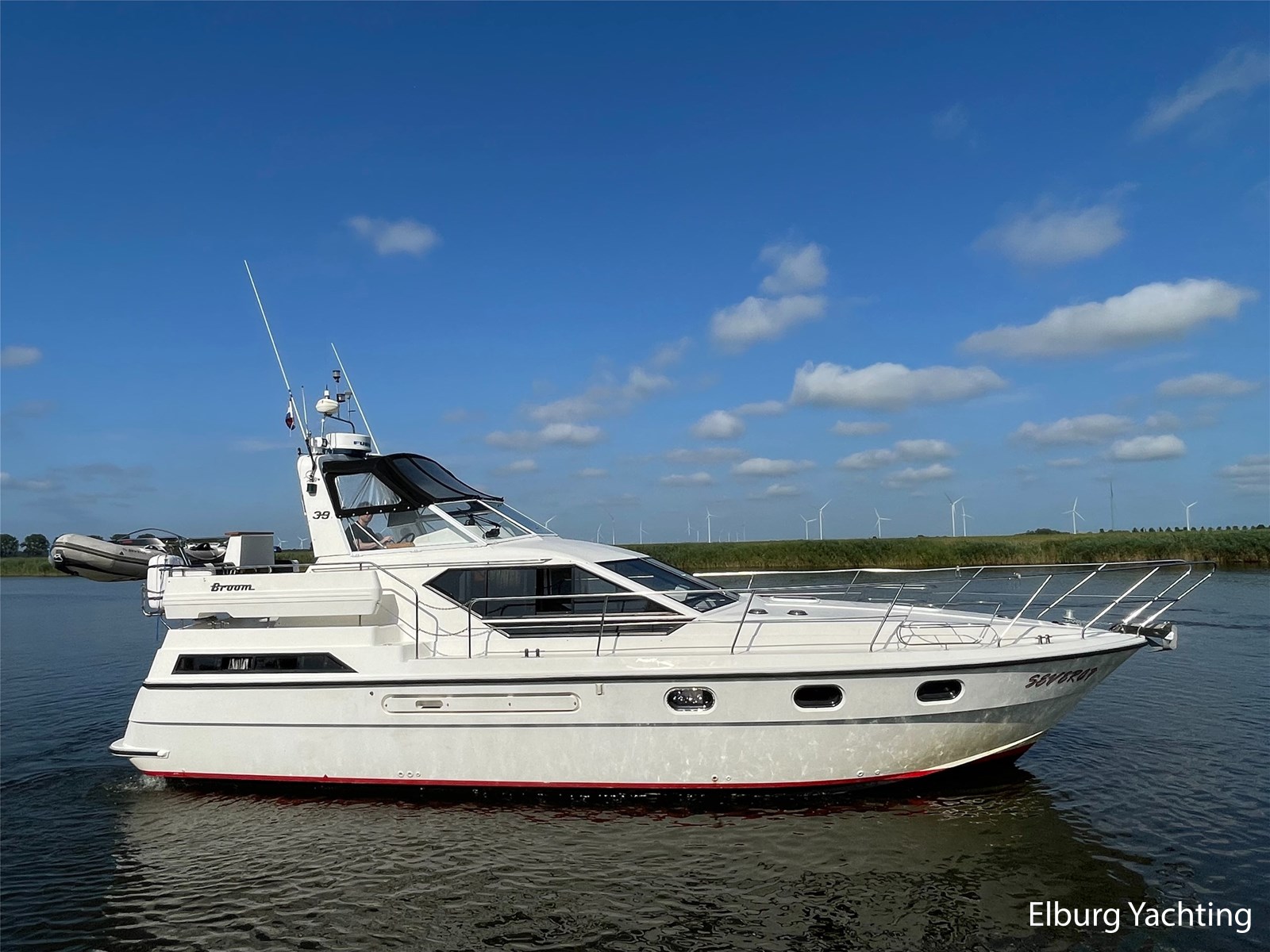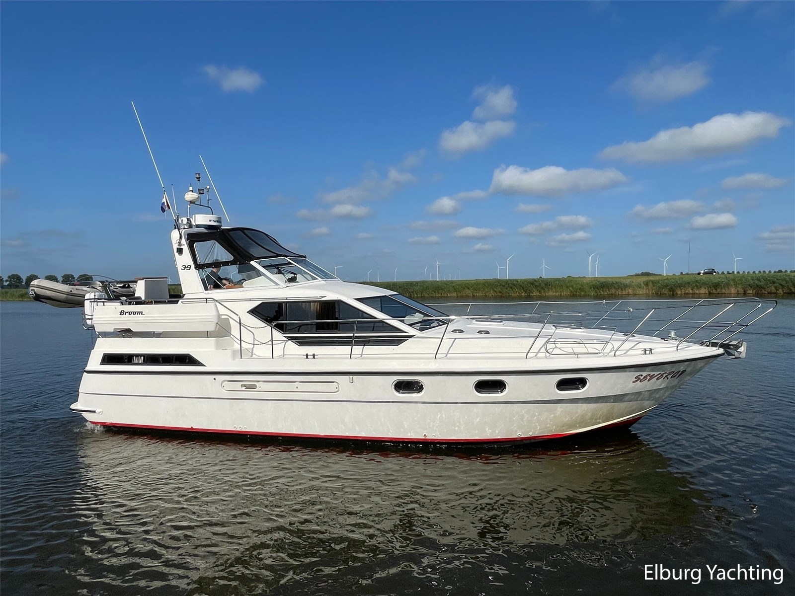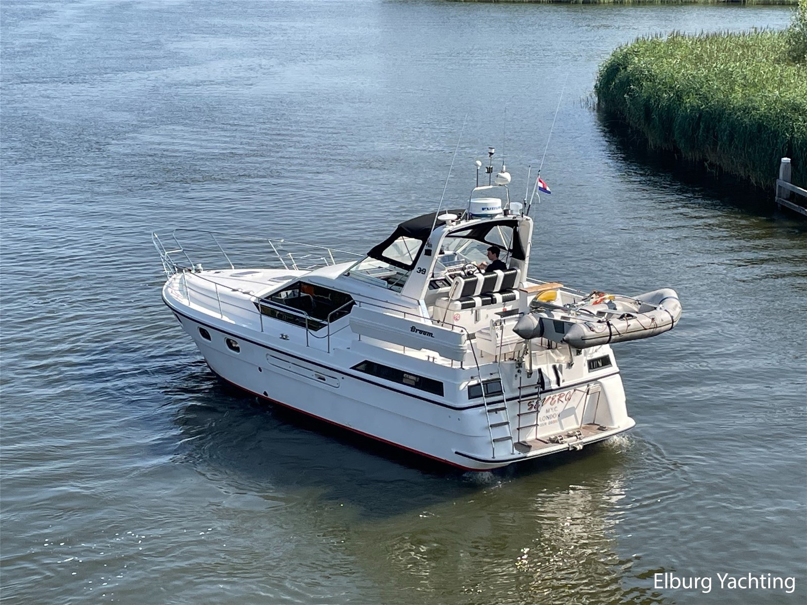 This Broom 39 is a real comfortable all-rounder, suitable for both sea and inland waters, the yacht was purchased by the current owner in 2004 and has made trips from the UK to Paris and has sailed in the Netherlands, Germany, Scandinavia and also visited several Baltic ports. She is further equipped with. : covers for windscreens and rear seats, bimini, mosquito nets, quadrophonic sound system, multiple drink cabinets, safe, spare propeller, a selection of Volvo engine parts, full service where all engine fillers and impellers were replaced in 2024 (serviced annually) , transmission oil replaced (2023), starboard engine overhauled 2019, port engine new heat exchanger, 100 hours since, 2024 new electric macerator pump for toilet aft, Pump toilet aft service 2024, floor coverings (2019), alternator starboard renewed (2023), V-belts engine replaced (2023) , new paint hull and antifouling (2019), new shower aft (2021), new anodes on hull and engine shafts (2024), new engine- and service batteries (2024).