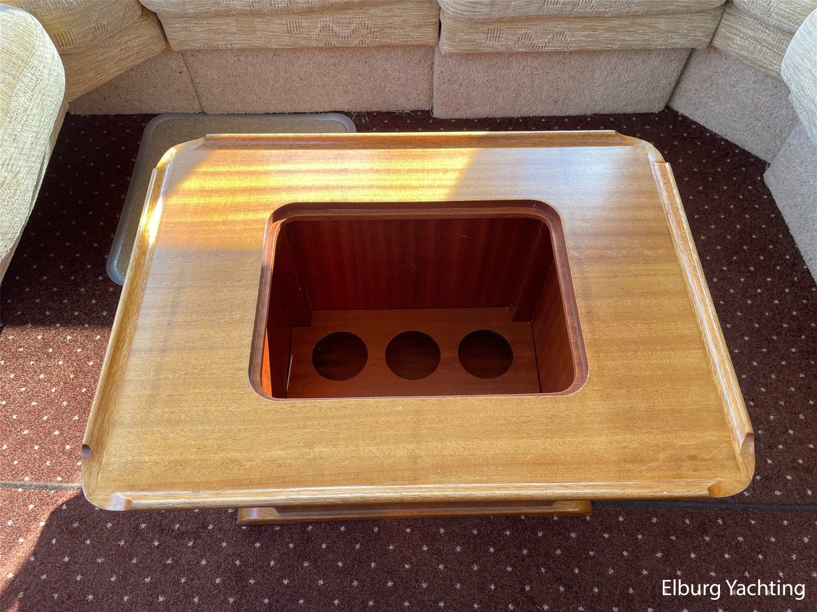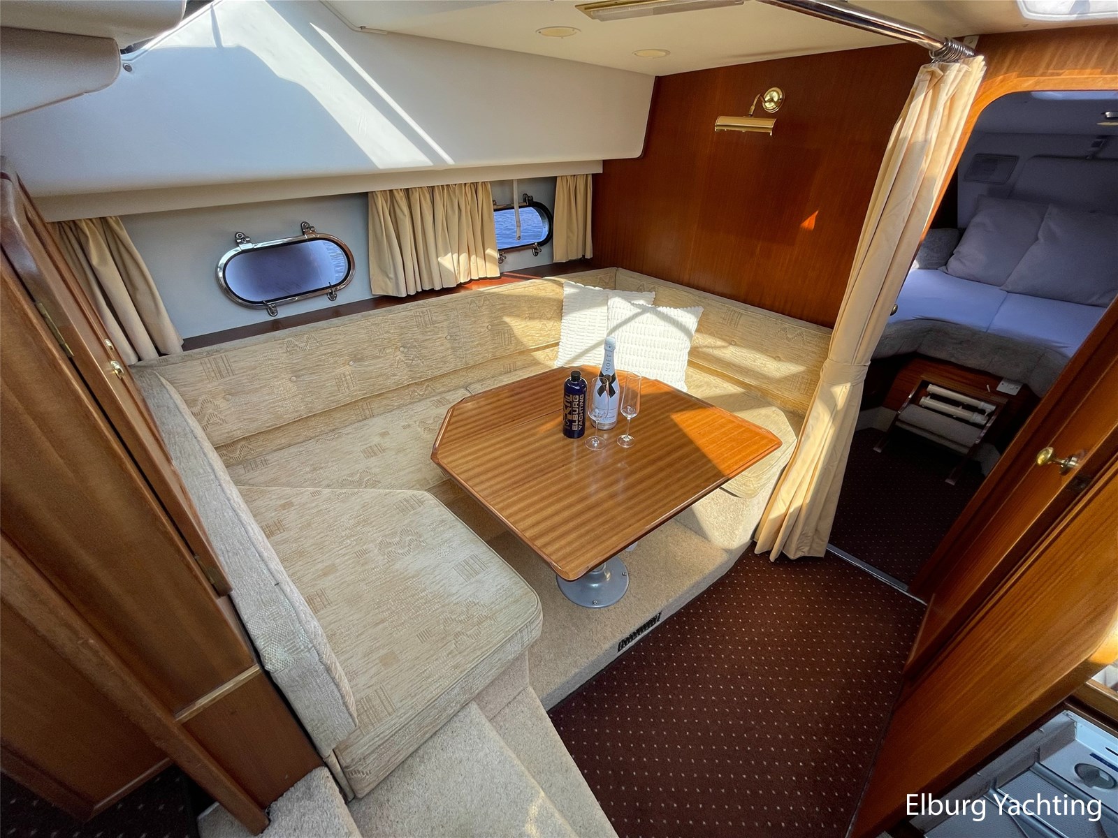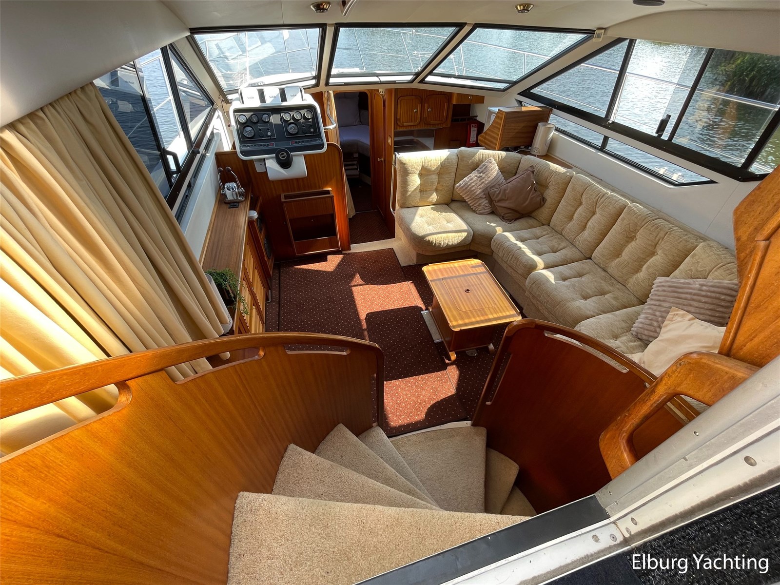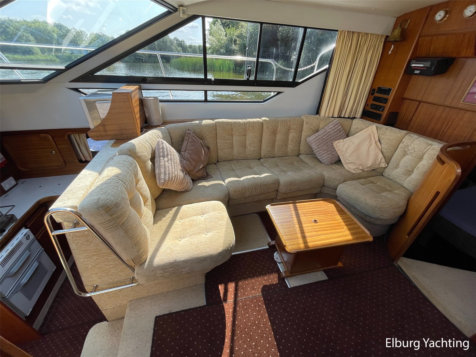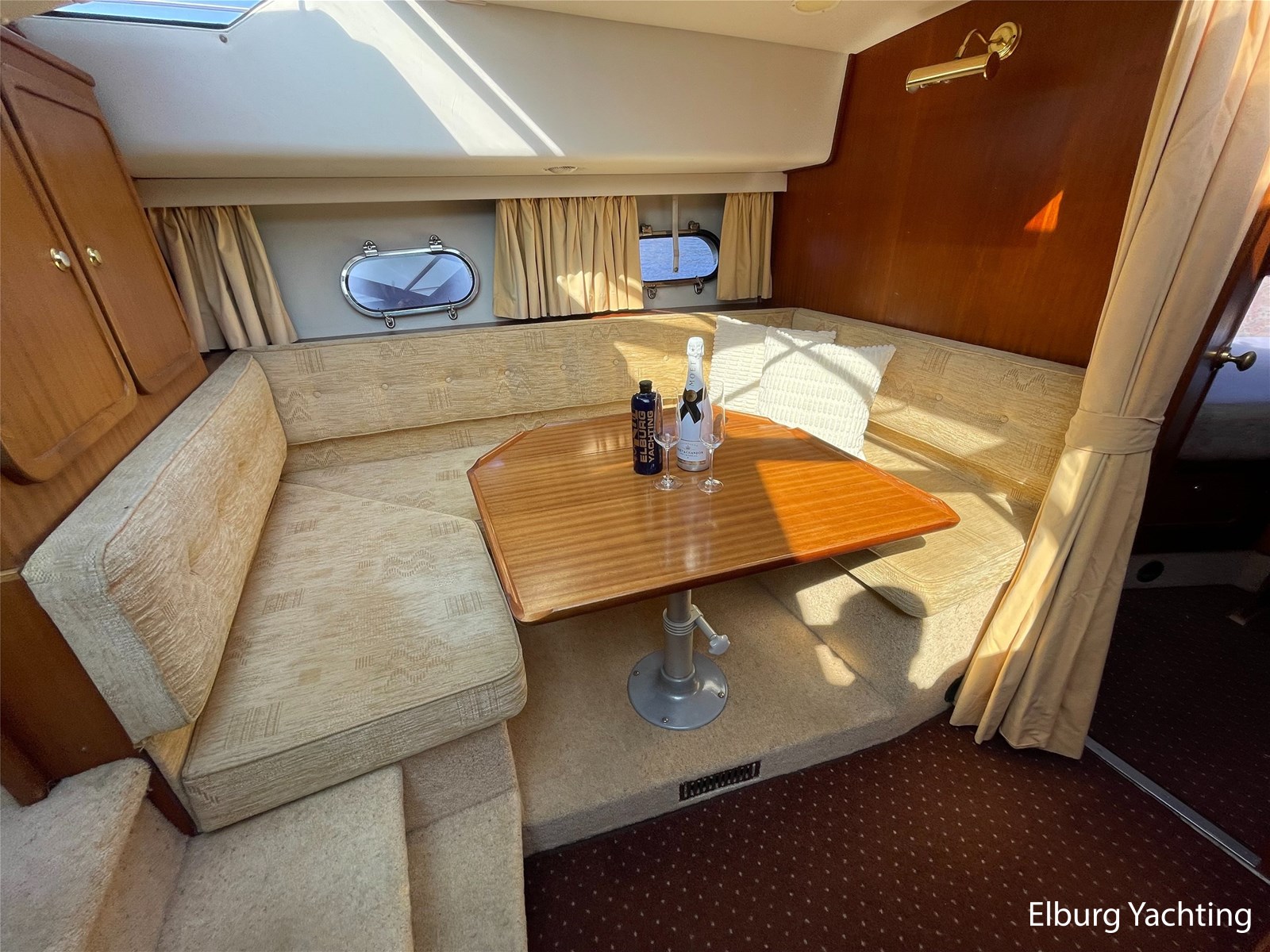 - Classic marine mahogany combined with beige comfortable upholstery