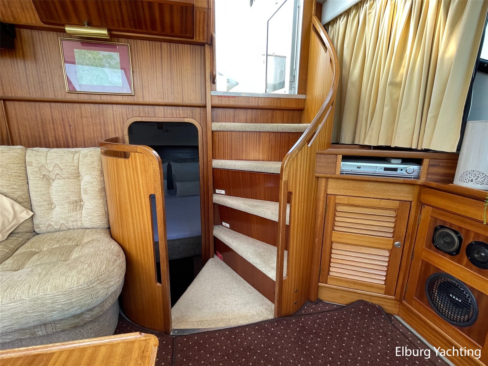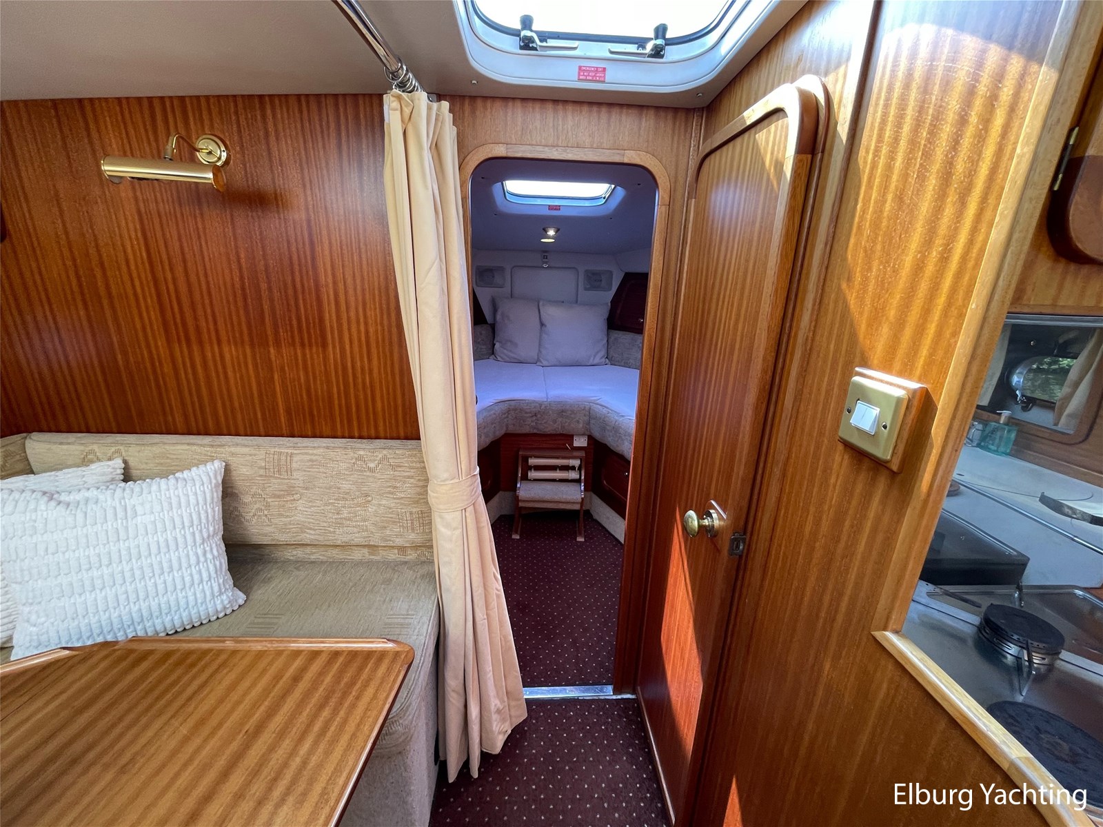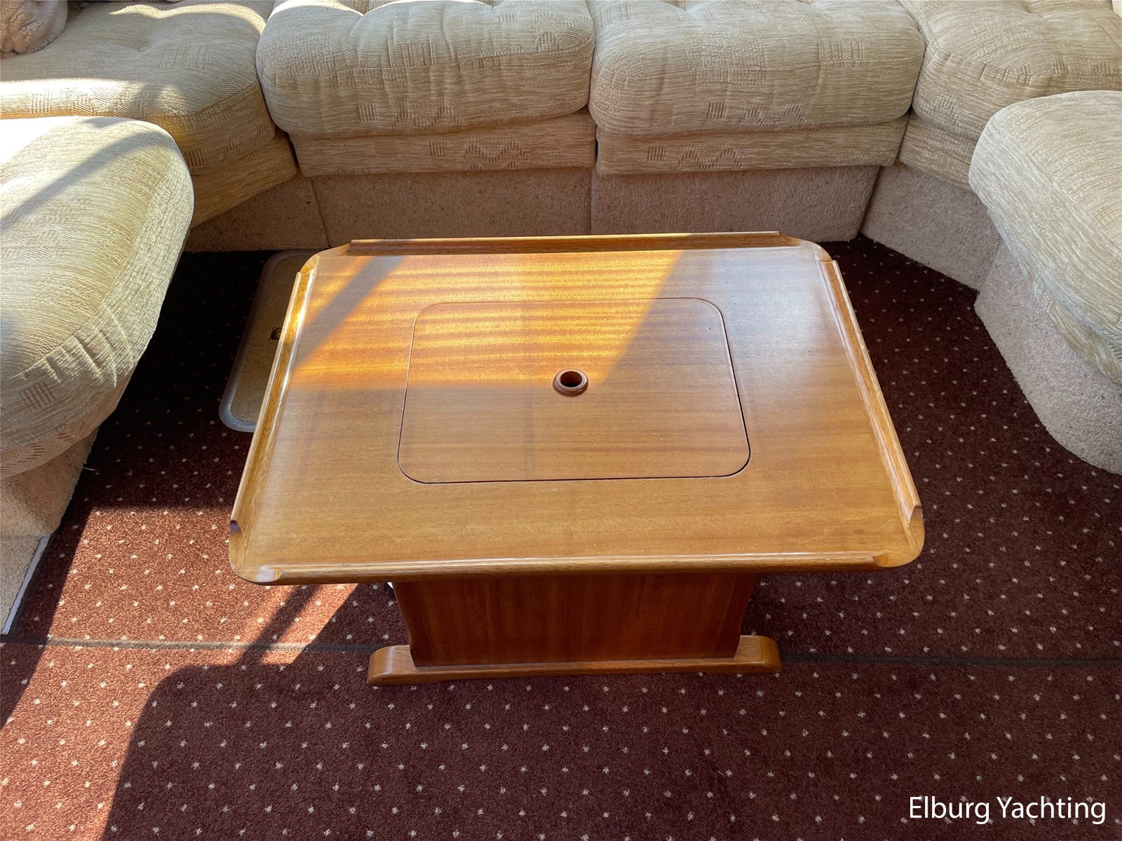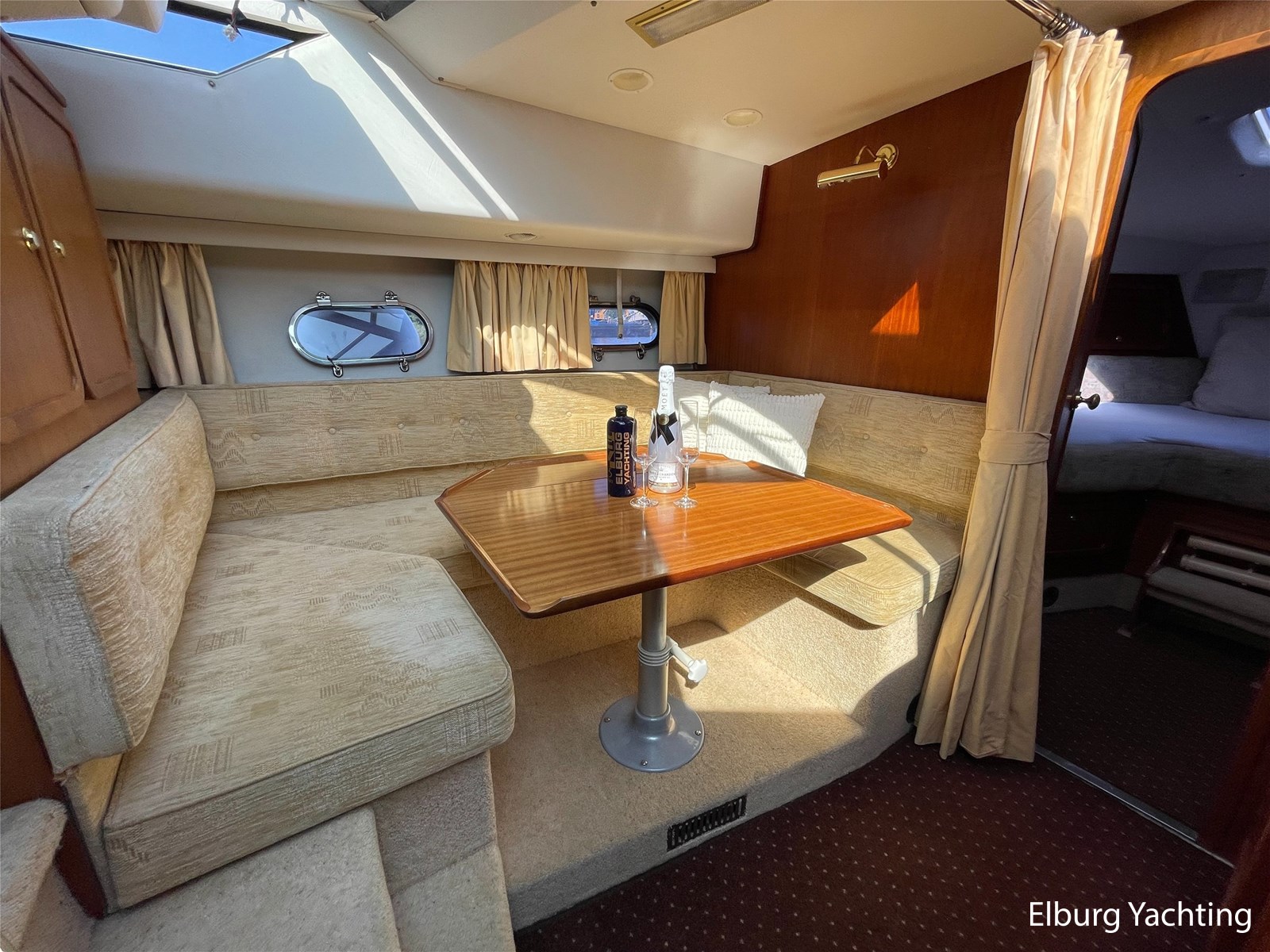 - Classic marine mahogany combined with beige comfortable upholstery