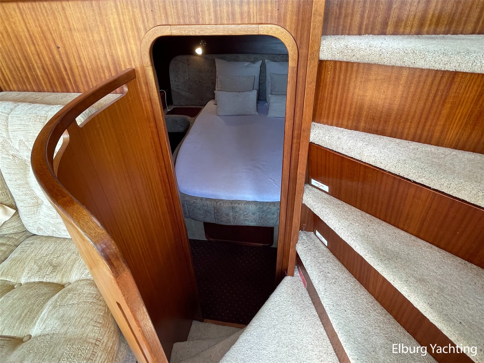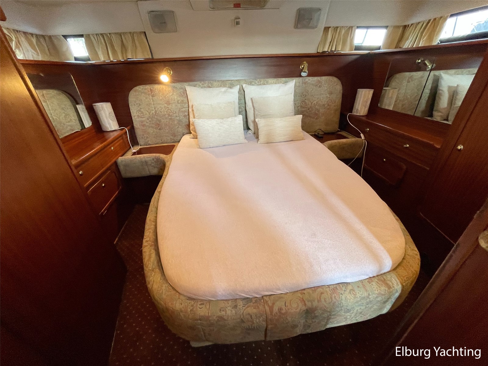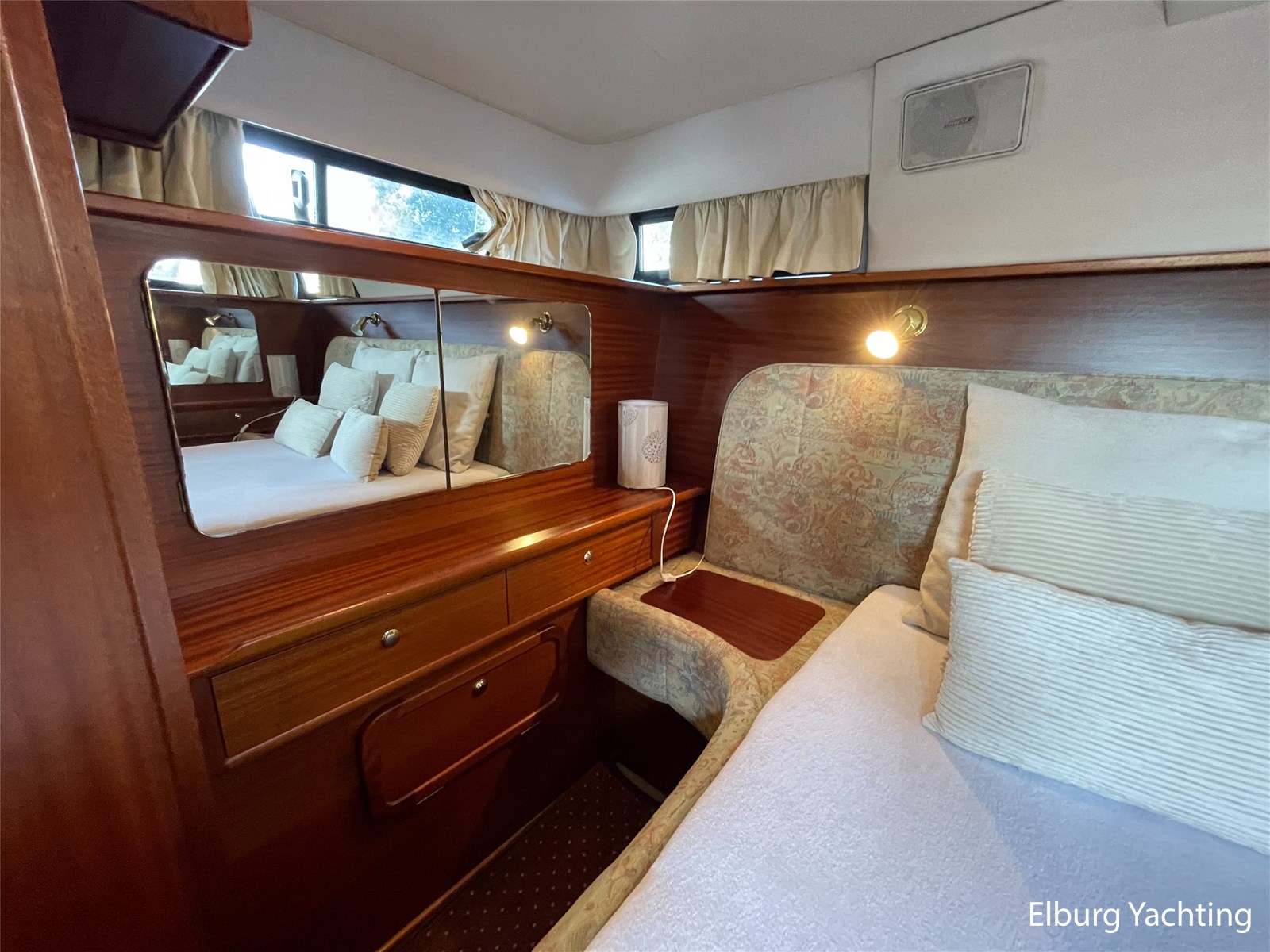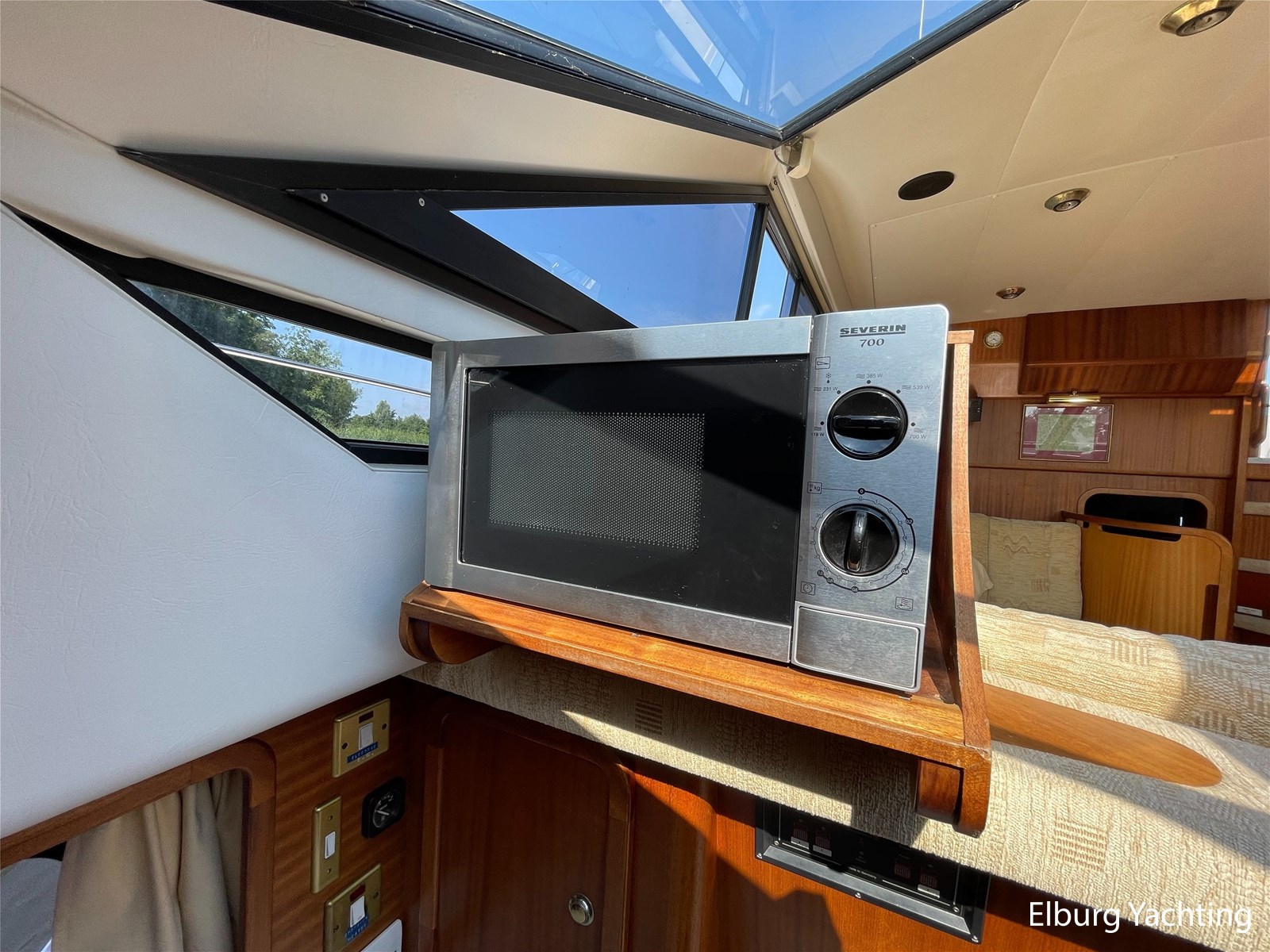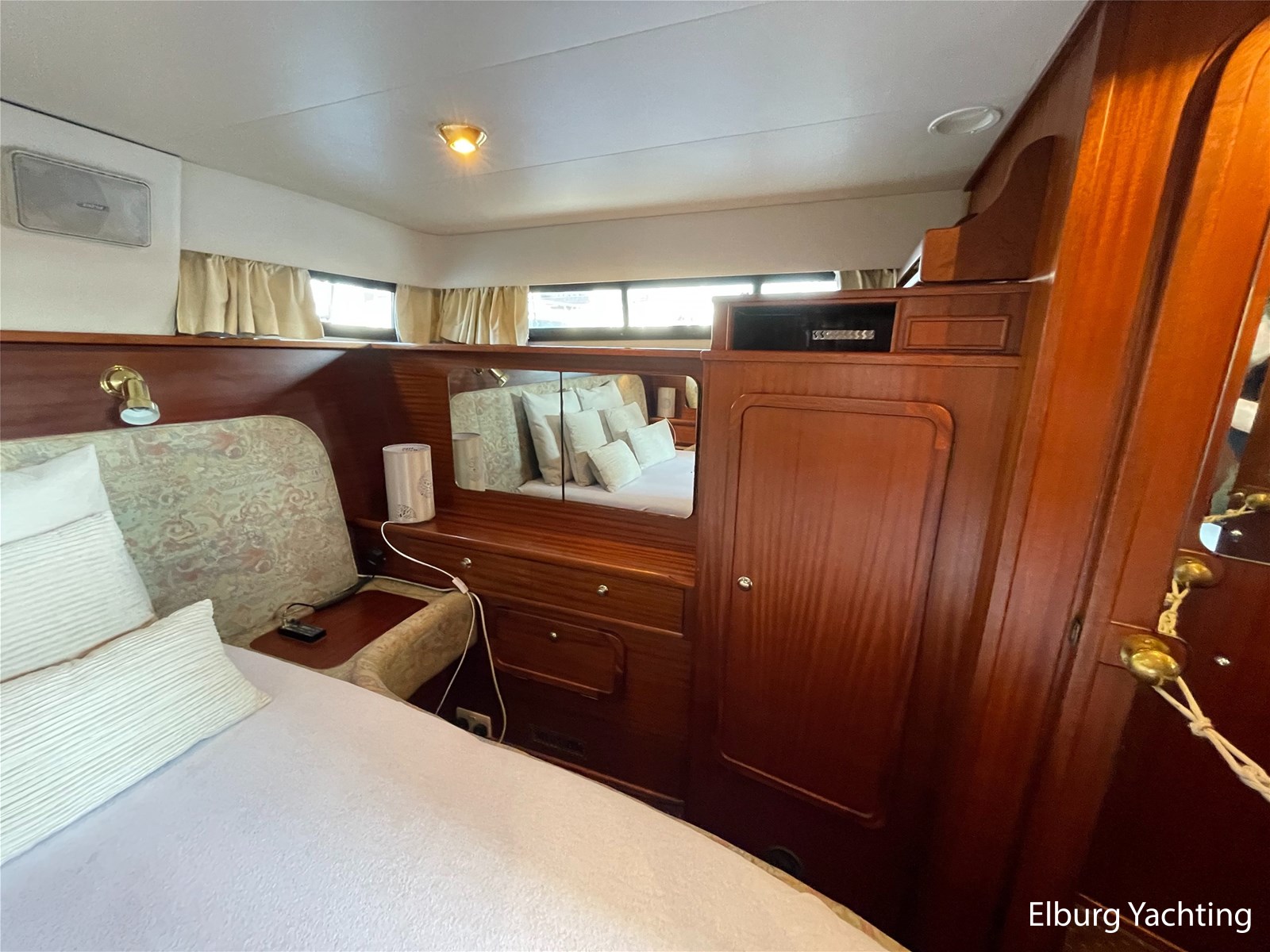 - Classic marine mahogany combined with beige comfortable upholstery
