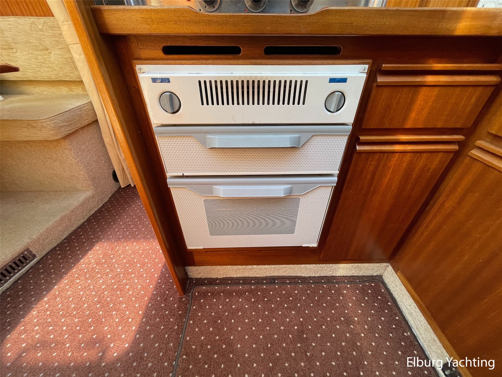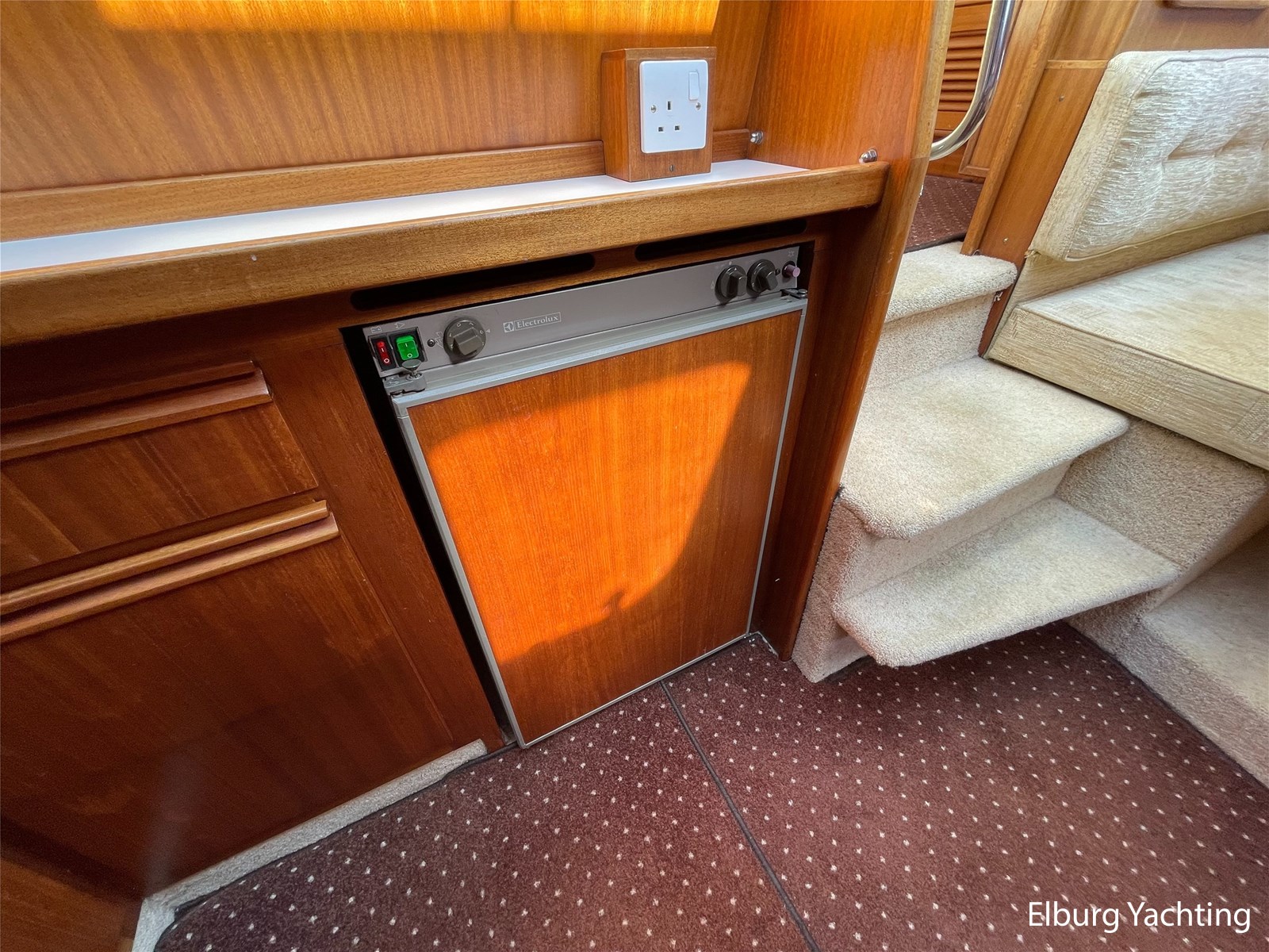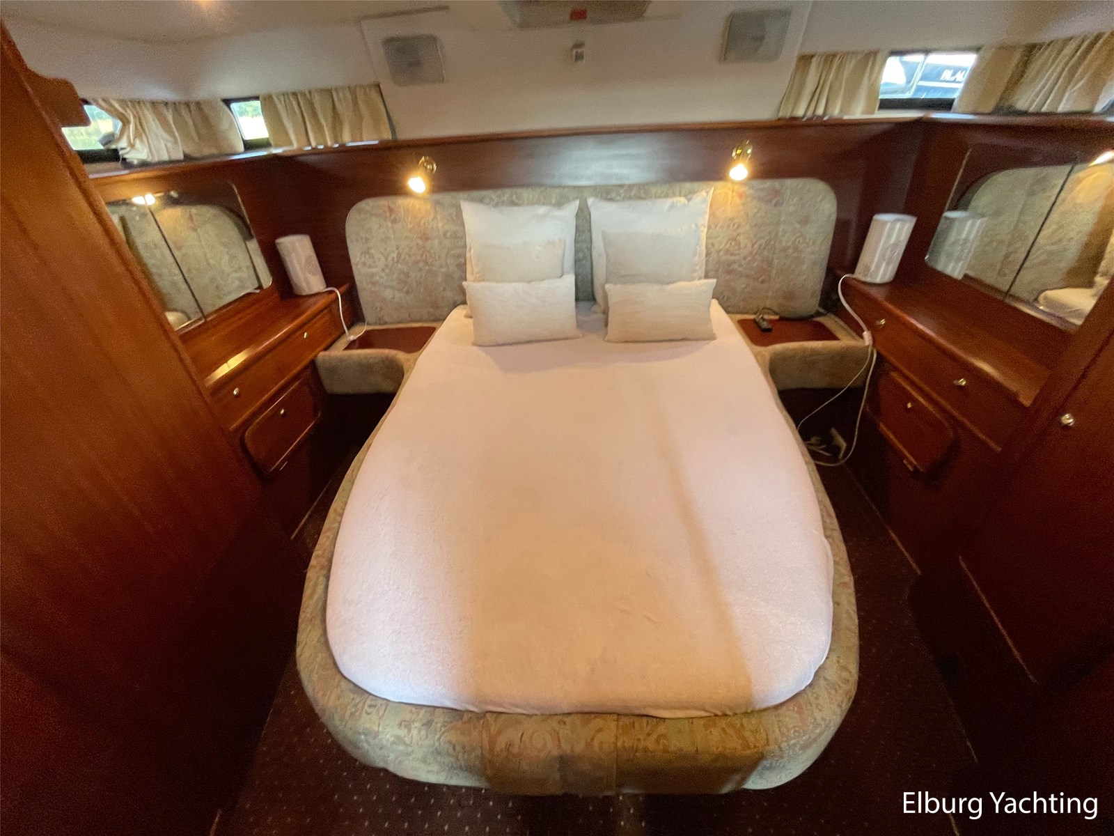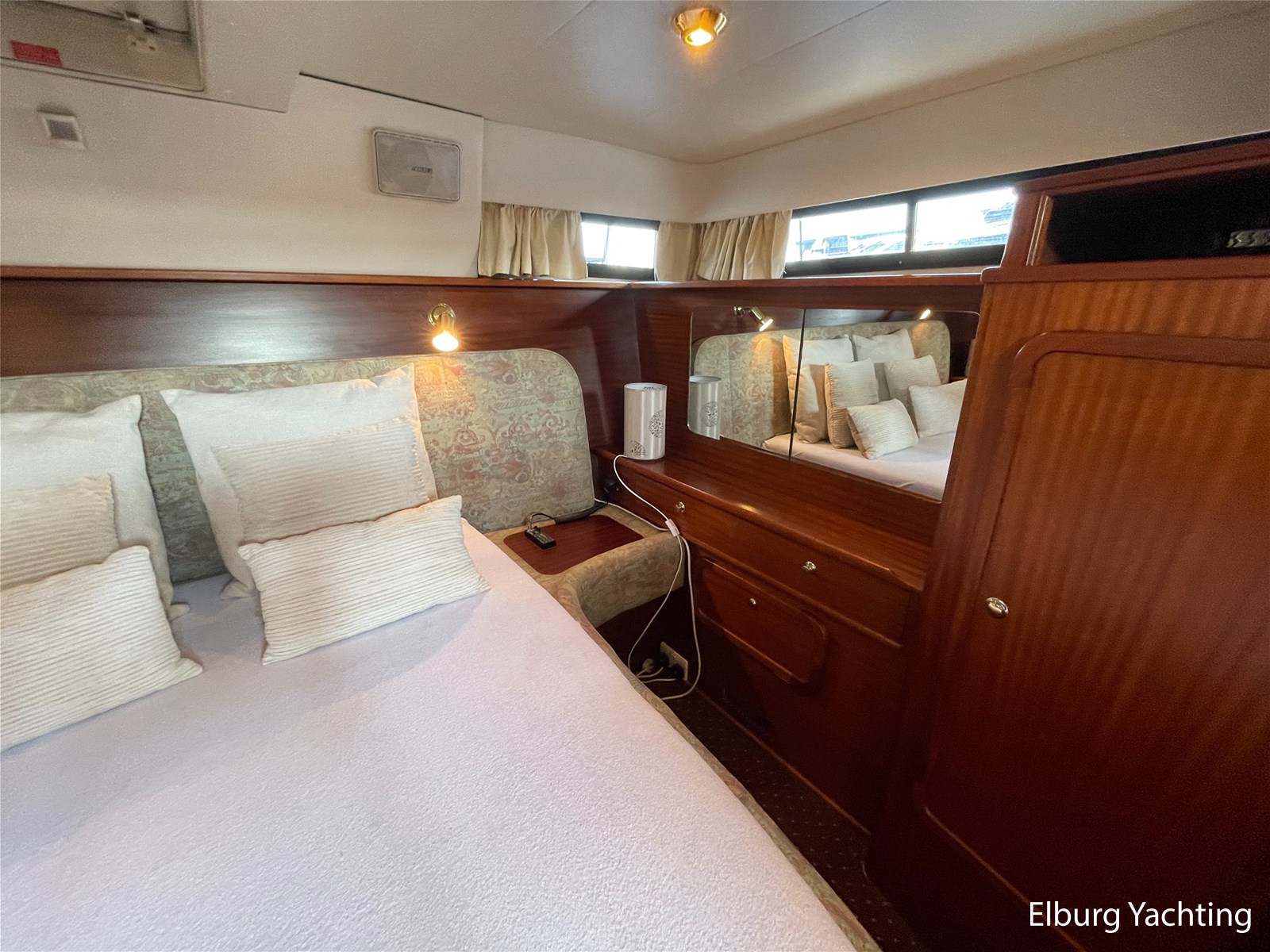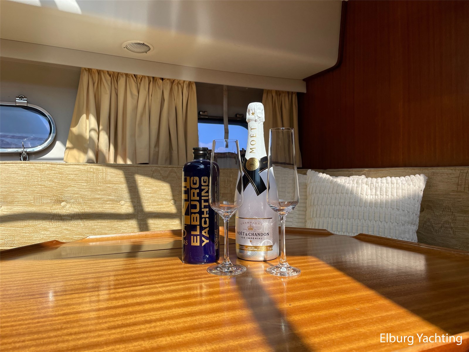 - Classic marine mahogany combined with beige comfortable upholstery