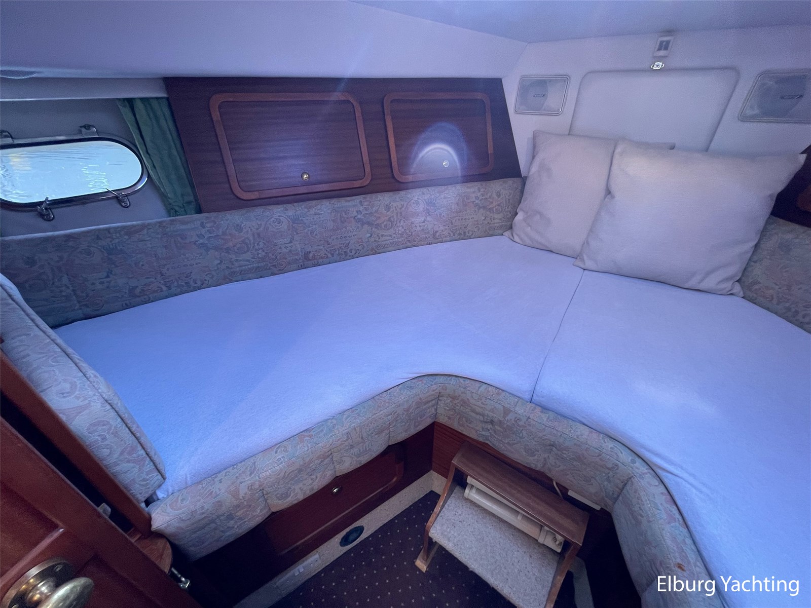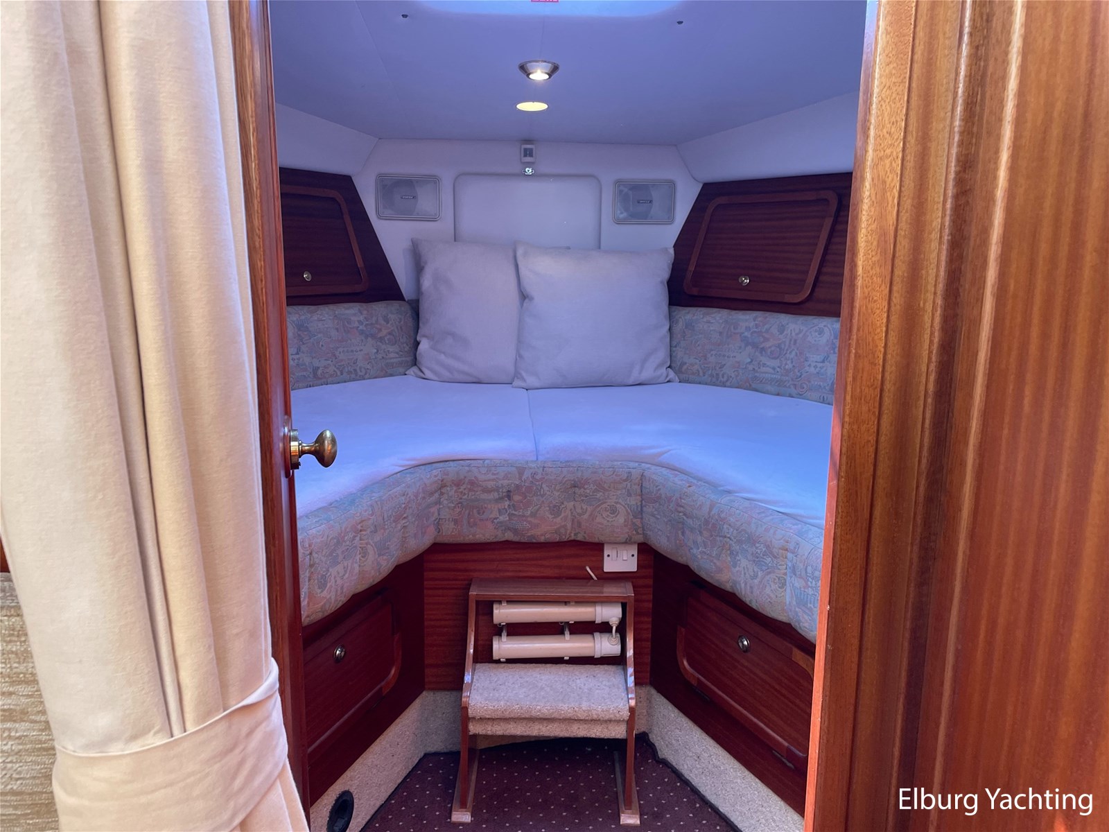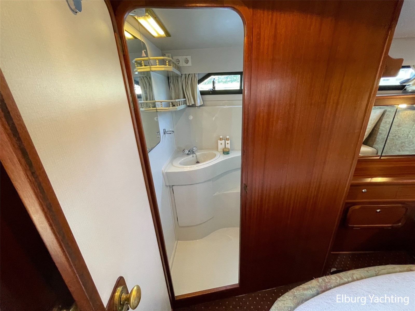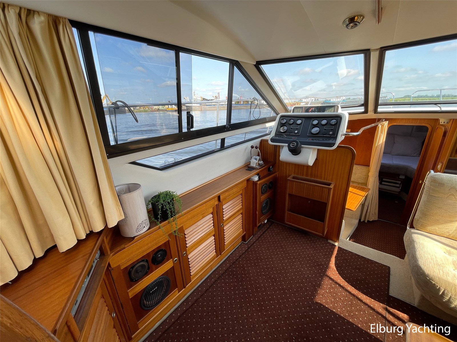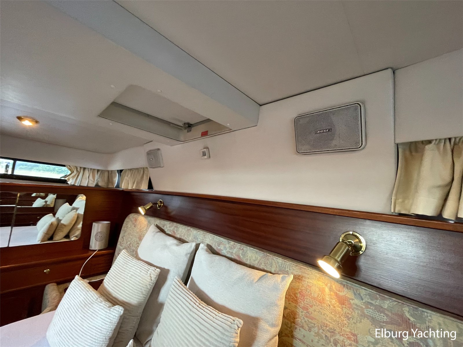 - Classic marine mahogany combined with beige comfortable upholstery