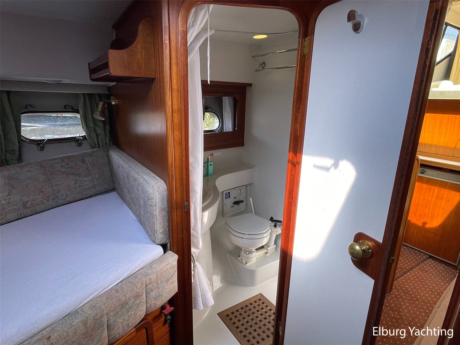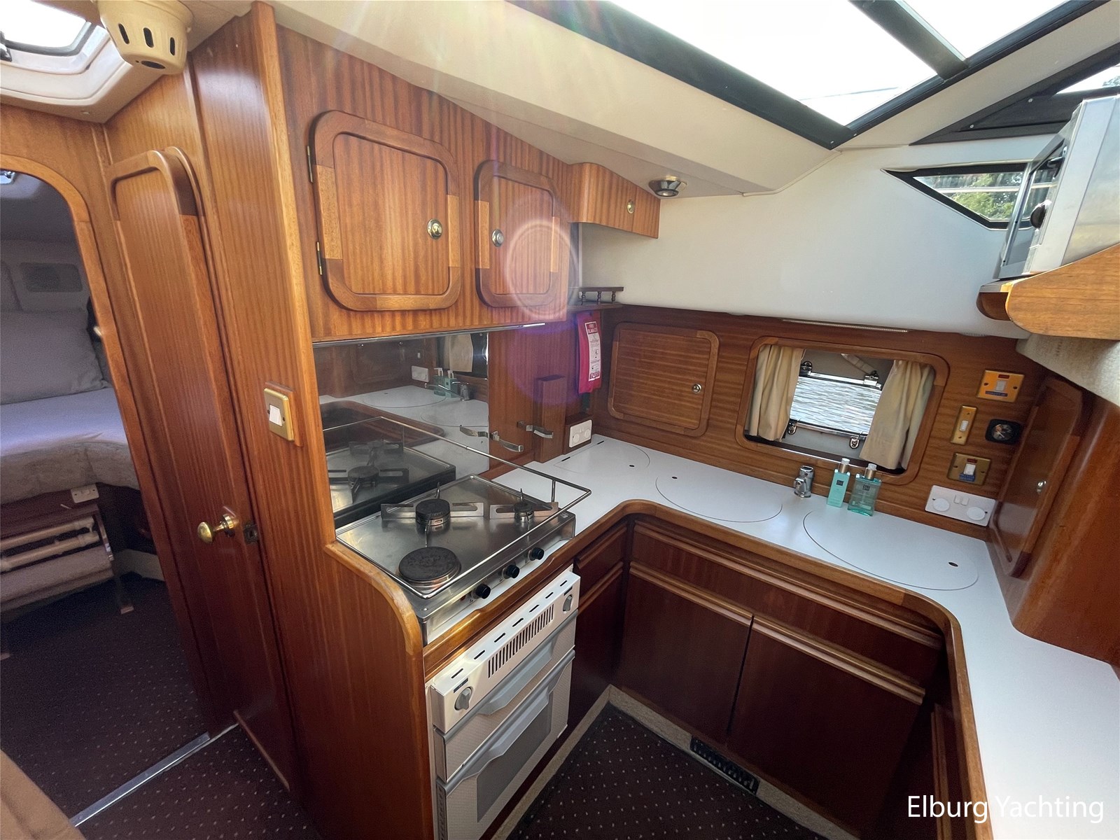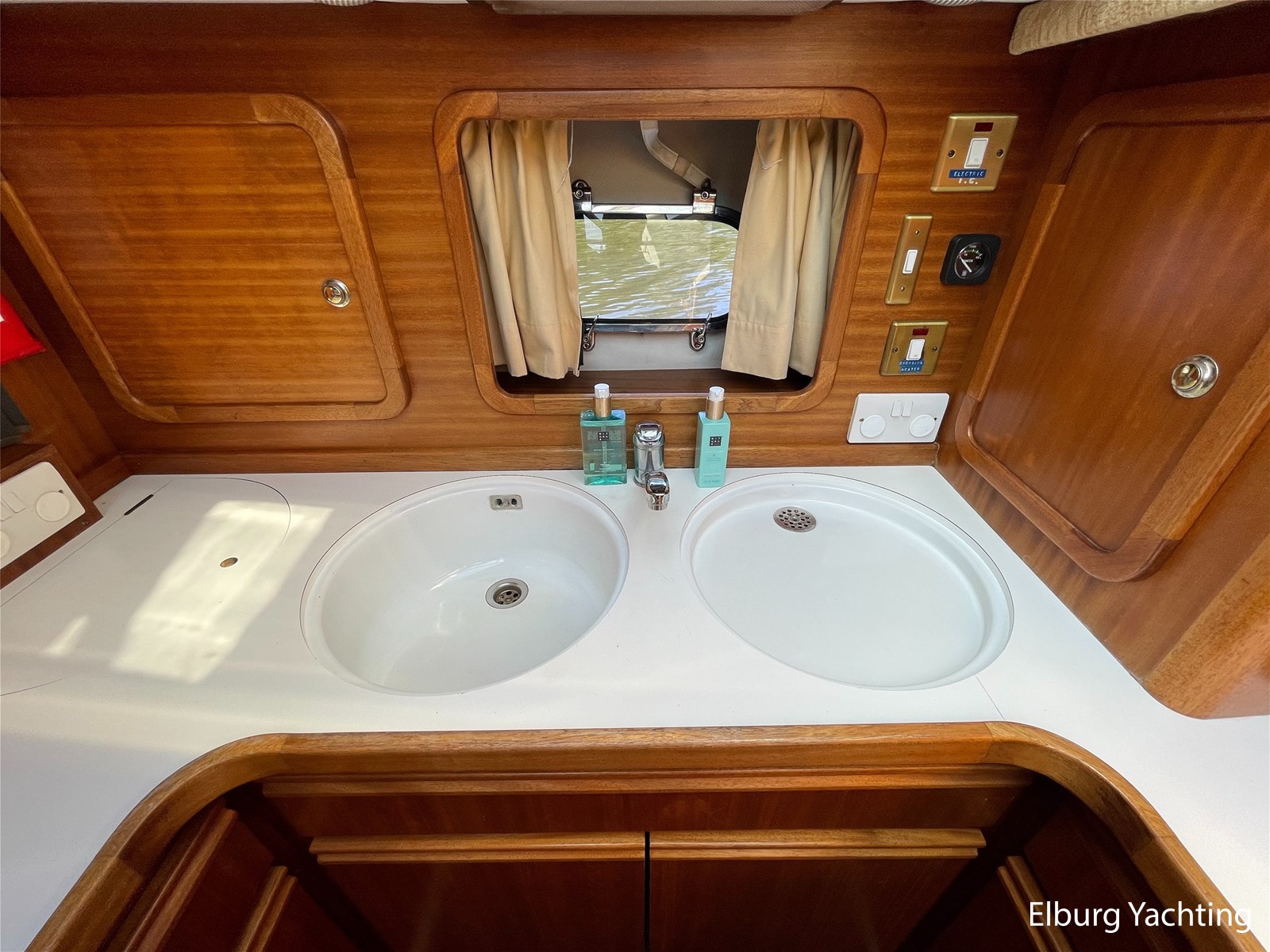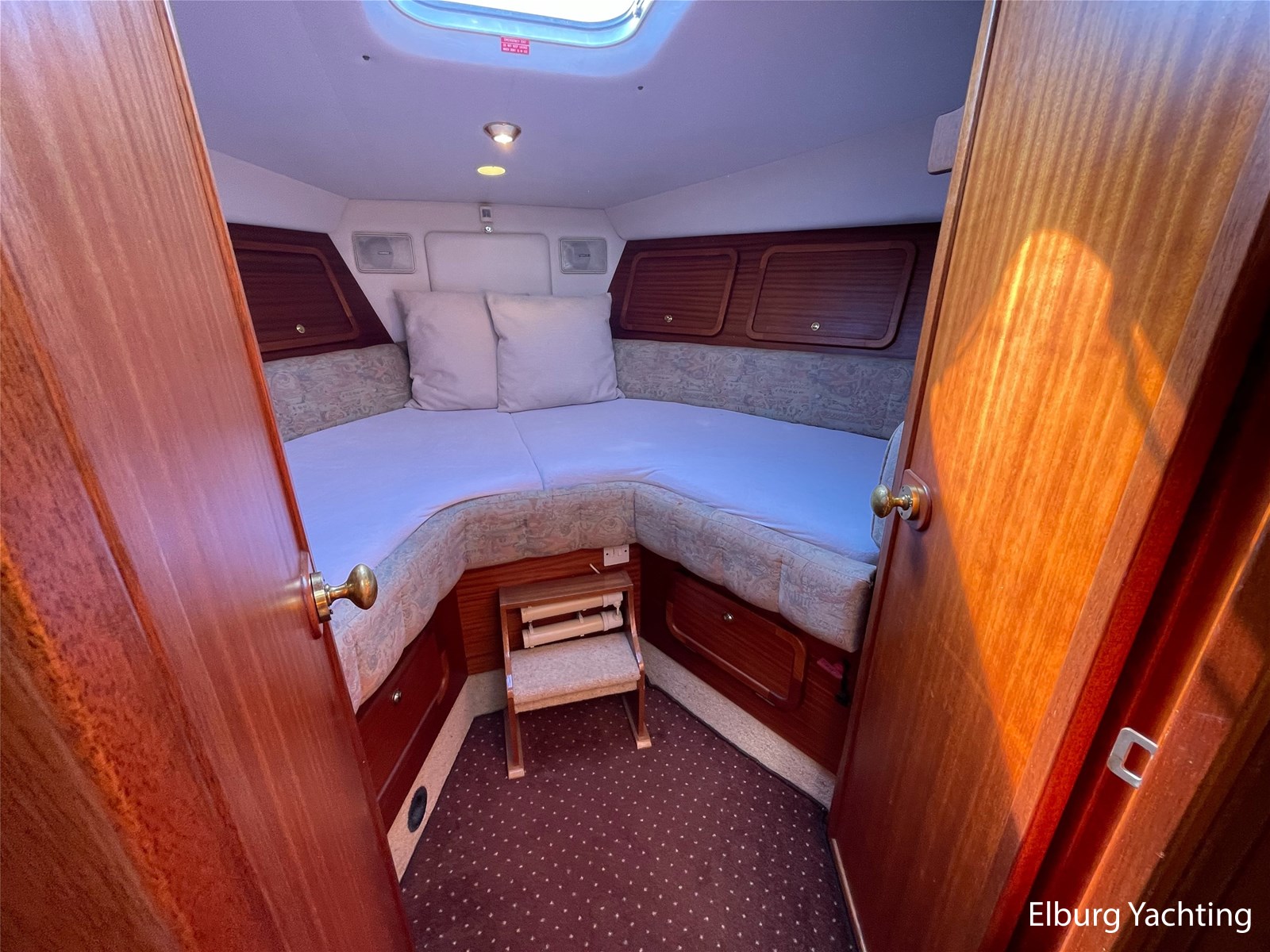 - Classic marine mahogany combined with beige comfortable upholstery