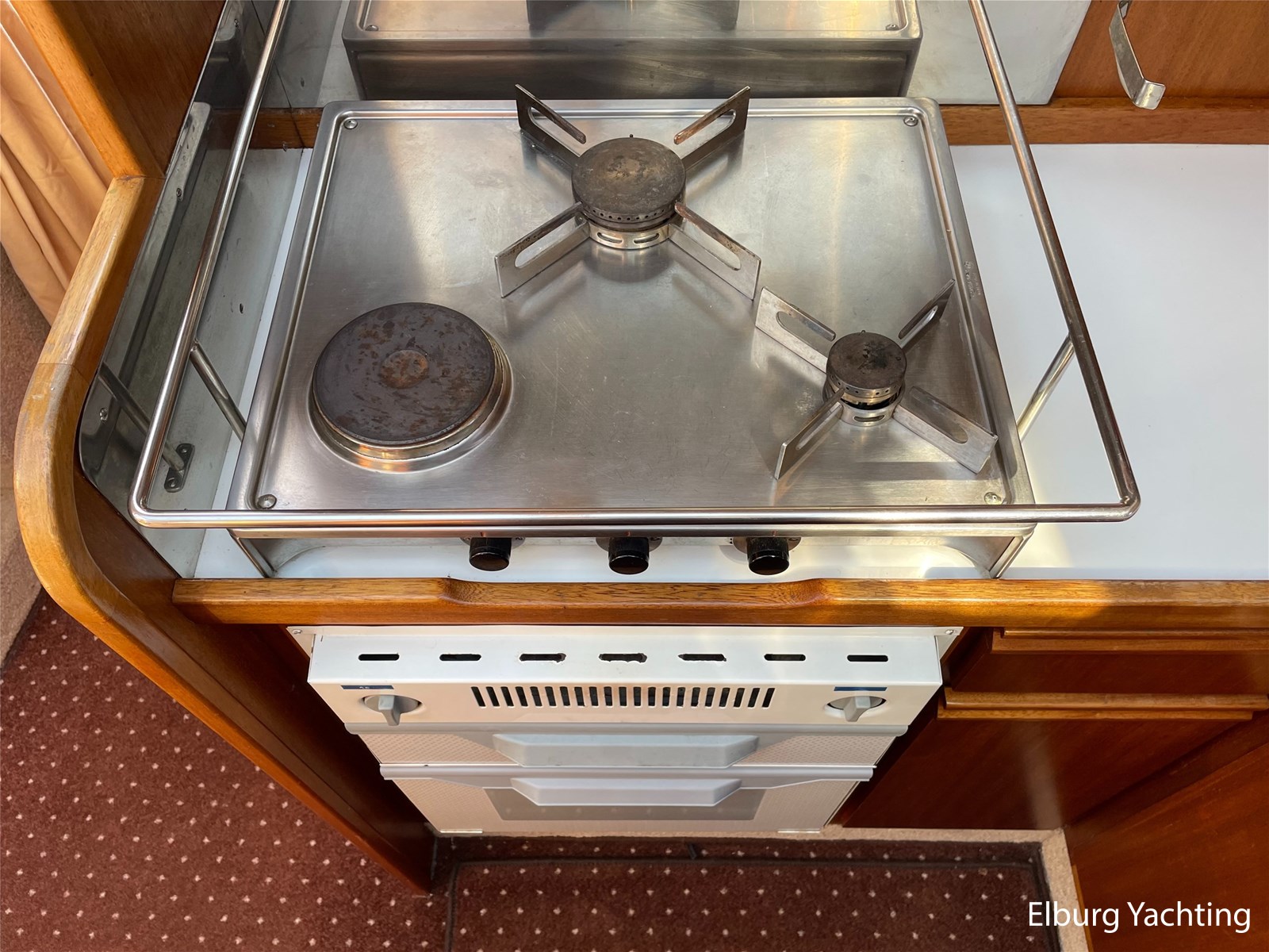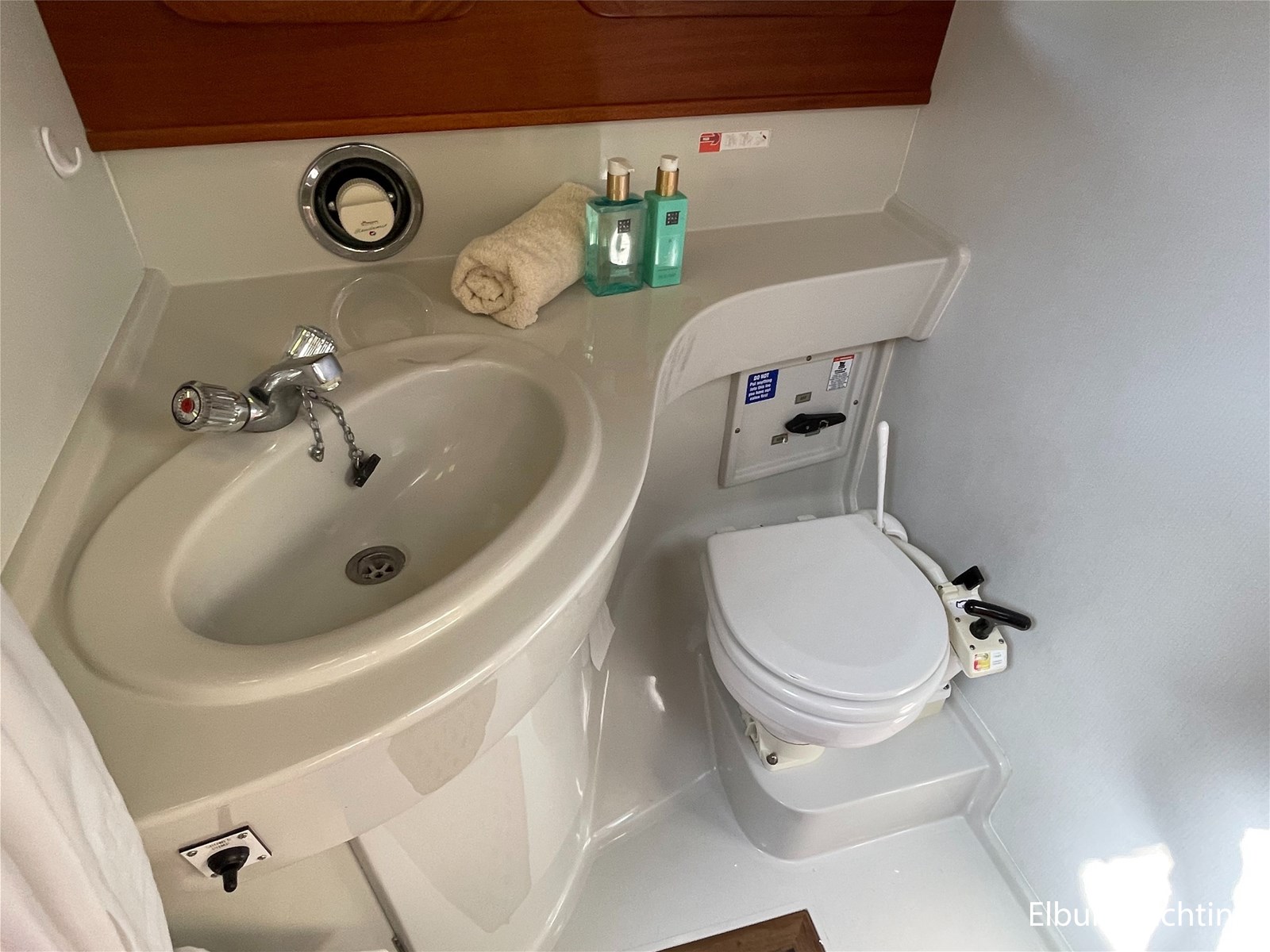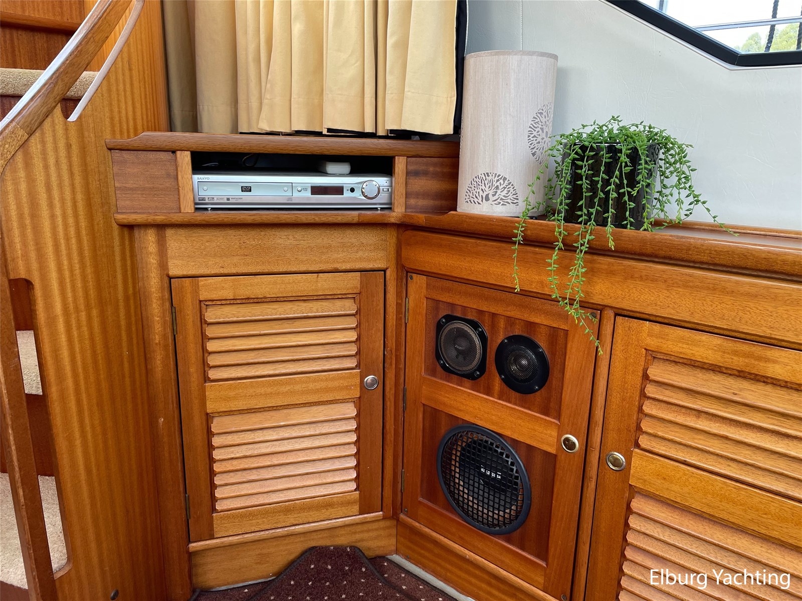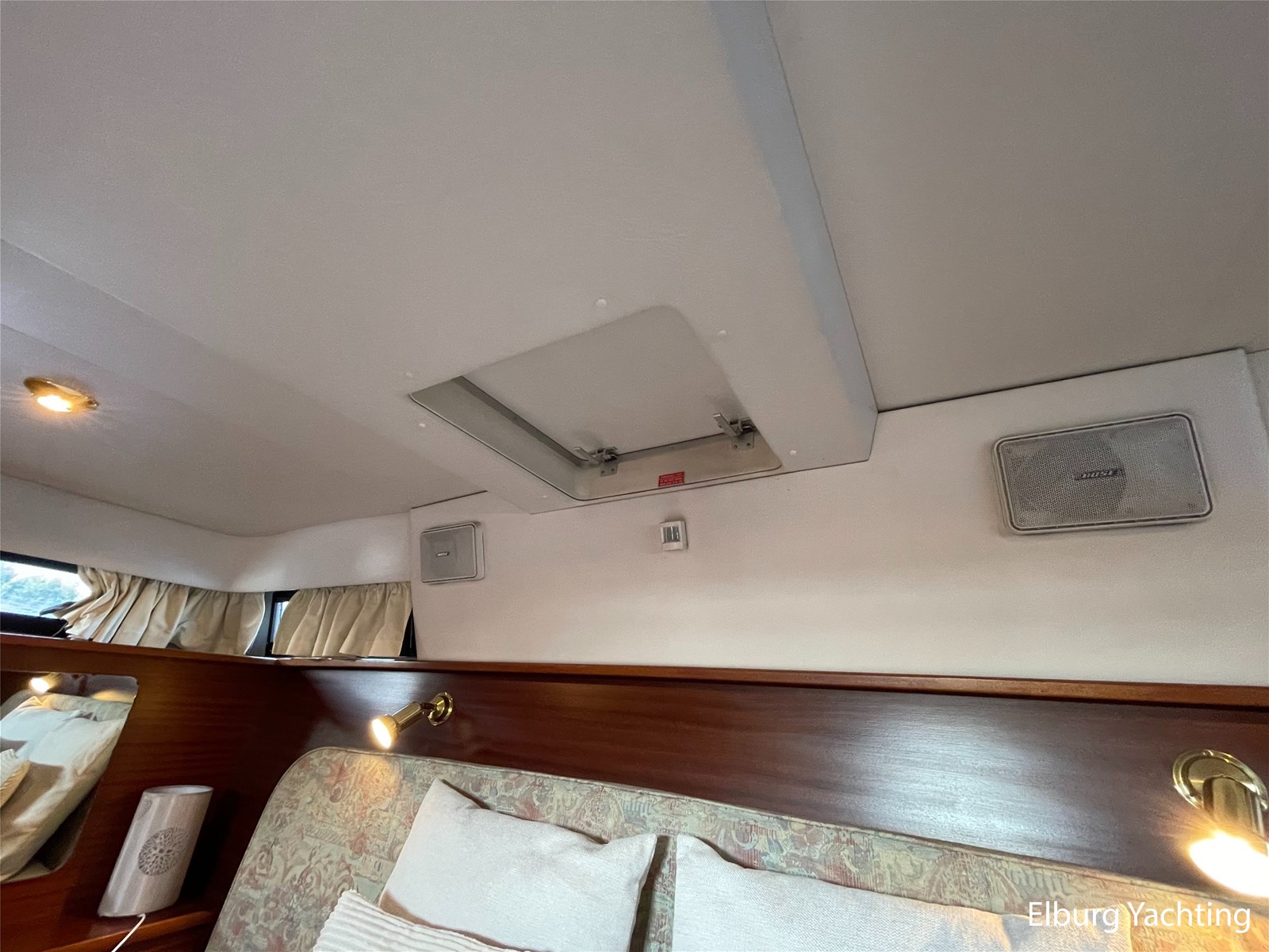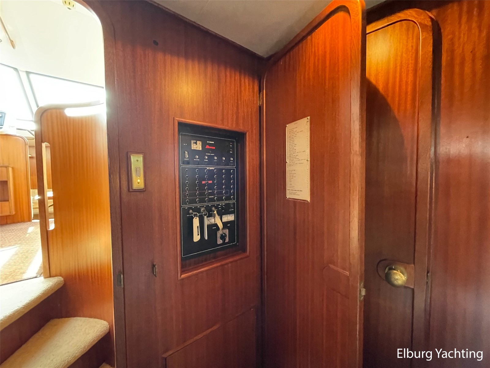 - Classic marine mahogany combined with beige comfortable upholstery