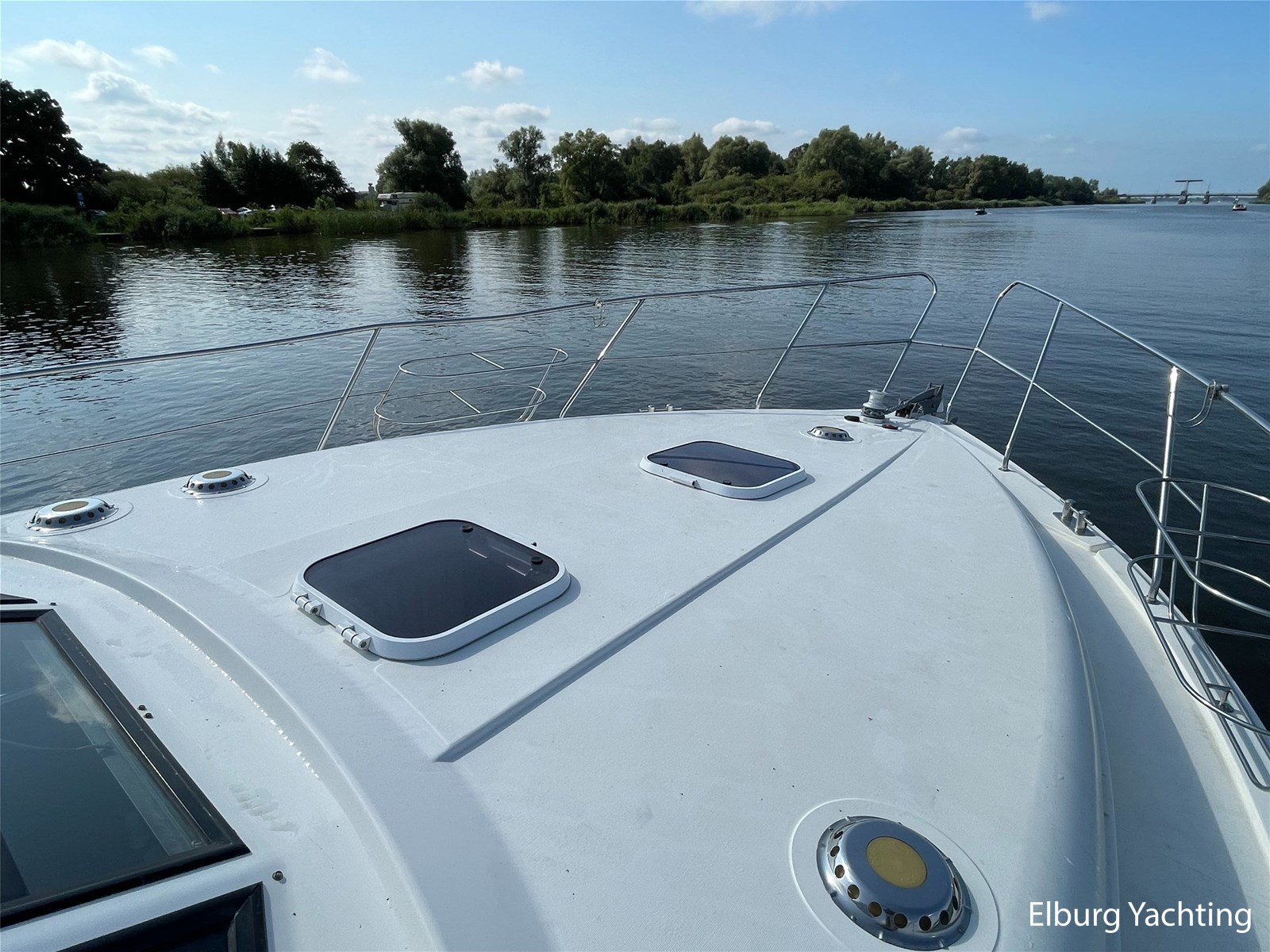 - In hull bonded with aluminium profile with 2 x sliding window + 10 x porthole + 3 x roof hatch