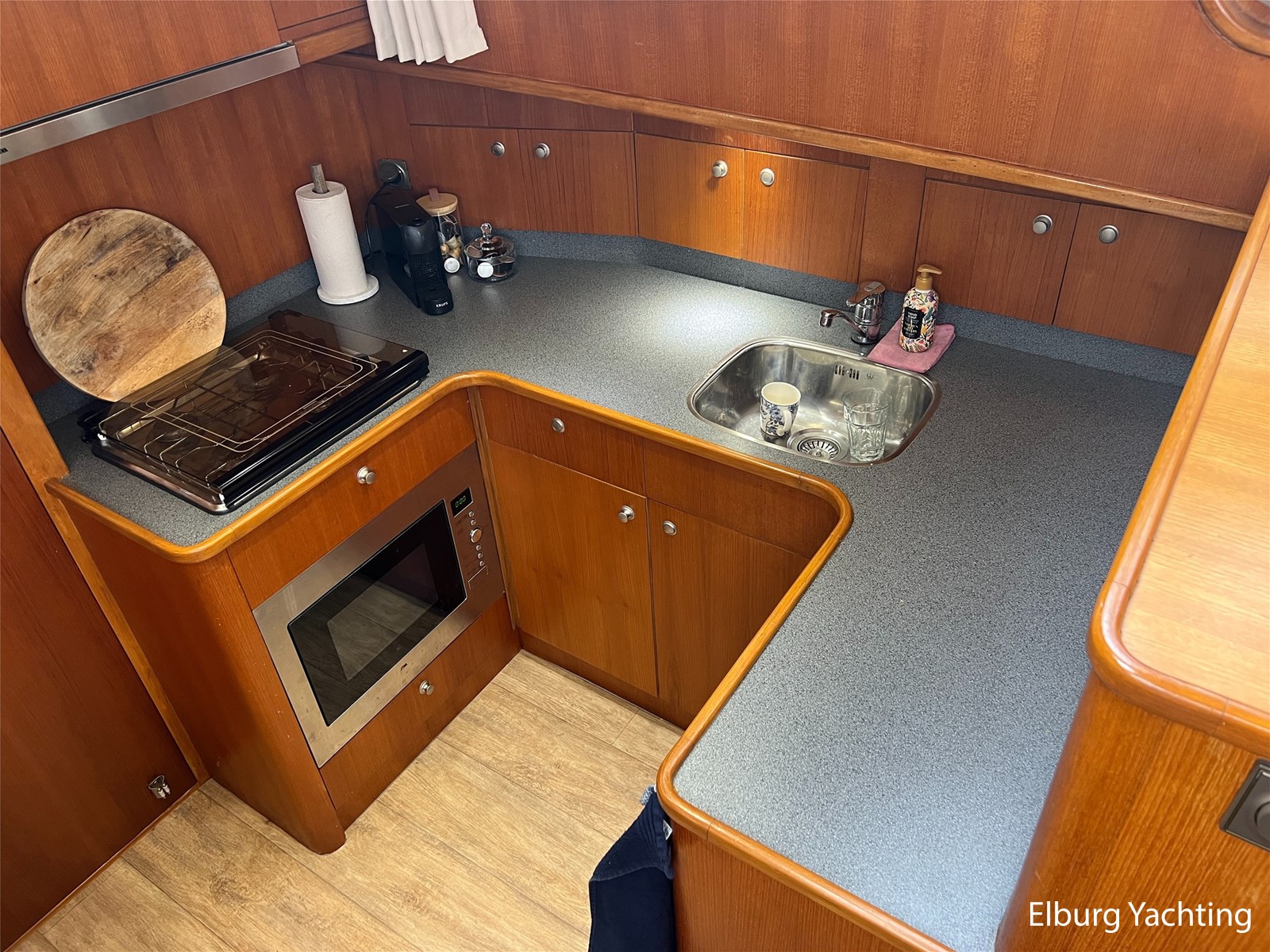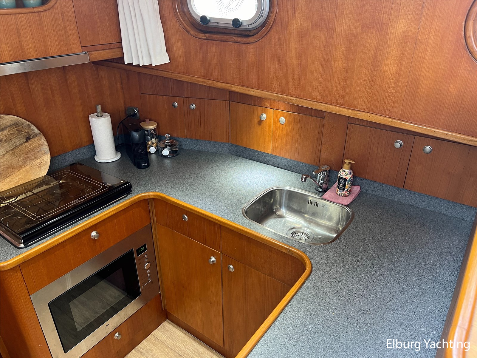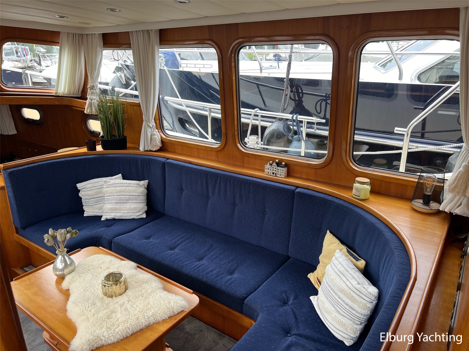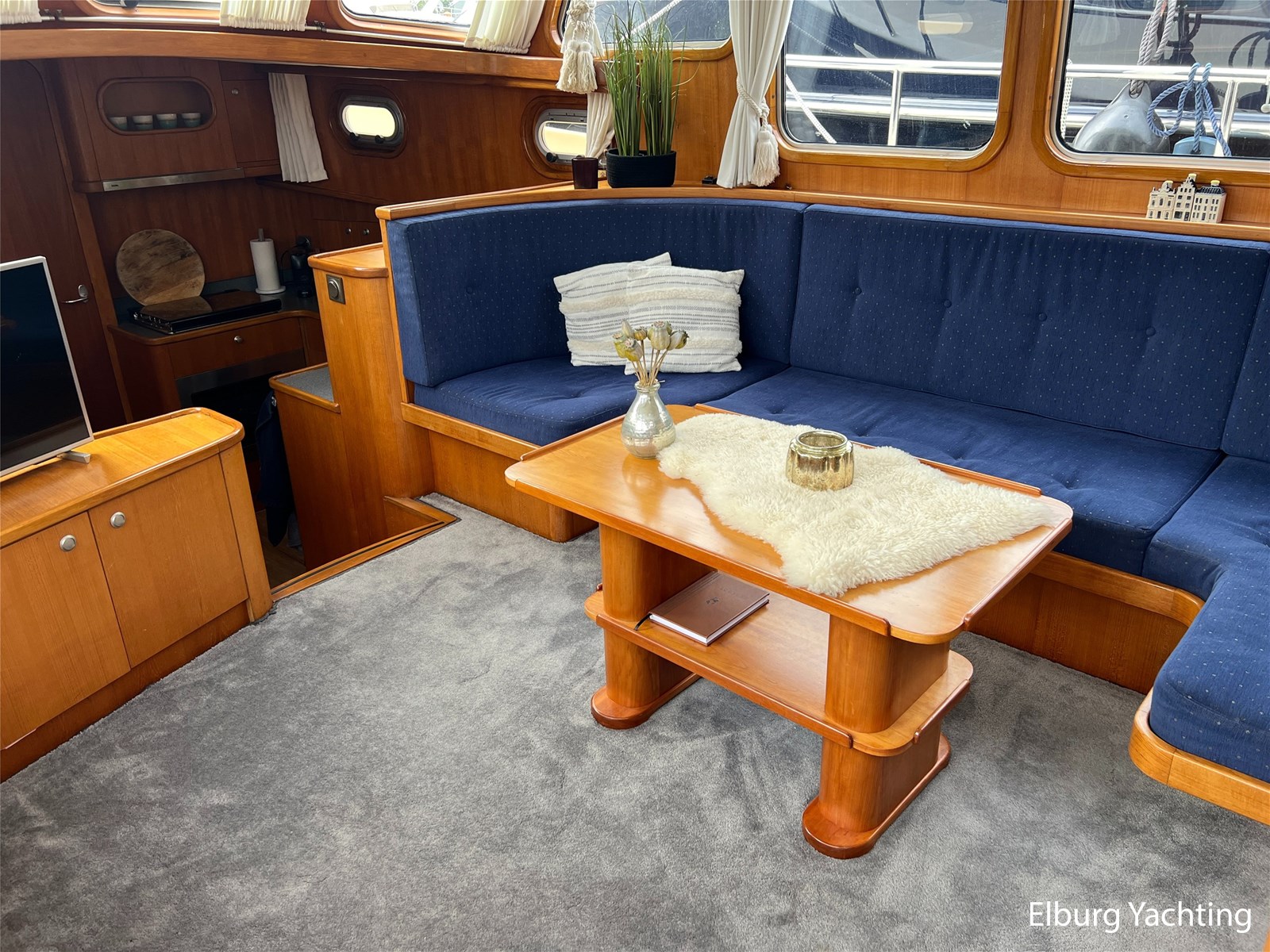 This Linden Kotter 13.70 is a beautiful and heavy built yacht. Thanks to her quietly running but strong 225 hp Perkins engine, she always has enough power to sail at a comfortable speed, even on tidal waters and rivers. This Linden LKotter is also supplied with: Mastervolt power system control panel, starter batteries (2024). all lighting replaced by LED (2024), washing machine (2022), shower floor renewed (2023), last engine service (2023), main engine alternator replaced (2024), generator glow coils overhauled (2023), heater service (2024), ironing installation support mast (2023 ), new windows in spray hood (2023), davits for dinghy, mosquito screens for the portholes and hatches, insert V-bed in the front, plenty of storage space (including large bicycle storage hatch in the aft deck), open view salon + dinette, lots of light, bimini top over aft deck, washing machine, French bed with slatted base, spacious aft deck + deep storage room, stainless steel. fender holders, folding windshields, deck wash pump, iron-on alu. mast, deck wash, large aft deck, construction number 51. For questions and/or to make an appointment, you are welcome at Elburg Yachting 7 days a week.