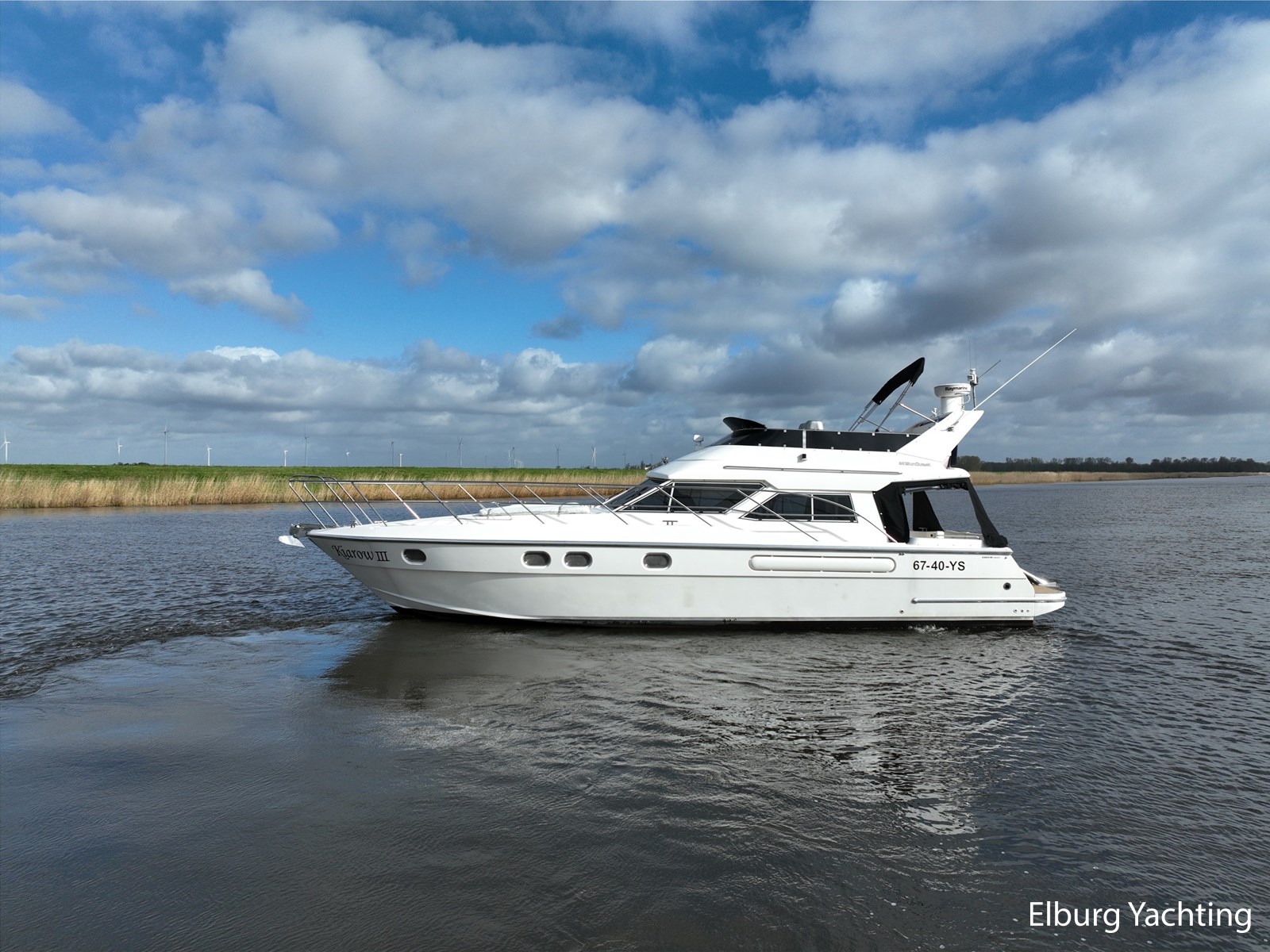 Hoover washer-dryer, dishwasher, upholstery renewed in 2012, bow cushion, fender holders in railing, lamp in radar bracket, double helm seat, spacious galley with the necessary equipment, central heating with radiators, two double beds, one of which is freestanding, very spacious forward cabin, hydraulic gangway. Propulsion by propellor shafts.
