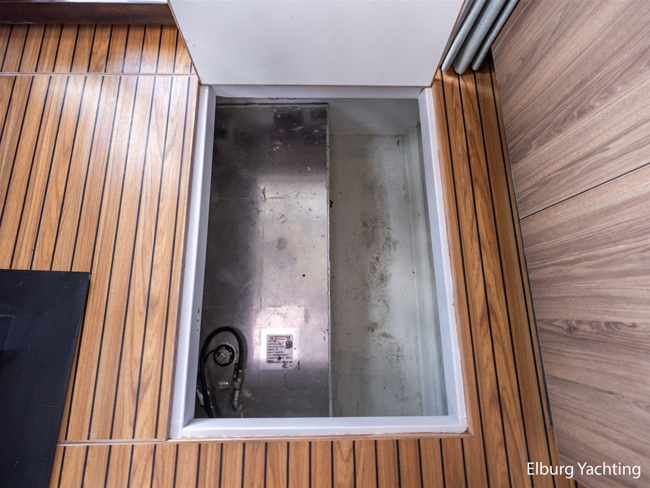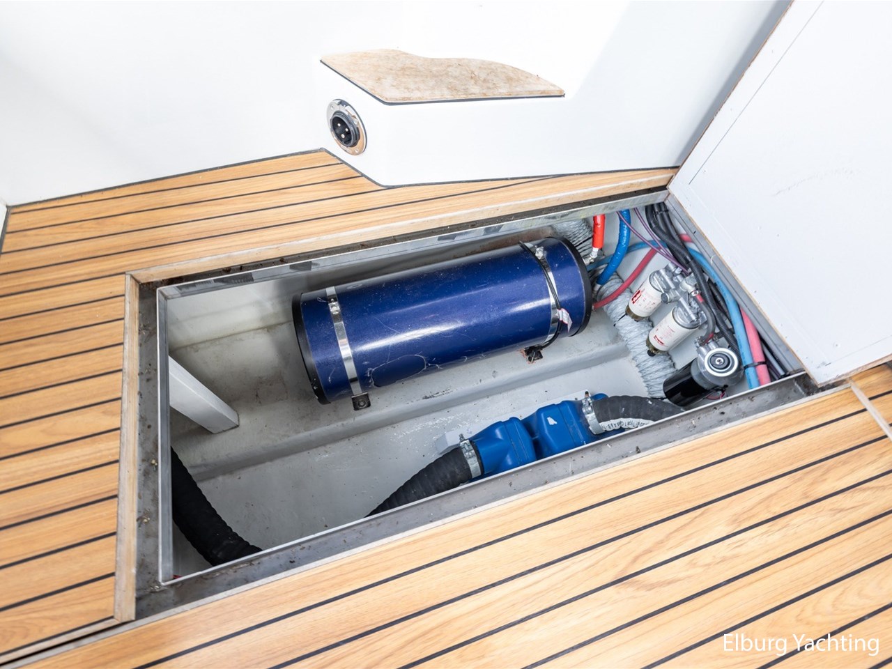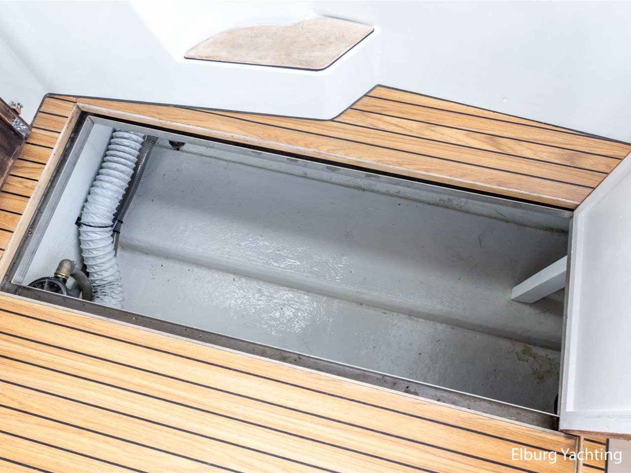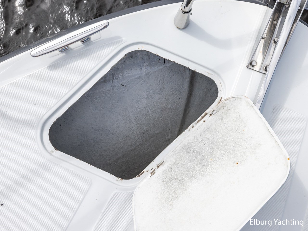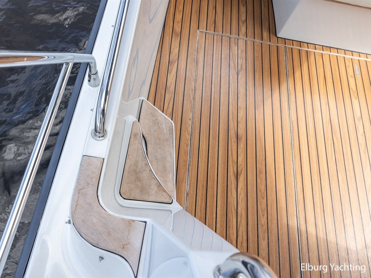 - HPL teak deck with black piping in open cockpit + bathing platform