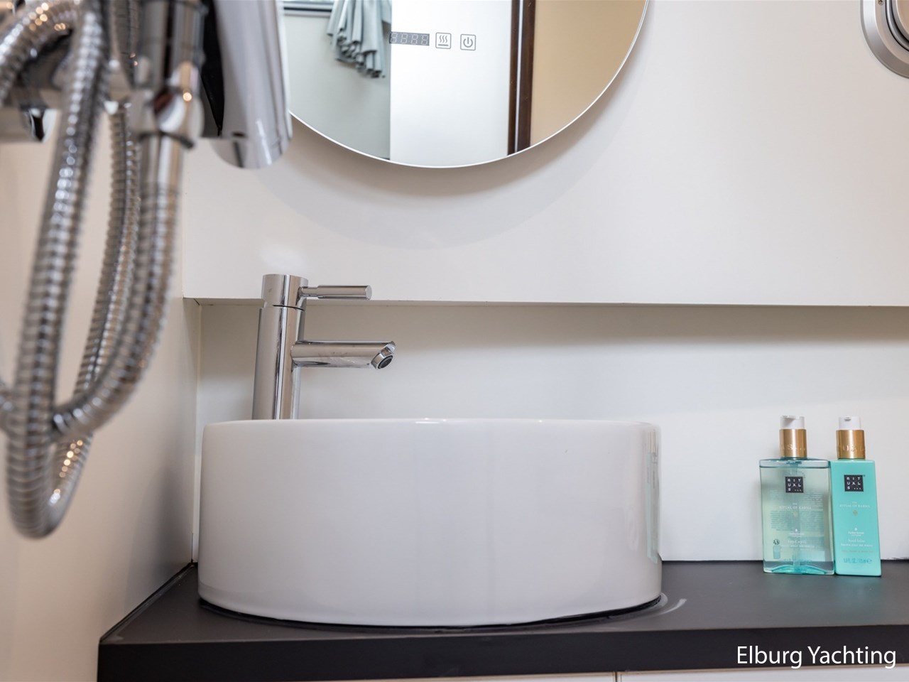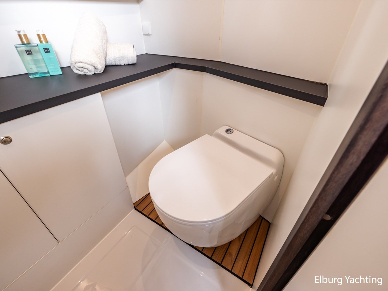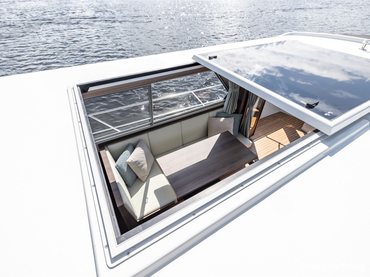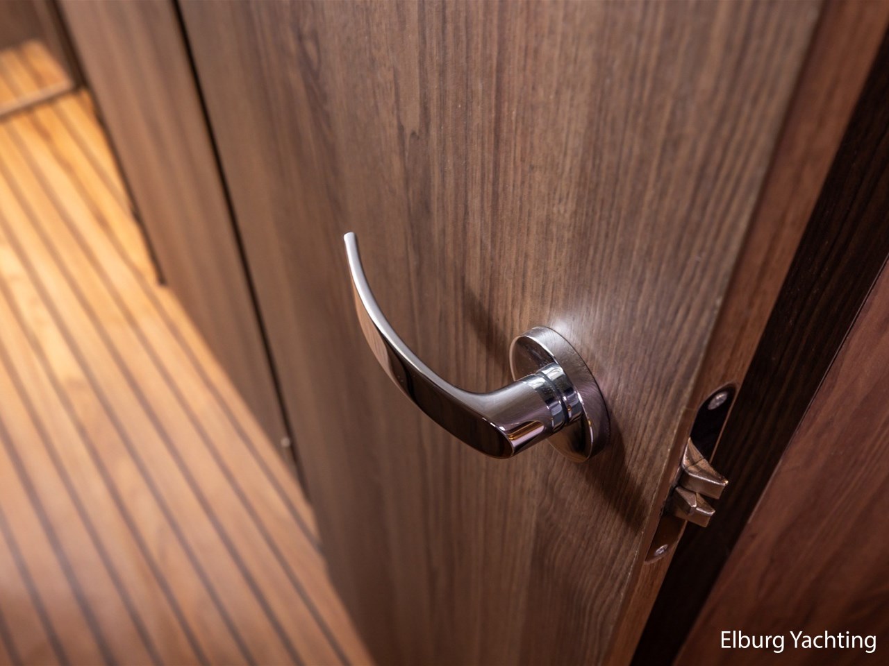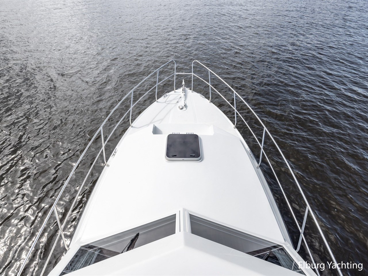 Extremely beautifully designed Excellent 1000 Touring with a spacious layout. Outside, the sporty line of the yacht stands out in combination with classic details such as the double stainless steel sea railing in combination with the stainless steel anchor and stainless steel anchor fittings. The Excellent has comfortable gangways and is easy to moor and unmoor using the 10 stainless steel bollards in combination with the Quick electric bow and stern thruster. The cosy open cockpit has a lockable tent, a hull door to the attached swimming platform and a pleasant settee. From the open cockpit, the floor-level saloon can be reached through the four French doors. The saloon features a comfortable dinette with a spacious table, the clear steering position and plenty of storage space. The spacious windows in the saloon let in a lot of natural light. There are 2 sliding windows on both sides with window screens and a beautiful sliding roof. The interior has a modern, spacious layout with beautiful walnut wood and natural colours. The galley is located to starboard with a sink, large Dometic refrigerator and a 3-burner gas cooker with Dometic extractor system. On port side, the wet room is located with electric toilet, fine shower and sink. In the front, the owner's cabin is situated with a free-standing French bed with plenty of storage space. For questions and/or to make an appointment, you are welcome 7 days a week at Elburg Yachting.