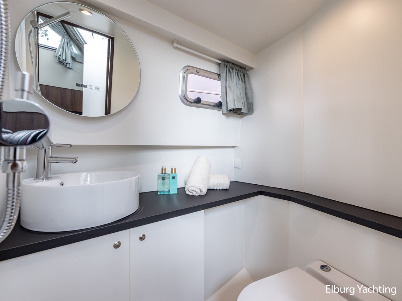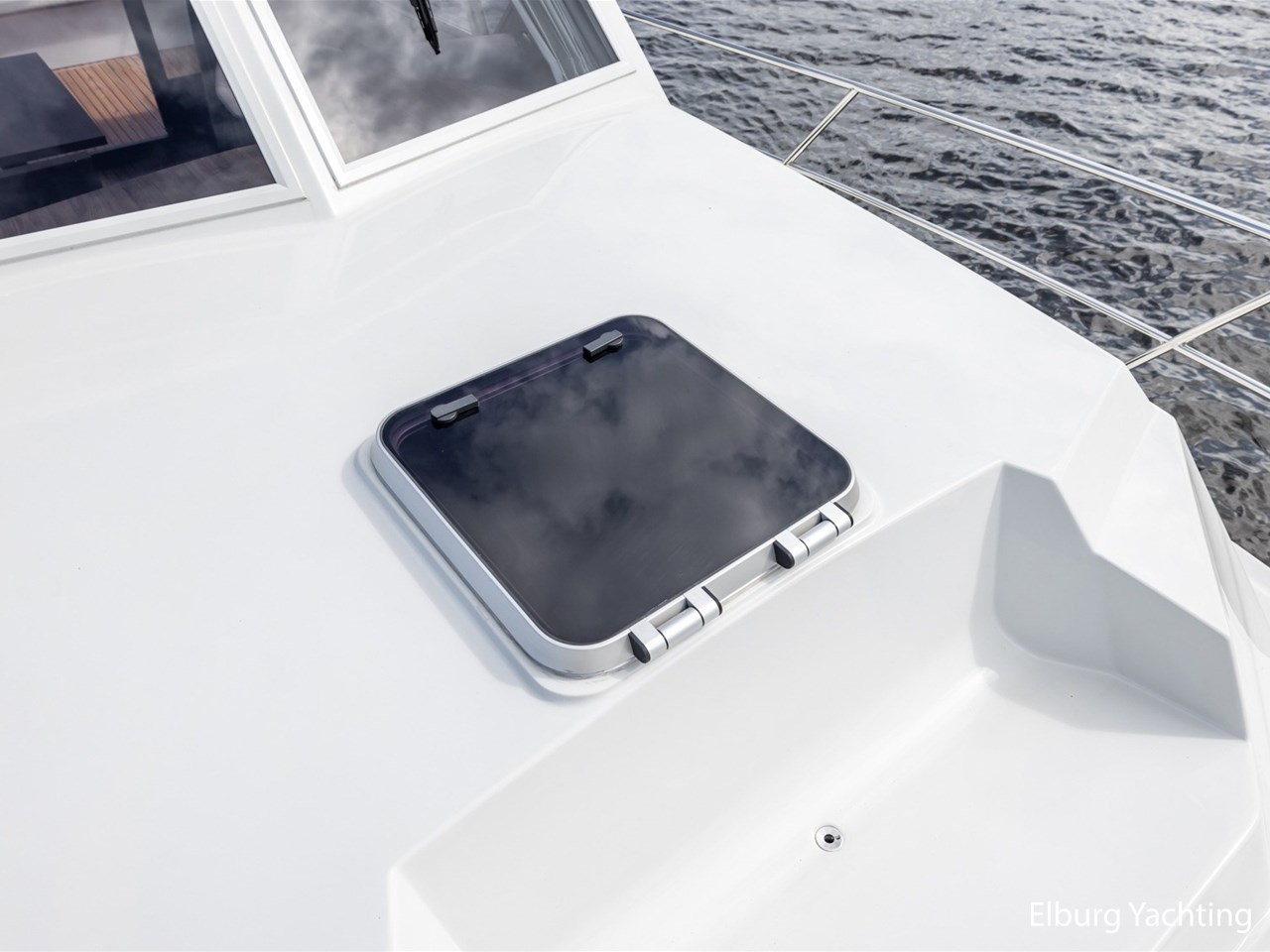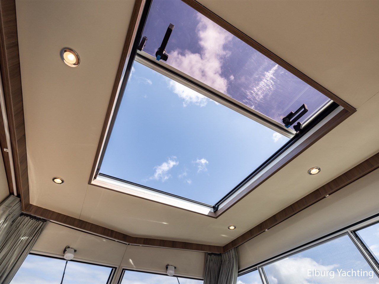 - In hull glued window frames with aluminium profile with 2 sliding windows in saloon with mosquito net + 1 x sliding roof