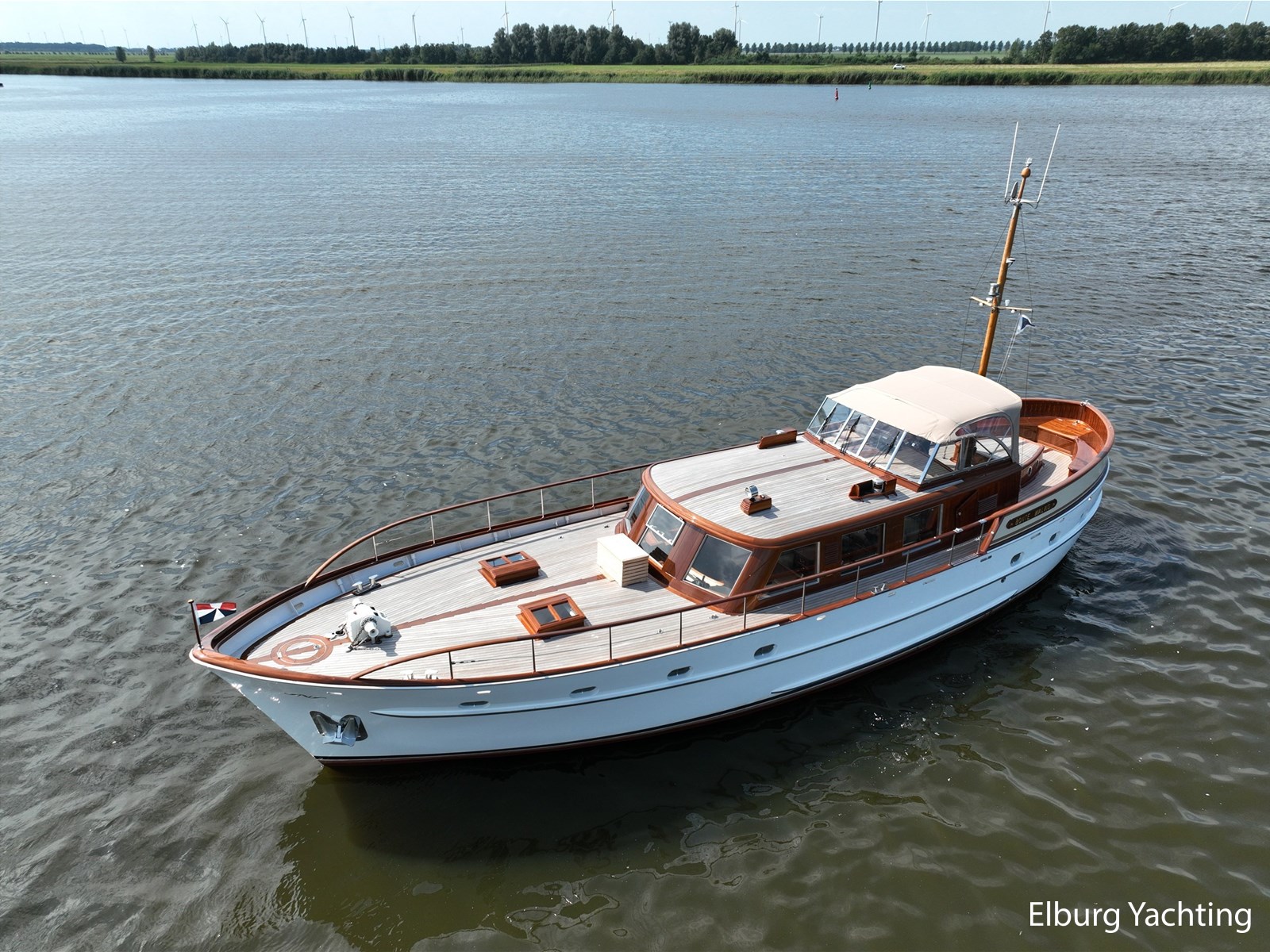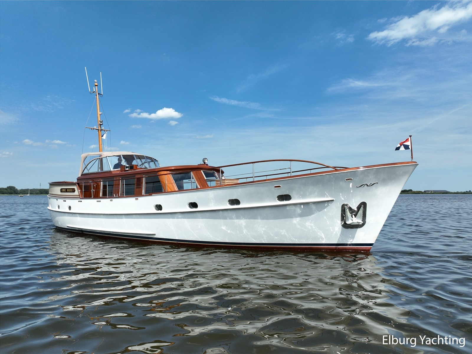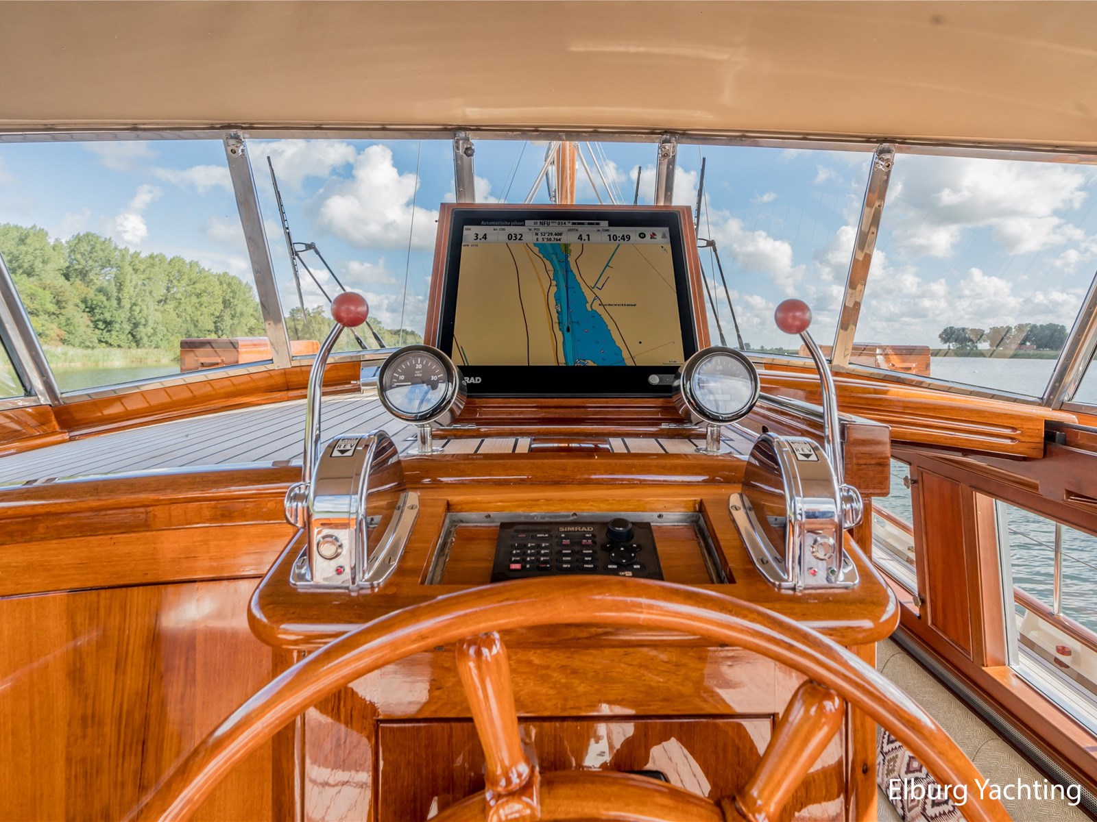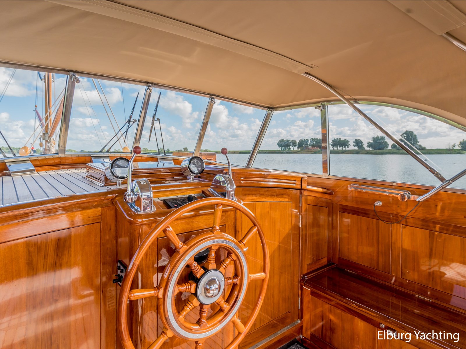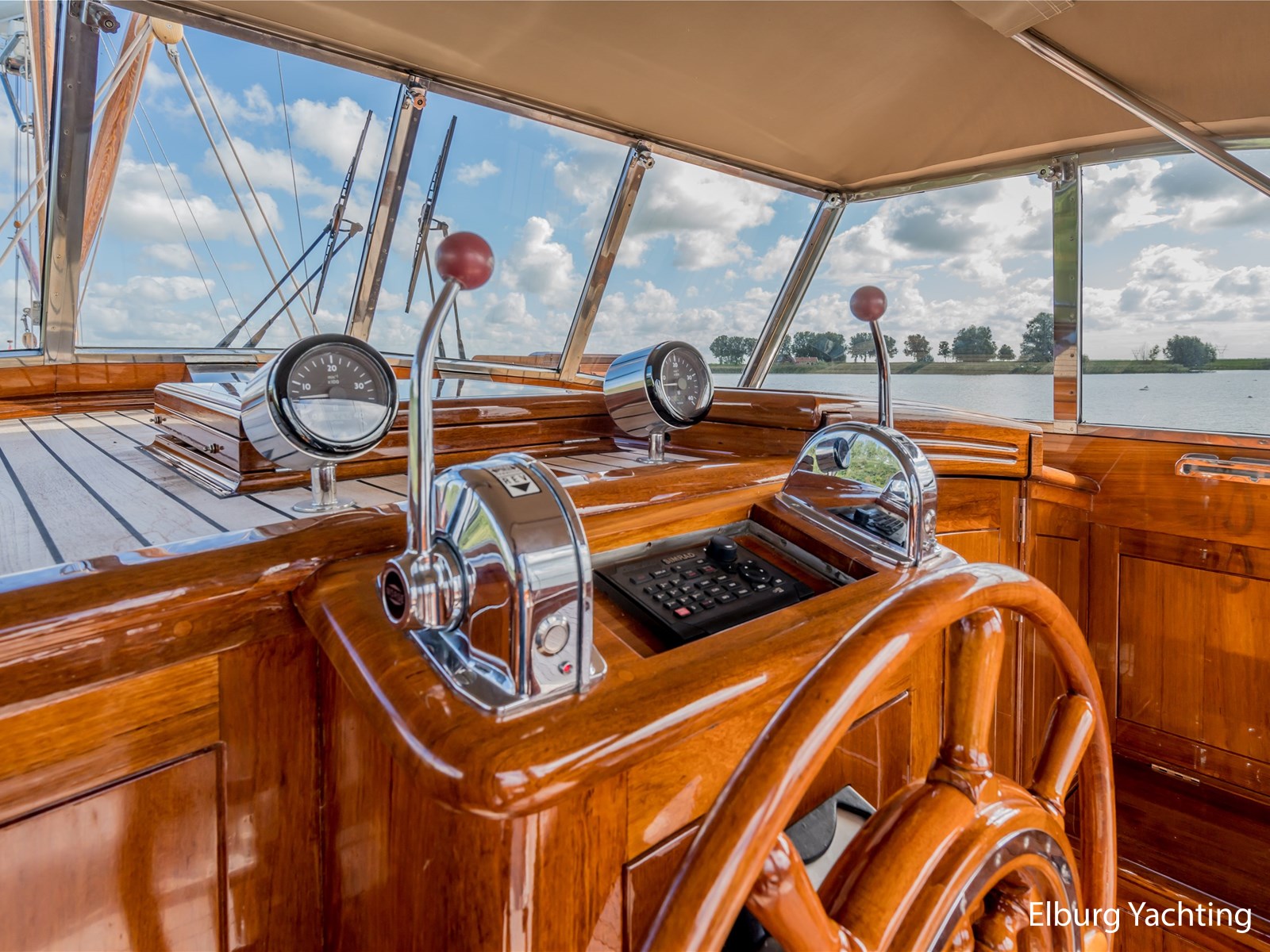 The Lunstroo 56 is a unique and one-of-a-kind piece of Dutch Craftsmanship, and a ture treasure to the long tradition of yachtbuilding that the Netherlands are known for. The vessel was launched in 1974, but has had a complete refit in 2015 at the Nicolaas Witsen yard, where no expense has been spared. The vessel has 2 x 135 hp new Perkins engines, which are known for their low revs and low noise level. During the refit, the following was carried out: New solid teak deck (22 mm), new teak cabin roof (15 mm), All varnished teak elements of the cabinroof superstructure are newly manufactured, chromed portholes, newly lined window frames, Entire electrical installation has been renewed incl. pumps and other equipment, new navigation equipment, new propeller shafts, propeller shaft bearings, thrust bearings and propellers. All tanks have been opened, cleaned and inspected. (Both diesel, water and waste water tanks.) Piping is measured by wall thickness. Hull newly painted in Awl Grip. All clear coat with impregnating resin and Double UV Coating from Dubbelcoat Van de IJssel. (with the exception of mast and boom), Morse engine control converted to electronic control, Kabola CV with hot water supply installed, new upholstery, new mattresses. The Lunstroo 56 has a lot of living space in the saloon and on the aft deck. It is a unique motor yacht with high-quality finish with modern comfort and new technology, suitable for a longer stay. stainless steel railing, stainless steel edge, spacious seating in the saloon, 7 berths, chrome windshield, rear entrance, 2 x escape hatch in the front, Miele washing machine, headroom approx. 2 meters, rear cabin suitable for crew cabin (including entrance engine room), well-insulated engine room. Stereo set BOSE Indoor and Outdoor (2015), Lowe TV + Lift (2015), CVO certificied, bilge alarm available in 3 zones. It's current owner has stored the front mast and added a winch for easy lowering of the back mast. In one of the front cabins one of the bunk beds was removed to create more space. Document description of the refit available on request. Clearance height with mast up approx. 8,40m and with folded mast and cockpit windows approx. 2,90m. Please Watch the Roundbilge Lunstroo 56 (Total Refit 2015) on YouTube: https://youtu.be/NfP3khQ4EaA For questions and / or to make an appointment, you are welcome at Elburg Yachting 7 days a week.