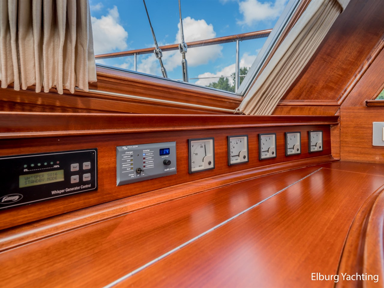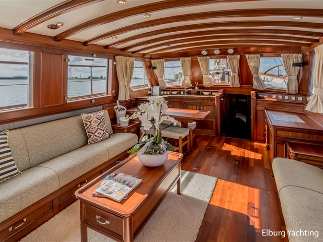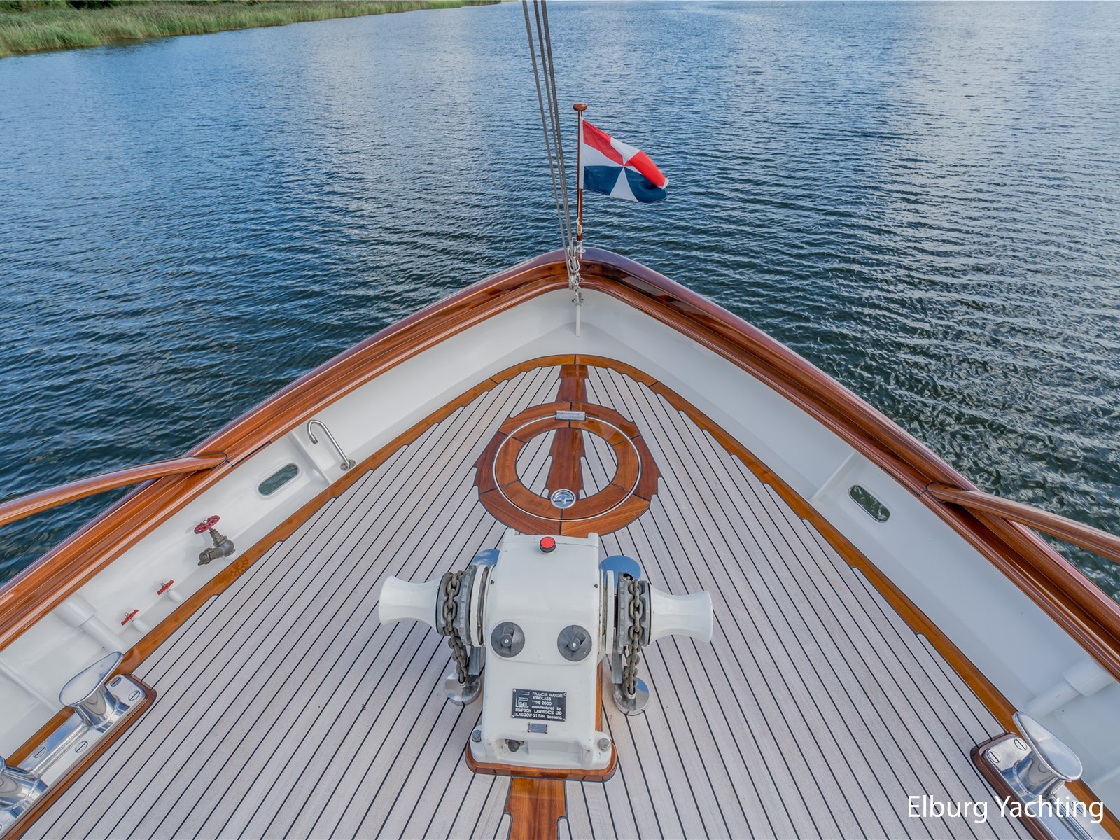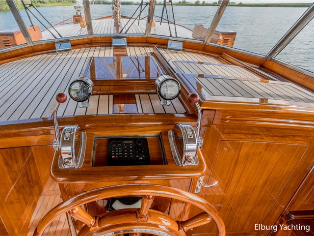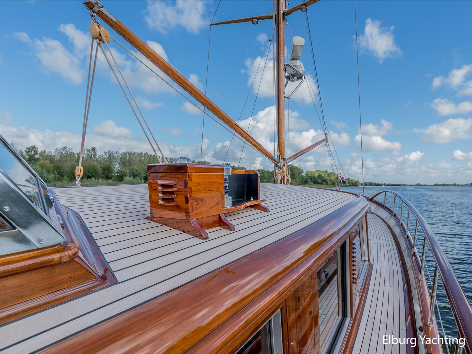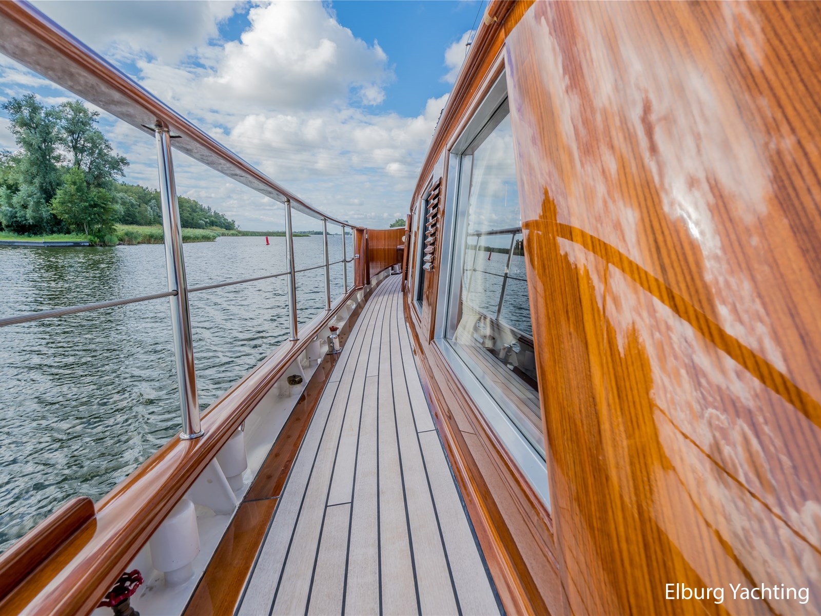 The Lunstroo 56 is a unique and one-of-a-kind piece of Dutch Craftsmanship, and a ture treasure to the long tradition of yachtbuilding that the Netherlands are known for. The vessel was launched in 1974, but has had a complete refit in 2015 at the Nicolaas Witsen yard, where no expense has been spared. The vessel has 2 x 135 hp new Perkins engines, which are known for their low revs and low noise level. During the refit, the following was carried out: New solid teak deck (22 mm), new teak cabin roof (15 mm), All varnished teak elements of the cabinroof superstructure are newly manufactured, chromed portholes, newly lined window frames, Entire electrical installation has been renewed incl. pumps and other equipment, new navigation equipment, new propeller shafts, propeller shaft bearings, thrust bearings and propellers. All tanks have been opened, cleaned and inspected. (Both diesel, water and waste water tanks.) Piping is measured by wall thickness. Hull newly painted in Awl Grip. All clear coat with impregnating resin and Double UV Coating from Dubbelcoat Van de IJssel. (with the exception of mast and boom), Morse engine control converted to electronic control, Kabola CV with hot water supply installed, new upholstery, new mattresses. The Lunstroo 56 has a lot of living space in the saloon and on the aft deck. It is a unique motor yacht with high-quality finish with modern comfort and new technology, suitable for a longer stay. stainless steel railing, stainless steel edge, spacious seating in the saloon, 7 berths, chrome windshield, rear entrance, 2 x escape hatch in the front, Miele washing machine, headroom approx. 2 meters, rear cabin suitable for crew cabin (including entrance engine room), well-insulated engine room. Stereo set BOSE Indoor and Outdoor (2015), Lowe TV + Lift (2015), CVO certificied, bilge alarm available in 3 zones. It's current owner has stored the front mast and added a winch for easy lowering of the back mast. In one of the front cabins one of the bunk beds was removed to create more space. Document description of the refit available on request. Clearance height with mast up approx. 8,40m and with folded mast and cockpit windows approx. 2,90m. Please Watch the Roundbilge Lunstroo 56 (Total Refit 2015) on YouTube: https://youtu.be/NfP3khQ4EaA For questions and / or to make an appointment, you are welcome at Elburg Yachting 7 days a week.