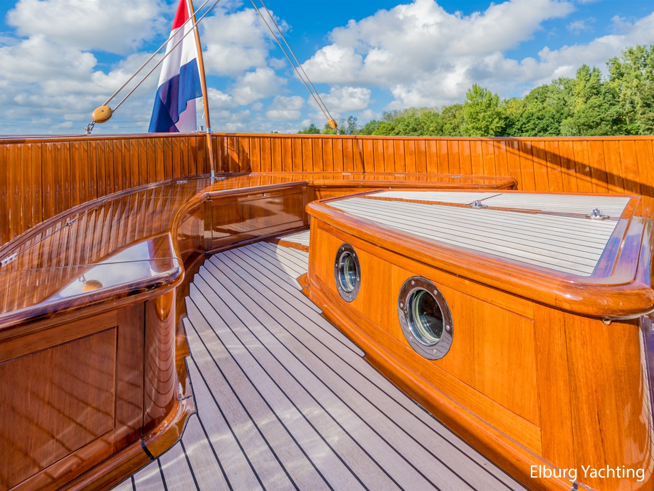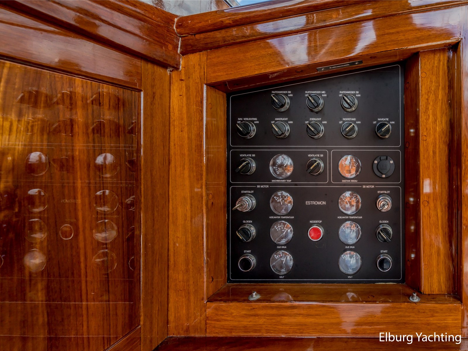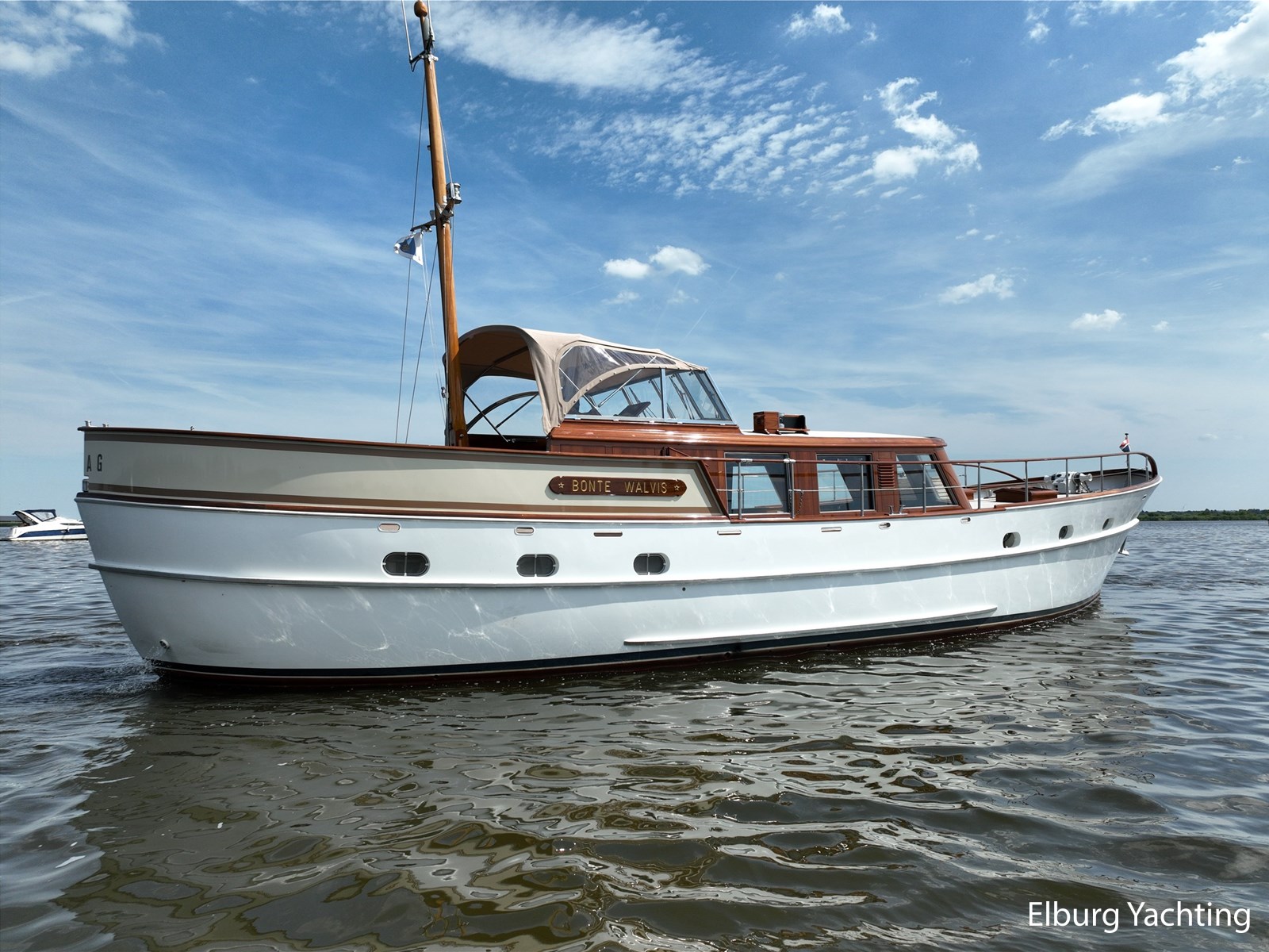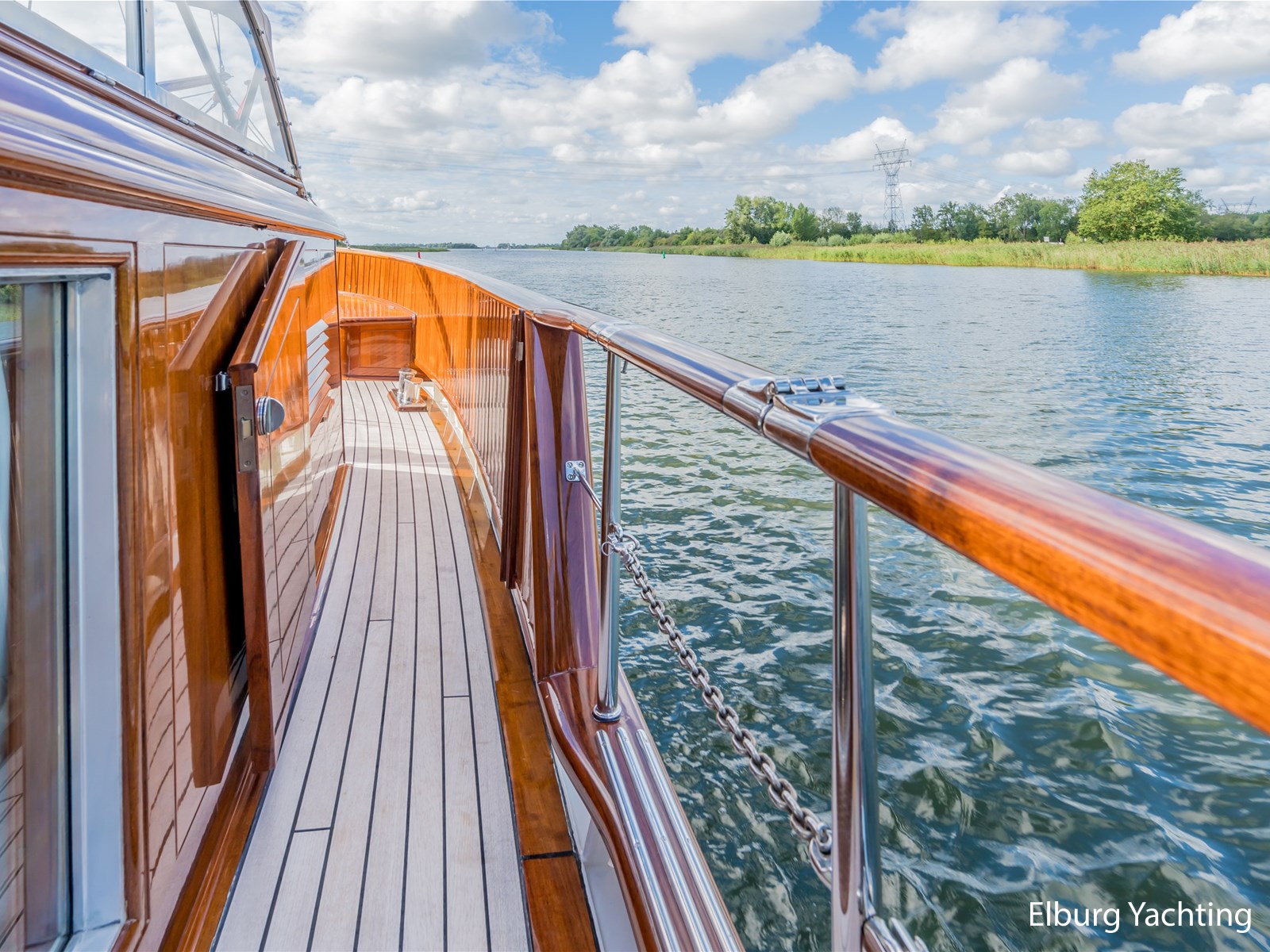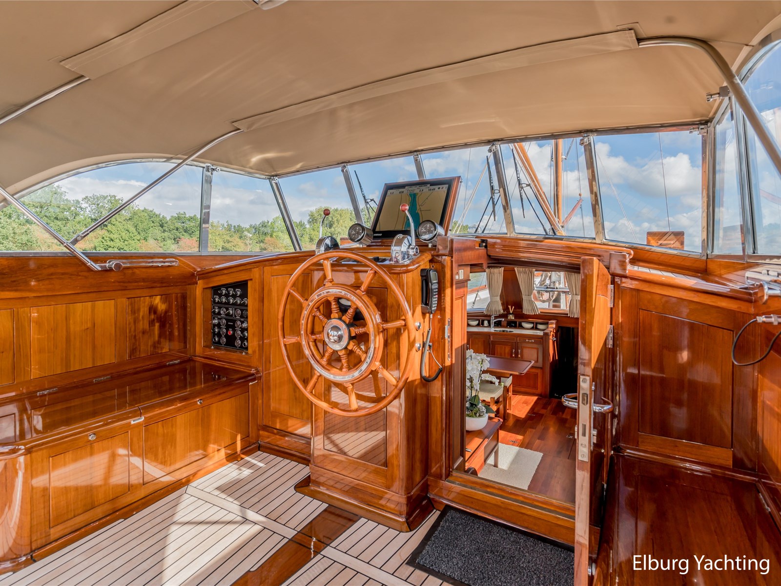 The Lunstroo 56 is a unique and one-of-a-kind piece of Dutch Craftsmanship, and a ture treasure to the long tradition of yachtbuilding that the Netherlands are known for. The vessel was launched in 1974, but has had a complete refit in 2015 at the Nicolaas Witsen yard, where no expense has been spared. The vessel has 2 x 135 hp new Perkins engines, which are known for their low revs and low noise level. During the refit, the following was carried out: New solid teak deck (22 mm), new teak cabin roof (15 mm), All varnished teak elements of the cabinroof superstructure are newly manufactured, chromed portholes, newly lined window frames, Entire electrical installation has been renewed incl. pumps and other equipment, new navigation equipment, new propeller shafts, propeller shaft bearings, thrust bearings and propellers. All tanks have been opened, cleaned and inspected. (Both diesel, water and waste water tanks.) Piping is measured by wall thickness. Hull newly painted in Awl Grip. All clear coat with impregnating resin and Double UV Coating from Dubbelcoat Van de IJssel. (with the exception of mast and boom), Morse engine control converted to electronic control, Kabola CV with hot water supply installed, new upholstery, new mattresses. The Lunstroo 56 has a lot of living space in the saloon and on the aft deck. It is a unique motor yacht with high-quality finish with modern comfort and new technology, suitable for a longer stay. stainless steel railing, stainless steel edge, spacious seating in the saloon, 7 berths, chrome windshield, rear entrance, 2 x escape hatch in the front, Miele washing machine, headroom approx. 2 meters, rear cabin suitable for crew cabin (including entrance engine room), well-insulated engine room. Stereo set BOSE Indoor and Outdoor (2015), Lowe TV + Lift (2015), CVO certificied, bilge alarm available in 3 zones. It's current owner has stored the front mast and added a winch for easy lowering of the back mast. In one of the front cabins one of the bunk beds was removed to create more space. Document description of the refit available on request. Clearance height with mast up approx. 8,40m and with folded mast and cockpit windows approx. 2,90m. Please Watch the Roundbilge Lunstroo 56 (Total Refit 2015) on YouTube: https://youtu.be/NfP3khQ4EaA For questions and / or to make an appointment, you are welcome at Elburg Yachting 7 days a week.