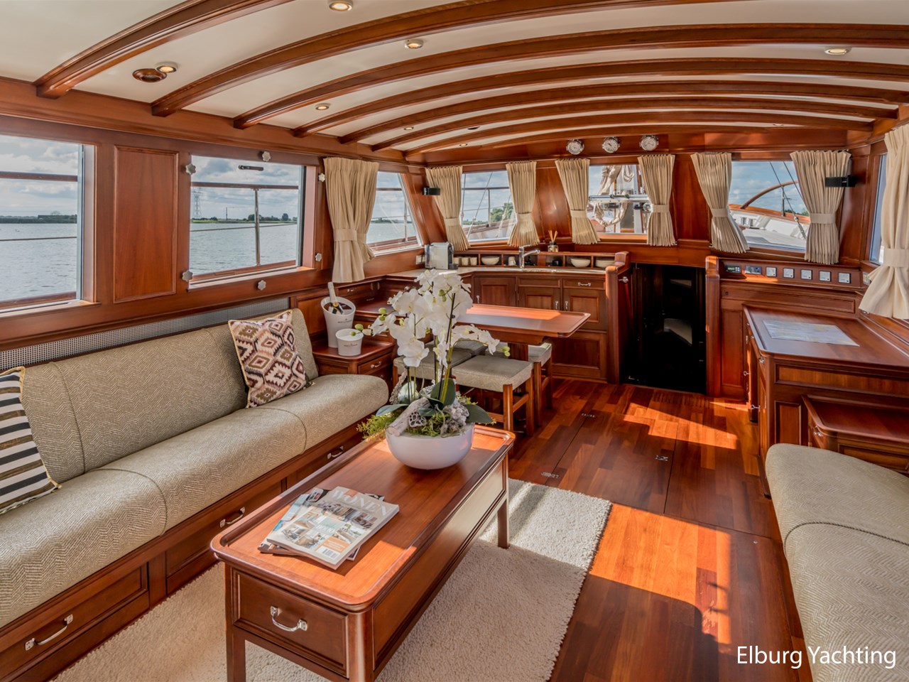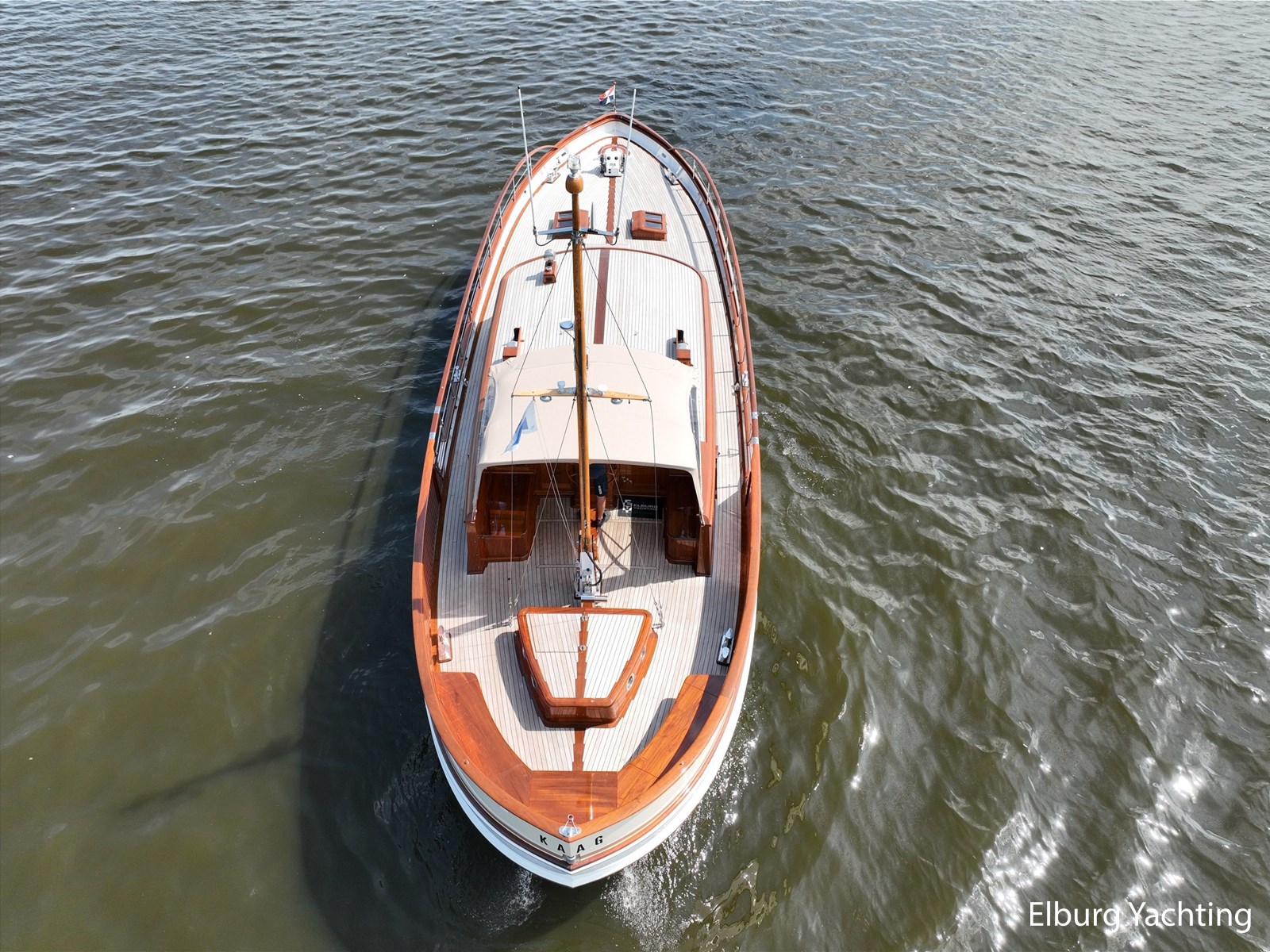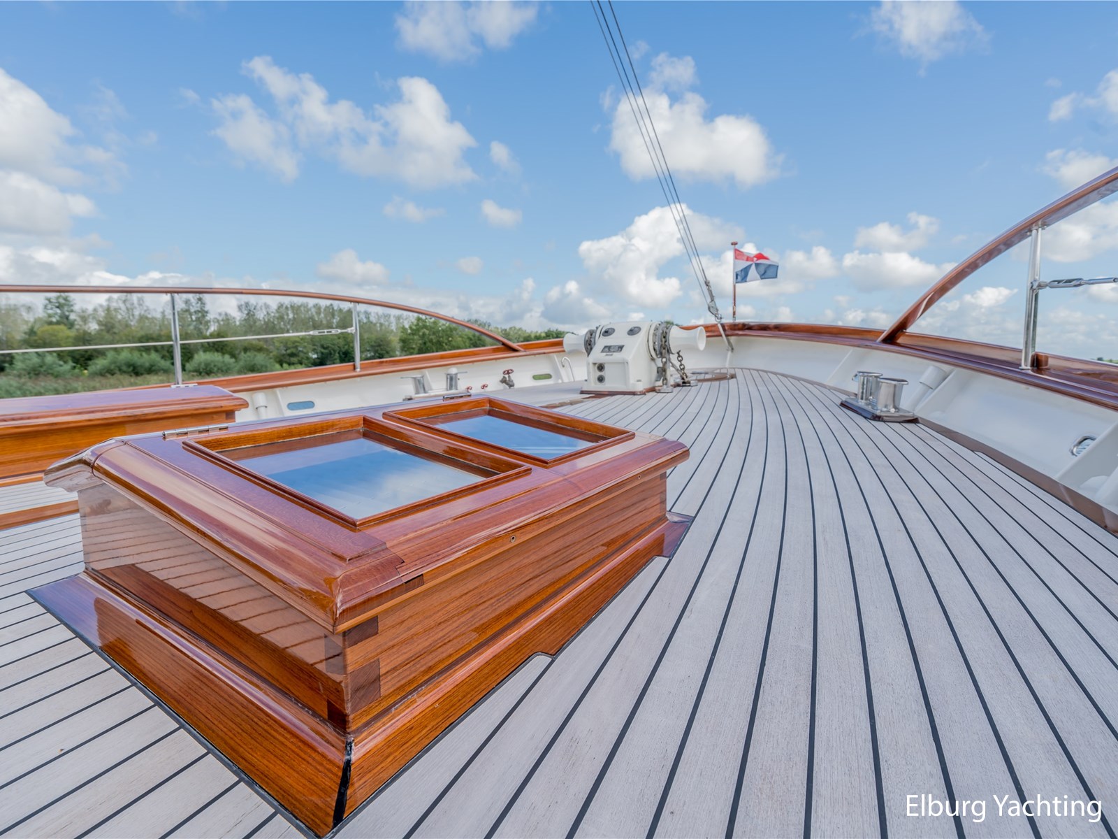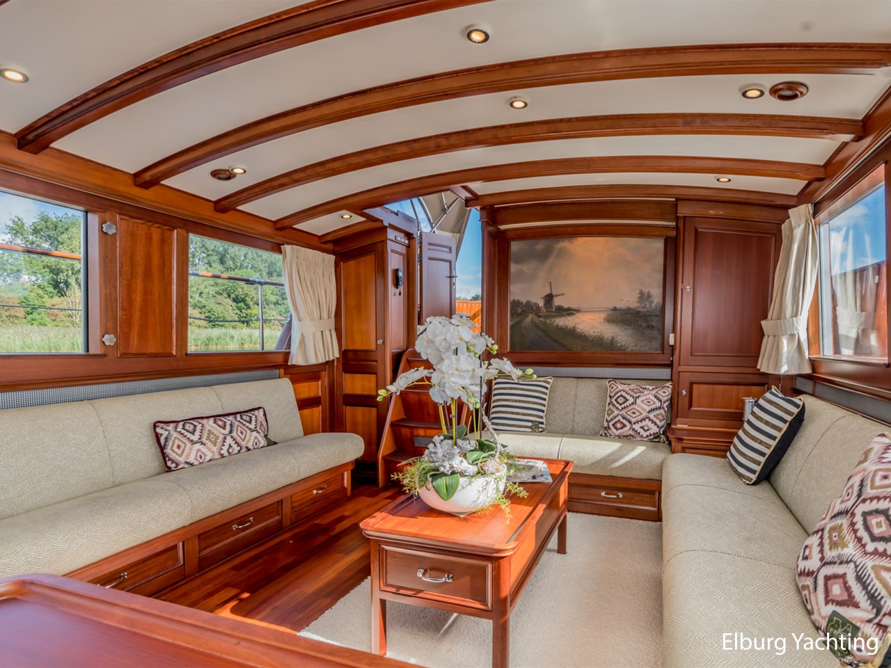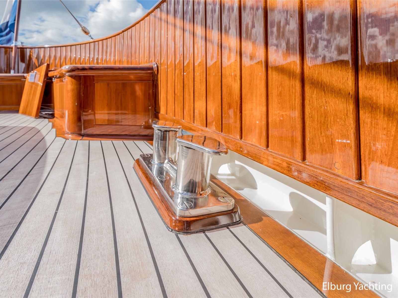 The Lunstroo 56 is a unique and one-of-a-kind piece of Dutch Craftsmanship, and a ture treasure to the long tradition of yachtbuilding that the Netherlands are known for. The vessel was launched in 1974, but has had a complete refit in 2015 at the Nicolaas Witsen yard, where no expense has been spared. The vessel has 2 x 135 hp new Perkins engines, which are known for their low revs and low noise level. During the refit, the following was carried out: New solid teak deck (22 mm), new teak cabin roof (15 mm), All varnished teak elements of the cabinroof superstructure are newly manufactured, chromed portholes, newly lined window frames, Entire electrical installation has been renewed incl. pumps and other equipment, new navigation equipment, new propeller shafts, propeller shaft bearings, thrust bearings and propellers. All tanks have been opened, cleaned and inspected. (Both diesel, water and waste water tanks.) Piping is measured by wall thickness. Hull newly painted in Awl Grip. All clear coat with impregnating resin and Double UV Coating from Dubbelcoat Van de IJssel. (with the exception of mast and boom), Morse engine control converted to electronic control, Kabola CV with hot water supply installed, new upholstery, new mattresses. The Lunstroo 56 has a lot of living space in the saloon and on the aft deck. It is a unique motor yacht with high-quality finish with modern comfort and new technology, suitable for a longer stay. stainless steel railing, stainless steel edge, spacious seating in the saloon, 7 berths, chrome windshield, rear entrance, 2 x escape hatch in the front, Miele washing machine, headroom approx. 2 meters, rear cabin suitable for crew cabin (including entrance engine room), well-insulated engine room. Stereo set BOSE Indoor and Outdoor (2015), Lowe TV + Lift (2015), CVO certificied, bilge alarm available in 3 zones. It's current owner has stored the front mast and added a winch for easy lowering of the back mast. In one of the front cabins one of the bunk beds was removed to create more space. Document description of the refit available on request. Clearance height with mast up approx. 8,40m and with folded mast and cockpit windows approx. 2,90m. Please Watch the Roundbilge Lunstroo 56 (Total Refit 2015) on YouTube: https://youtu.be/NfP3khQ4EaA For questions and / or to make an appointment, you are welcome at Elburg Yachting 7 days a week.